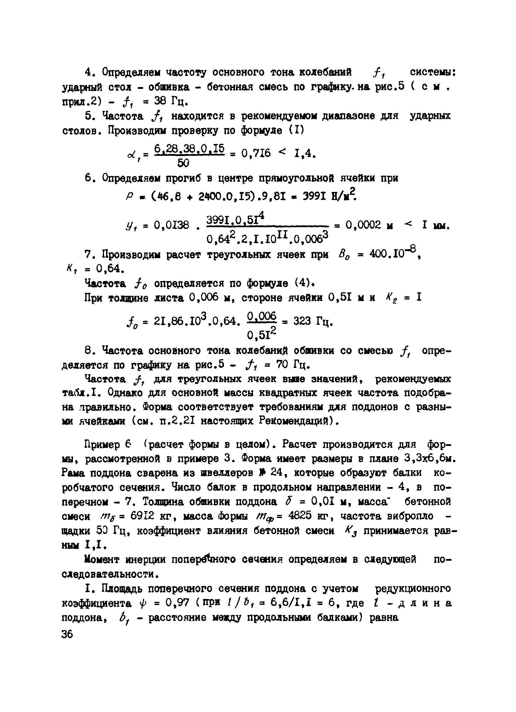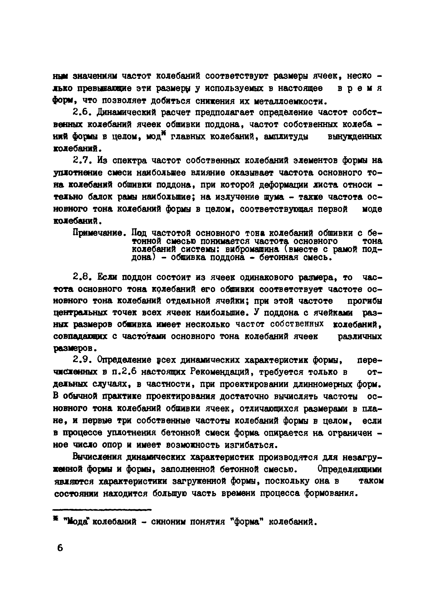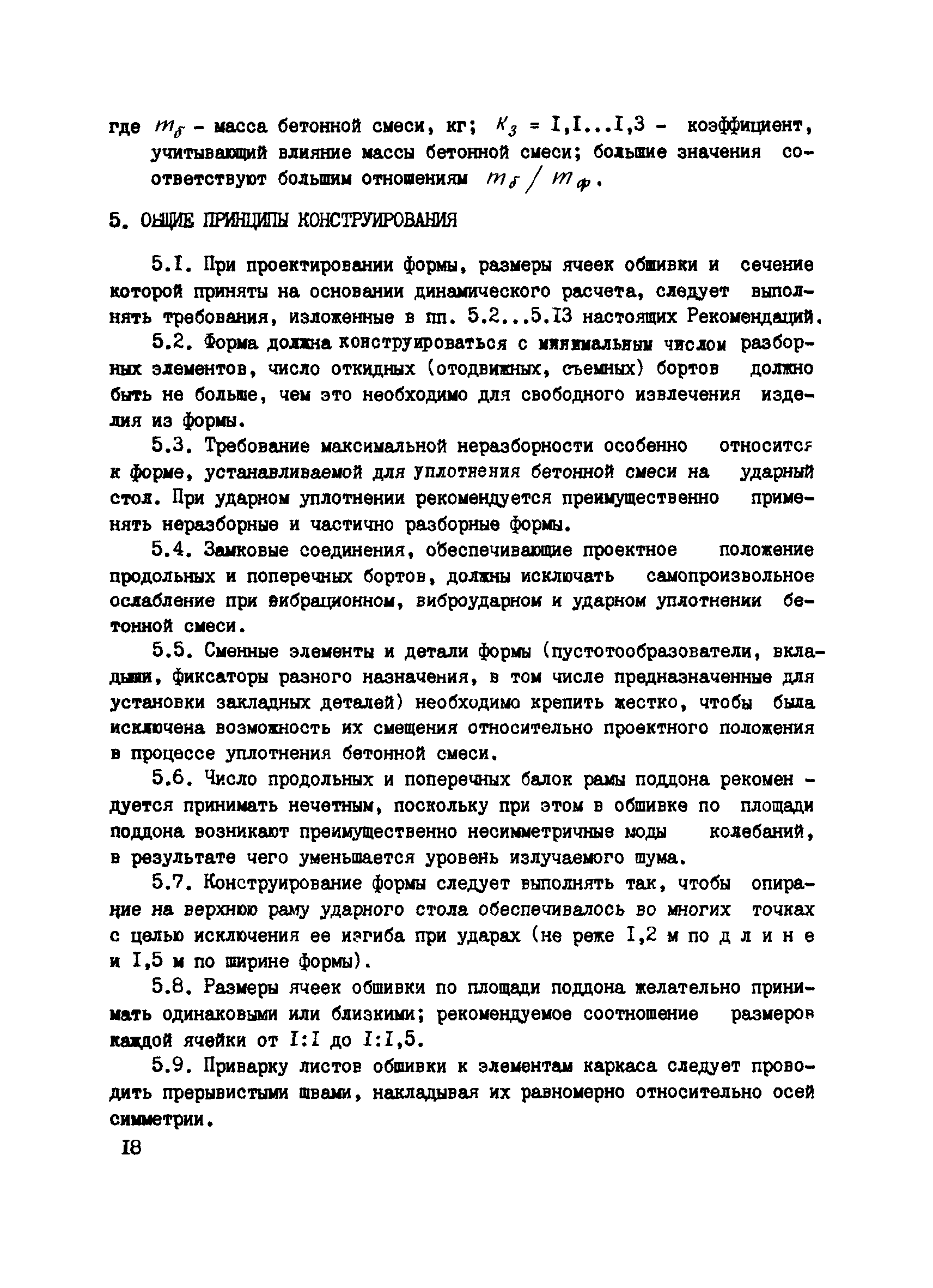 Рекомендации по динамическому расчету стальных форм| Статус: | действует | | Название рус.: | Рекомендации по динамическому расчету стальных форм | | Дата добавления в базу: | 01.09.2013 | | Дата актуализации: | 01.01.2021 | | Область применения: | В документе изложены задачи динамического расчета, основные расчетные положения, динамический расчет обшивки поддона и формы в целом. Приведены общие принципы конструирования с учетом динамического воздействия на форму, в том числе конструктивные решения, снижающие уровень шума. Даны вспомогательные материалы для расчета, а также примеры расчета. Предназначены для специалистов проектных и конструкторских организаций, ведущих разработку форм, а такие инженерно-технических работников предприятий сборного железобетона. | | Оглавление: | Предисловие 1. Общая часть 2. Основные расчетные положения 3. Динамический расчет обшивки поддона 4. Динамический расчет формы в целом 5. Общие принципы конструирования 6. Конструктивные и технологические решения, снижающие шум формы Приложение 1. Моменты инерции при свободном кручении прокатных и гнутых профилей Приложение 2. Графики для определения частоты основного тона колебаний обшивки с бетонной смесью Приложение 3. Материалы для полного динамического расчета формы Приложение 4. Статический расчет ячейки обшивки Приложение 5. Примеры расчета Приложение 6. Методы динамических испытаний формы Приложение 7. Предпосылки для проведения динамического расчета формы | | Разработан: | НИИЖБ Госстроя СССР Ворошиловградский филиал НИИСП Челябинский ПромстройНИИпроект Минтяжстроя СССР