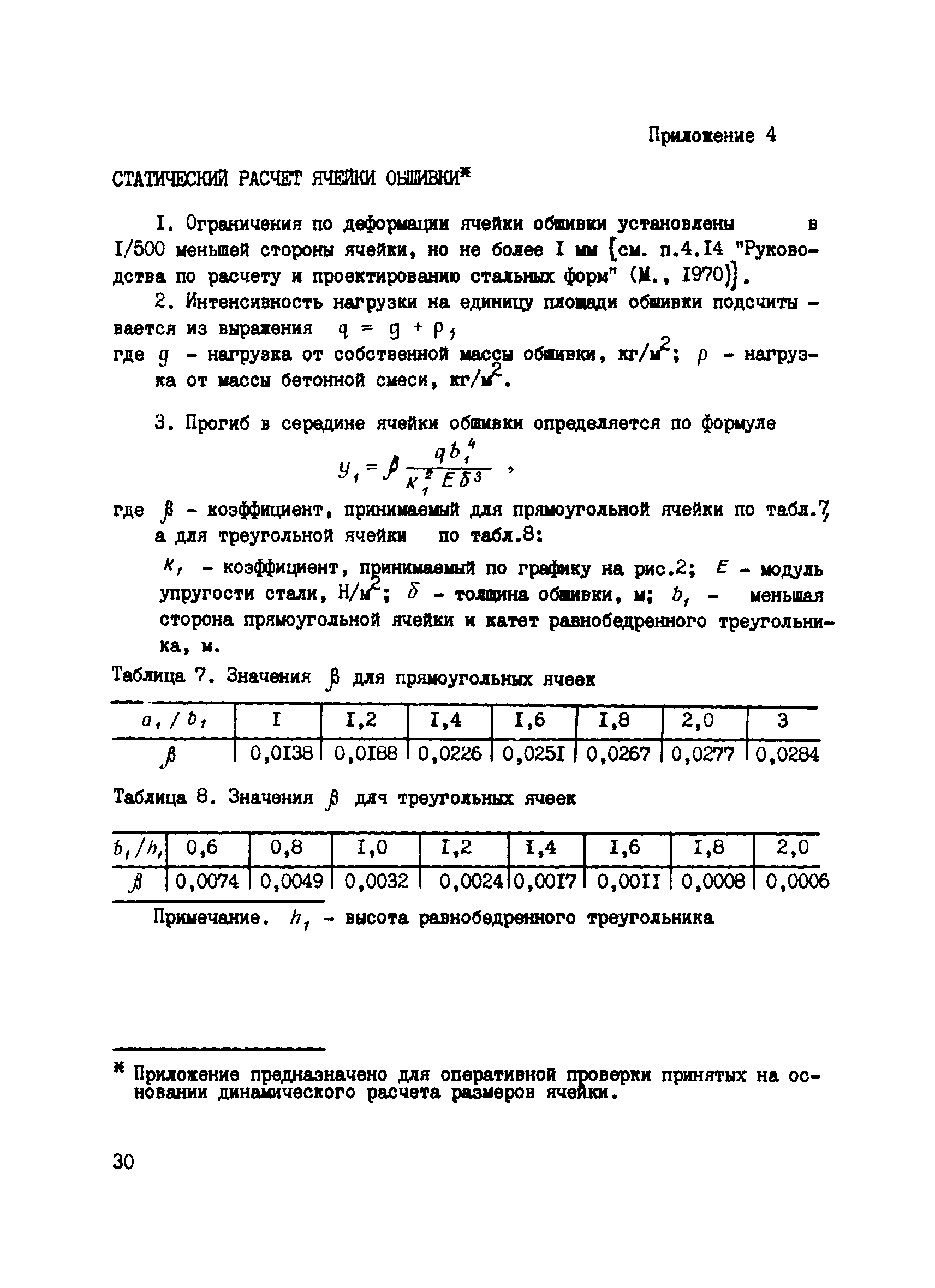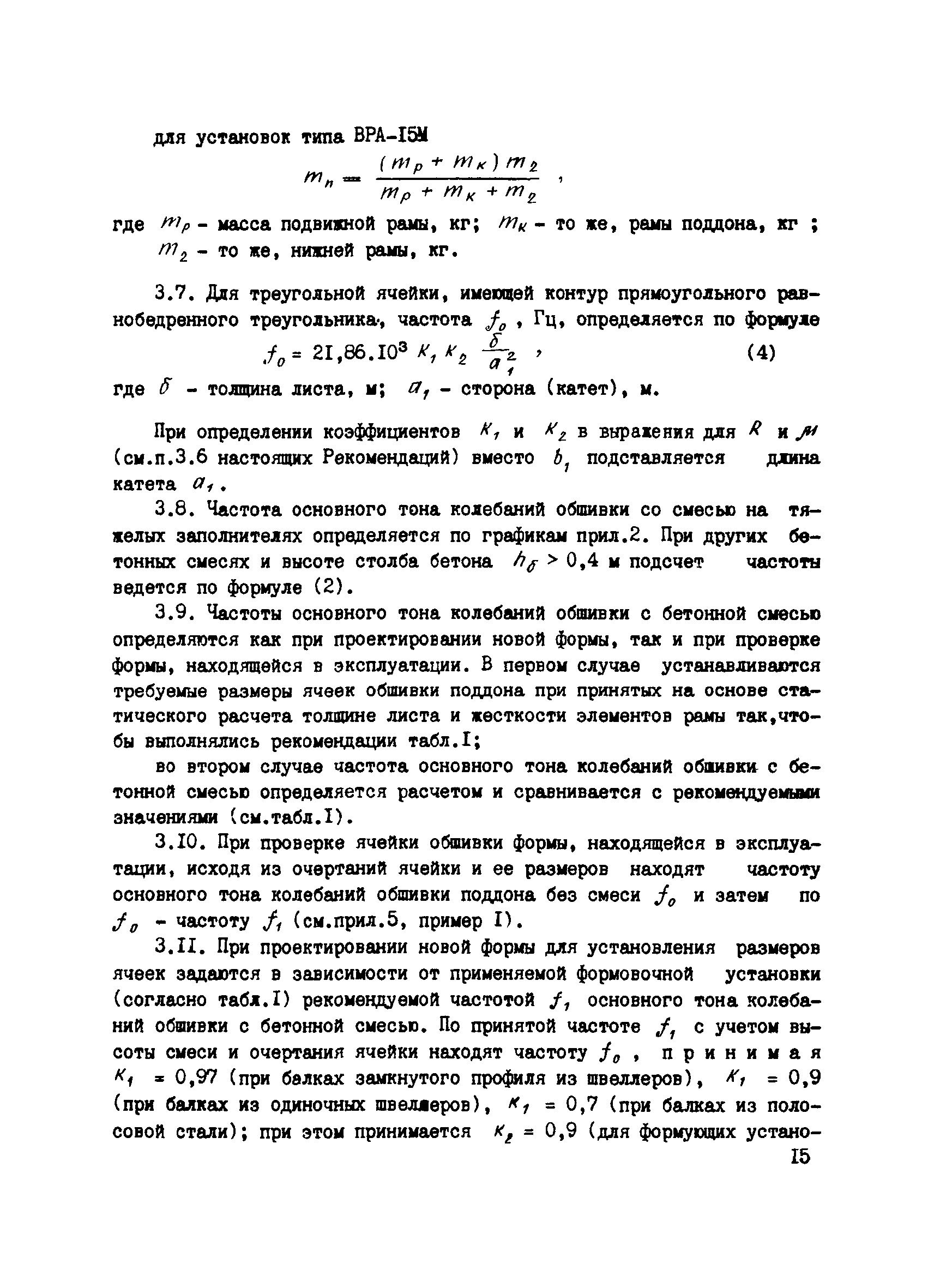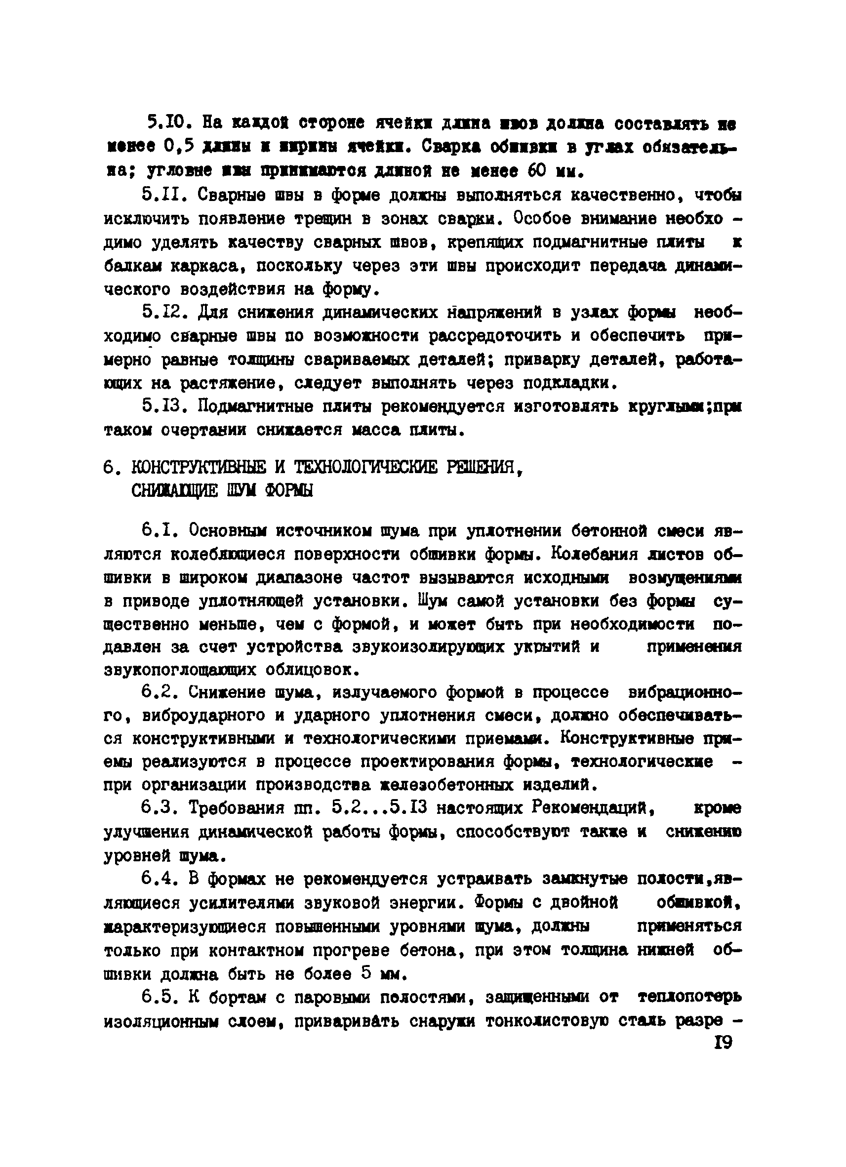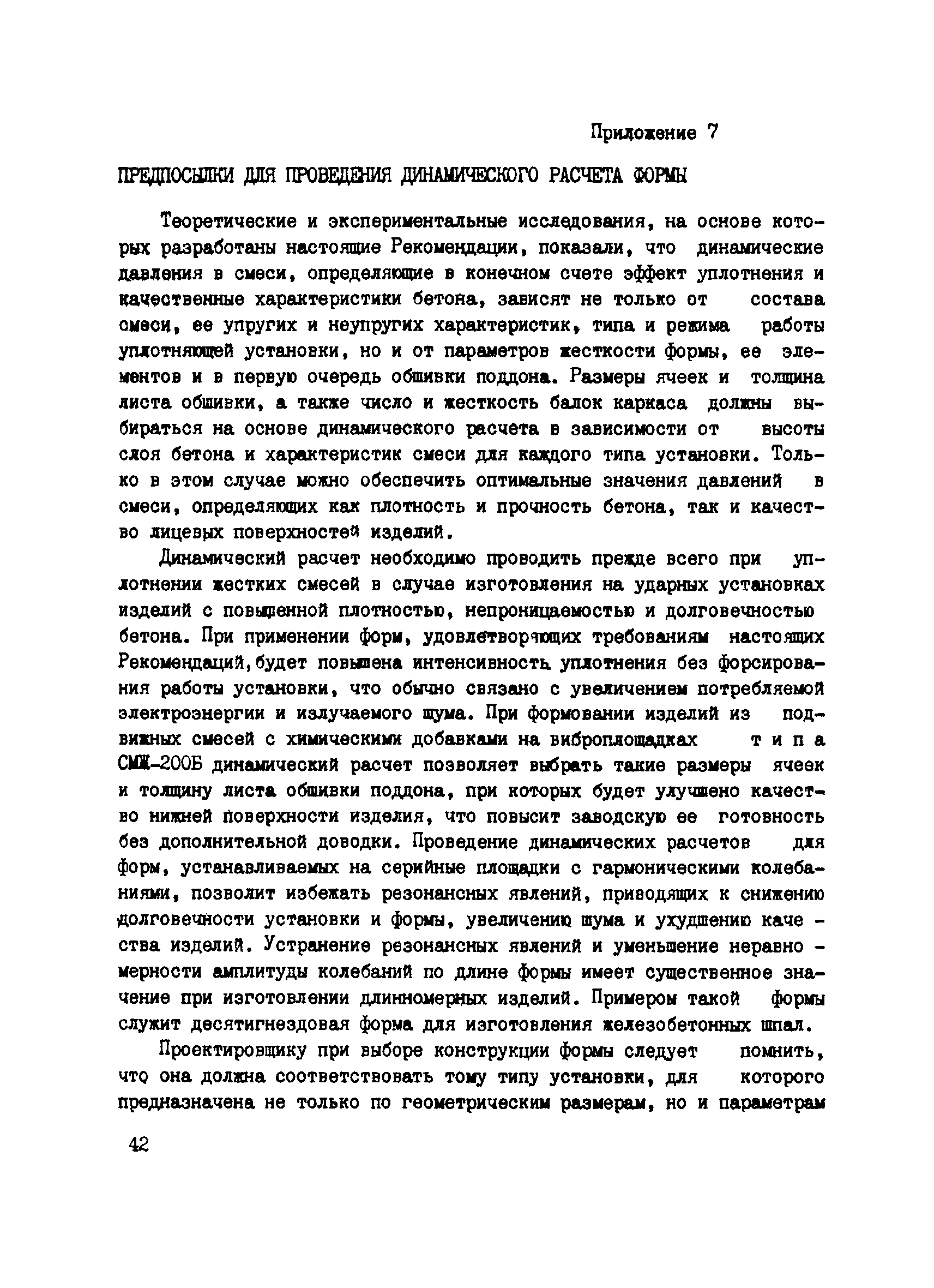 Рекомендации по динамическому расчету стальных форм| Статус: | действует | | Название рус.: | Рекомендации по динамическому расчету стальных форм | | Дата добавления в базу: | 01.09.2013 | | Дата актуализации: | 01.01.2021 | | Область применения: | В документе изложены задачи динамического расчета, основные расчетные положения, динамический расчет обшивки поддона и формы в целом. Приведены общие принципы конструирования с учетом динамического воздействия на форму, в том числе конструктивные решения, снижающие уровень шума. Даны вспомогательные материалы для расчета, а также примеры расчета. Предназначены для специалистов проектных и конструкторских организаций, ведущих разработку форм, а такие инженерно-технических работников предприятий сборного железобетона. | | Оглавление: | Предисловие 1. Общая часть 2. Основные расчетные положения 3. Динамический расчет обшивки поддона 4. Динамический расчет формы в целом 5. Общие принципы конструирования 6. Конструктивные и технологические решения, снижающие шум формы Приложение 1. Моменты инерции при свободном кручении прокатных и гнутых профилей Приложение 2. Графики для определения частоты основного тона колебаний обшивки с бетонной смесью Приложение 3. Материалы для полного динамического расчета формы Приложение 4. Статический расчет ячейки обшивки Приложение 5. Примеры расчета Приложение 6. Методы динамических испытаний формы Приложение 7. Предпосылки для проведения динамического расчета формы | | Разработан: | НИИЖБ Госстроя СССР Ворошиловградский филиал НИИСП Челябинский ПромстройНИИпроект Минтяжстроя СССР