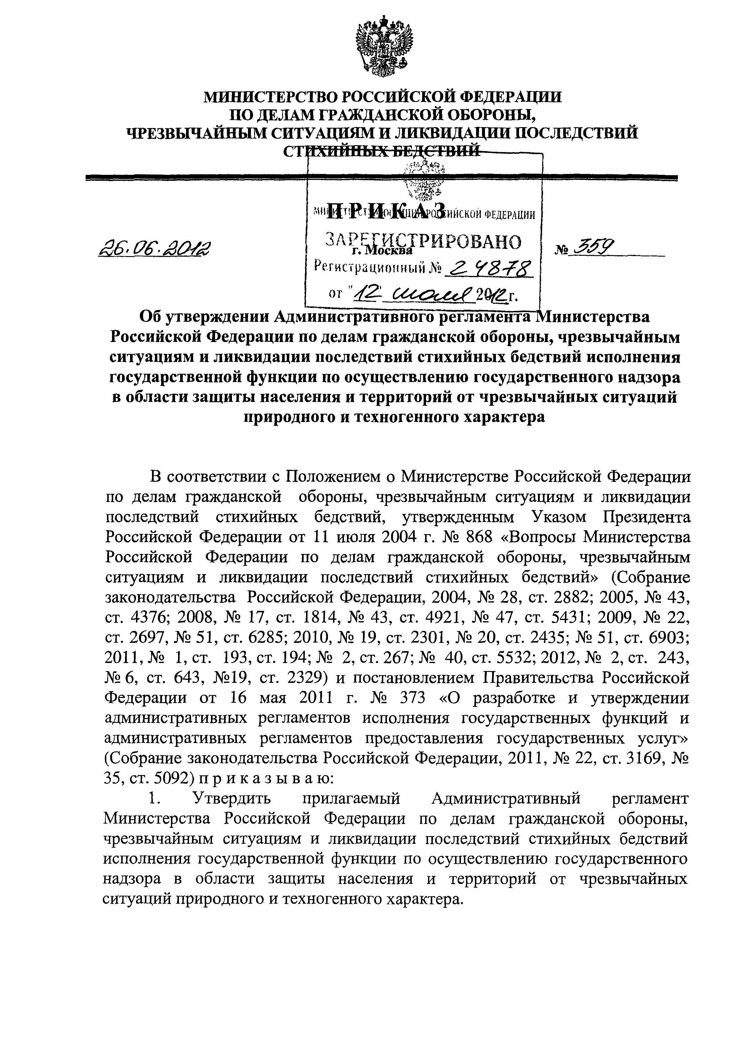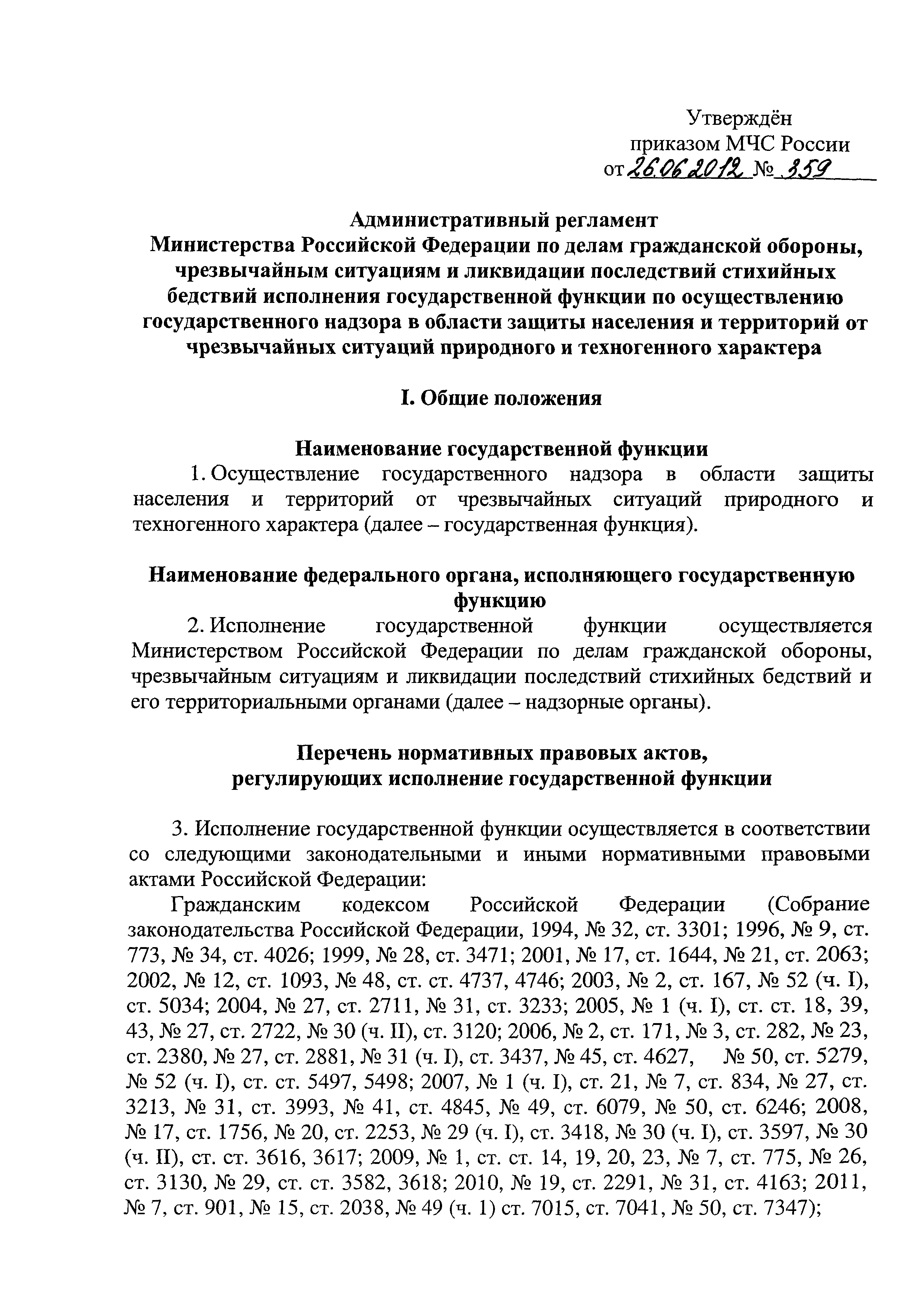 | Утверждён: | 26.06.2012 МЧС России (Russian Federation MChS 359) |