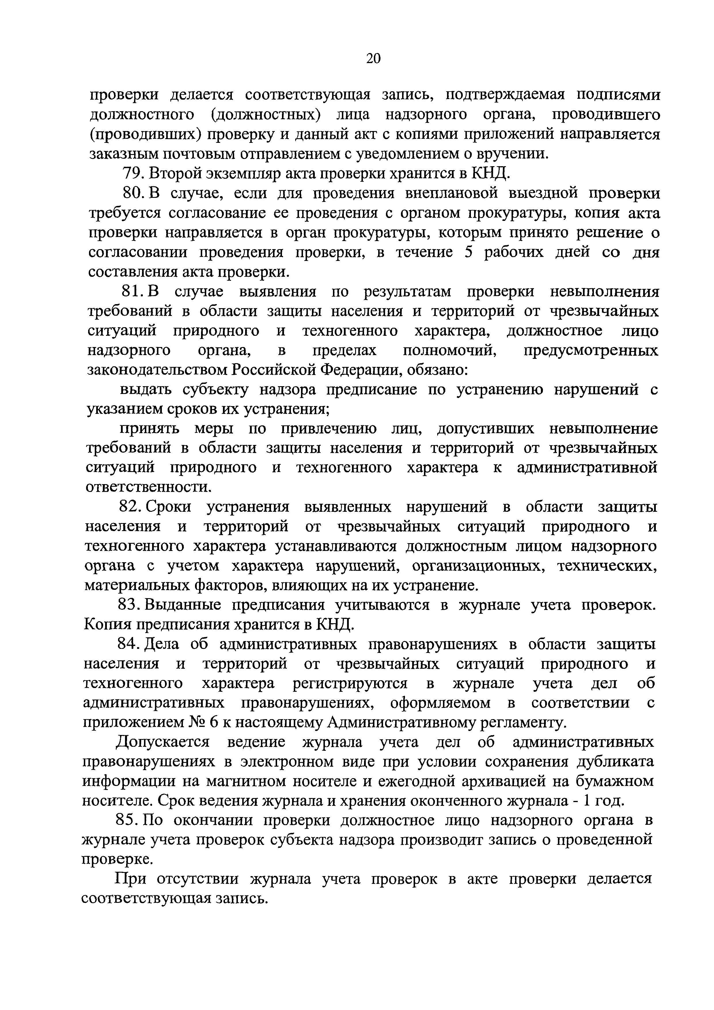 | Оглавление: | 1. Общие положения II. Требования к порядку исполнения государственной функции III. Состав, последовательность и сроки выполнения административных процедур (действий), требования к порядку их выполнения, в том числе особенности выполнения административных процедур (действий) в электронной форме IV. Порядок и формы контроля за исполнением государственной функции V. Досудебный (внесудебный) порядок обжалования решений и действий (бездействия) надзорных органов, а также их должностных лиц Приложение № 1 Перечень органов, осуществляющих государственный надзор в области защиты населения и территорий от чрезвычайных ситуаций природного и техногенного характера Приложение № 2 Блок-схема исполнения государственной функции Приложение № 3 Журнал учета субъектов надзора Приложение № 4 План проведения плановых проверок субъектов надзора Приложение № 5 Журнал учета проверок Приложение № 6 Журнал учета дел об административных правонарушениях |