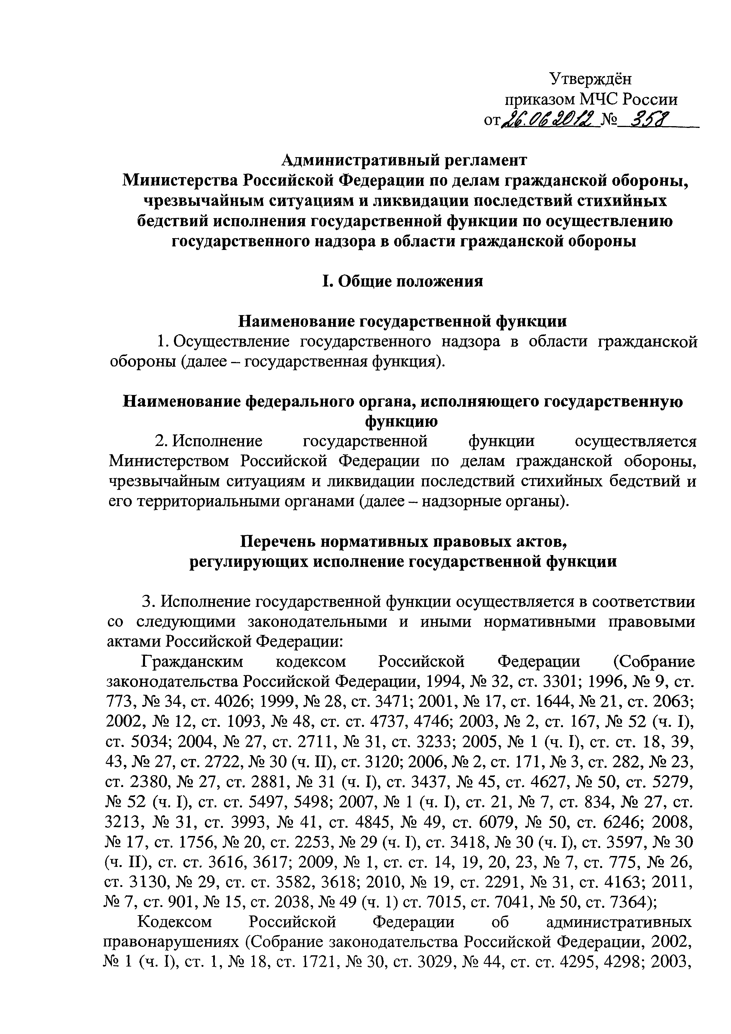 | Утверждён: | 26.06.2012 МЧС России (Russian Federation MChS 358) |