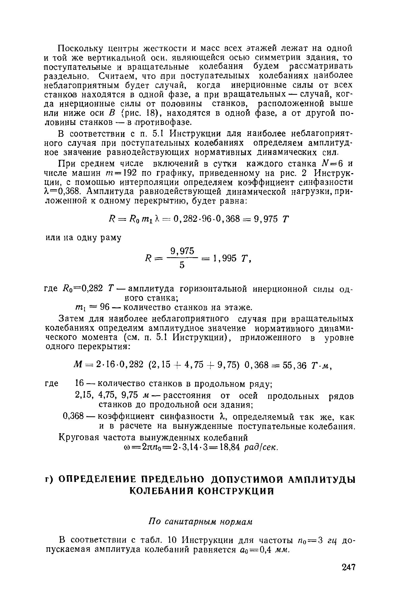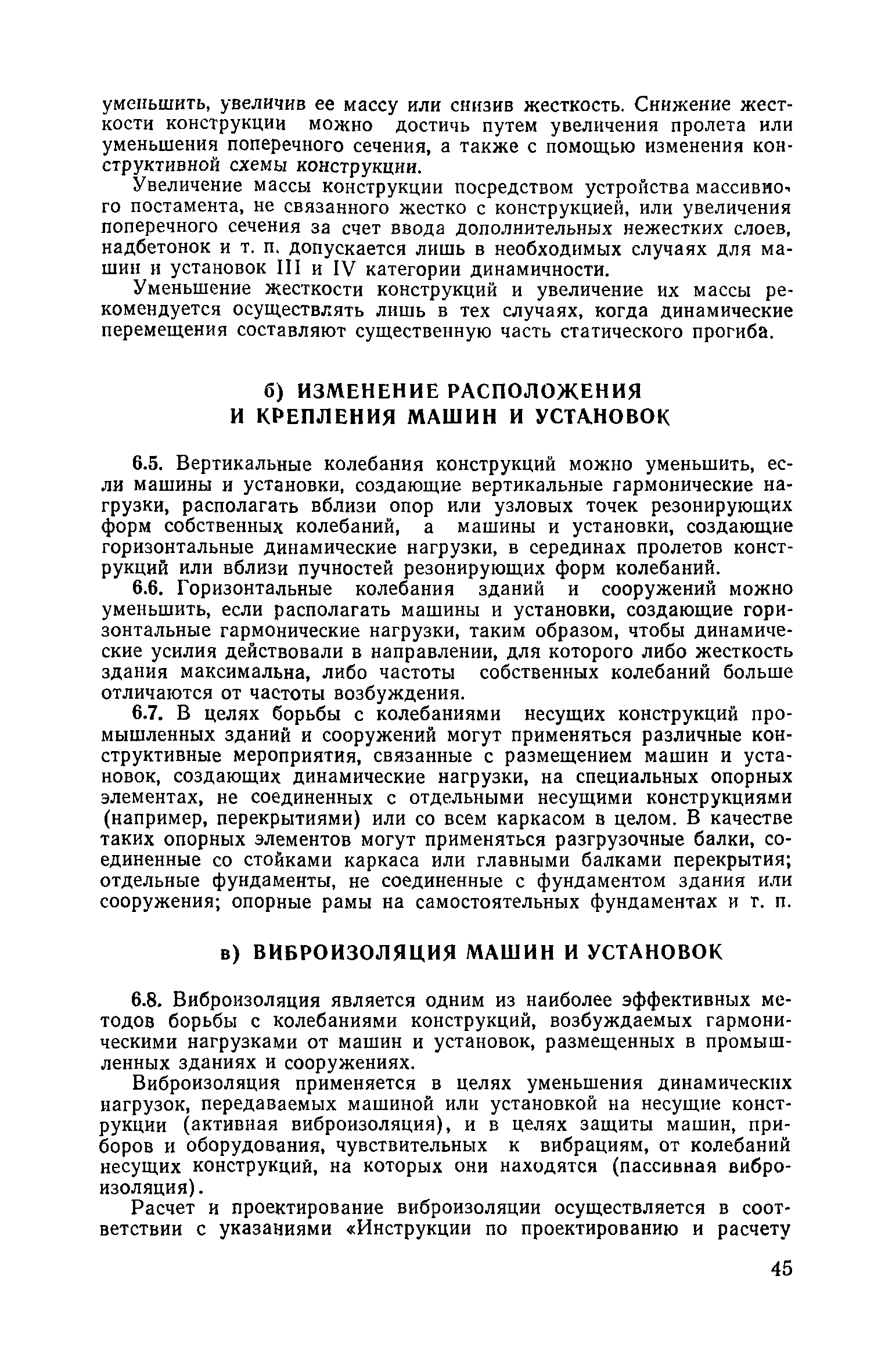 | Область применения: | В инструкции приведены указания по расчету и проектированию несущих конструкций промышленных зданий и сооружений, воспринимающих динамические воздействия эксплуатационного характера от машин и оборудования, установленных на перекрытиях или отдельных площадках. |