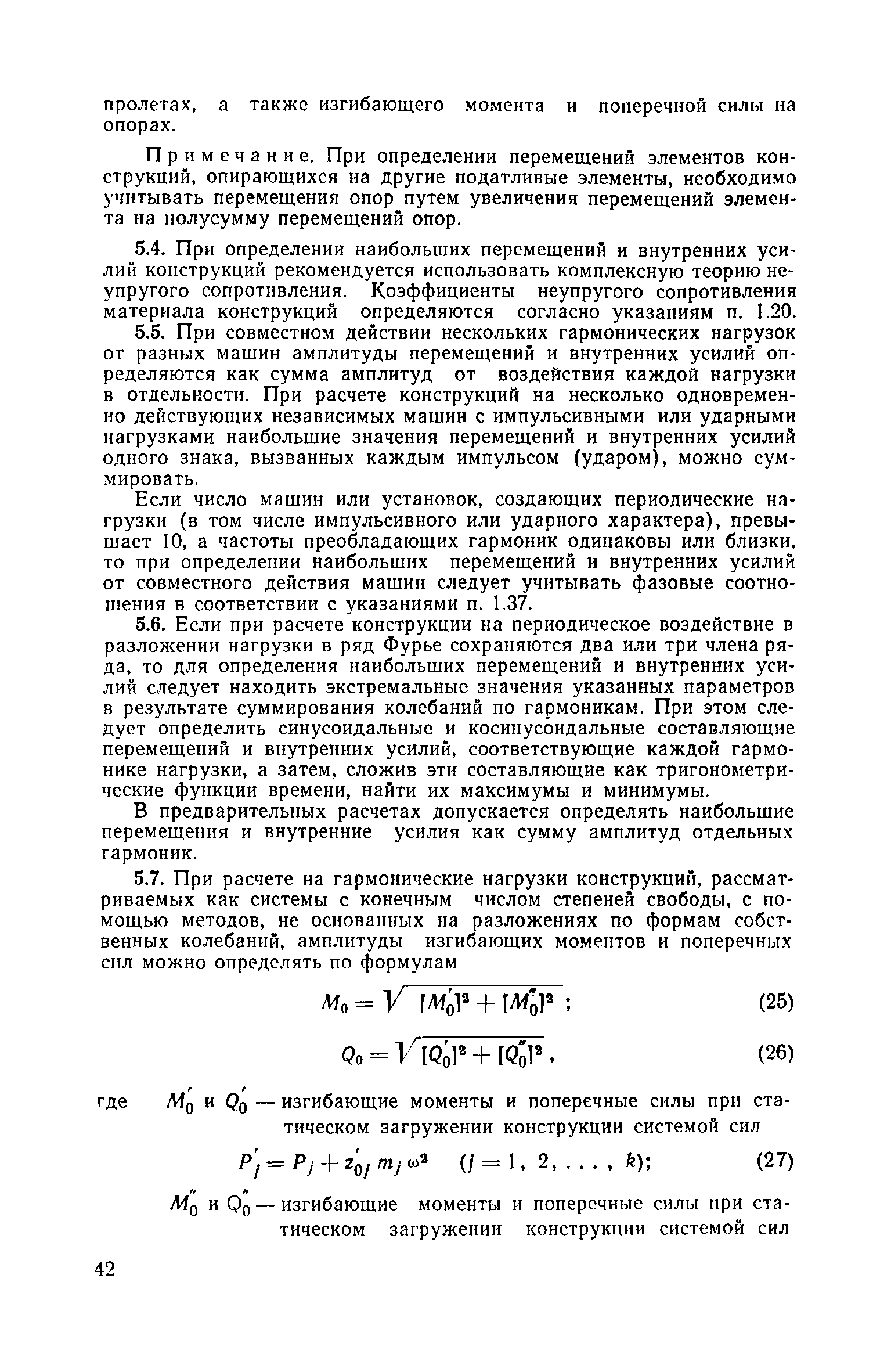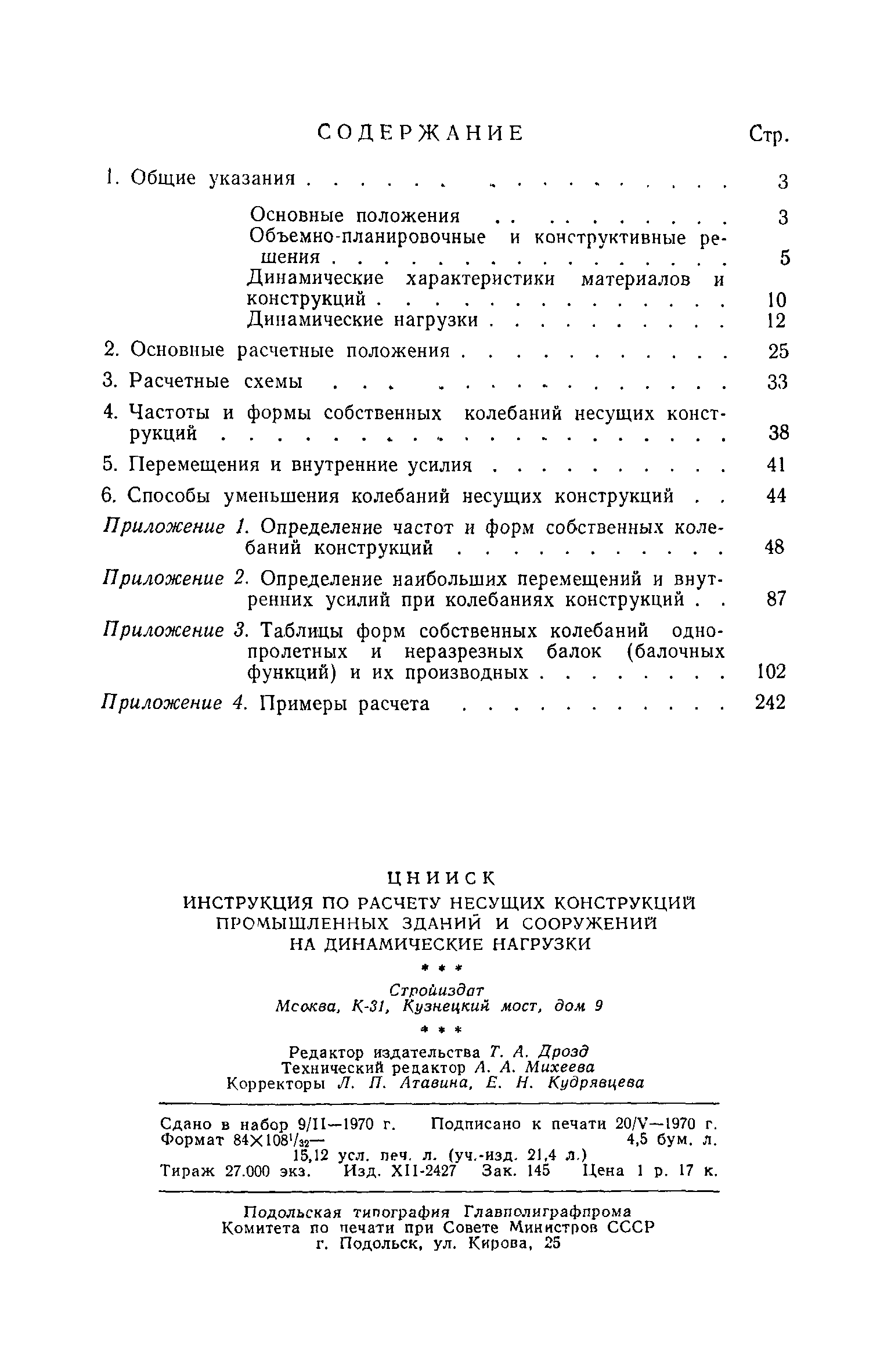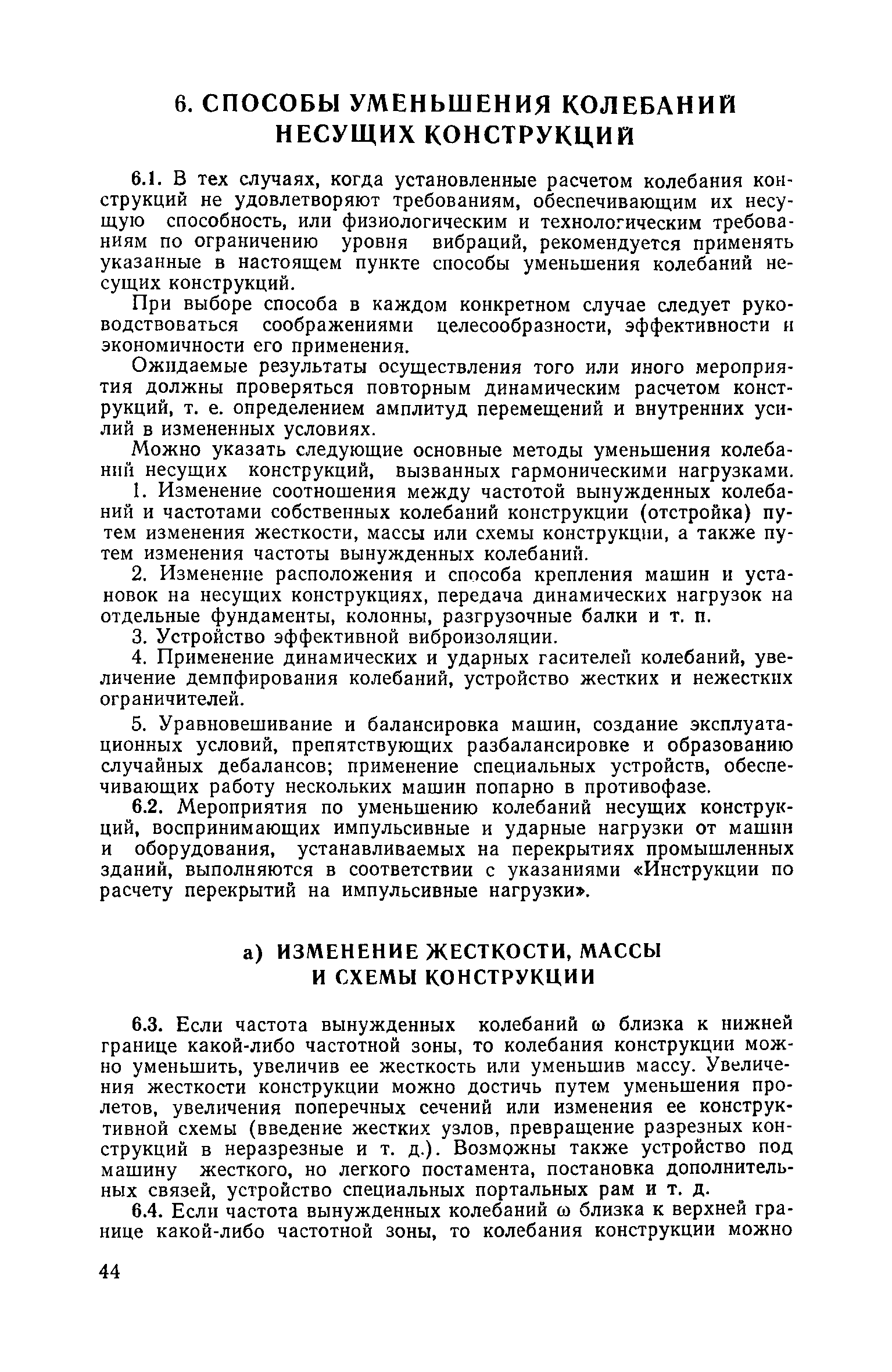 | Оглавление: | 1. Общие указания Основные положения Объёмно-планировочные и конструктивные решения Динамические характеристики материалов и конструкций Динамические нагрузки 2. Основные расчетные положения 3. Расчетные схемы 4. Частоты и формы собственных колебаний несущих конструкций 5. Перемещения и внутренние усилия 6. Способы уменьшения колебаний несущих конструкций Приложение 1. Определение частот и форм собственных колебаний конструкций Приложение 2. Определение наибольших перемещений и внутренних усилий при колебаниях конструкций Приложение 3. Таблицы форм собственных колебаний однопролетных и неразрезных балок (балочных функций) и их производных Приложение 4. Примеры расчета |