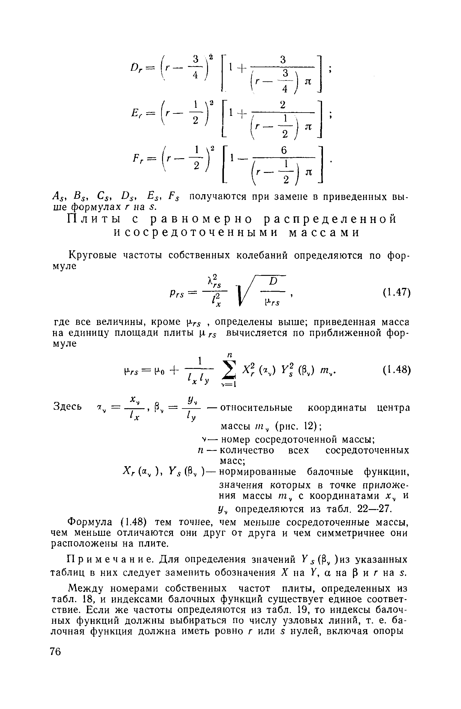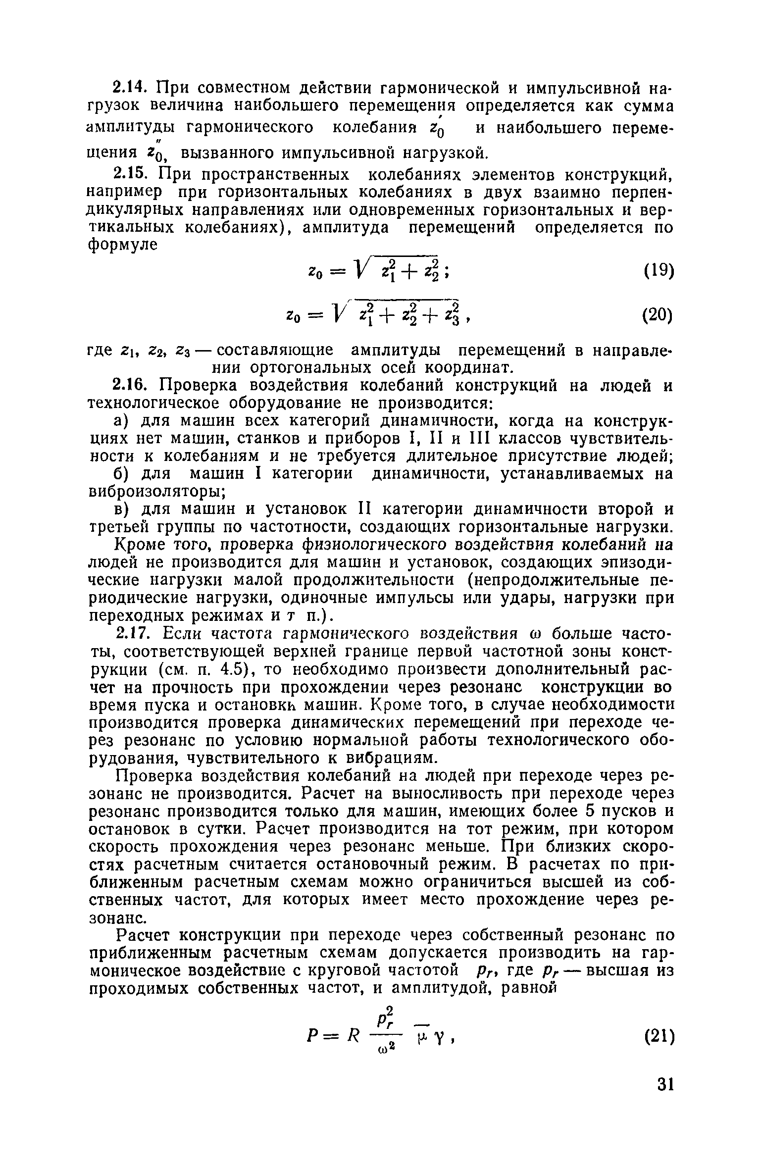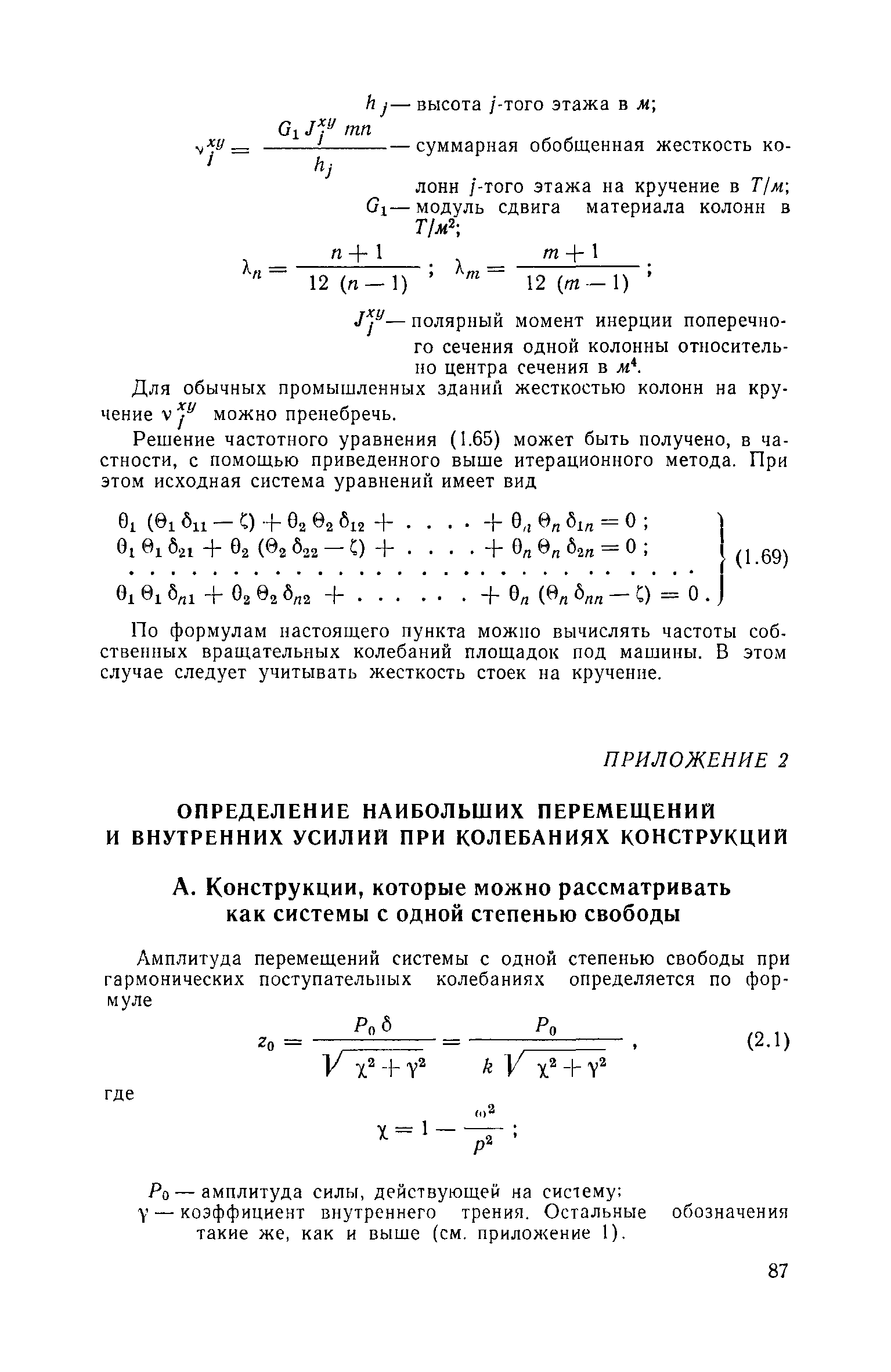 | Оглавление: | 1. Общие указания Основные положения Объёмно-планировочные и конструктивные решения Динамические характеристики материалов и конструкций Динамические нагрузки 2. Основные расчетные положения 3. Расчетные схемы 4. Частоты и формы собственных колебаний несущих конструкций 5. Перемещения и внутренние усилия 6. Способы уменьшения колебаний несущих конструкций Приложение 1. Определение частот и форм собственных колебаний конструкций Приложение 2. Определение наибольших перемещений и внутренних усилий при колебаниях конструкций Приложение 3. Таблицы форм собственных колебаний однопролетных и неразрезных балок (балочных функций) и их производных Приложение 4. Примеры расчета |