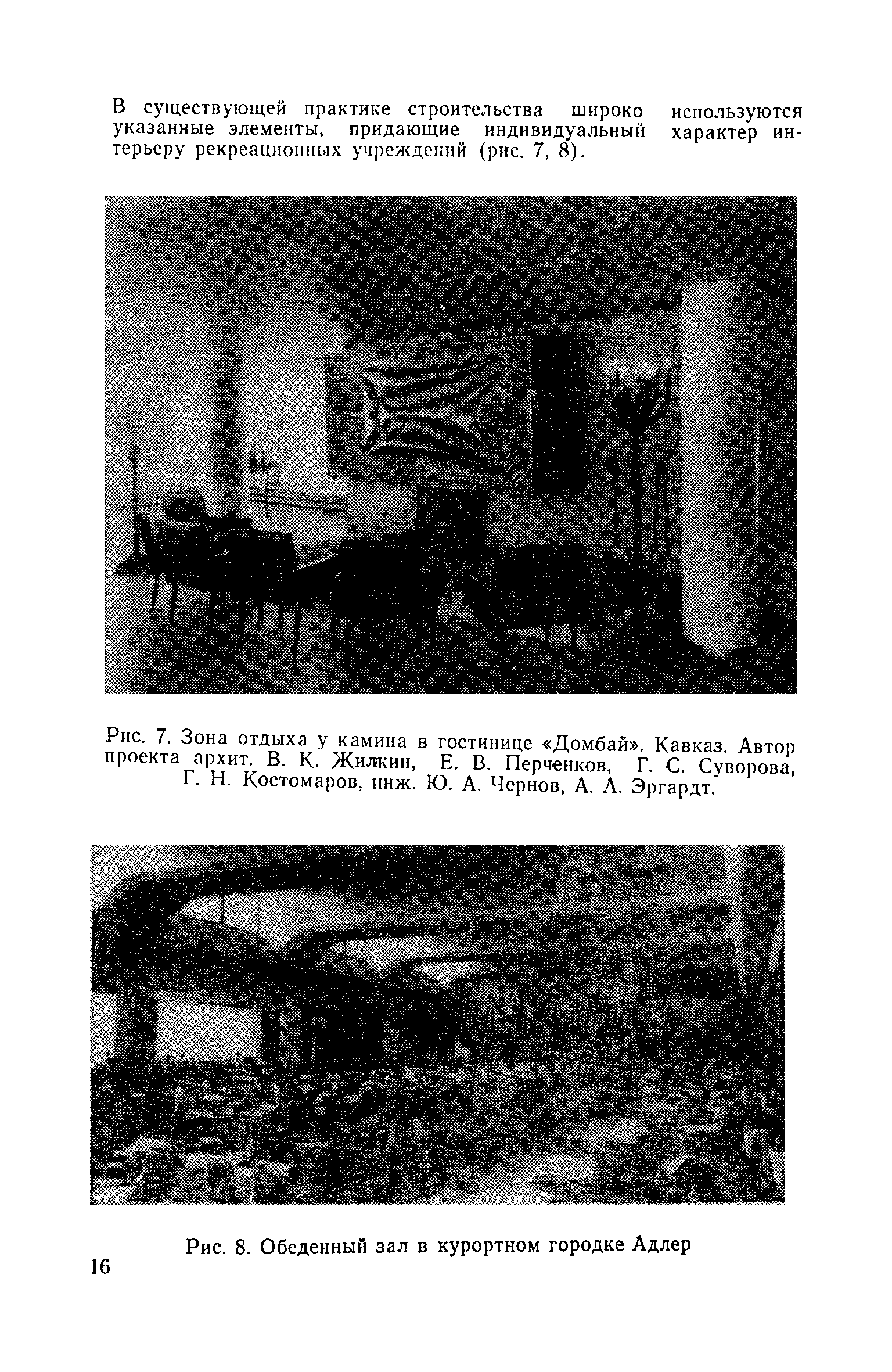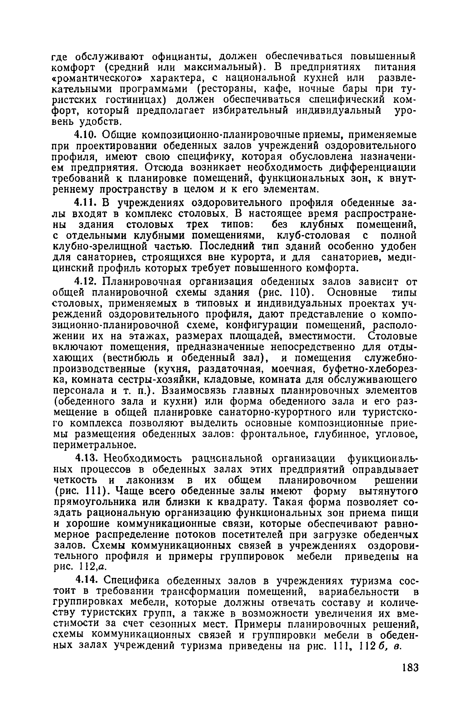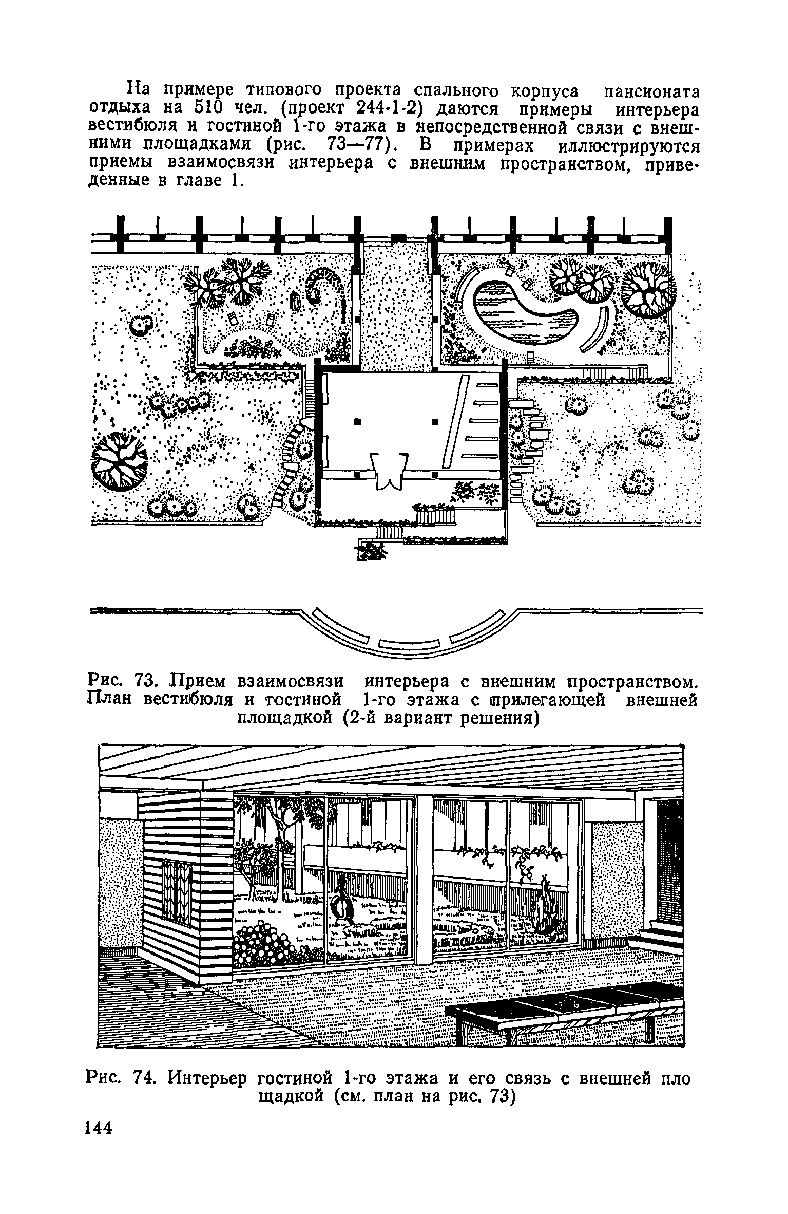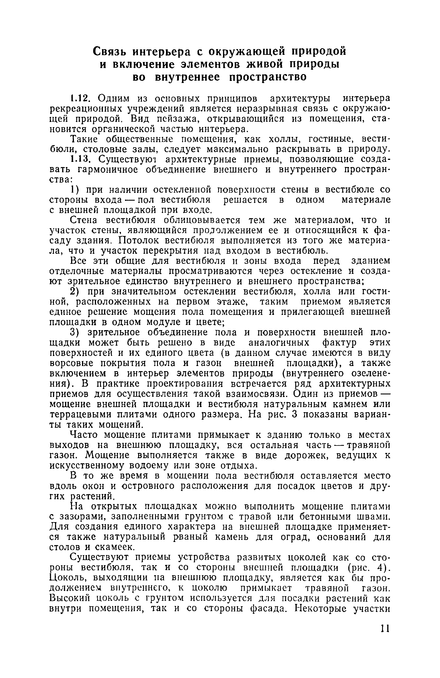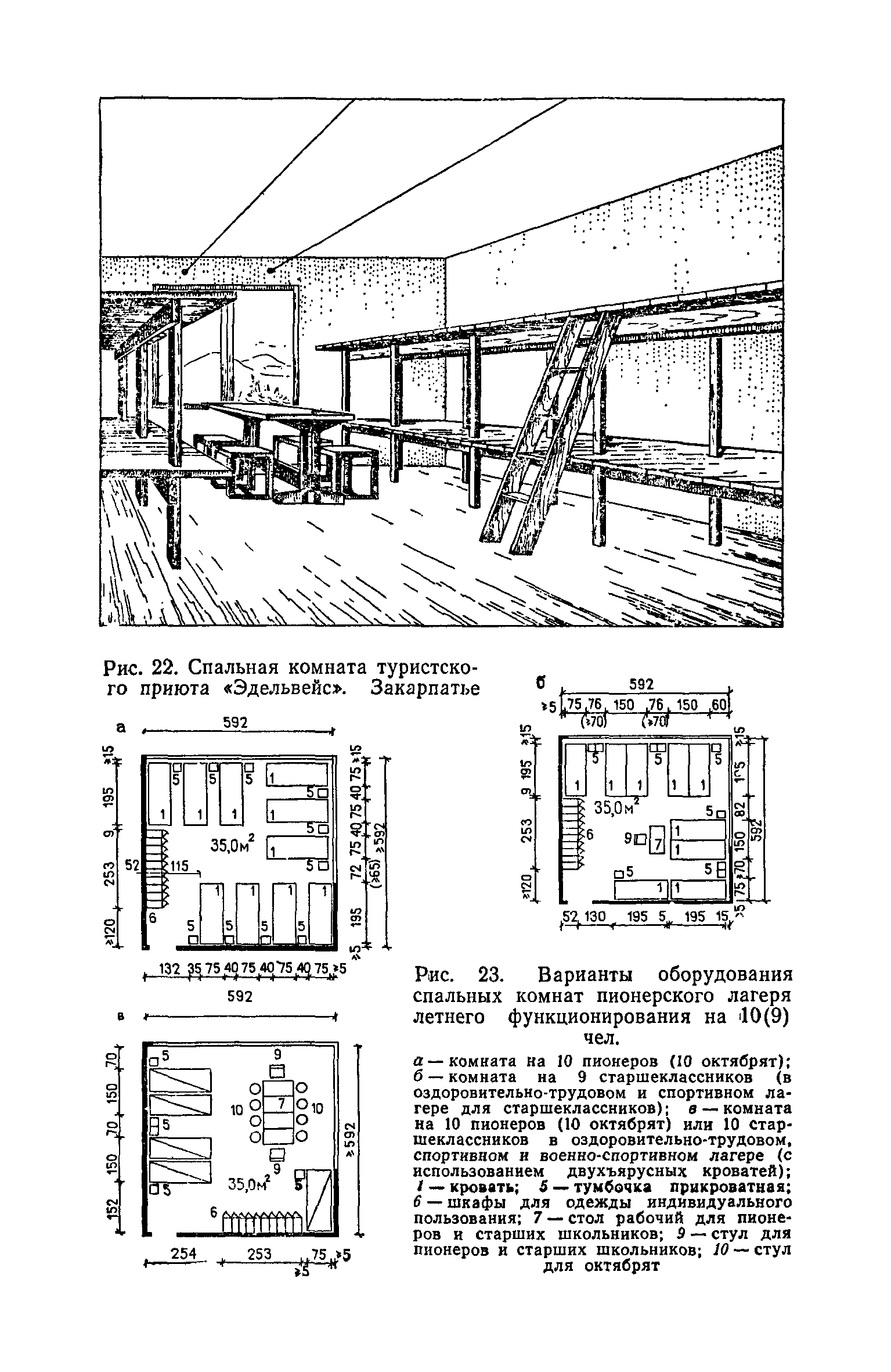 | Оглавление: | 1. Основные принципы формирования интерьера рекреационных учреждений 2. Жилые ячейки Спальные помещения Архитектурно-планировочные особенности спальных помещений Мебель и оборудование Приемы искусственного освещения и осветительные приборы Цветовое решение Отделочные материалы Примеры эталона интерьера спальной комнаты на два человека Санитарные узлы жилых ячеек Планировочные особенности Оборудование 3. Вестибюли, гостиные и холлы Вестибюли спальных корпусов санаториев, домов отдыха и пансионатов Архитектурно-планировочная организация вестибюлей Функциональное зонирование, оборудование и мебель Приемы искусственного освещения Цветовое решение Гостиные и холлы спальных корпусов санаториев, домов отдыха и пансионатов Архитектурно-планировочная организация Функциональное зонирование, оборудование и мебель Приемы искусственного освещения Цветовое решение Вестибюли и комнаты дневного пребывания пионерских лагерей Архитектурно-планировочная организация помещений Приемы искусственного освещения Цветовое решение Декоративно-прикладное изобразительное искусство в помещениях спальной группы пионерских лагерей 4. Обеденные залы Архитектурно-планировочная организация обеденных залов Функциональное зонирование, оборудование в мебель Светоцветовое решение Декоративно-художественное убранство Отделочные материалы 5. Помещения туристско-экскурсионного обслуживания Архитектурно-планировочная организация помещений Мебель и оборудование Приемы искусственного освещения Цветовое решение Отделочные материалы Список литературы |