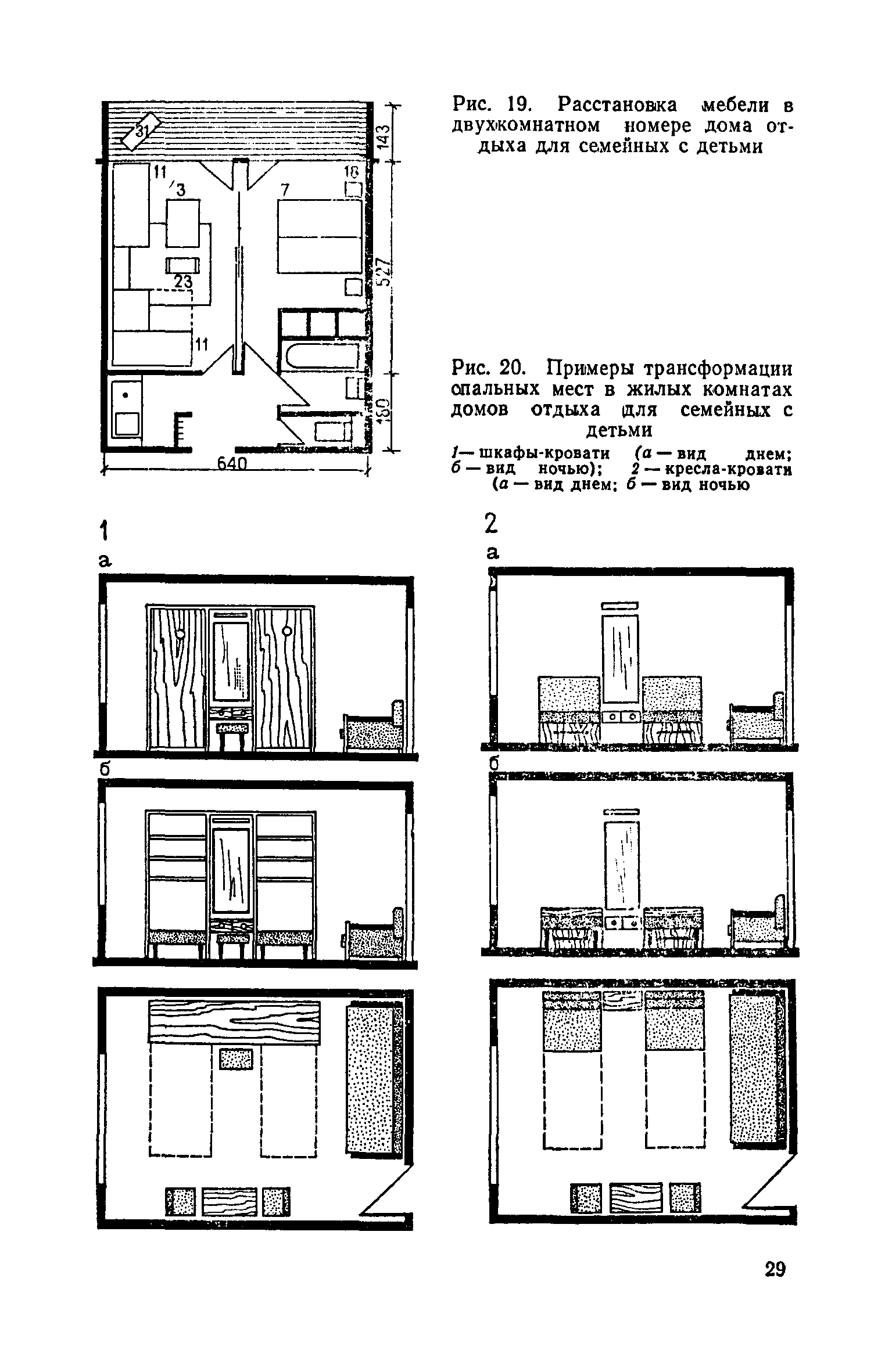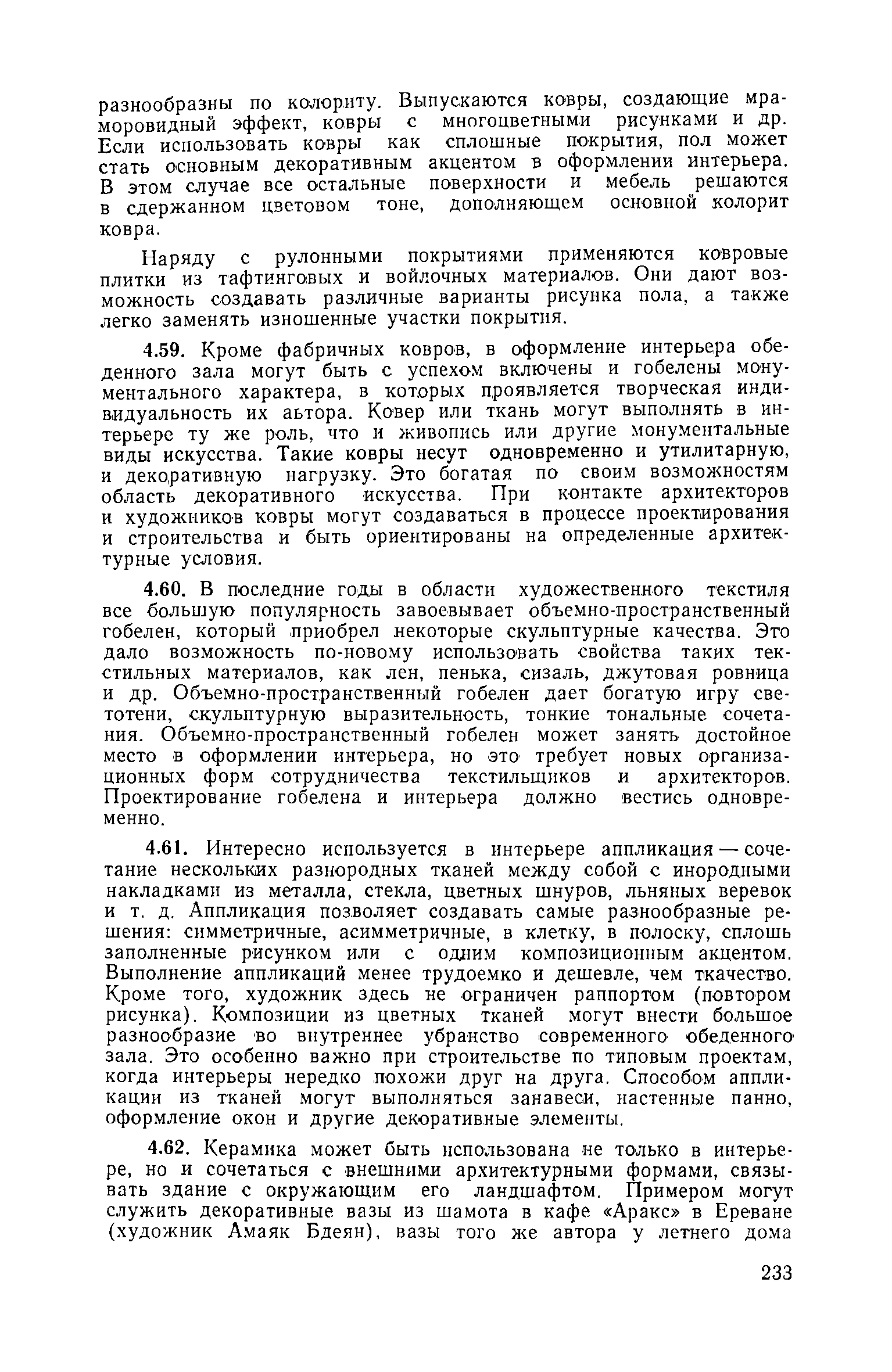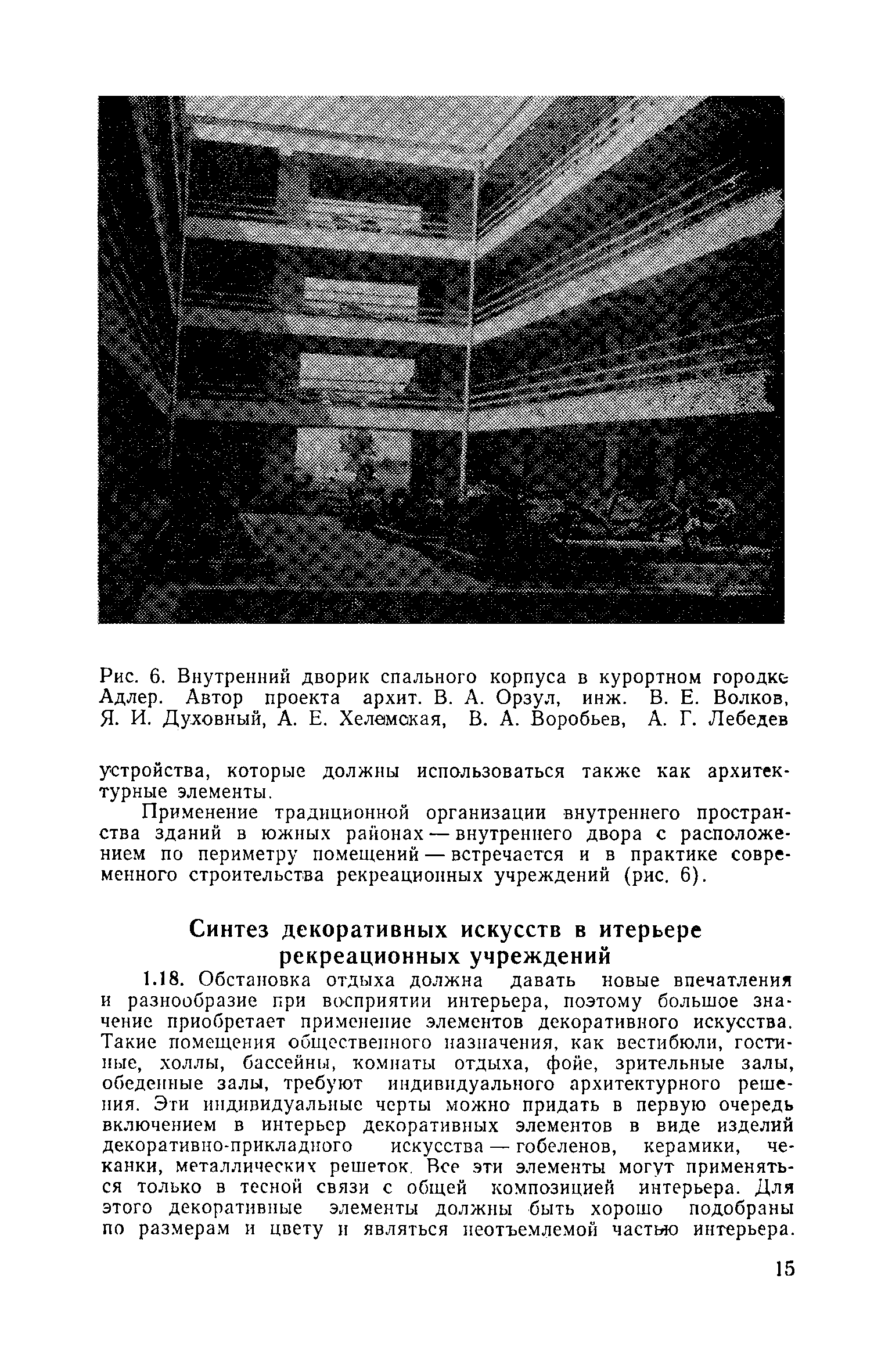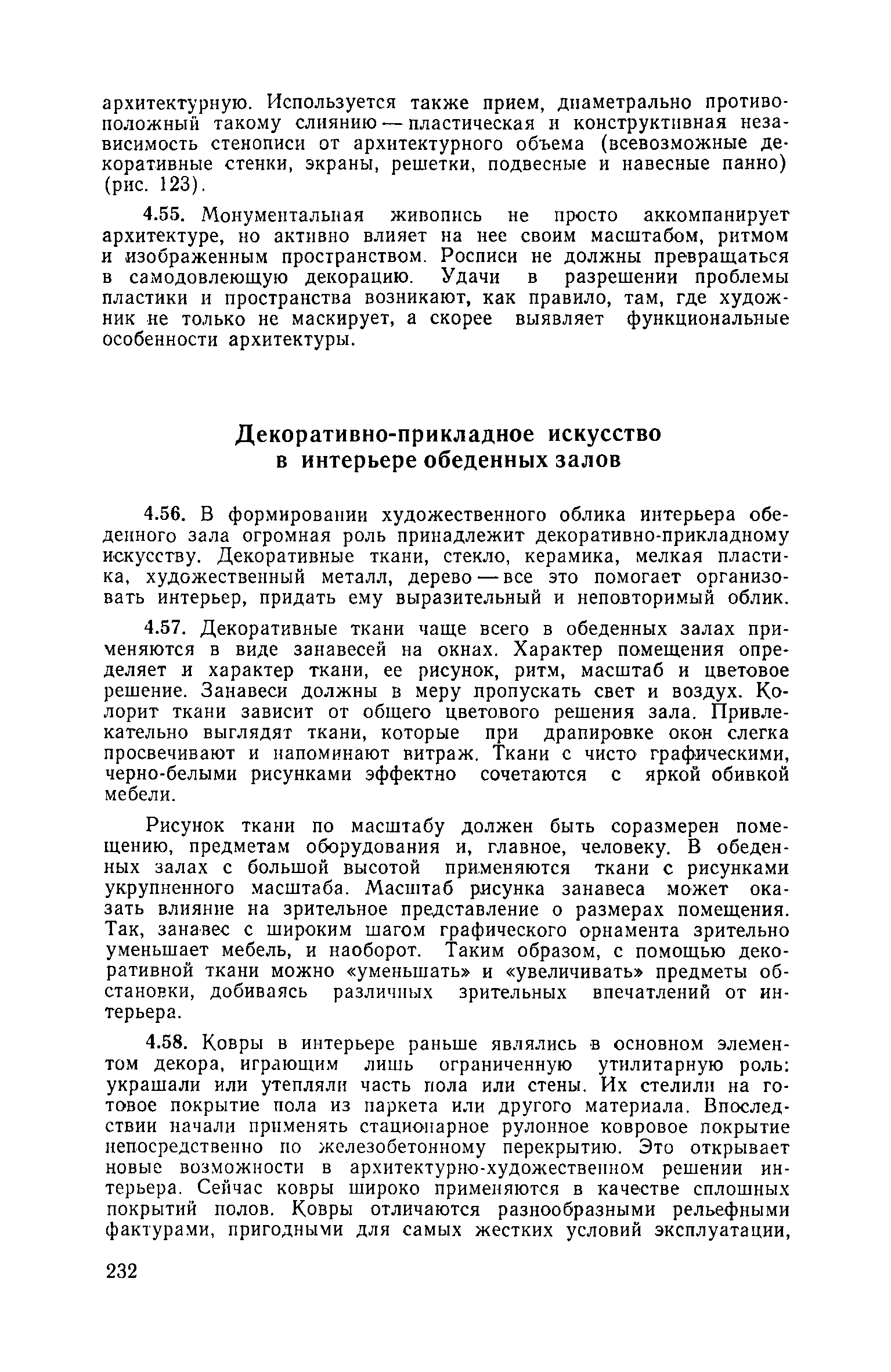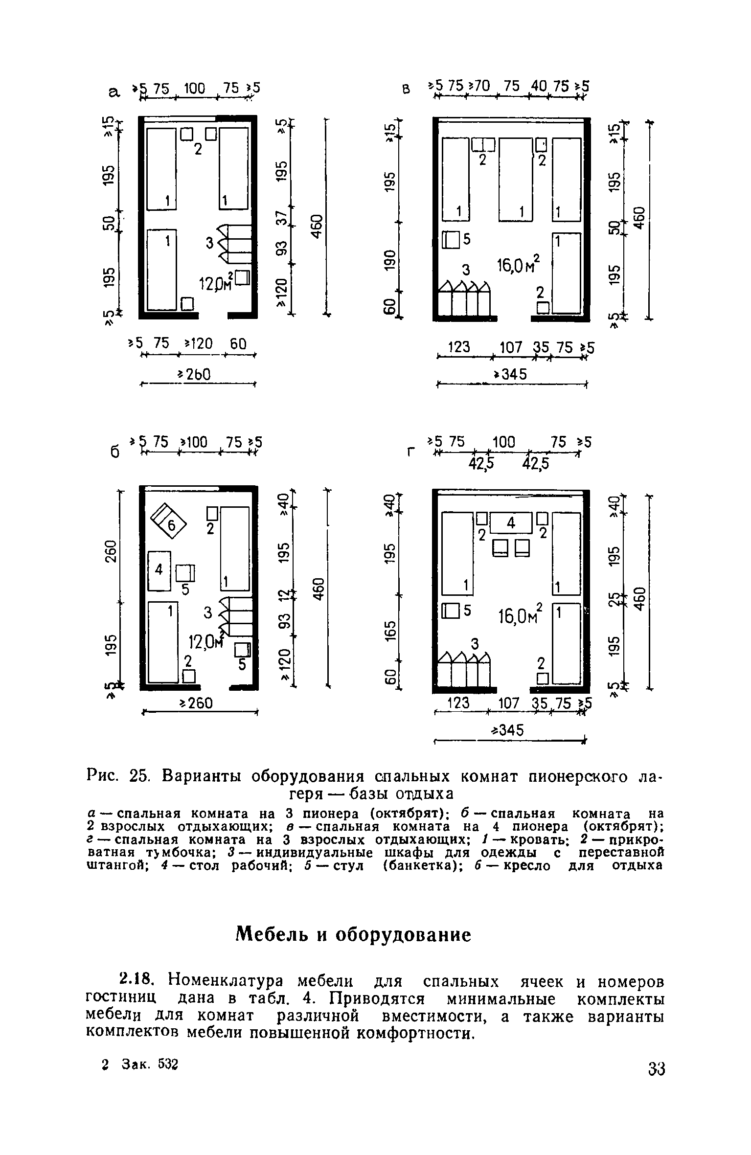 | Оглавление: | 1. Основные принципы формирования интерьера рекреационных учреждений 2. Жилые ячейки Спальные помещения Архитектурно-планировочные особенности спальных помещений Мебель и оборудование Приемы искусственного освещения и осветительные приборы Цветовое решение Отделочные материалы Примеры эталона интерьера спальной комнаты на два человека Санитарные узлы жилых ячеек Планировочные особенности Оборудование 3. Вестибюли, гостиные и холлы Вестибюли спальных корпусов санаториев, домов отдыха и пансионатов Архитектурно-планировочная организация вестибюлей Функциональное зонирование, оборудование и мебель Приемы искусственного освещения Цветовое решение Гостиные и холлы спальных корпусов санаториев, домов отдыха и пансионатов Архитектурно-планировочная организация Функциональное зонирование, оборудование и мебель Приемы искусственного освещения Цветовое решение Вестибюли и комнаты дневного пребывания пионерских лагерей Архитектурно-планировочная организация помещений Приемы искусственного освещения Цветовое решение Декоративно-прикладное изобразительное искусство в помещениях спальной группы пионерских лагерей 4. Обеденные залы Архитектурно-планировочная организация обеденных залов Функциональное зонирование, оборудование в мебель Светоцветовое решение Декоративно-художественное убранство Отделочные материалы 5. Помещения туристско-экскурсионного обслуживания Архитектурно-планировочная организация помещений Мебель и оборудование Приемы искусственного освещения Цветовое решение Отделочные материалы Список литературы |