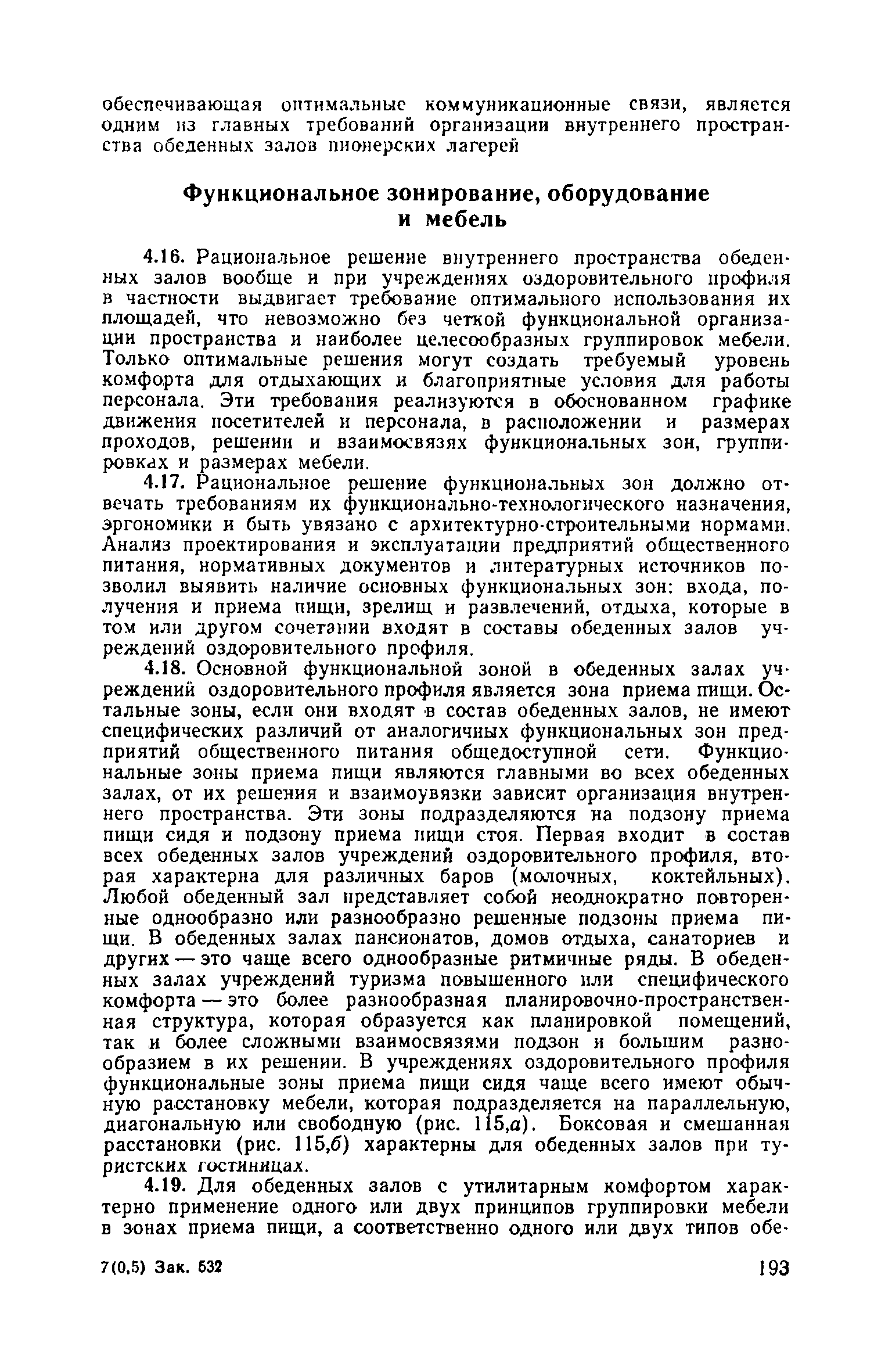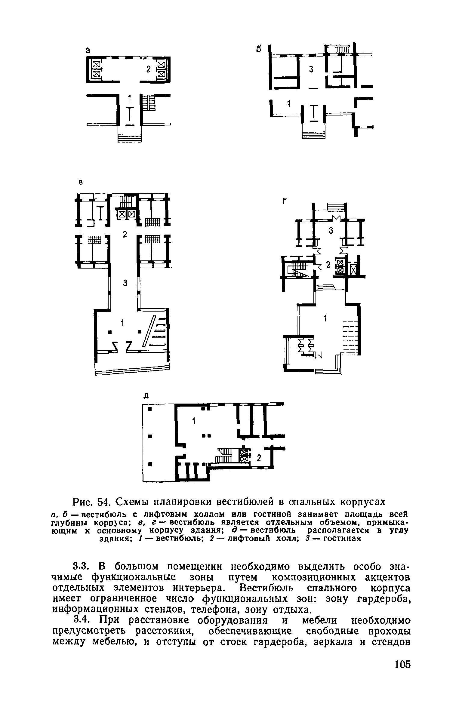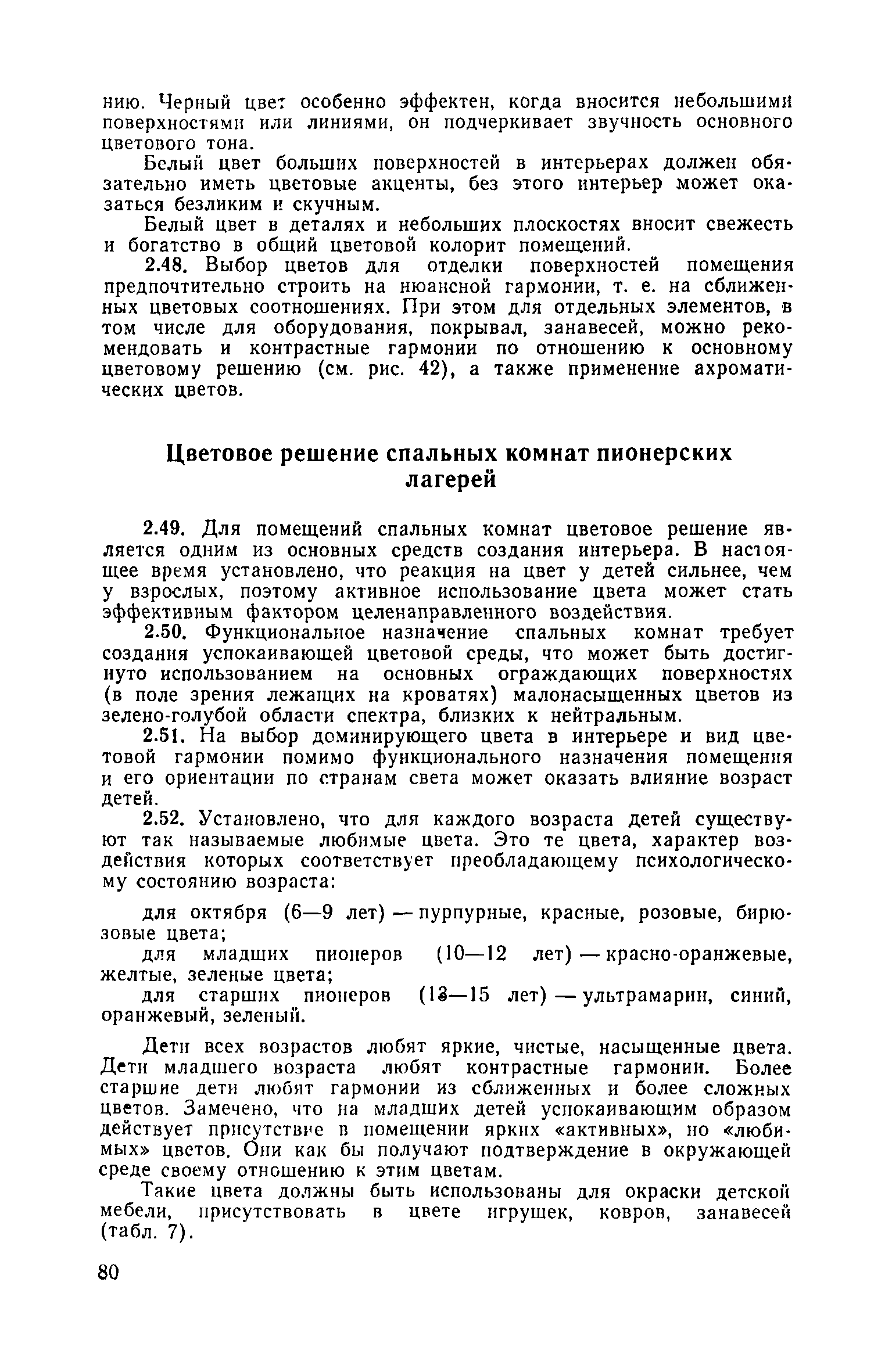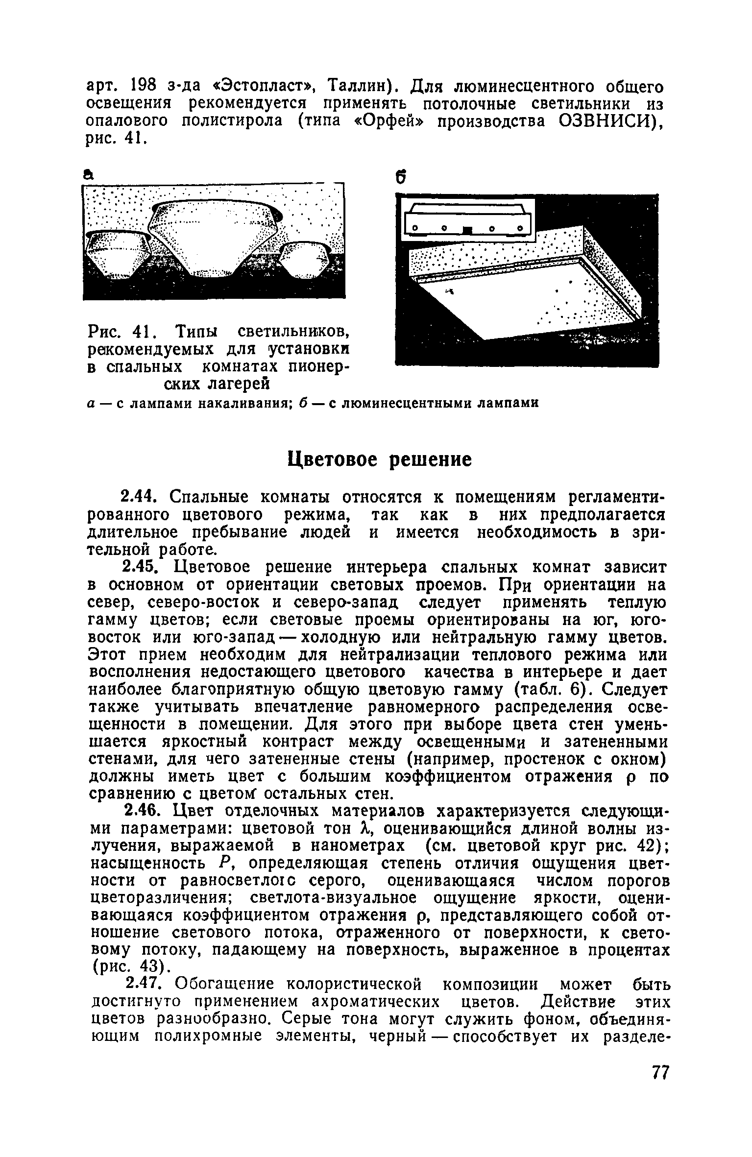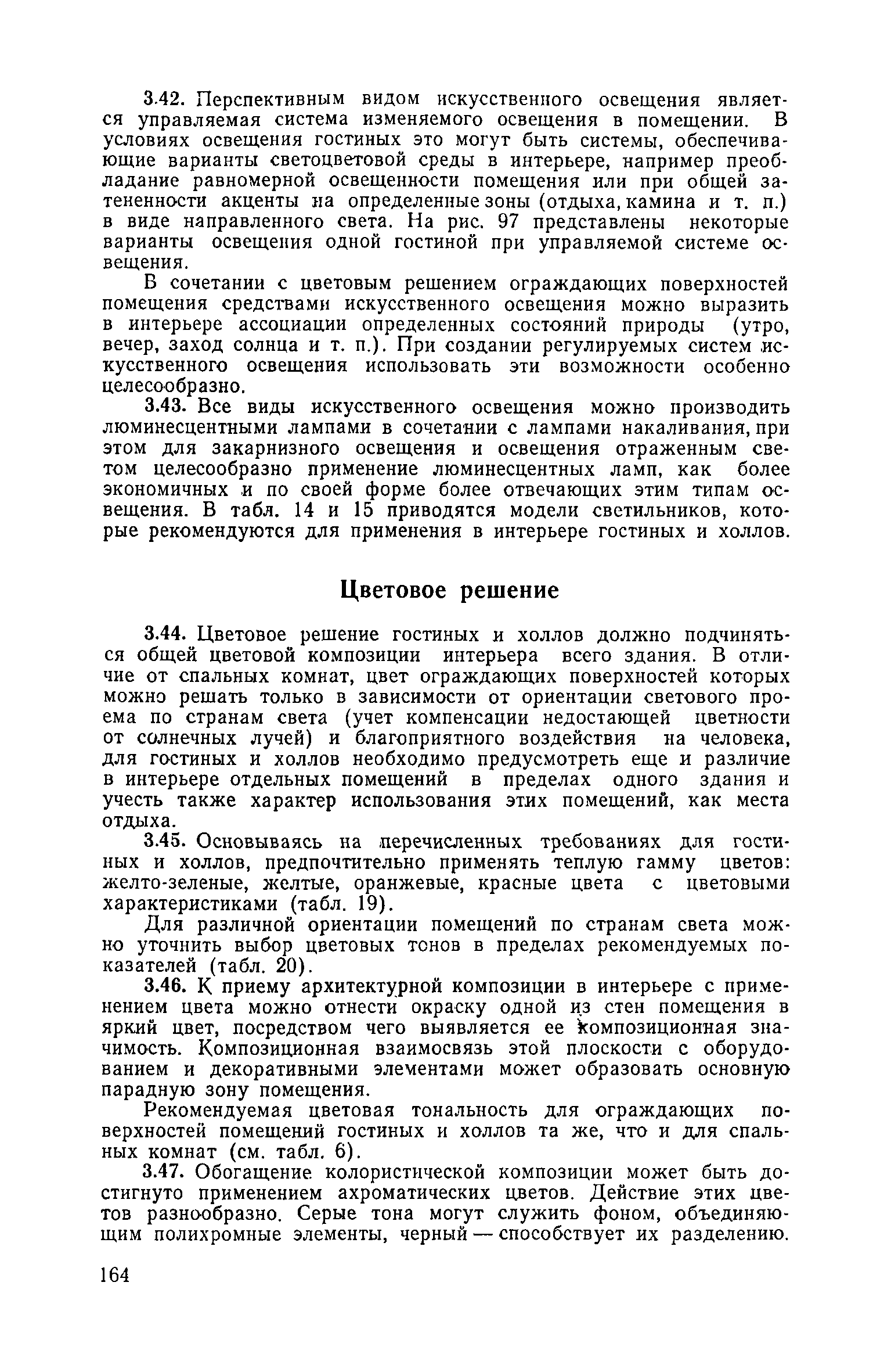 | Оглавление: | 1. Основные принципы формирования интерьера рекреационных учреждений 2. Жилые ячейки Спальные помещения Архитектурно-планировочные особенности спальных помещений Мебель и оборудование Приемы искусственного освещения и осветительные приборы Цветовое решение Отделочные материалы Примеры эталона интерьера спальной комнаты на два человека Санитарные узлы жилых ячеек Планировочные особенности Оборудование 3. Вестибюли, гостиные и холлы Вестибюли спальных корпусов санаториев, домов отдыха и пансионатов Архитектурно-планировочная организация вестибюлей Функциональное зонирование, оборудование и мебель Приемы искусственного освещения Цветовое решение Гостиные и холлы спальных корпусов санаториев, домов отдыха и пансионатов Архитектурно-планировочная организация Функциональное зонирование, оборудование и мебель Приемы искусственного освещения Цветовое решение Вестибюли и комнаты дневного пребывания пионерских лагерей Архитектурно-планировочная организация помещений Приемы искусственного освещения Цветовое решение Декоративно-прикладное изобразительное искусство в помещениях спальной группы пионерских лагерей 4. Обеденные залы Архитектурно-планировочная организация обеденных залов Функциональное зонирование, оборудование в мебель Светоцветовое решение Декоративно-художественное убранство Отделочные материалы 5. Помещения туристско-экскурсионного обслуживания Архитектурно-планировочная организация помещений Мебель и оборудование Приемы искусственного освещения Цветовое решение Отделочные материалы Список литературы |