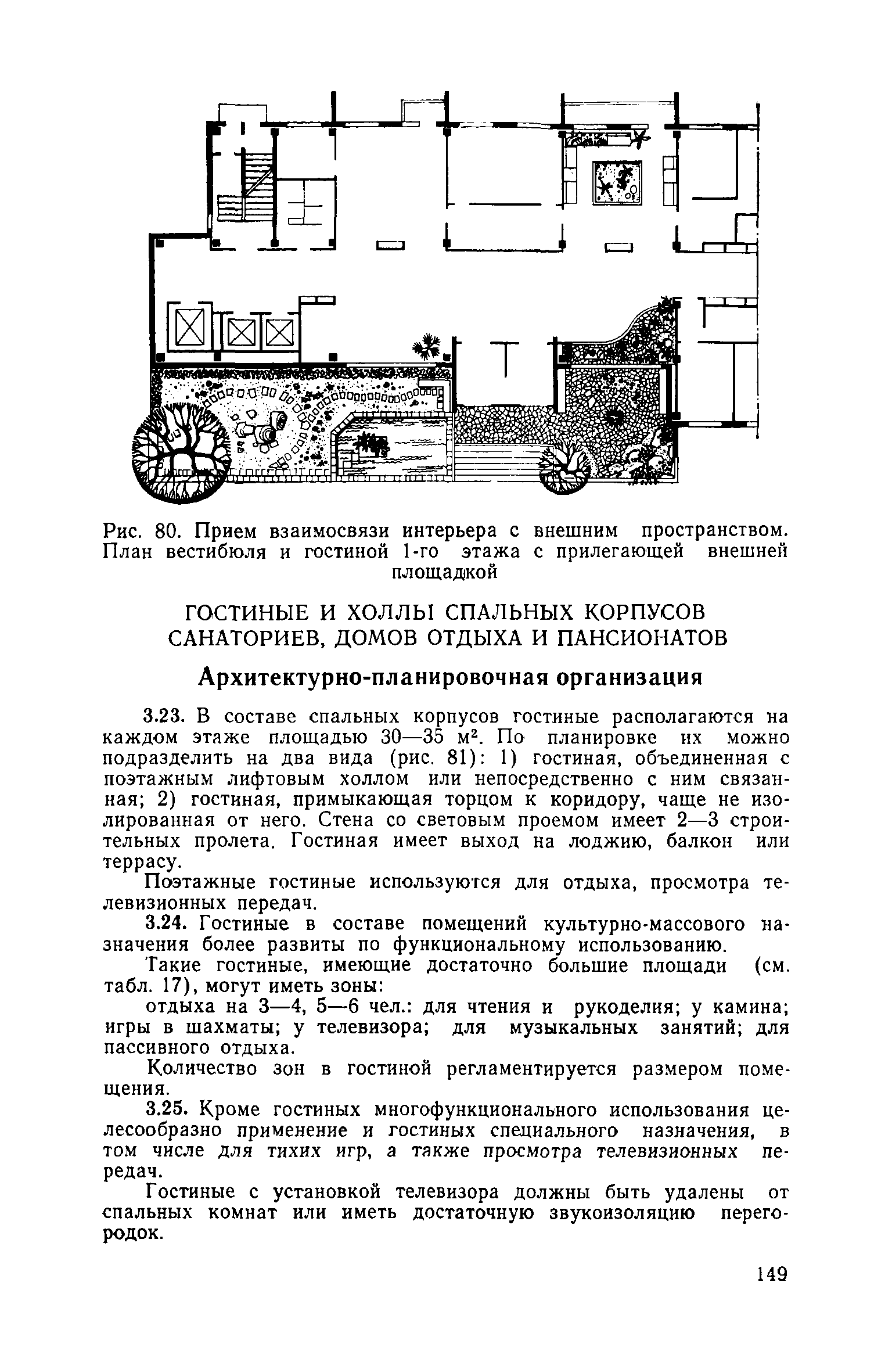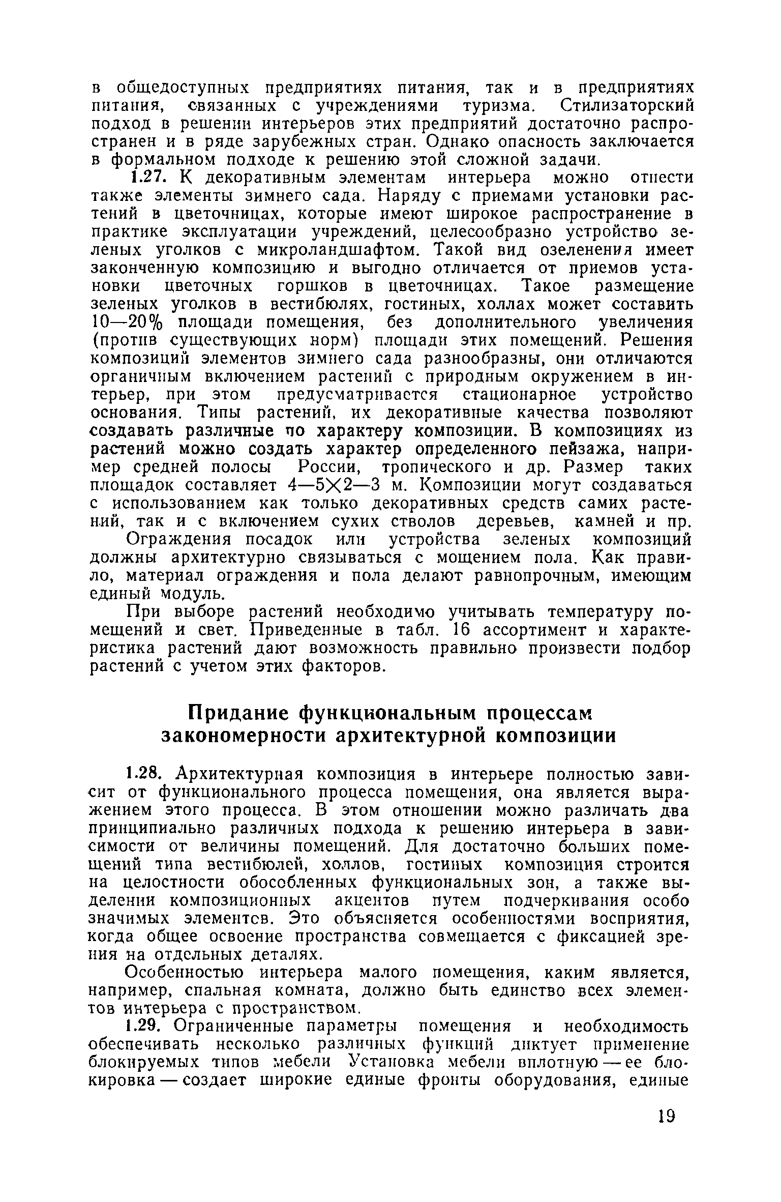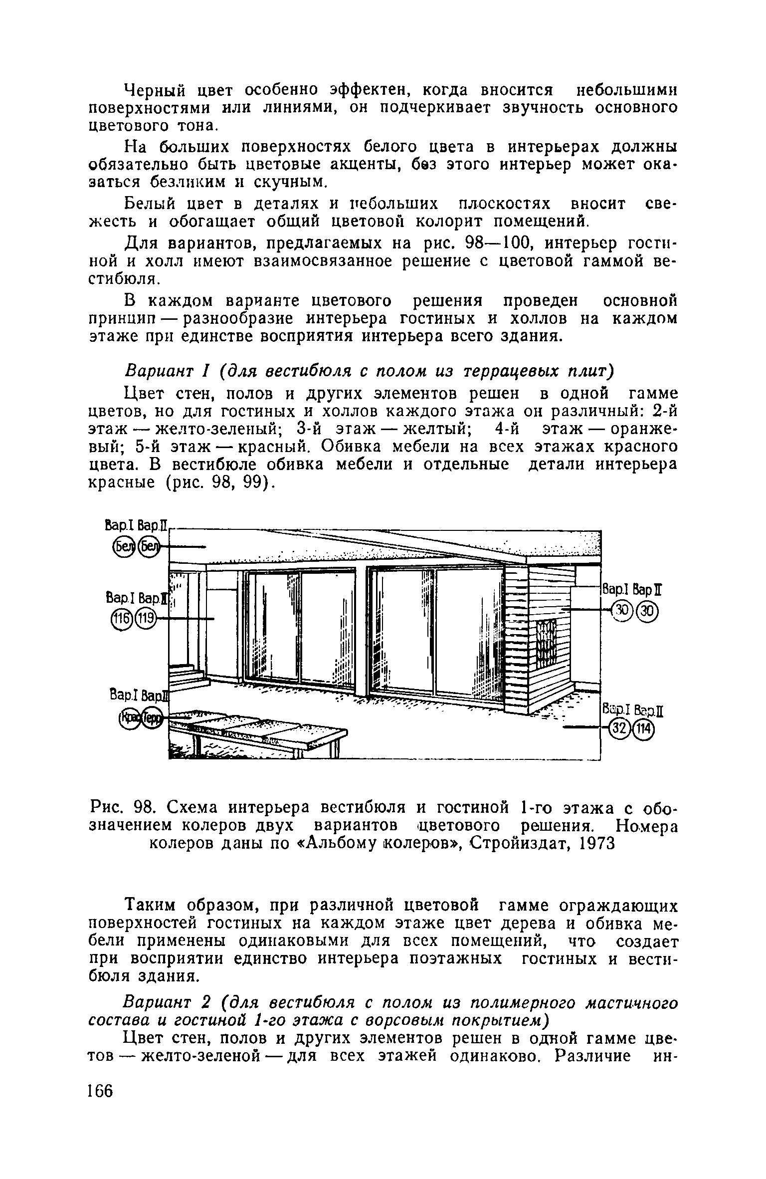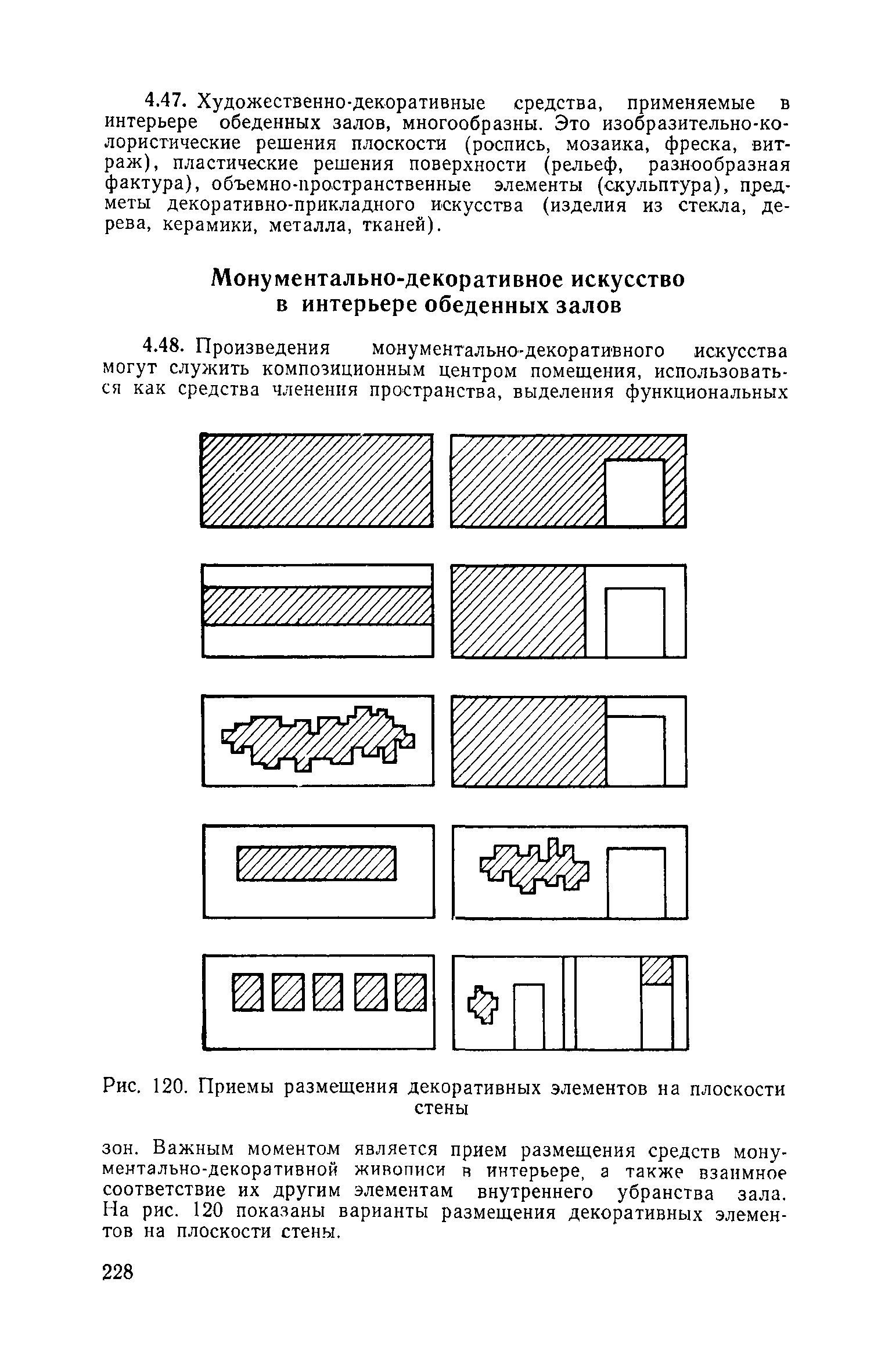 | Оглавление: | 1. Основные принципы формирования интерьера рекреационных учреждений 2. Жилые ячейки Спальные помещения Архитектурно-планировочные особенности спальных помещений Мебель и оборудование Приемы искусственного освещения и осветительные приборы Цветовое решение Отделочные материалы Примеры эталона интерьера спальной комнаты на два человека Санитарные узлы жилых ячеек Планировочные особенности Оборудование 3. Вестибюли, гостиные и холлы Вестибюли спальных корпусов санаториев, домов отдыха и пансионатов Архитектурно-планировочная организация вестибюлей Функциональное зонирование, оборудование и мебель Приемы искусственного освещения Цветовое решение Гостиные и холлы спальных корпусов санаториев, домов отдыха и пансионатов Архитектурно-планировочная организация Функциональное зонирование, оборудование и мебель Приемы искусственного освещения Цветовое решение Вестибюли и комнаты дневного пребывания пионерских лагерей Архитектурно-планировочная организация помещений Приемы искусственного освещения Цветовое решение Декоративно-прикладное изобразительное искусство в помещениях спальной группы пионерских лагерей 4. Обеденные залы Архитектурно-планировочная организация обеденных залов Функциональное зонирование, оборудование в мебель Светоцветовое решение Декоративно-художественное убранство Отделочные материалы 5. Помещения туристско-экскурсионного обслуживания Архитектурно-планировочная организация помещений Мебель и оборудование Приемы искусственного освещения Цветовое решение Отделочные материалы Список литературы |