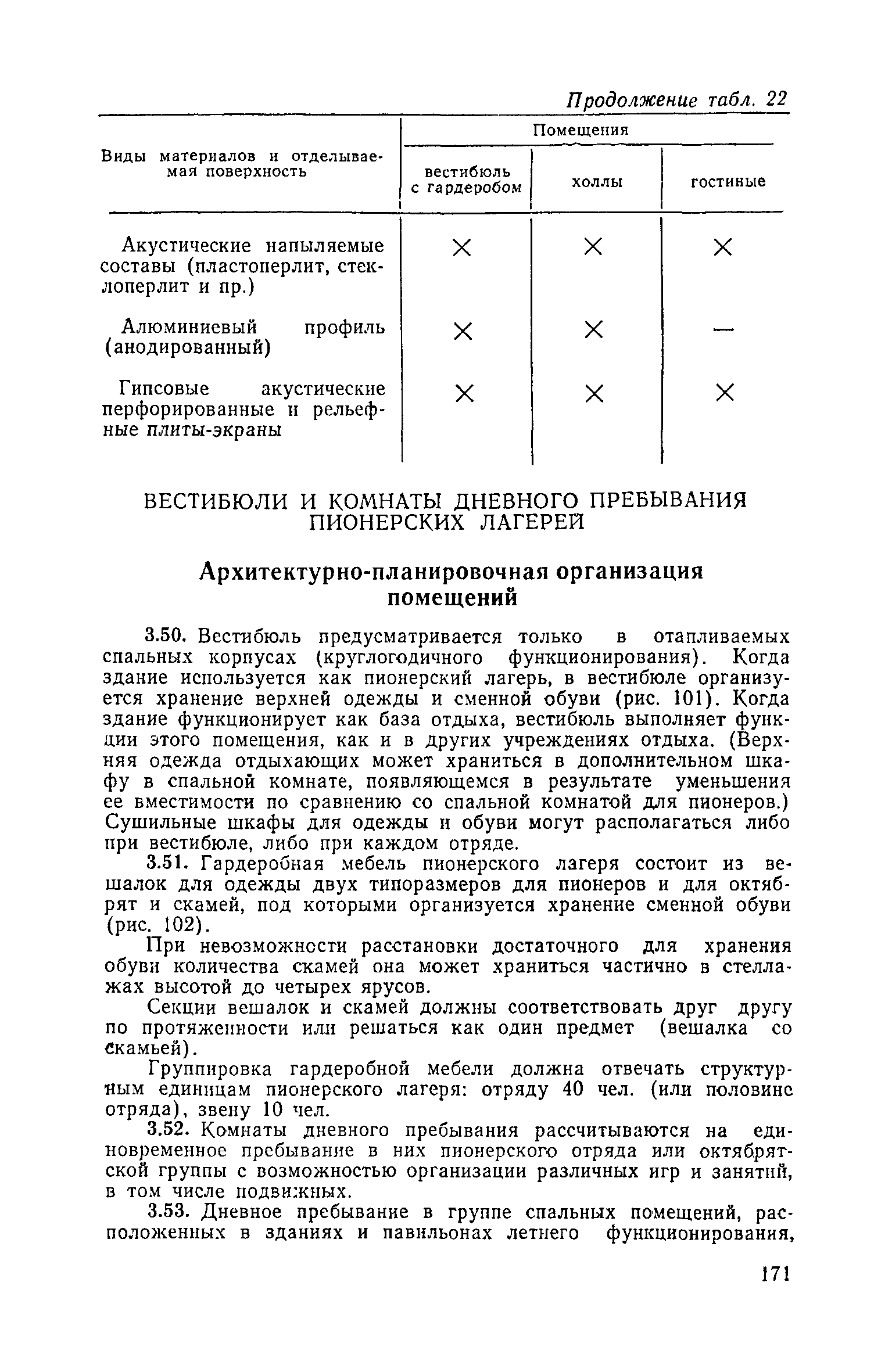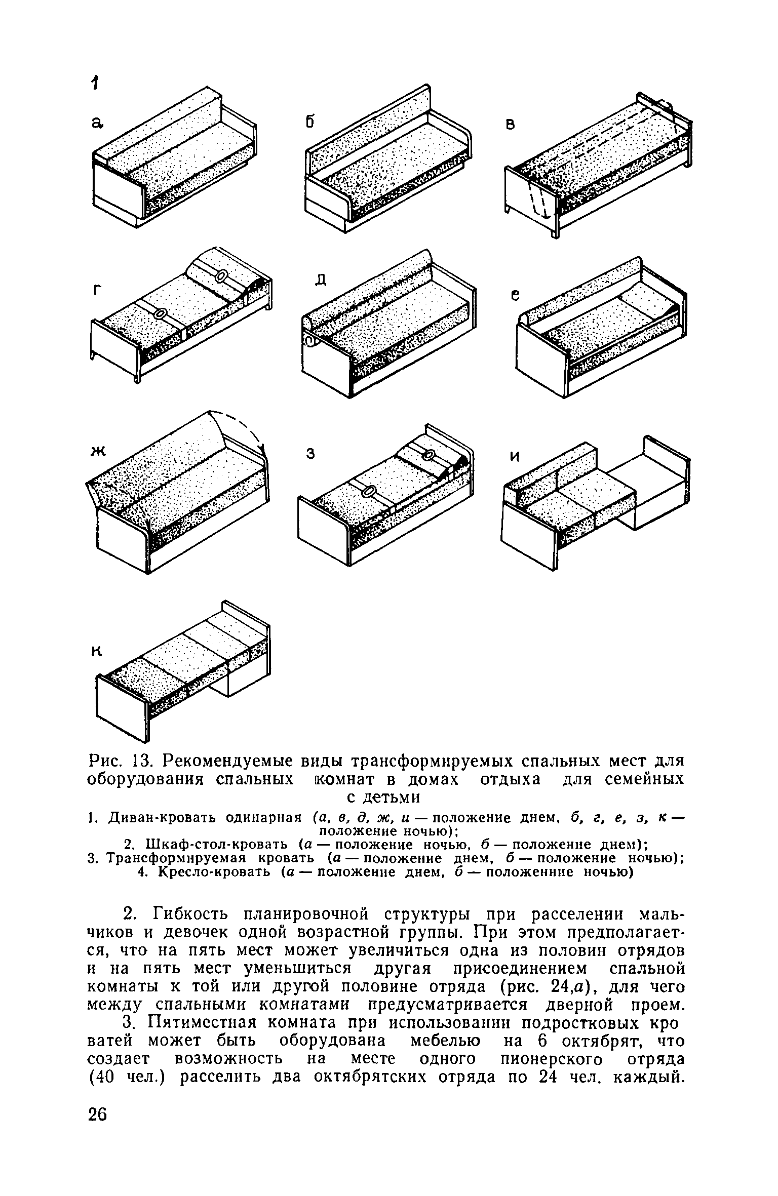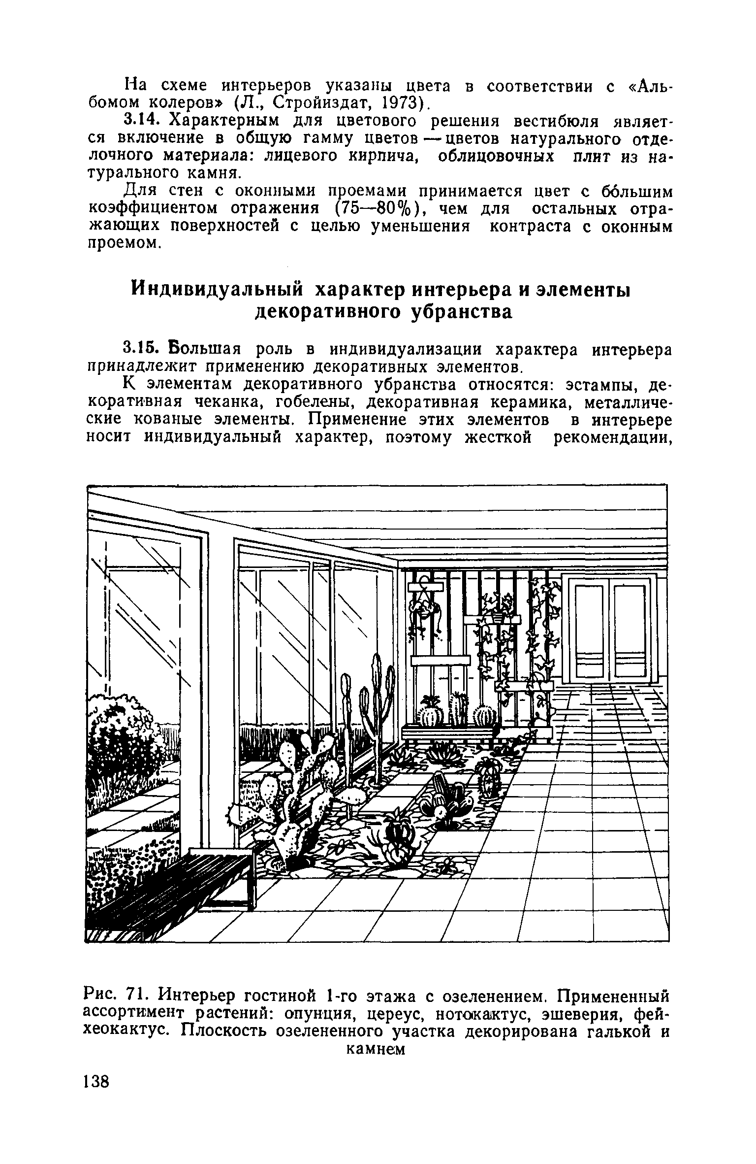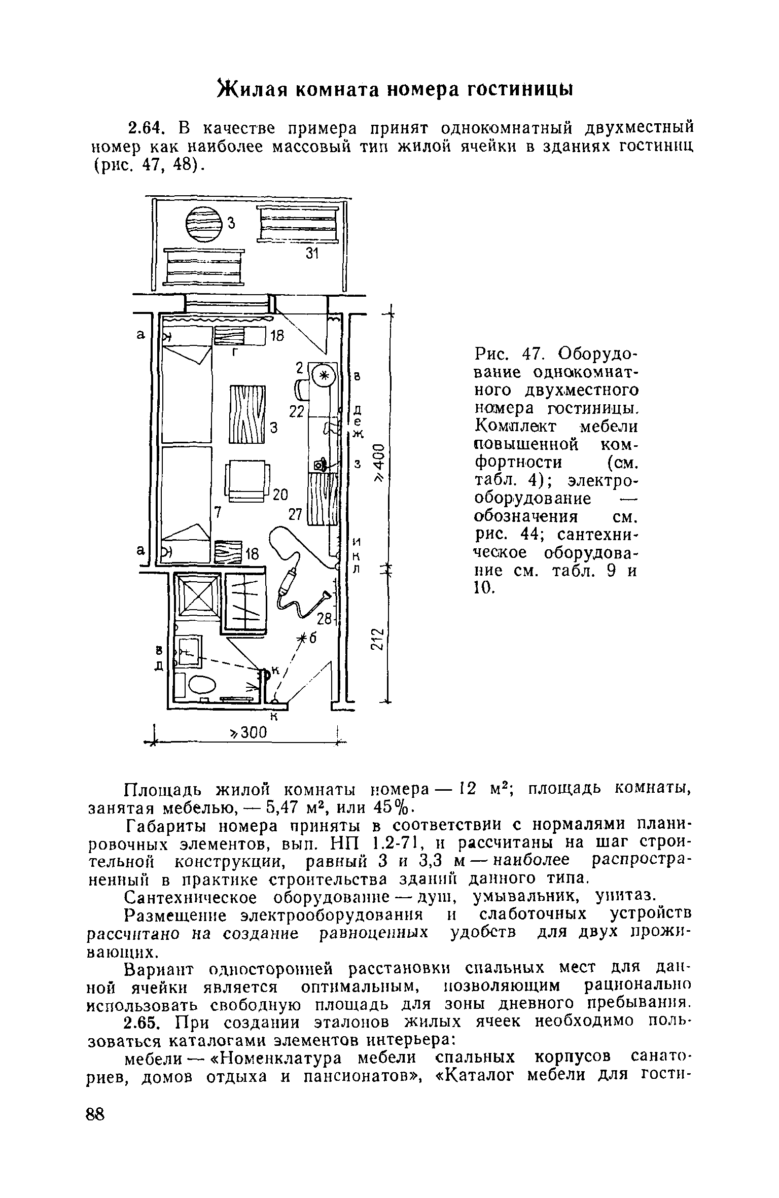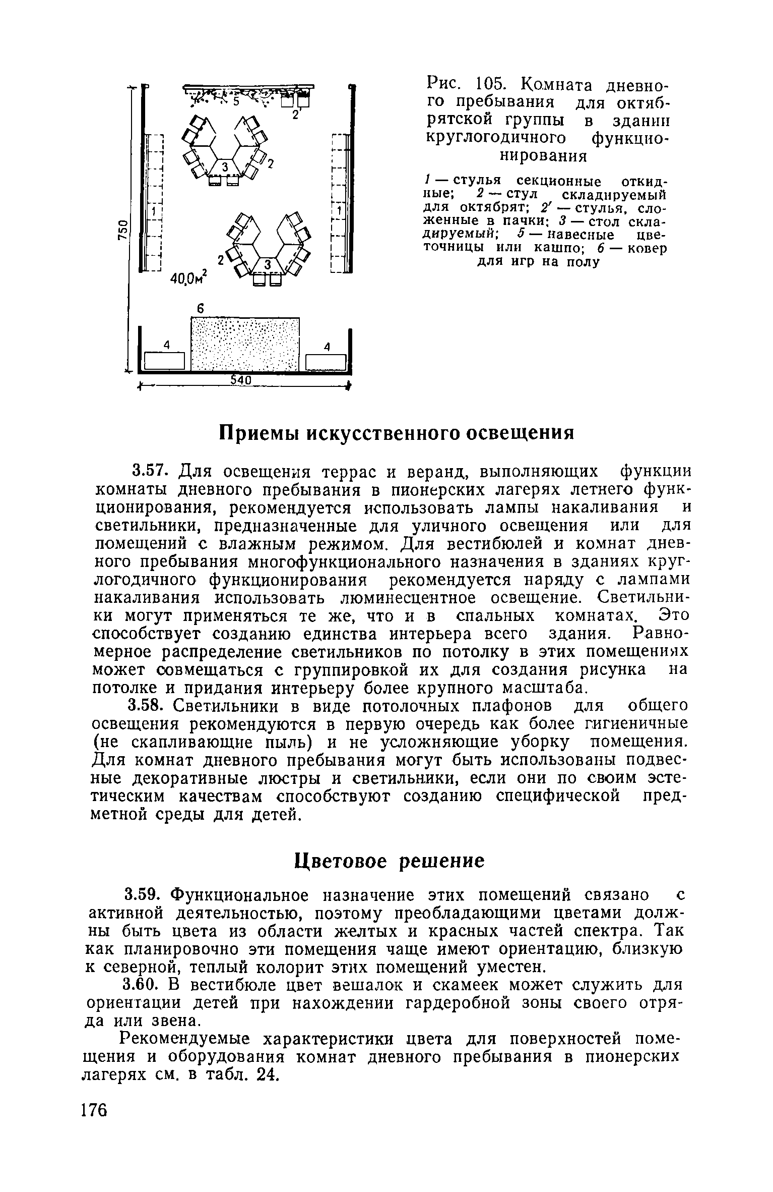 | Оглавление: | 1. Основные принципы формирования интерьера рекреационных учреждений 2. Жилые ячейки Спальные помещения Архитектурно-планировочные особенности спальных помещений Мебель и оборудование Приемы искусственного освещения и осветительные приборы Цветовое решение Отделочные материалы Примеры эталона интерьера спальной комнаты на два человека Санитарные узлы жилых ячеек Планировочные особенности Оборудование 3. Вестибюли, гостиные и холлы Вестибюли спальных корпусов санаториев, домов отдыха и пансионатов Архитектурно-планировочная организация вестибюлей Функциональное зонирование, оборудование и мебель Приемы искусственного освещения Цветовое решение Гостиные и холлы спальных корпусов санаториев, домов отдыха и пансионатов Архитектурно-планировочная организация Функциональное зонирование, оборудование и мебель Приемы искусственного освещения Цветовое решение Вестибюли и комнаты дневного пребывания пионерских лагерей Архитектурно-планировочная организация помещений Приемы искусственного освещения Цветовое решение Декоративно-прикладное изобразительное искусство в помещениях спальной группы пионерских лагерей 4. Обеденные залы Архитектурно-планировочная организация обеденных залов Функциональное зонирование, оборудование в мебель Светоцветовое решение Декоративно-художественное убранство Отделочные материалы 5. Помещения туристско-экскурсионного обслуживания Архитектурно-планировочная организация помещений Мебель и оборудование Приемы искусственного освещения Цветовое решение Отделочные материалы Список литературы |