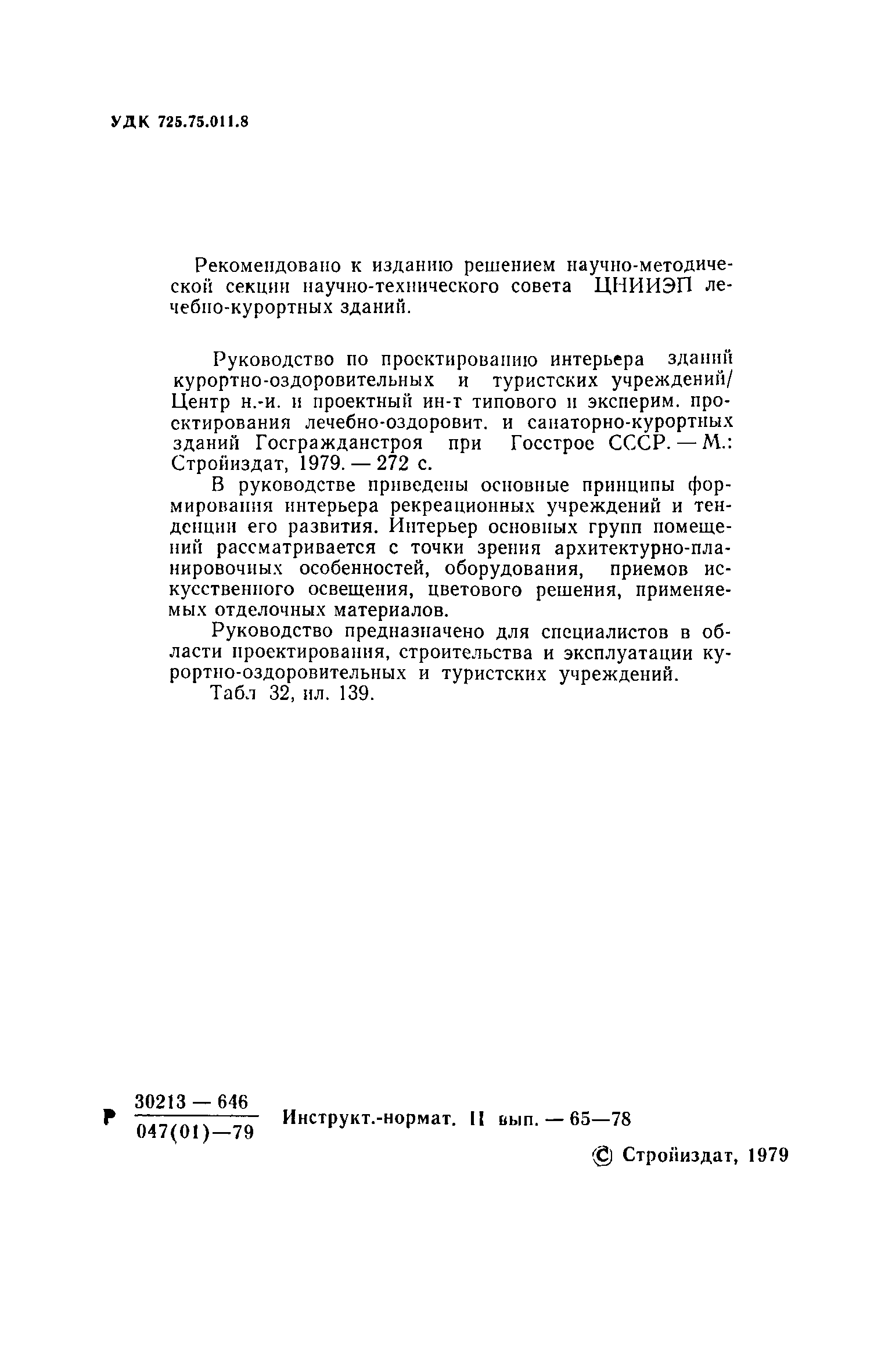 | Название рус.: | Руководство по проектированию интерьера зданий курортно-оздоровительных и туристских учреждений |
