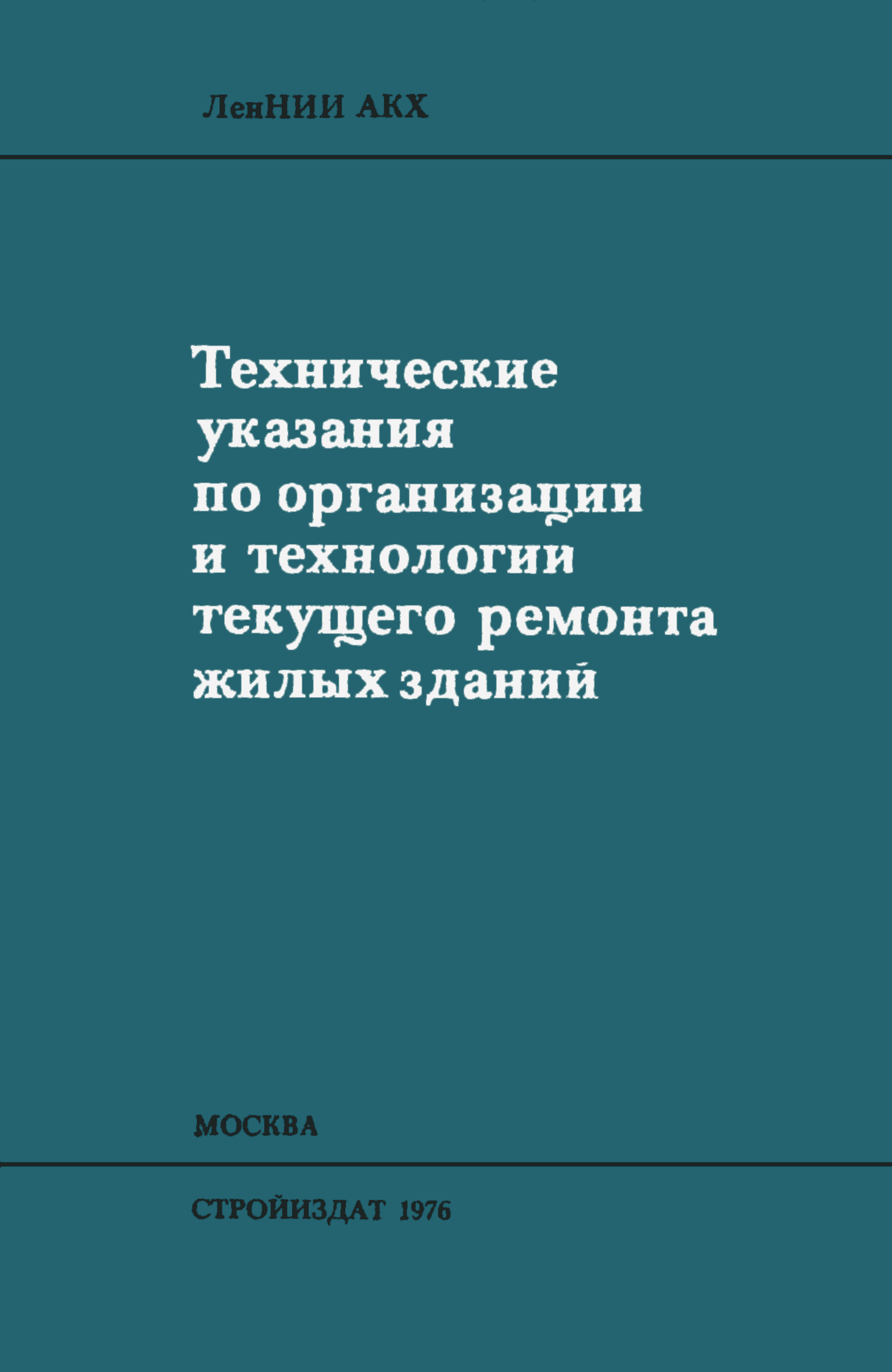 | Название рус.: | Технические указания по организации и технологии текущего ремонта жилых зданий |