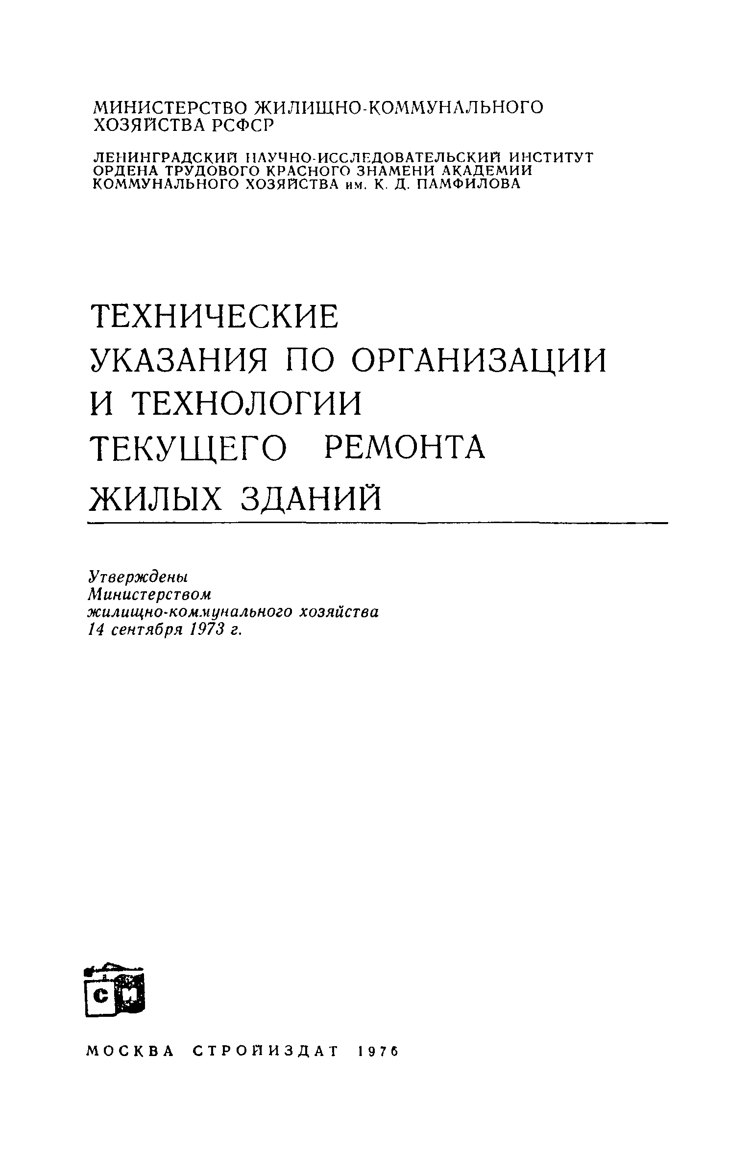 | Утверждён: | 14.09.1973 Министерство жилищно-коммунального хозяйства РСФСР