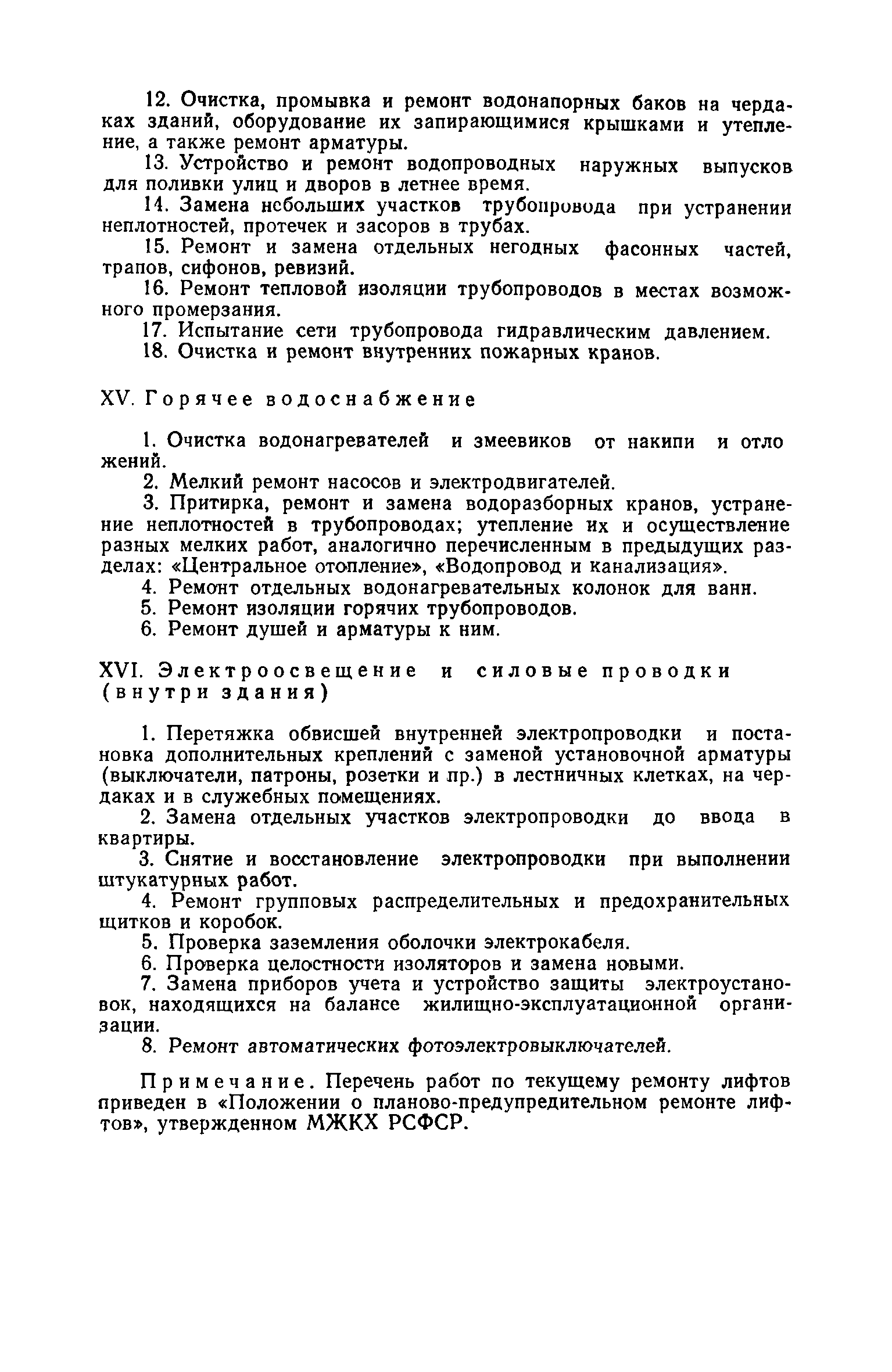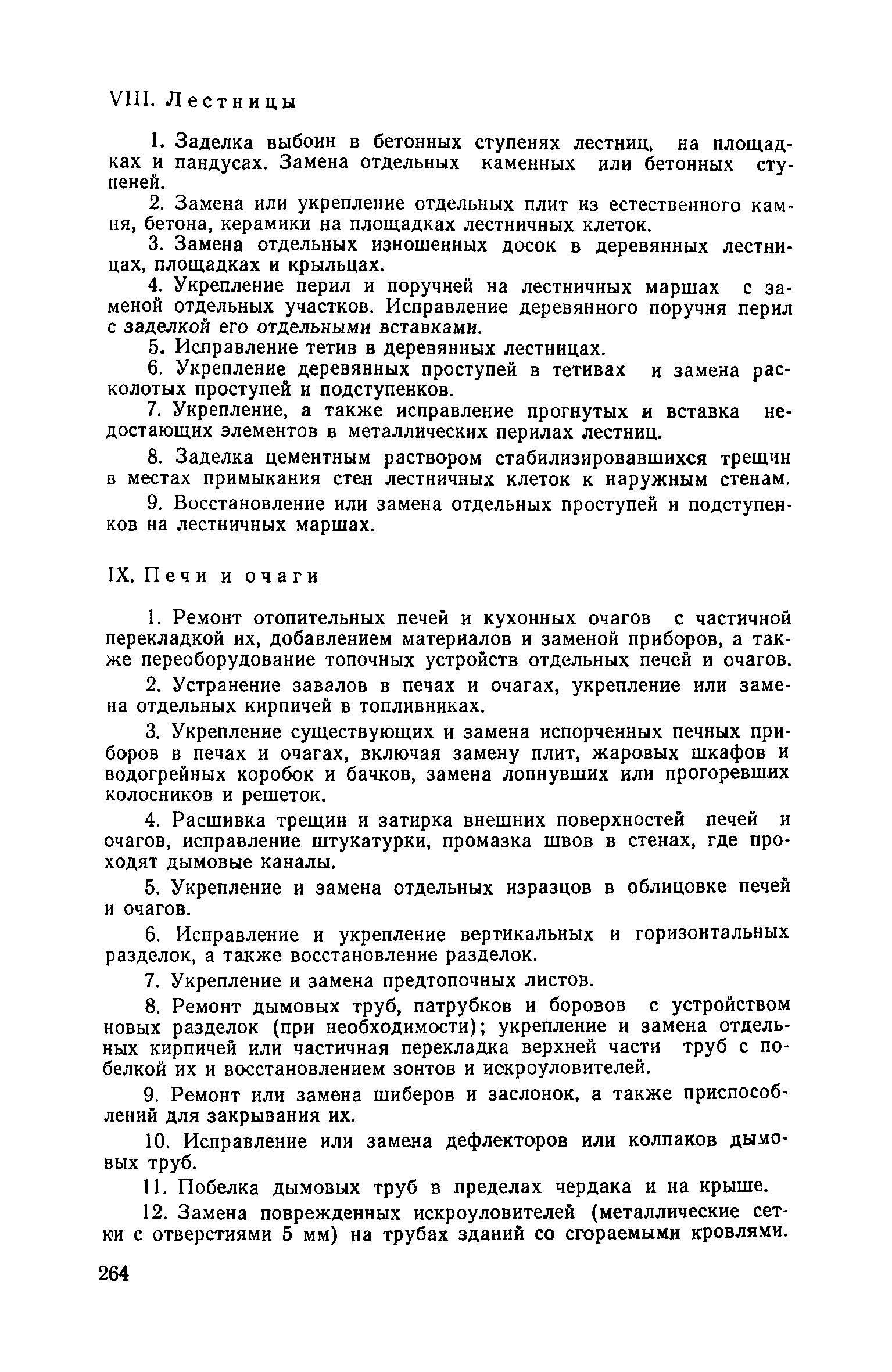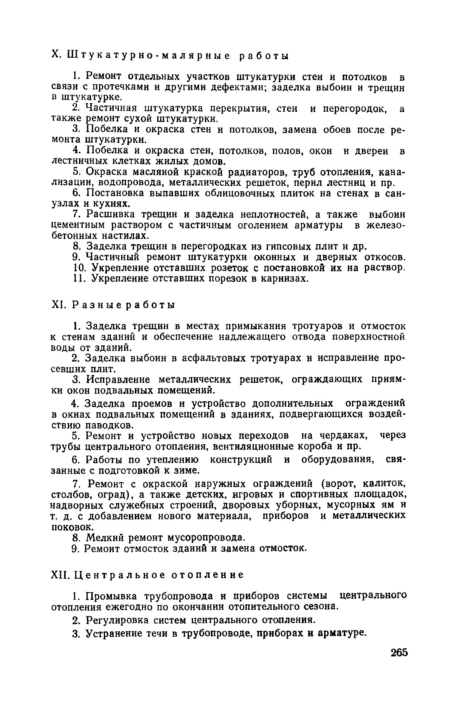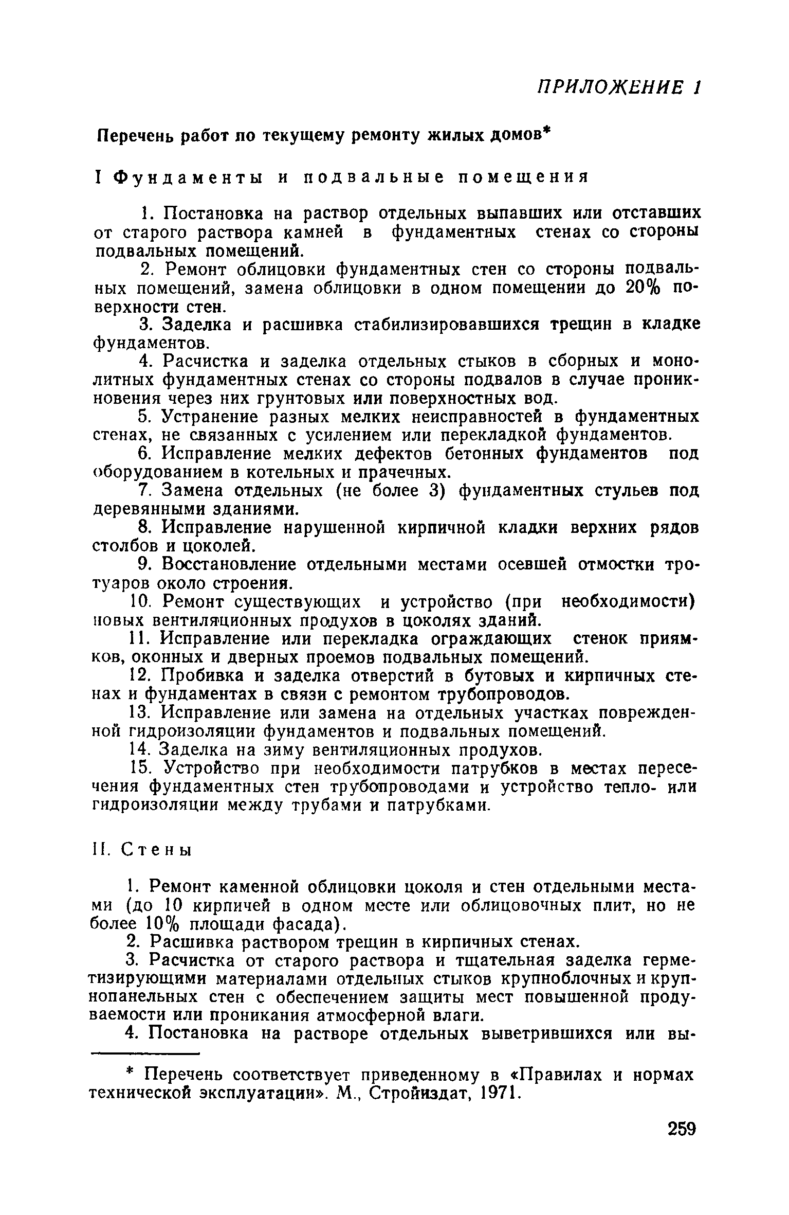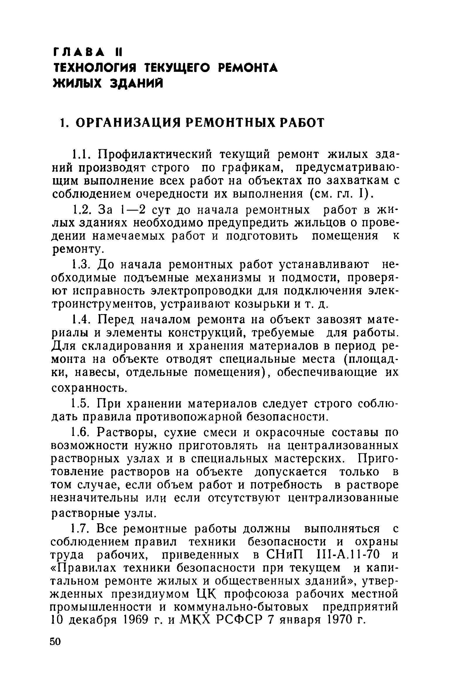 | Оглавление: | Предисловие Глава 1. Организация текущего ремонта жилых зданий 1. Планово-предупредительный текущий ремонт 2. Планирование текущего ремонта 3. Организация профилактического текущего ремонта 4. Учет выполнения текущего ремонта Глава II. Технология текущего ремонта жилых зданий 1. Организация ремонтных работ 2. Ремонт штукатурки и облицовки внутри помещений 3. Малярные и обойные работы 4. Ремонт полов 5. Ремонт перегородок 6. Ремонт лестниц 7. Ремонт стен 8. Ремонт крыш и кровель 9. Ремонт и очистка от загрязнений фасадов зданий 10. Ремонт оконных и дверных заполнений в каменных стенах 11. Остекление оконных переплетов и дверных полотен 12. Ремонт печей и дымовых труб 13. Антисептирование органических материалов при текущем ремонте жилых зданий 14. Ремонт санитарно-технических устройств Глава III. Организация мастерских и баз проката средств механизации 1. Рекомендации по улучшению работы мастерских текущего ремонта жилых домов 2. Рекомендации по организации баз проката и комплектованию их машинами и оборудованием Приложения |