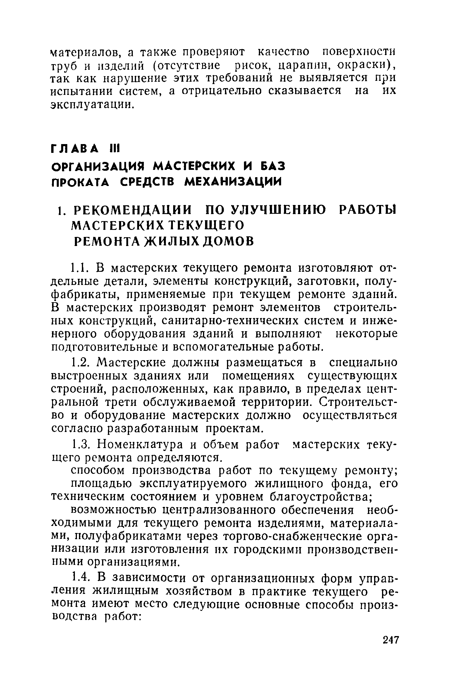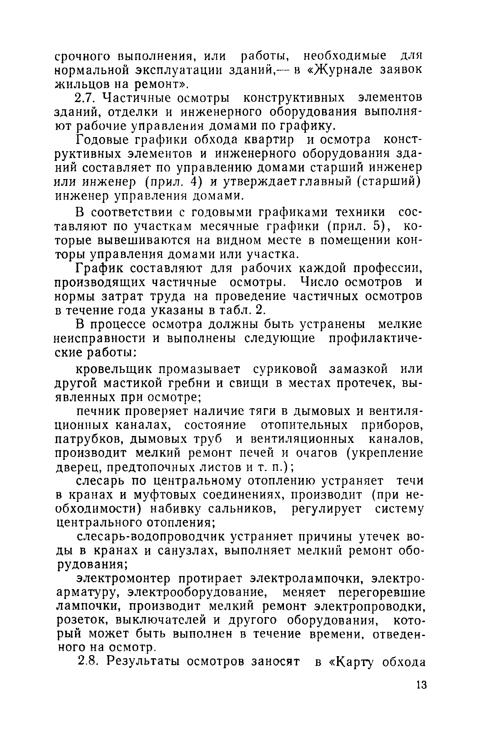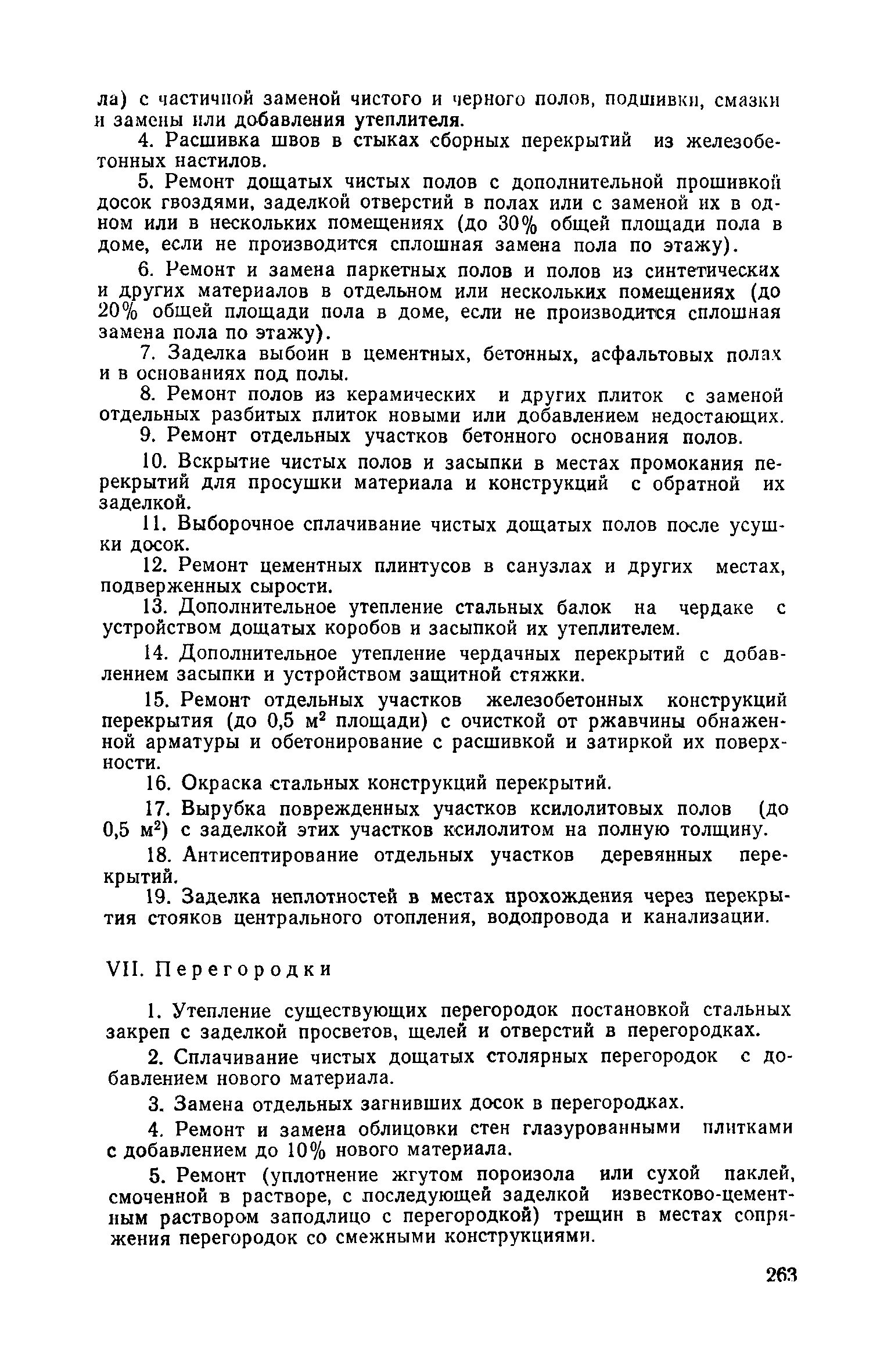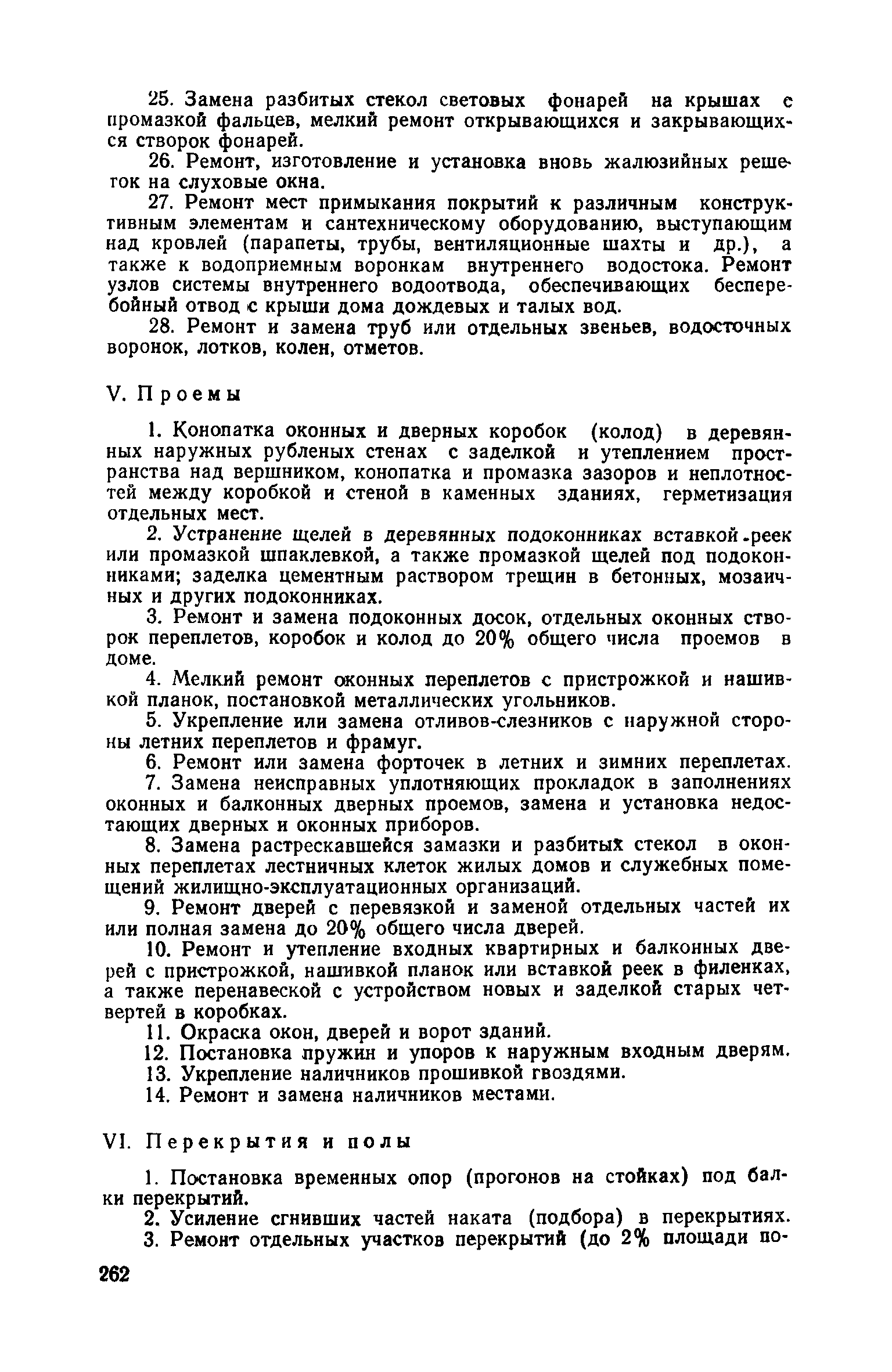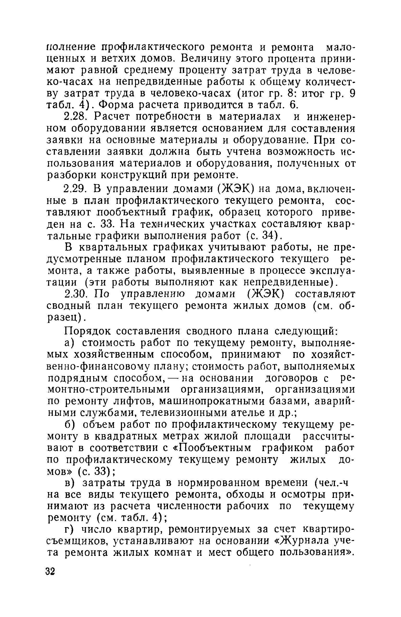 | Оглавление: | Предисловие Глава 1. Организация текущего ремонта жилых зданий 1. Планово-предупредительный текущий ремонт 2. Планирование текущего ремонта 3. Организация профилактического текущего ремонта 4. Учет выполнения текущего ремонта Глава II. Технология текущего ремонта жилых зданий 1. Организация ремонтных работ 2. Ремонт штукатурки и облицовки внутри помещений 3. Малярные и обойные работы 4. Ремонт полов 5. Ремонт перегородок 6. Ремонт лестниц 7. Ремонт стен 8. Ремонт крыш и кровель 9. Ремонт и очистка от загрязнений фасадов зданий 10. Ремонт оконных и дверных заполнений в каменных стенах 11. Остекление оконных переплетов и дверных полотен 12. Ремонт печей и дымовых труб 13. Антисептирование органических материалов при текущем ремонте жилых зданий 14. Ремонт санитарно-технических устройств Глава III. Организация мастерских и баз проката средств механизации 1. Рекомендации по улучшению работы мастерских текущего ремонта жилых домов 2. Рекомендации по организации баз проката и комплектованию их машинами и оборудованием Приложения |