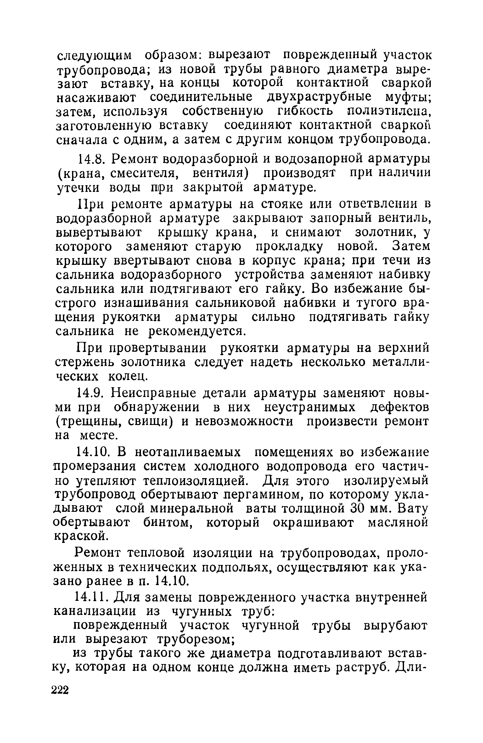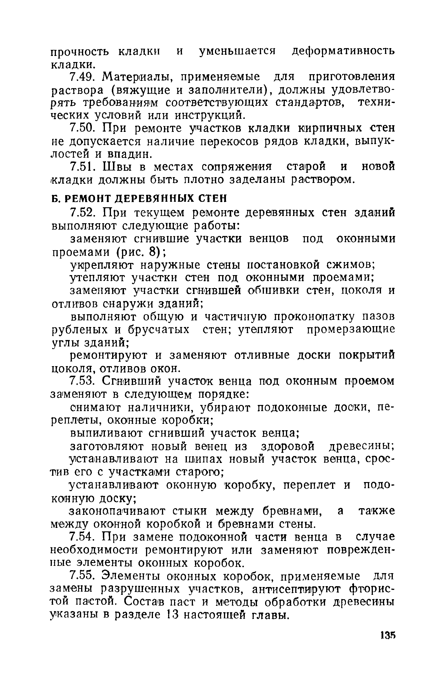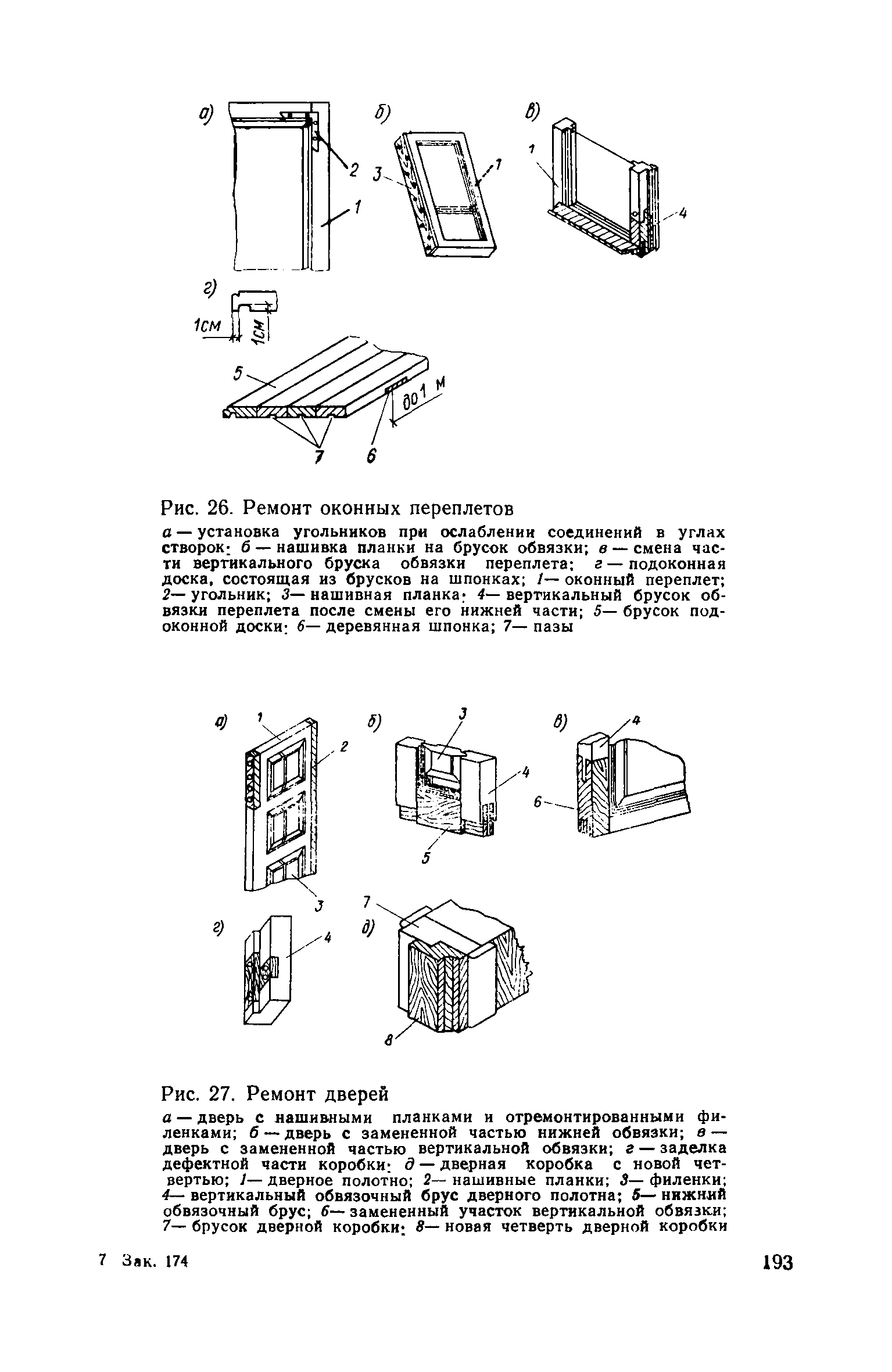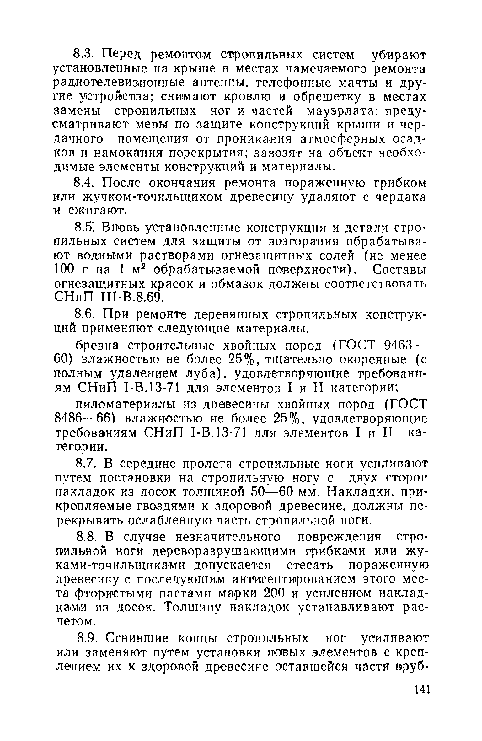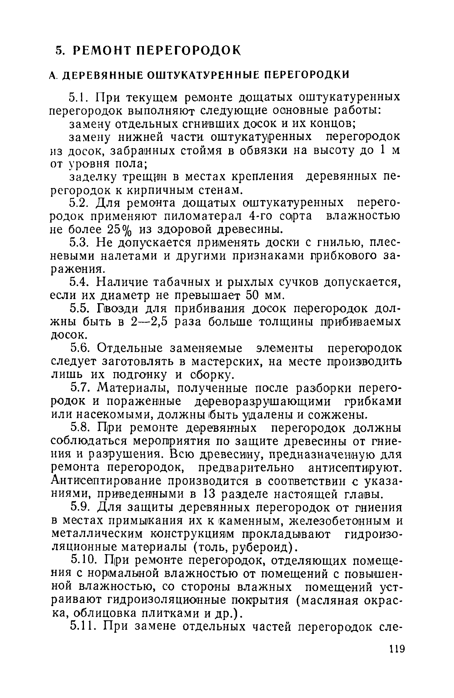 | Оглавление: | Предисловие Глава 1. Организация текущего ремонта жилых зданий 1. Планово-предупредительный текущий ремонт 2. Планирование текущего ремонта 3. Организация профилактического текущего ремонта 4. Учет выполнения текущего ремонта Глава II. Технология текущего ремонта жилых зданий 1. Организация ремонтных работ 2. Ремонт штукатурки и облицовки внутри помещений 3. Малярные и обойные работы 4. Ремонт полов 5. Ремонт перегородок 6. Ремонт лестниц 7. Ремонт стен 8. Ремонт крыш и кровель 9. Ремонт и очистка от загрязнений фасадов зданий 10. Ремонт оконных и дверных заполнений в каменных стенах 11. Остекление оконных переплетов и дверных полотен 12. Ремонт печей и дымовых труб 13. Антисептирование органических материалов при текущем ремонте жилых зданий 14. Ремонт санитарно-технических устройств Глава III. Организация мастерских и баз проката средств механизации 1. Рекомендации по улучшению работы мастерских текущего ремонта жилых домов 2. Рекомендации по организации баз проката и комплектованию их машинами и оборудованием Приложения |