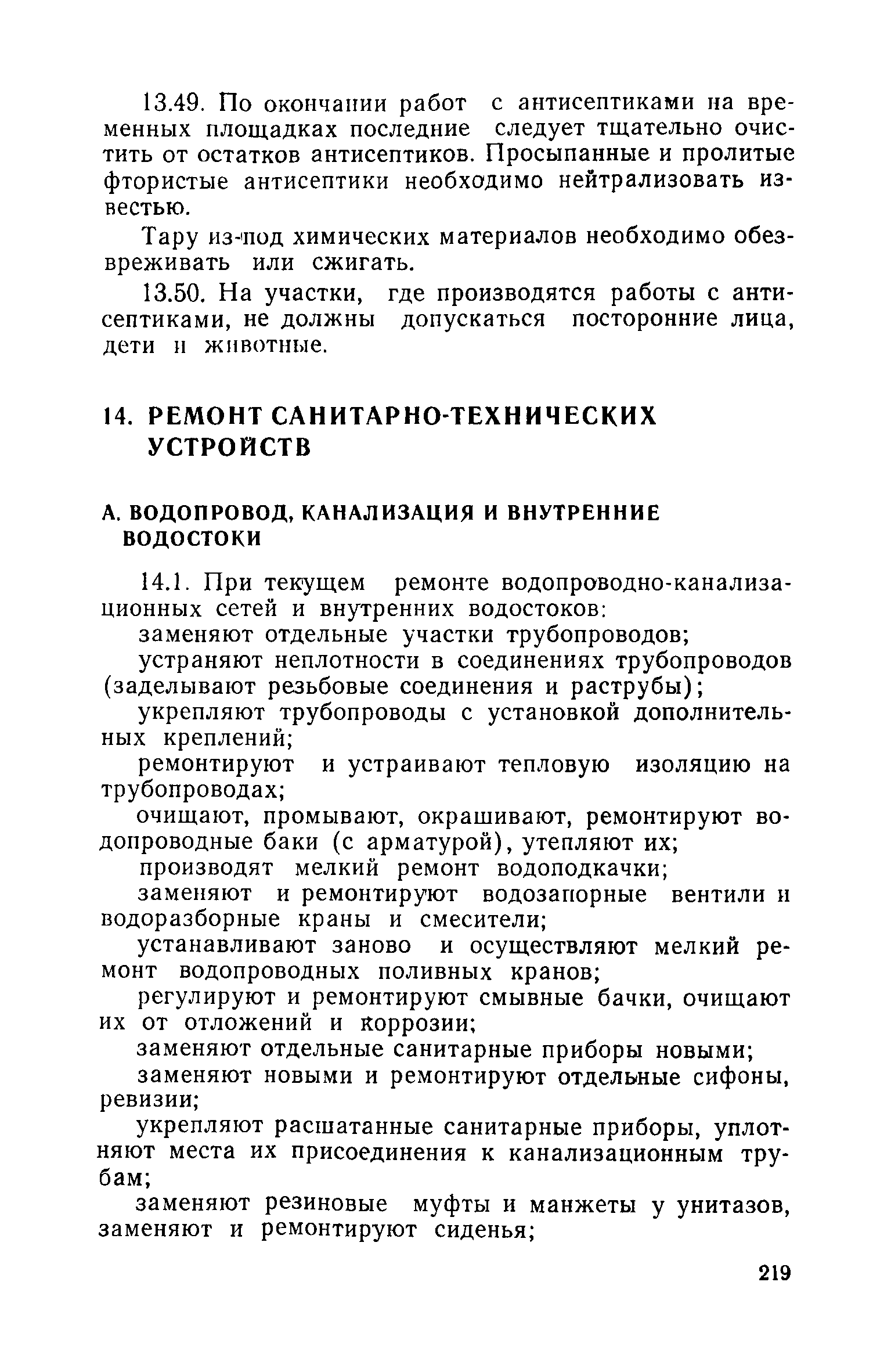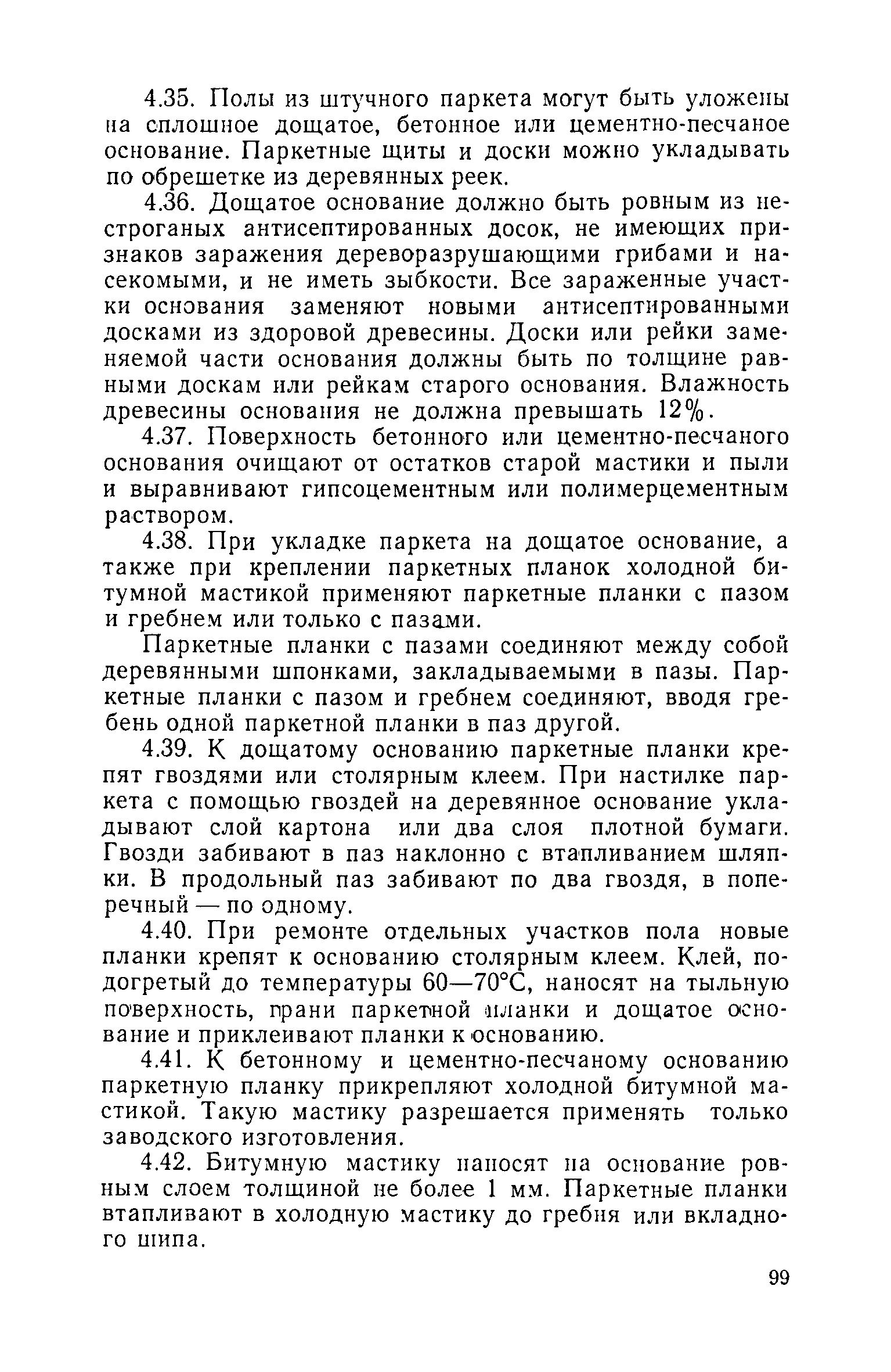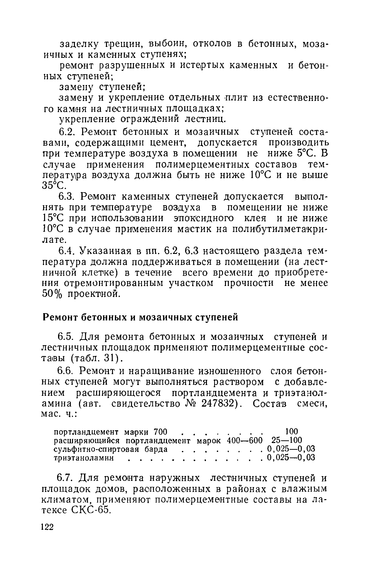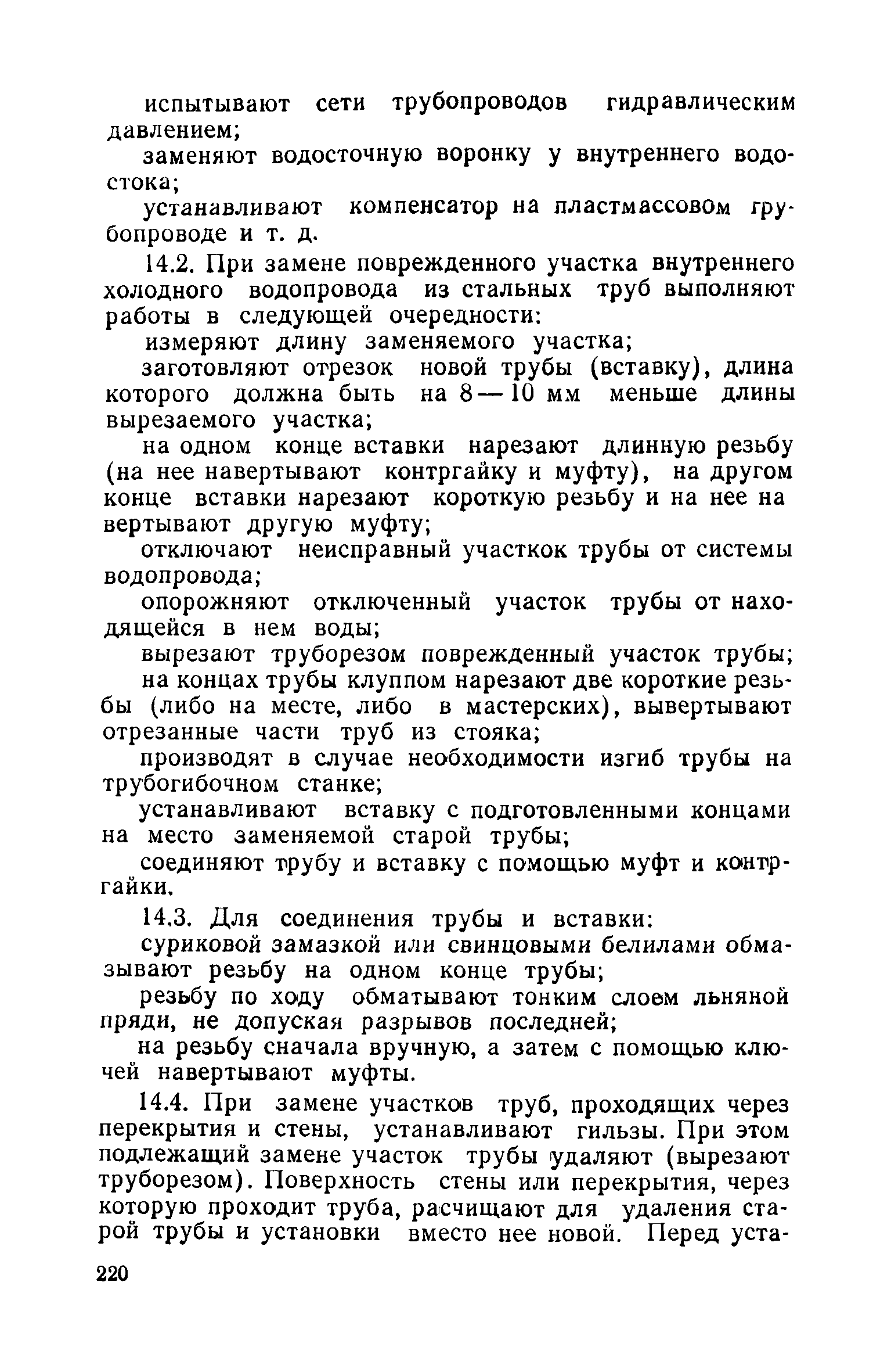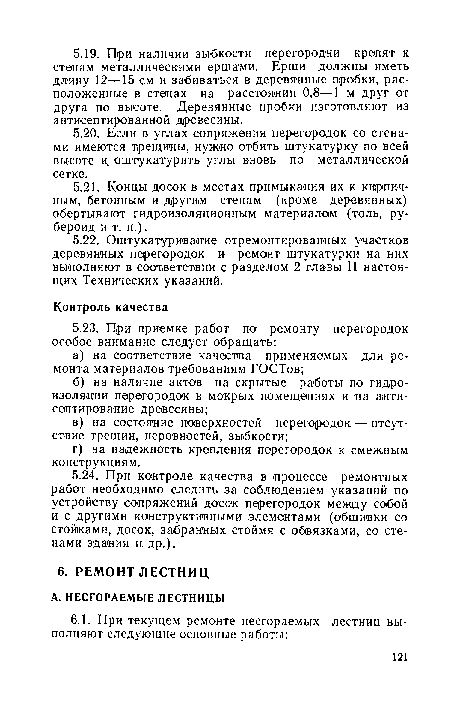 | Оглавление: | Предисловие Глава 1. Организация текущего ремонта жилых зданий 1. Планово-предупредительный текущий ремонт 2. Планирование текущего ремонта 3. Организация профилактического текущего ремонта 4. Учет выполнения текущего ремонта Глава II. Технология текущего ремонта жилых зданий 1. Организация ремонтных работ 2. Ремонт штукатурки и облицовки внутри помещений 3. Малярные и обойные работы 4. Ремонт полов 5. Ремонт перегородок 6. Ремонт лестниц 7. Ремонт стен 8. Ремонт крыш и кровель 9. Ремонт и очистка от загрязнений фасадов зданий 10. Ремонт оконных и дверных заполнений в каменных стенах 11. Остекление оконных переплетов и дверных полотен 12. Ремонт печей и дымовых труб 13. Антисептирование органических материалов при текущем ремонте жилых зданий 14. Ремонт санитарно-технических устройств Глава III. Организация мастерских и баз проката средств механизации 1. Рекомендации по улучшению работы мастерских текущего ремонта жилых домов 2. Рекомендации по организации баз проката и комплектованию их машинами и оборудованием Приложения |