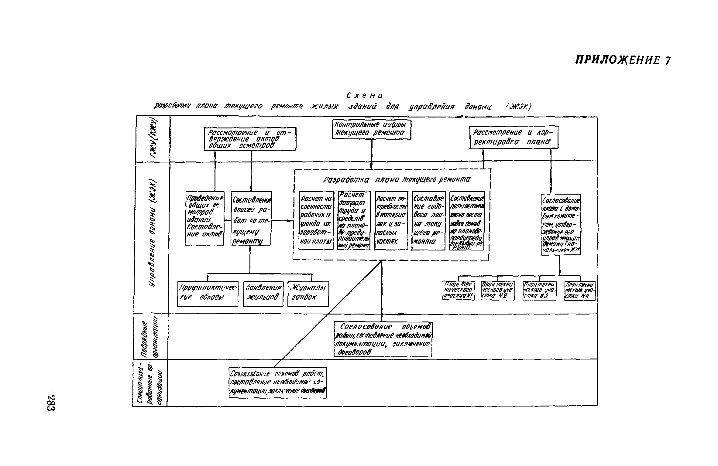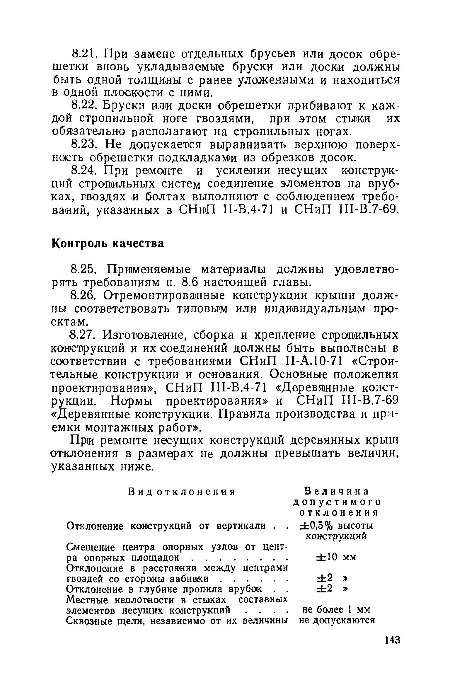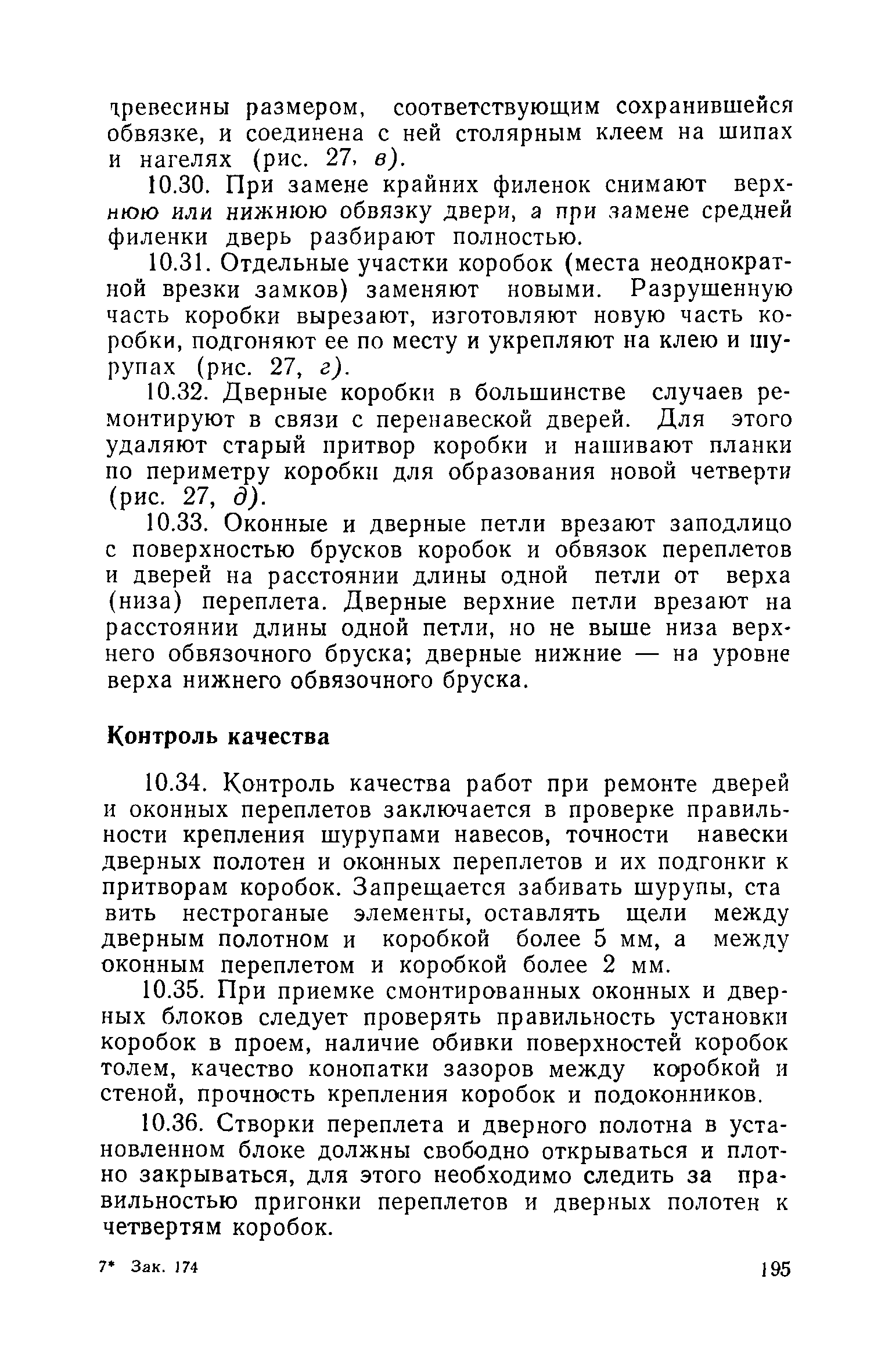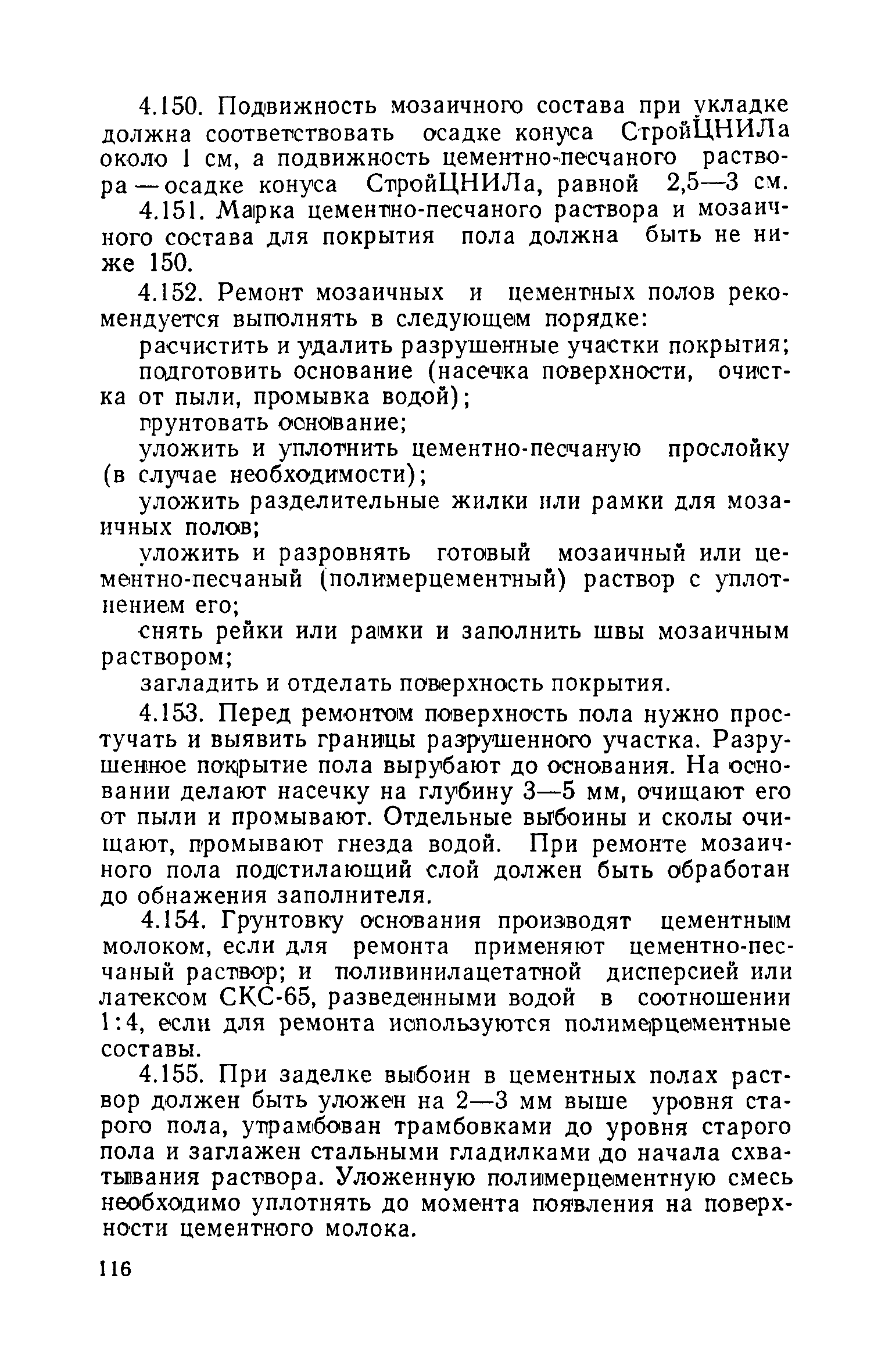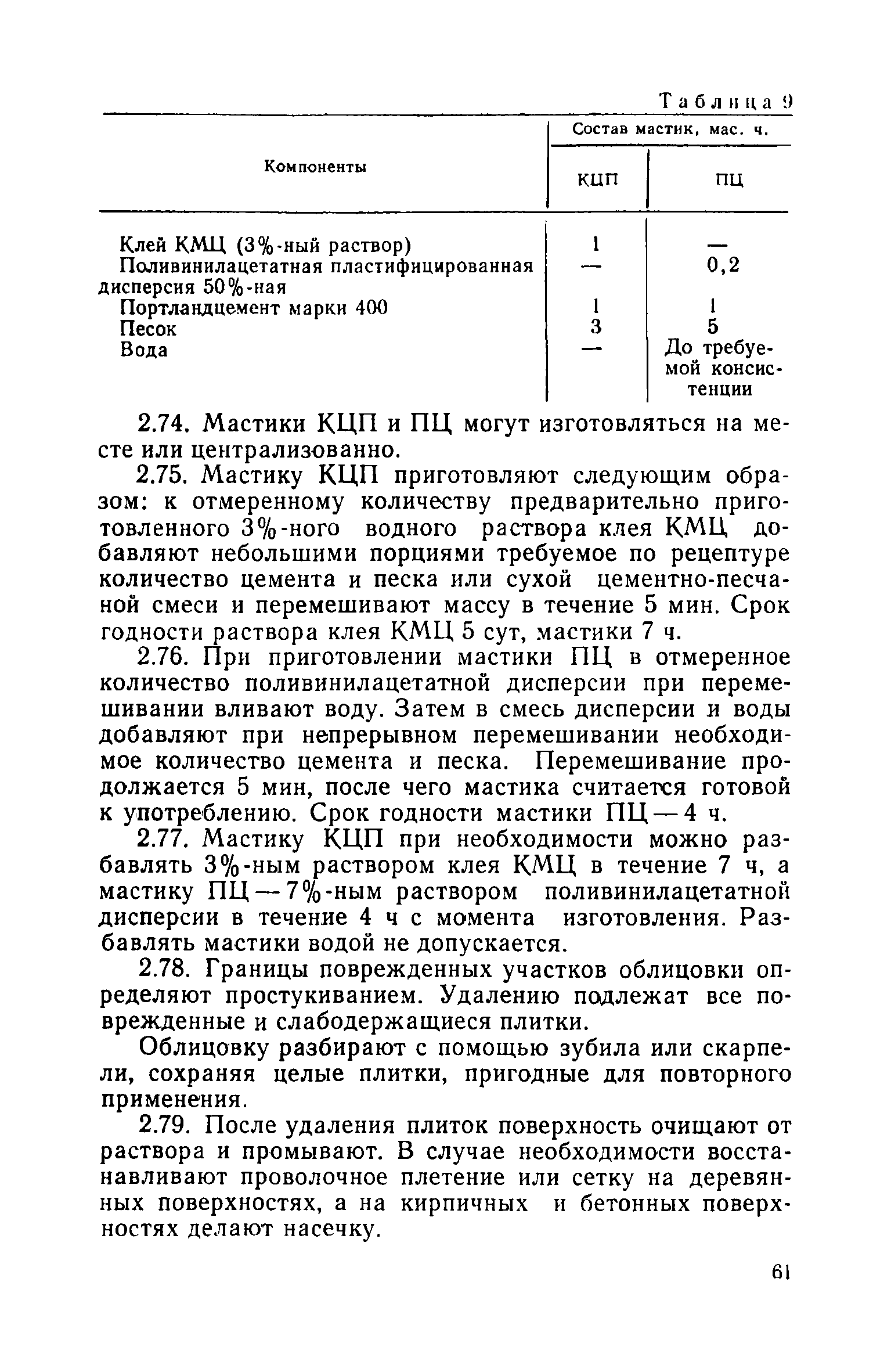 | Оглавление: | Предисловие Глава 1. Организация текущего ремонта жилых зданий 1. Планово-предупредительный текущий ремонт 2. Планирование текущего ремонта 3. Организация профилактического текущего ремонта 4. Учет выполнения текущего ремонта Глава II. Технология текущего ремонта жилых зданий 1. Организация ремонтных работ 2. Ремонт штукатурки и облицовки внутри помещений 3. Малярные и обойные работы 4. Ремонт полов 5. Ремонт перегородок 6. Ремонт лестниц 7. Ремонт стен 8. Ремонт крыш и кровель 9. Ремонт и очистка от загрязнений фасадов зданий 10. Ремонт оконных и дверных заполнений в каменных стенах 11. Остекление оконных переплетов и дверных полотен 12. Ремонт печей и дымовых труб 13. Антисептирование органических материалов при текущем ремонте жилых зданий 14. Ремонт санитарно-технических устройств Глава III. Организация мастерских и баз проката средств механизации 1. Рекомендации по улучшению работы мастерских текущего ремонта жилых домов 2. Рекомендации по организации баз проката и комплектованию их машинами и оборудованием Приложения |