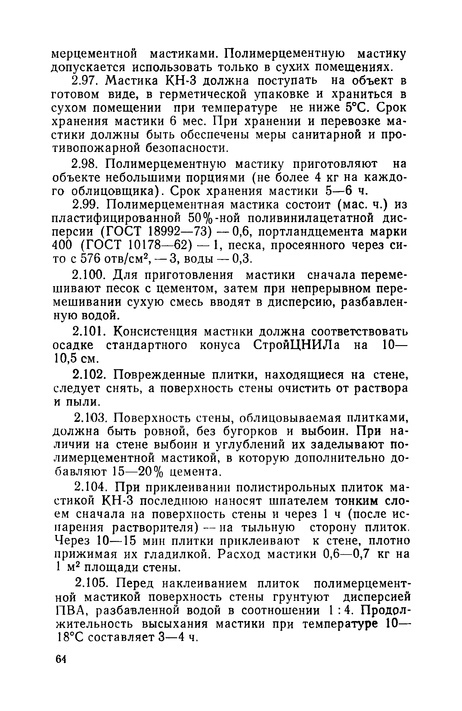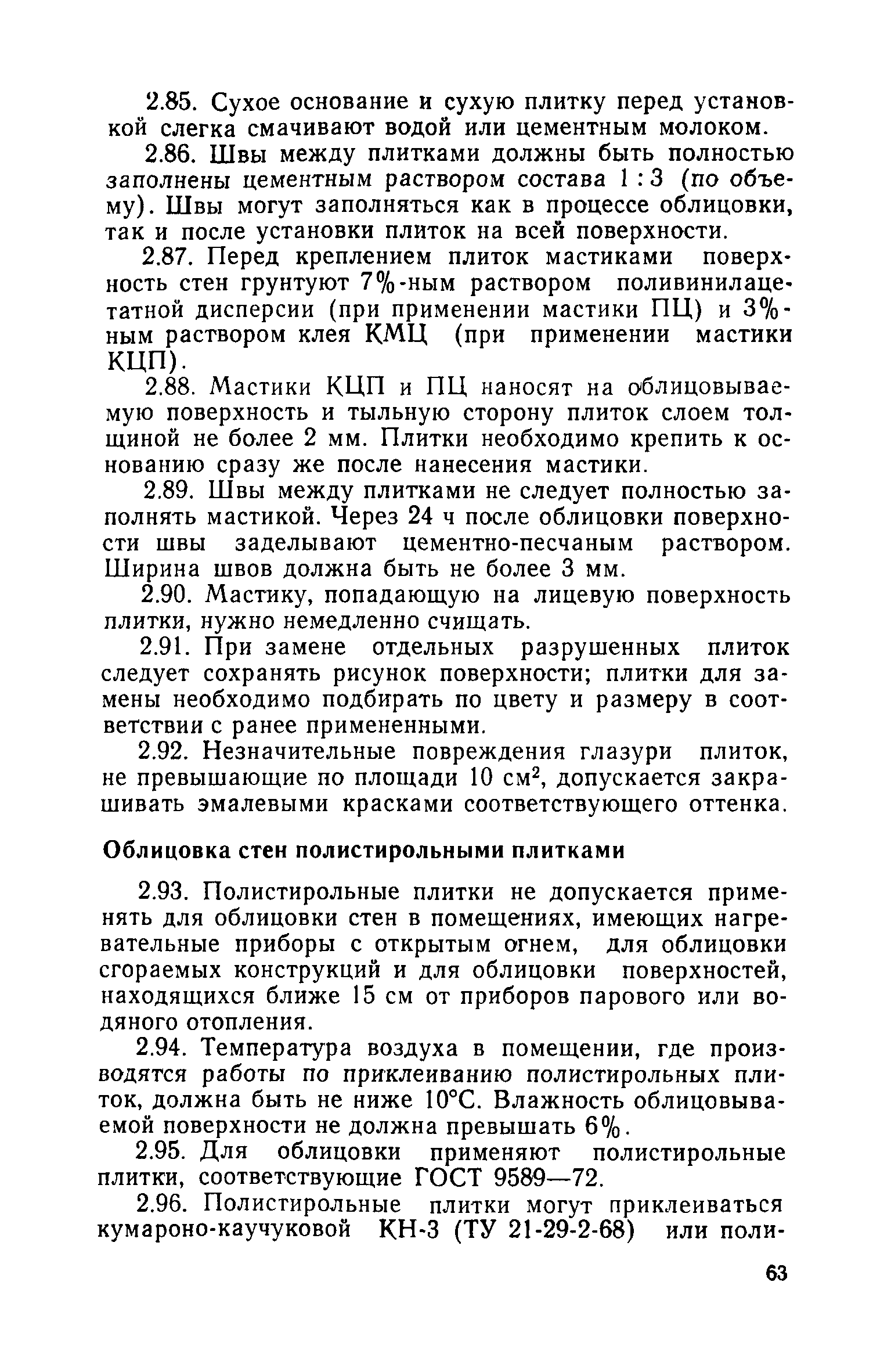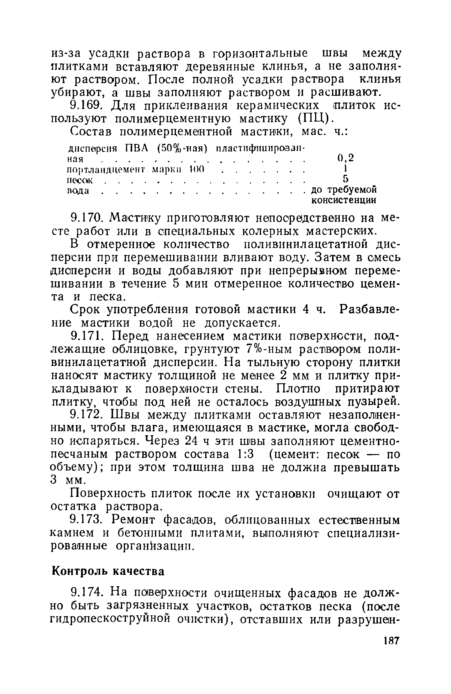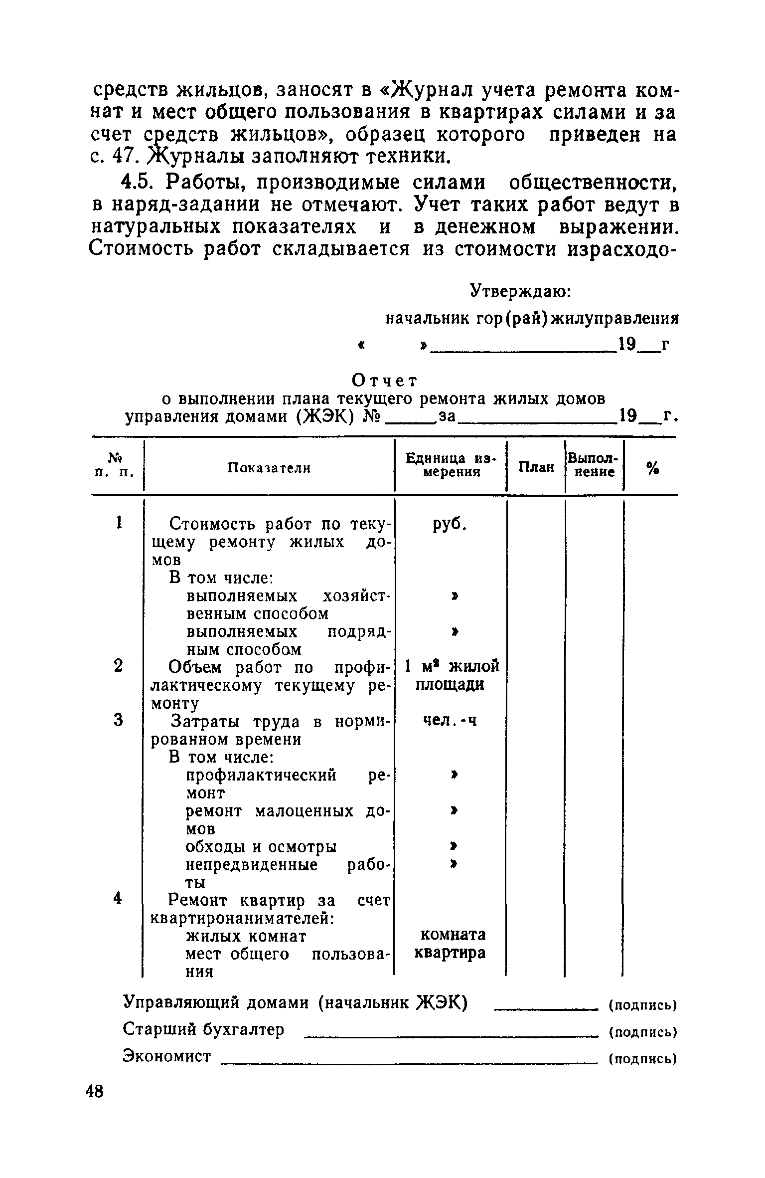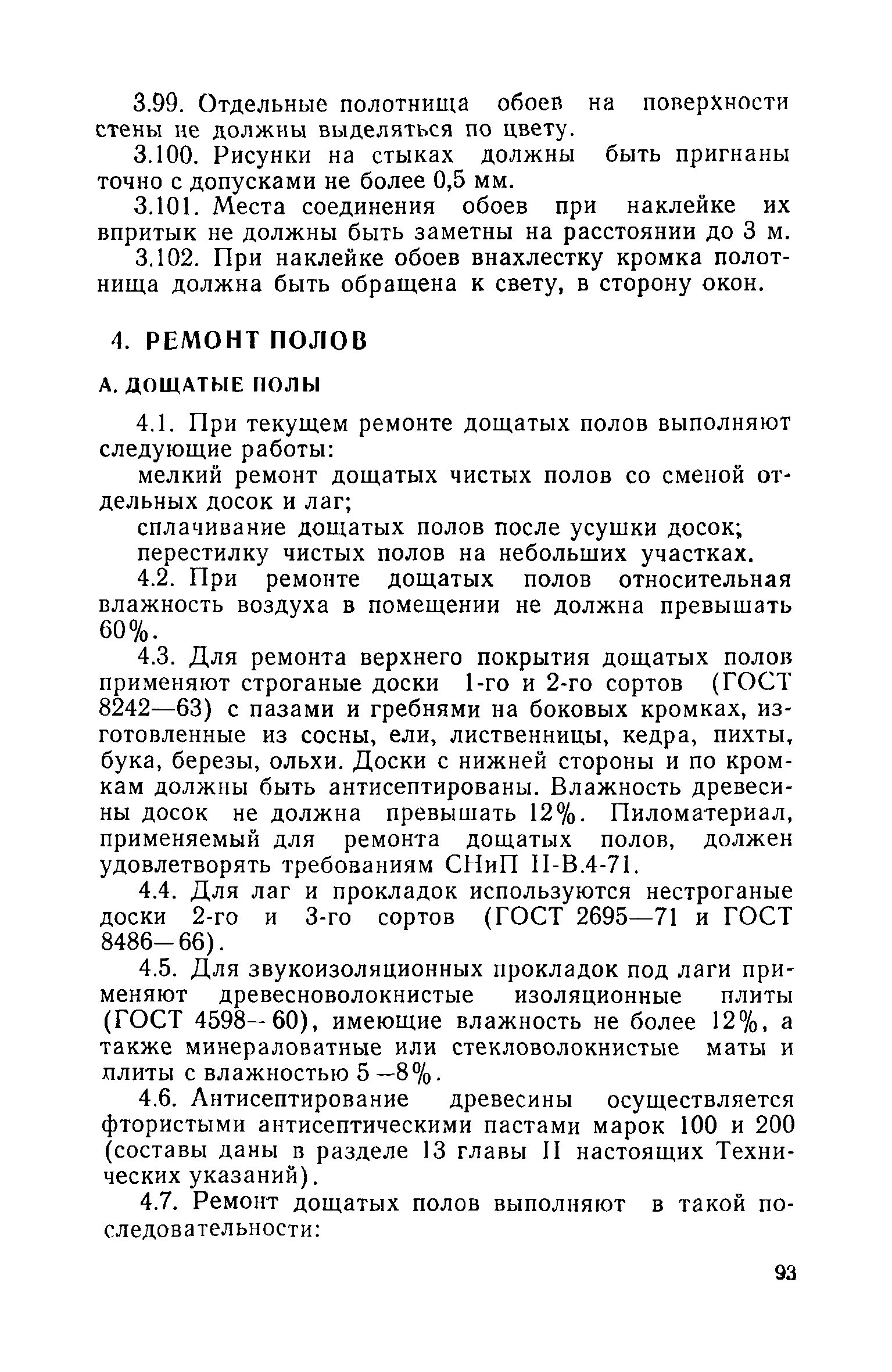 | Оглавление: | Предисловие Глава 1. Организация текущего ремонта жилых зданий 1. Планово-предупредительный текущий ремонт 2. Планирование текущего ремонта 3. Организация профилактического текущего ремонта 4. Учет выполнения текущего ремонта Глава II. Технология текущего ремонта жилых зданий 1. Организация ремонтных работ 2. Ремонт штукатурки и облицовки внутри помещений 3. Малярные и обойные работы 4. Ремонт полов 5. Ремонт перегородок 6. Ремонт лестниц 7. Ремонт стен 8. Ремонт крыш и кровель 9. Ремонт и очистка от загрязнений фасадов зданий 10. Ремонт оконных и дверных заполнений в каменных стенах 11. Остекление оконных переплетов и дверных полотен 12. Ремонт печей и дымовых труб 13. Антисептирование органических материалов при текущем ремонте жилых зданий 14. Ремонт санитарно-технических устройств Глава III. Организация мастерских и баз проката средств механизации 1. Рекомендации по улучшению работы мастерских текущего ремонта жилых домов 2. Рекомендации по организации баз проката и комплектованию их машинами и оборудованием Приложения |