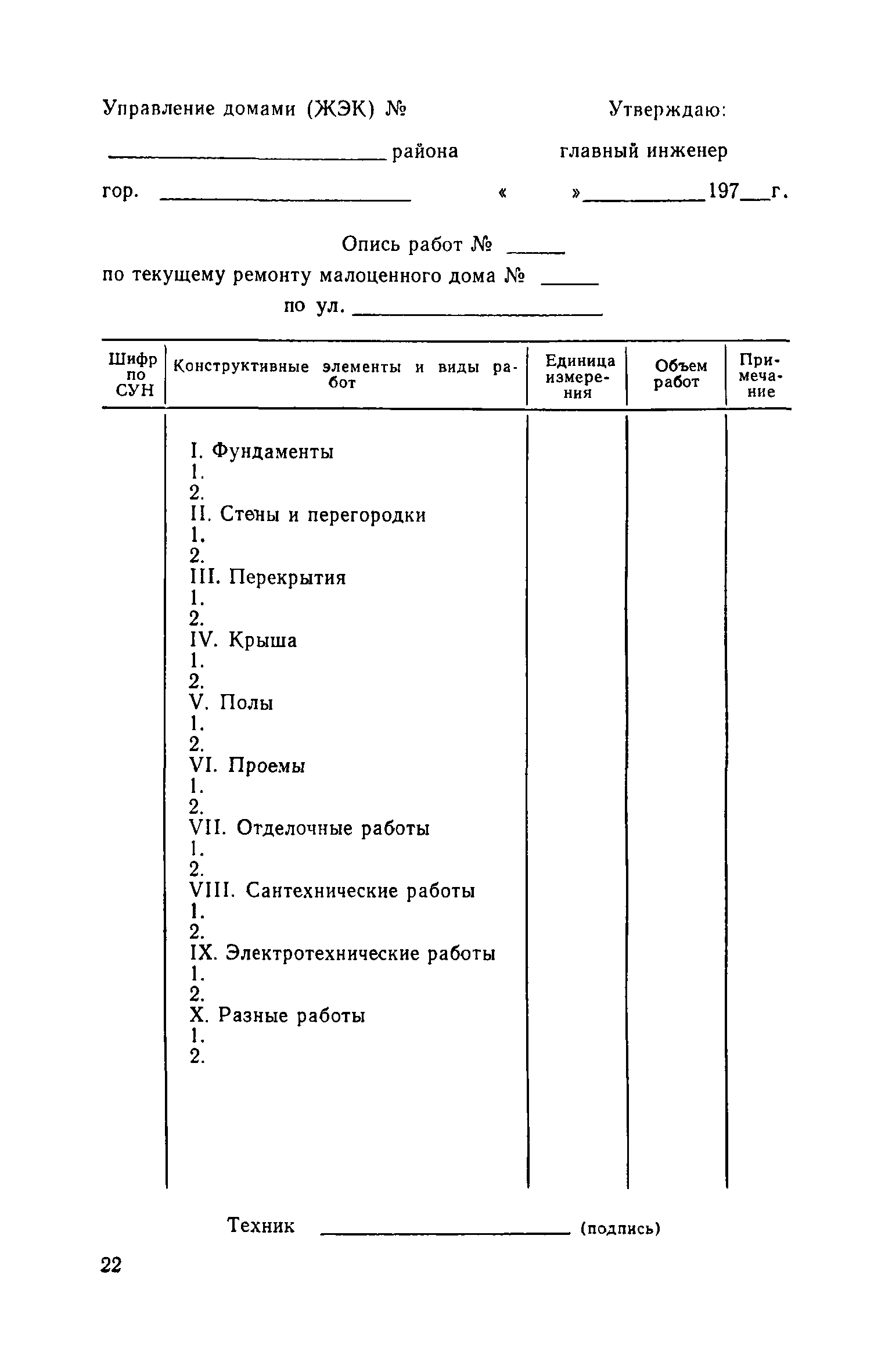| Область применения: | В Технических указаниях рассмотрены вопросы планирования, организации и учета текущего ремонта жилых домов. Описана технология выполнения текущего ремонта жилых зданий наиболее эффективными способами с применением новых строительных материалов, высокопроизводительных средств механизации, инструментов. Технические указания предназначены для работников жилищно-эксплуатационных и ремонтно-строительных организаций. |