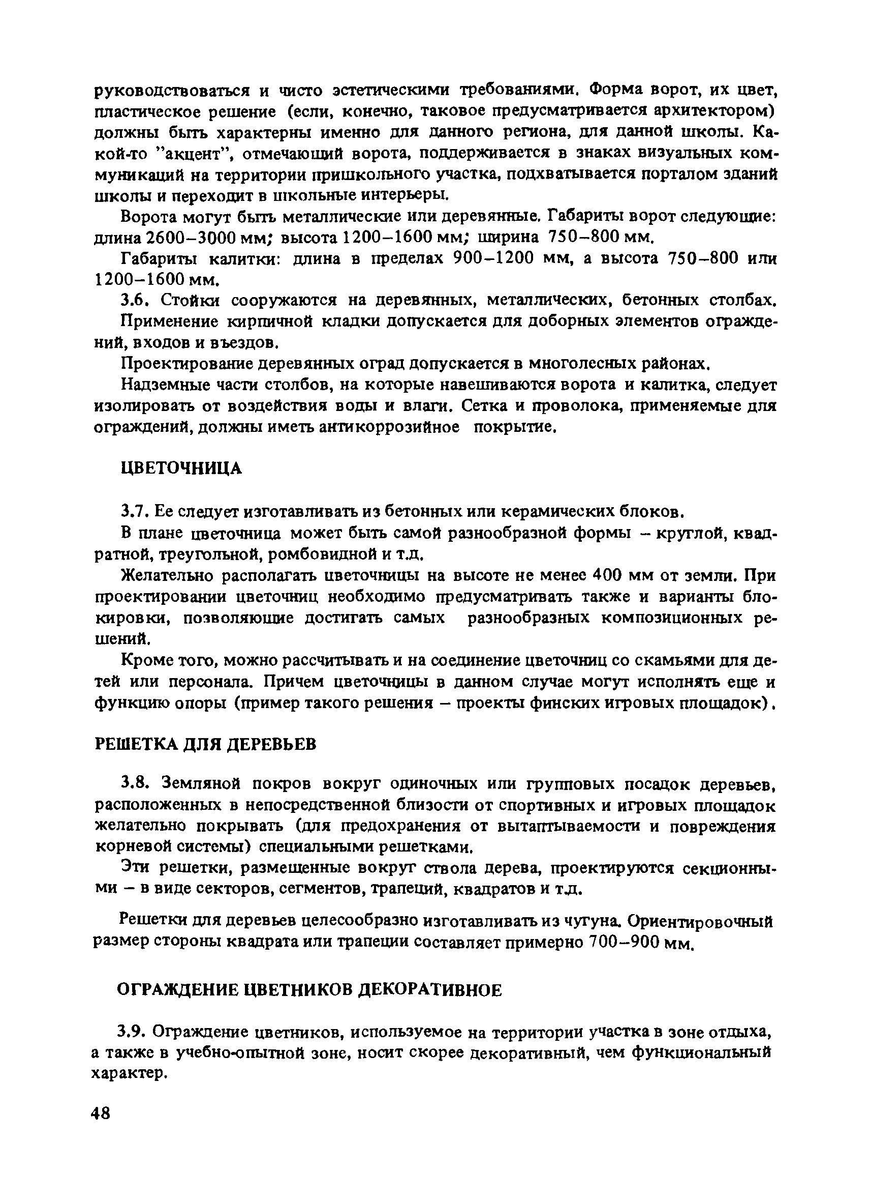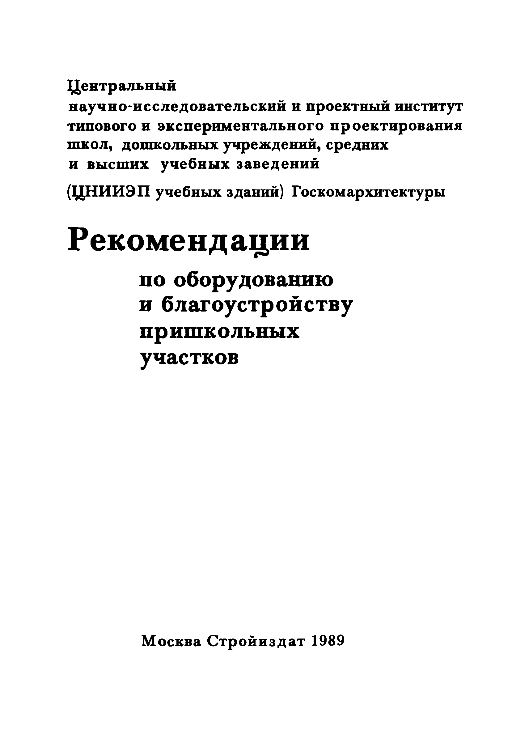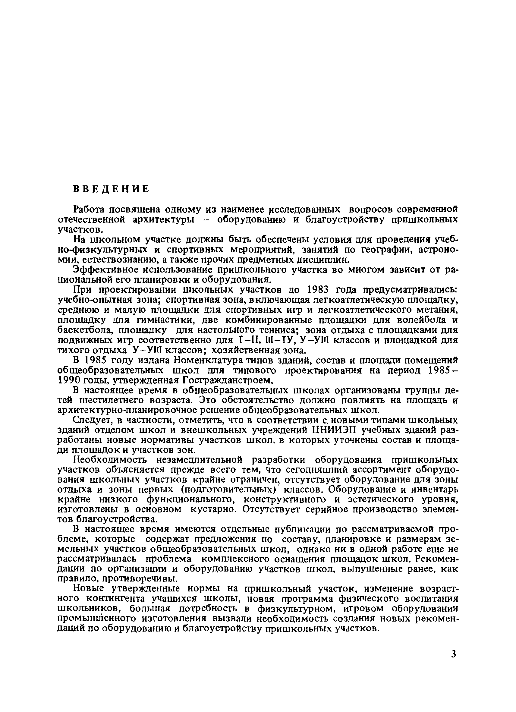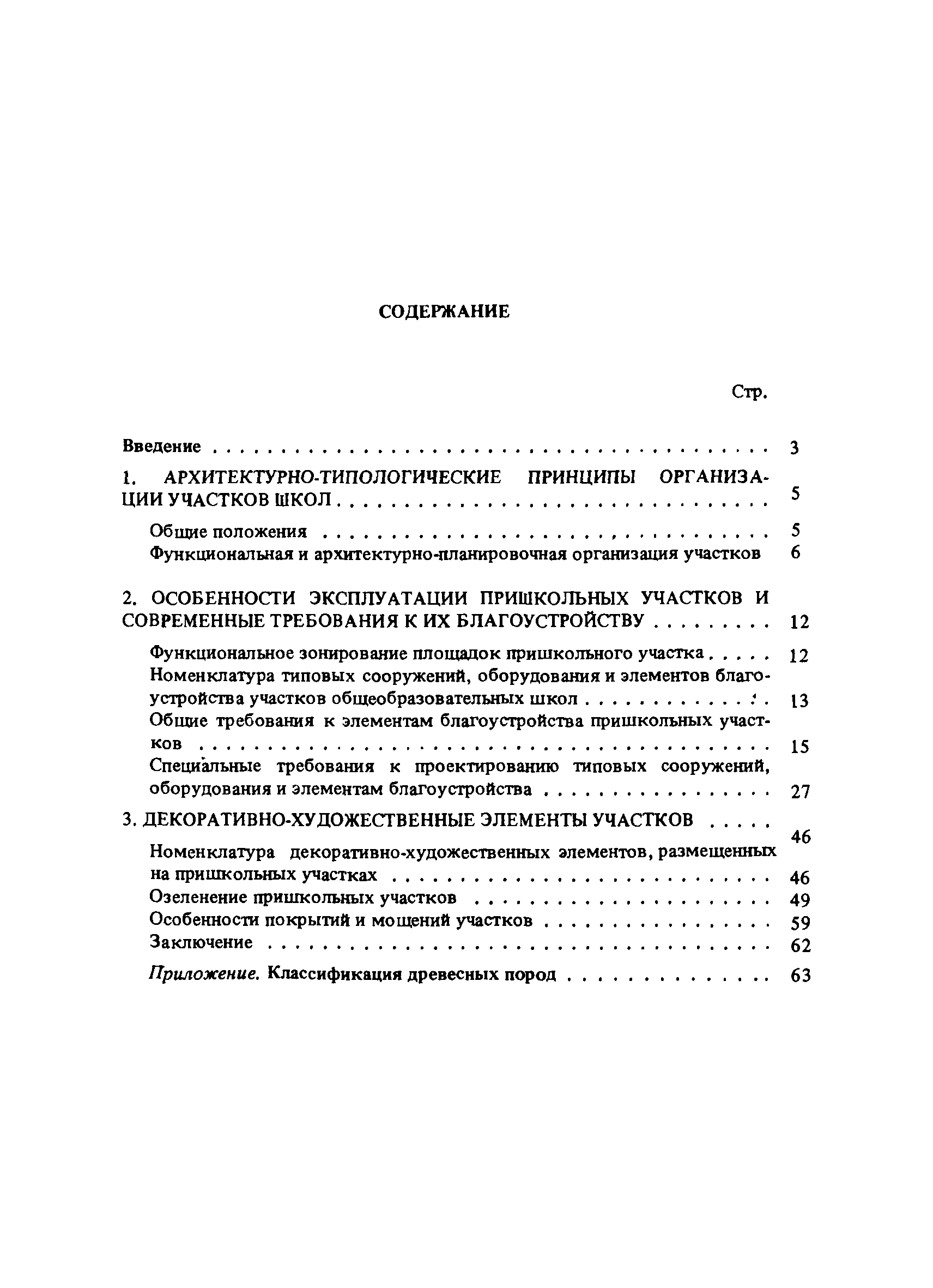 | Оглавление: | Введение 1. Архитектурно-типологические принципы организации участков школ Общие положения Функциональная и архитектурно-планировочная организация участков 2. Особенности эксплуатации пришкольных участков и современные требования к их благоустройству Функциональное зонирование площадок пришкольного участка Номенклатура типовых сооружений, оборудования и элементов благоустройства участков общеобразовательных школ Общие требования к элементам благоустройства пришкольных участков Специальные требования к проектированию типовых сооружений, оборудования и элементов благоустройства 3. Декоративно-художественные элементы участков Номенклатура декоративно-художественных элементов, размещенных на пришкольных участках Озеленение пришкольных участков Особенности покрытий и мощений участков Заключение Приложение. Классификация древесных пород |