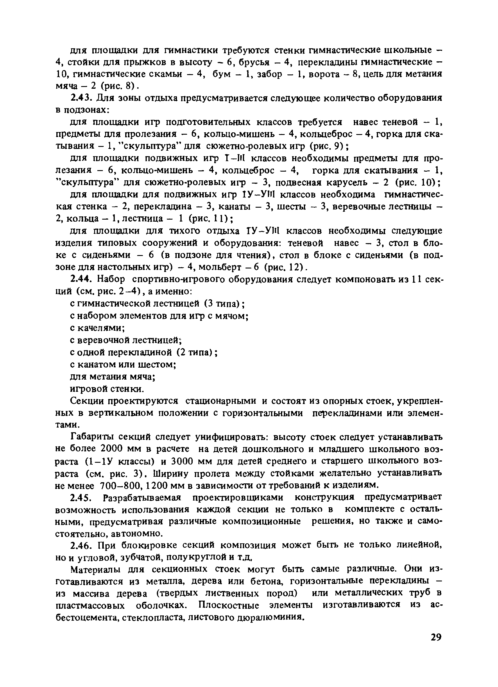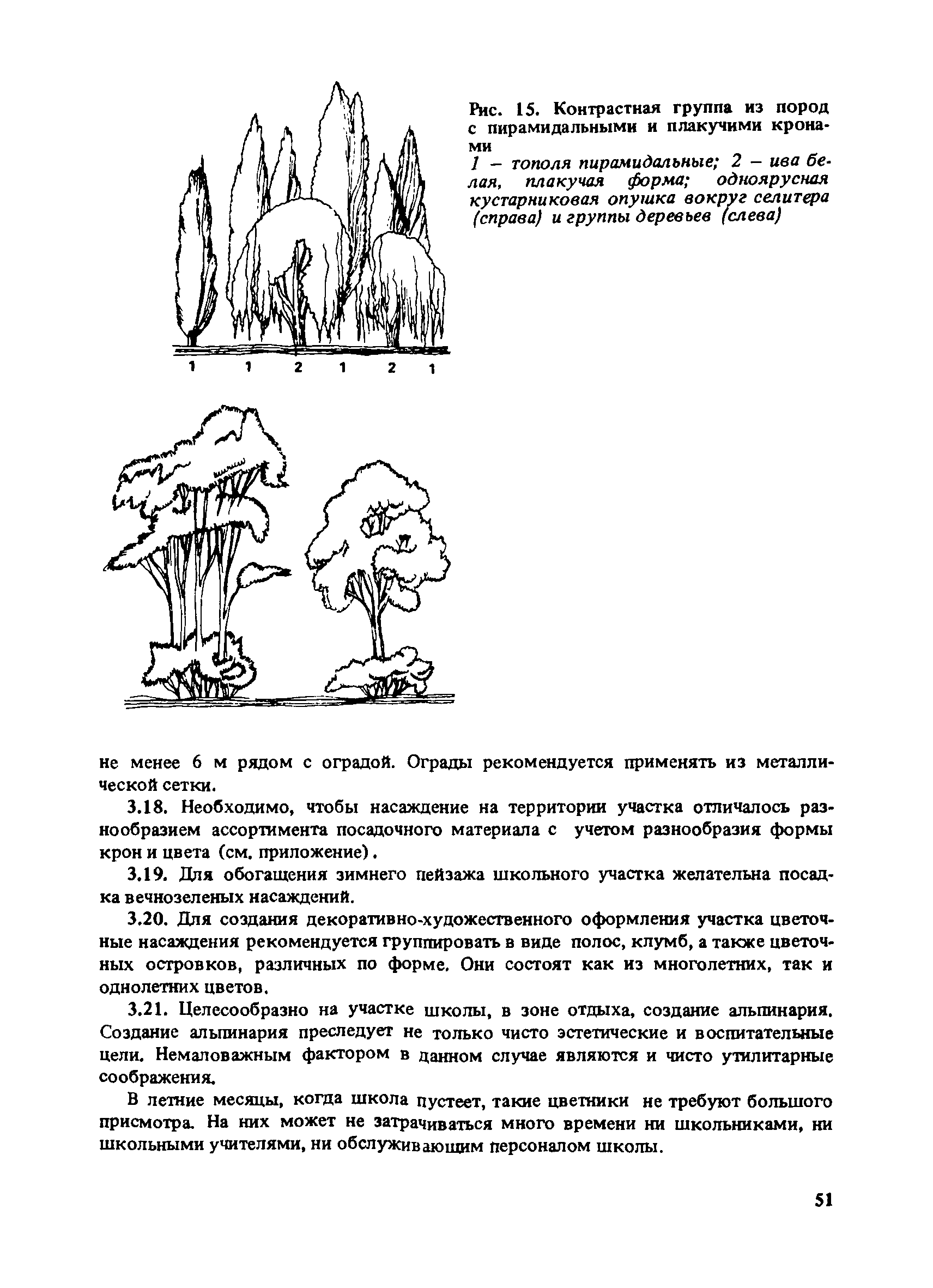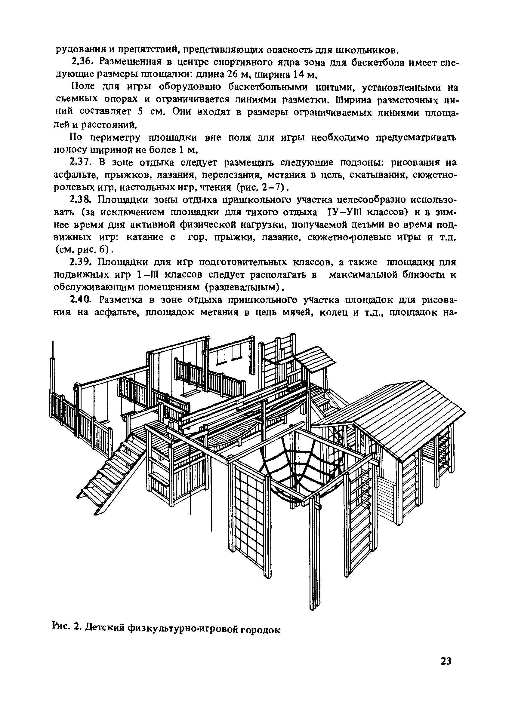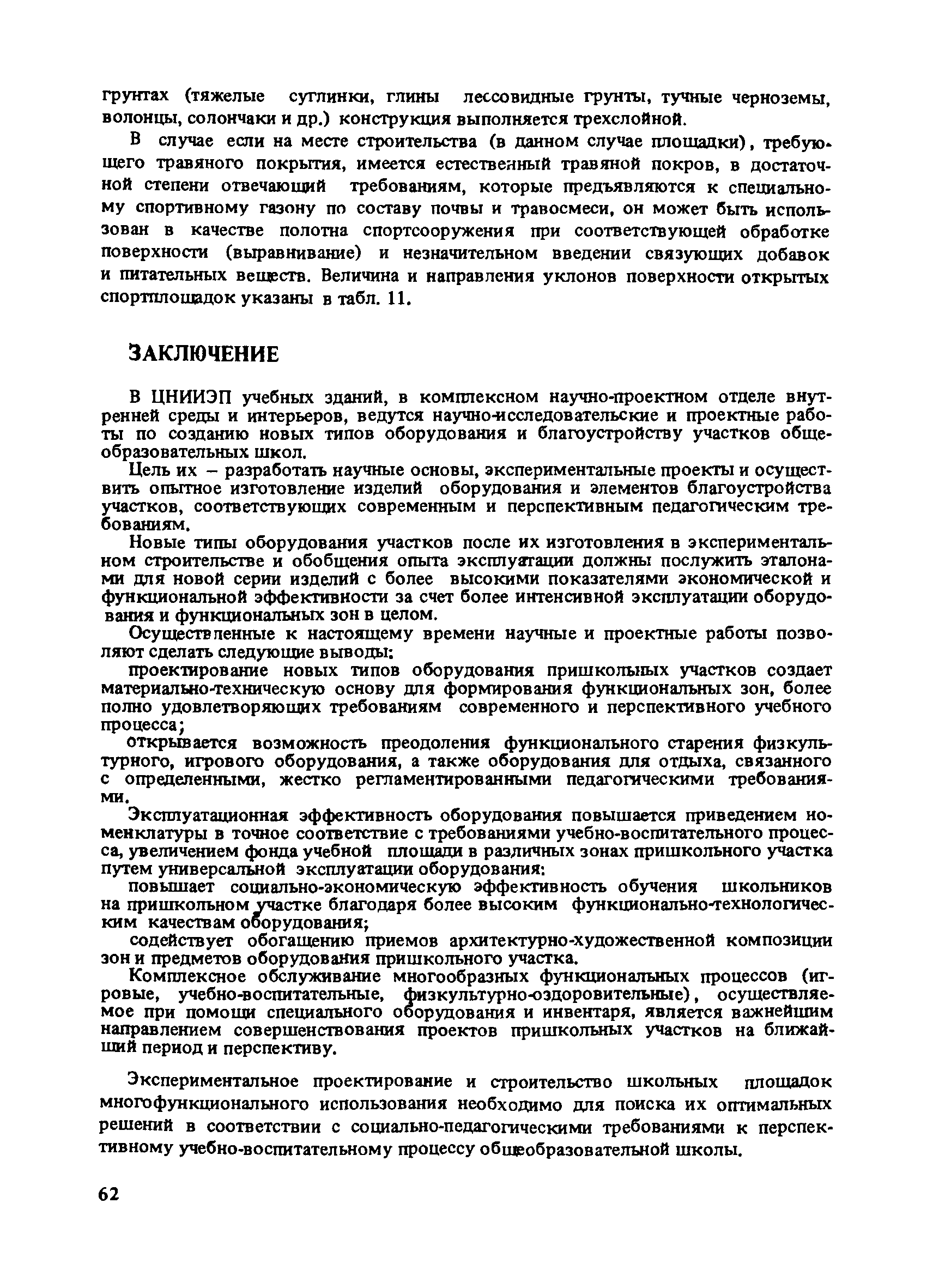 | Оглавление: | Введение 1. Архитектурно-типологические принципы организации участков школ Общие положения Функциональная и архитектурно-планировочная организация участков 2. Особенности эксплуатации пришкольных участков и современные требования к их благоустройству Функциональное зонирование площадок пришкольного участка Номенклатура типовых сооружений, оборудования и элементов благоустройства участков общеобразовательных школ Общие требования к элементам благоустройства пришкольных участков Специальные требования к проектированию типовых сооружений, оборудования и элементов благоустройства 3. Декоративно-художественные элементы участков Номенклатура декоративно-художественных элементов, размещенных на пришкольных участках Озеленение пришкольных участков Особенности покрытий и мощений участков Заключение Приложение. Классификация древесных пород |