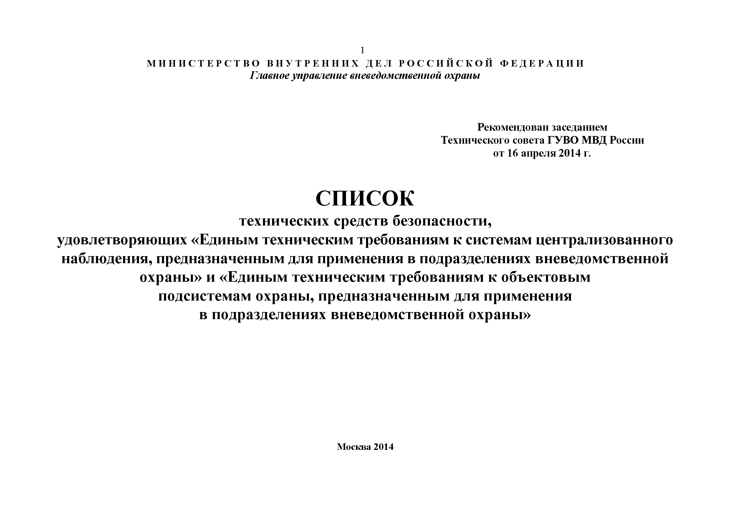 Скачать Список технических средств безопасности удовлетворяющую Единым техническим требованиям к системам централизованного наблюдения, предназначенным для применения в подразделениях вневедомственной охраны и Единым техническим требованиям к объектовым подсистемам охраны, предназначенным для применения в подразделениях вневедомственной охраныДата актуализации: 01.01.2021