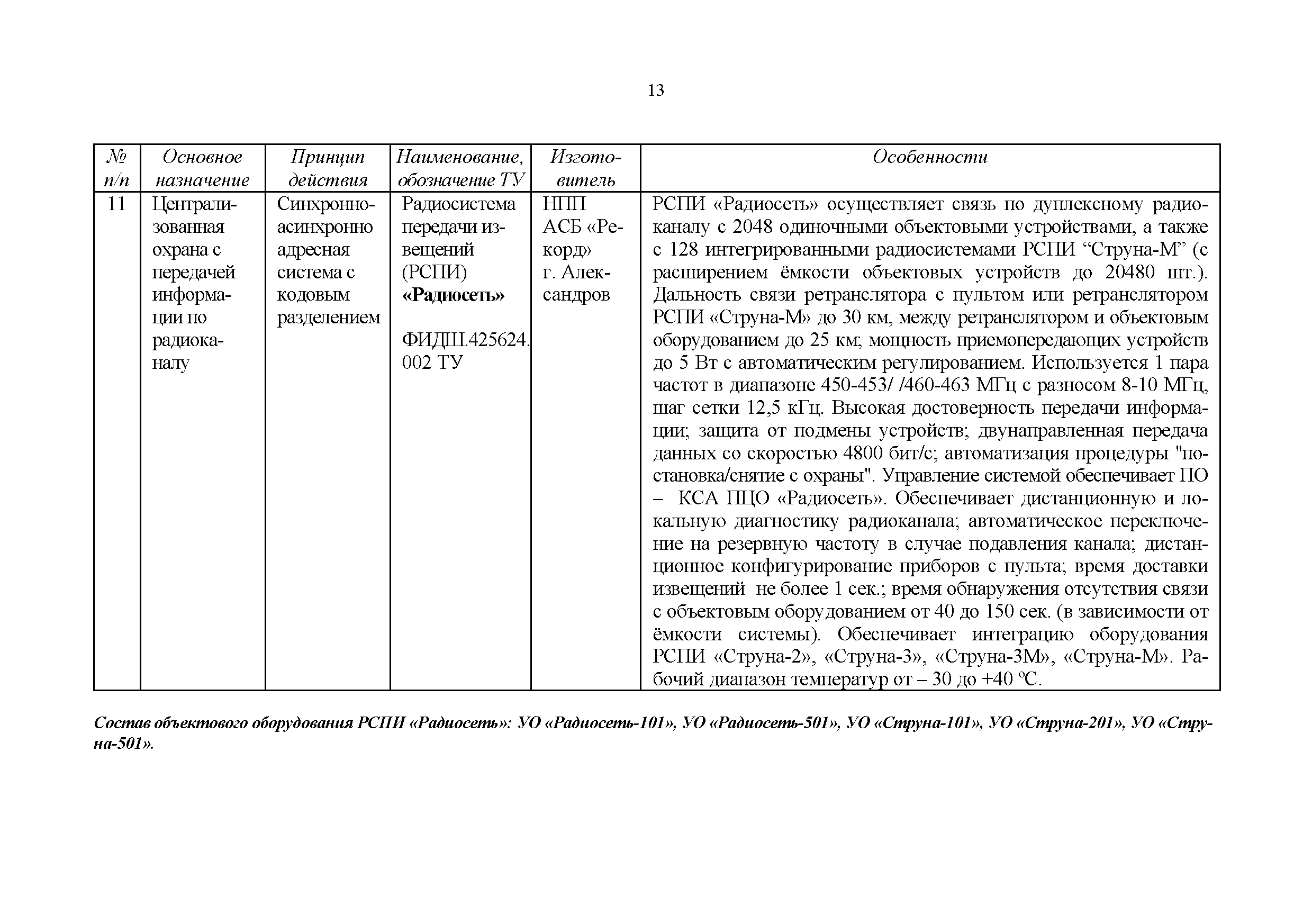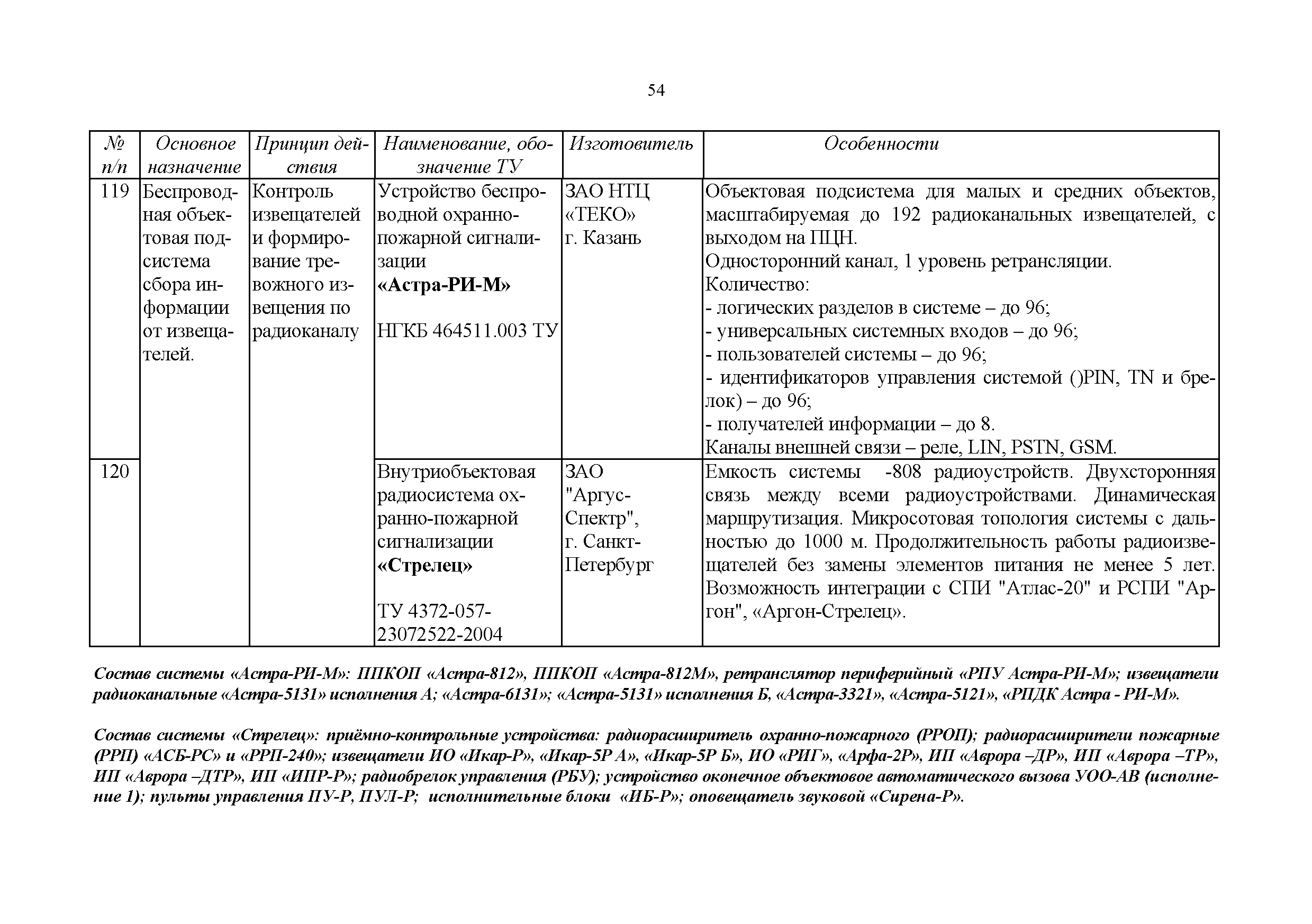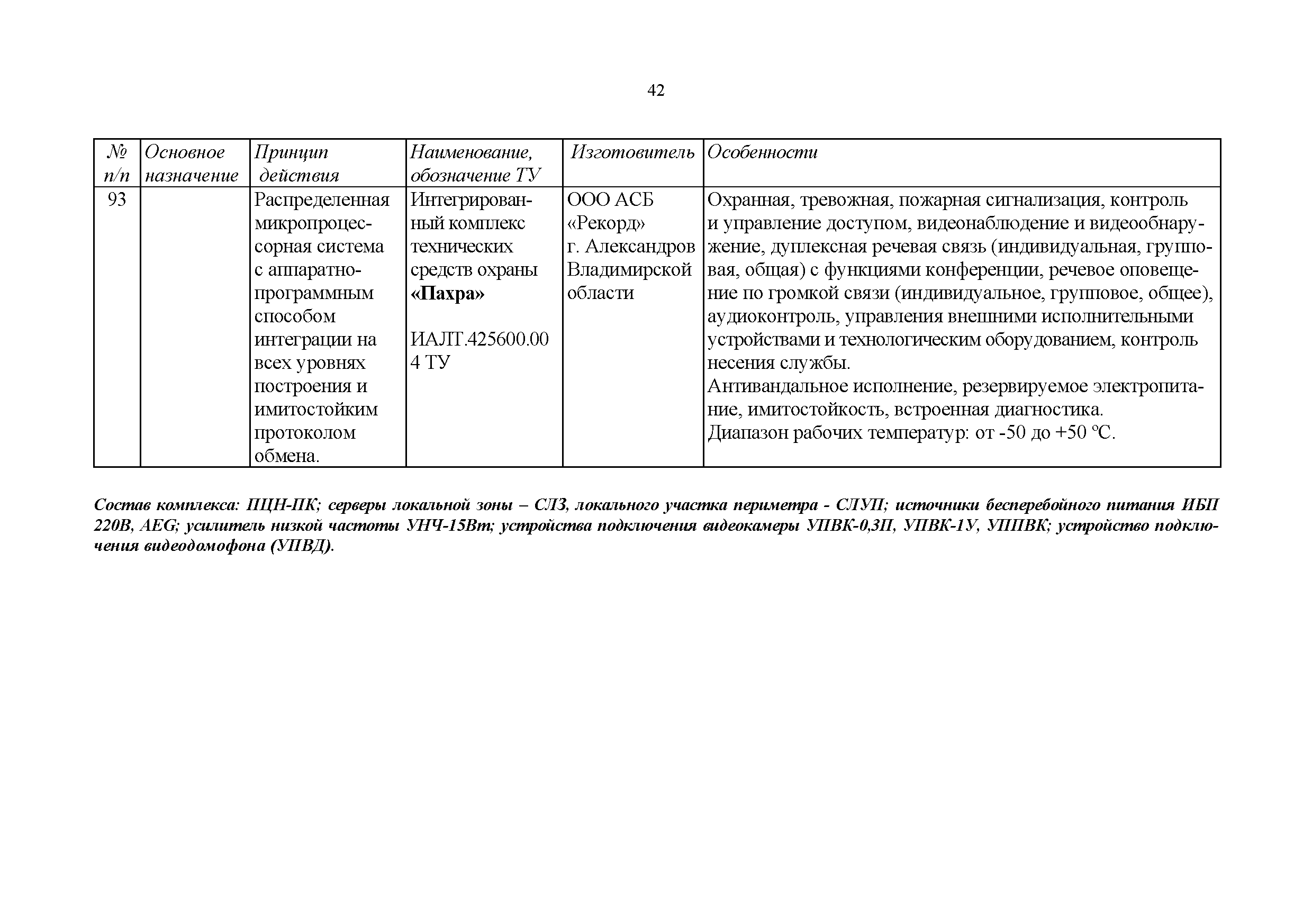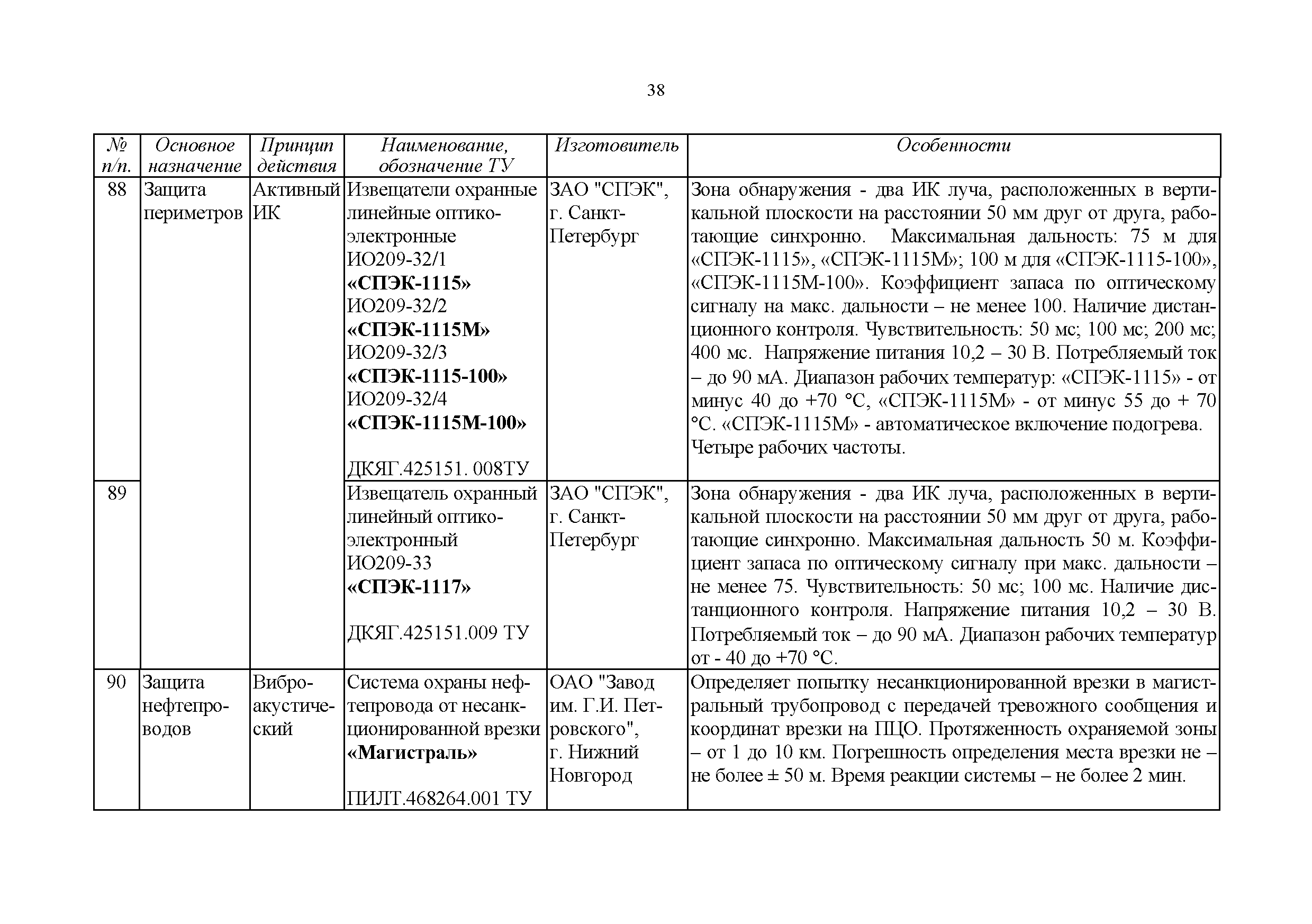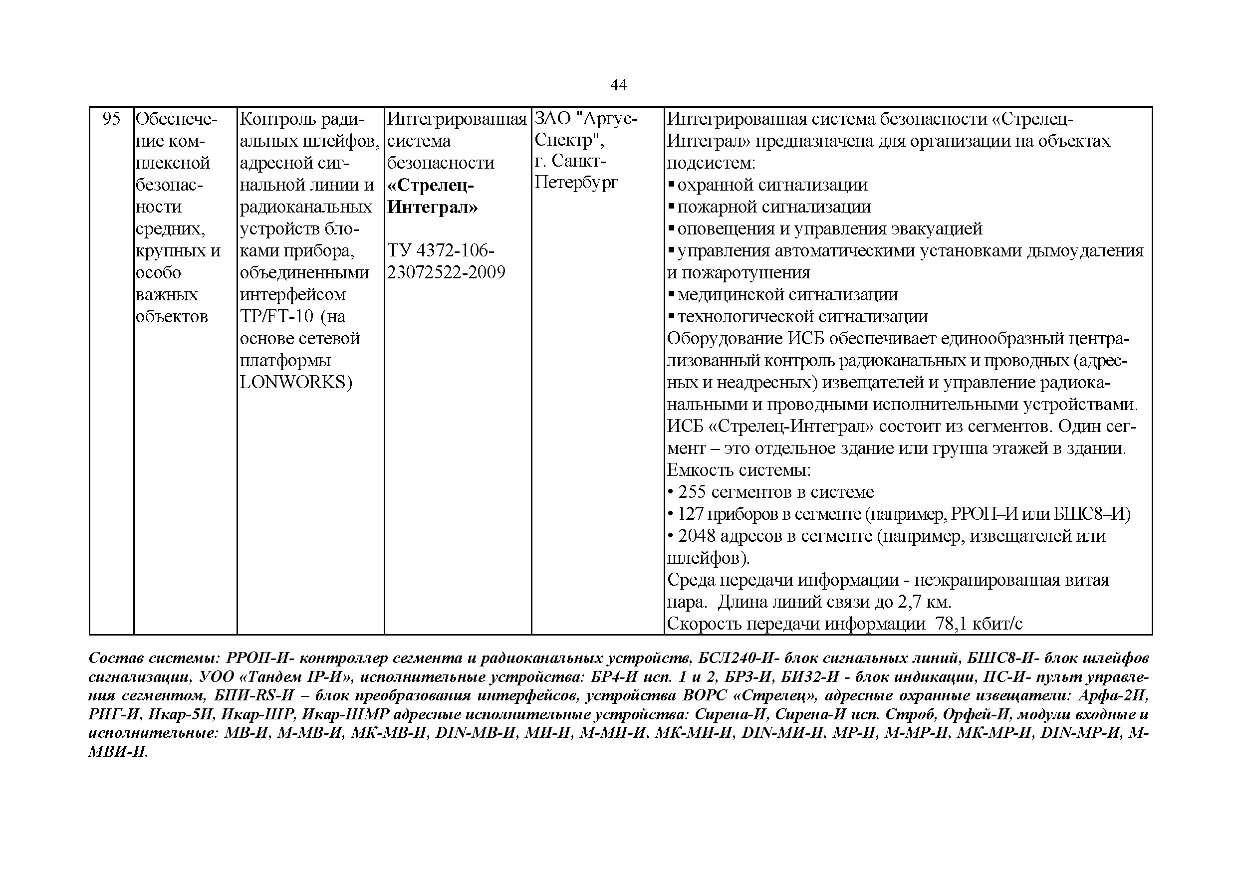 Список технических средств безопасности удовлетворяющую "Единым техническим требованиям к системам централизованного наблюдения, предназначенным для применения в подразделениях вневедомственной охраны" и "Единым техническим требованиям к объектовым подсистемам охраны, предназначенным для применения в подразделениях вневедомственной охраны"| Статус: | не действует | | Название рус.: | Список технических средств безопасности удовлетворяющую "Единым техническим требованиям к системам централизованного наблюдения, предназначенным для применения в подразделениях вневедомственной охраны" и "Единым техническим требованиям к объектовым подсистемам охраны, предназначенным для применения в подразделениях вневедомственной охраны" | | Дата добавления в базу: | 01.09.2013 | | Дата актуализации: | 01.01.2021 | | Область применения: | Список технических средств безопасности включает в себя аппаратуру удовлетворяющую "Единым техническим требованиям к системам централизованного наблюдения, предназначенным для применения в подразделениях вневедомственной охраны" и "Единым техническим требованиям к объектовым подсистемам технических средств охраны (ТСО), предназначенным для применения в подразделениях вневедомственной охраны". Список подготовлен в целях реализации единой технической политики в обеспечении надежной централизованной охраны объектов, квартир и других мест хранения личного имущества граждан. | | Оглавление: | Введение 1 Аппаратура централизованного наблюдения 2 Средства обнаружения 2.1 Извещатели для помещений 2.2 Извещатели для открытых площадок 3 Объектовые средства 3.1 Интегрированные системы безопасности 3.2 Домофоны с функцией охраны 3.3 Источники электропитания 3.4 Средства тревожной сигнализации 3.5 Средства беспроводной охранной сигнализации | | Разработан: | ФКУ НИЦ Охрана МВД России