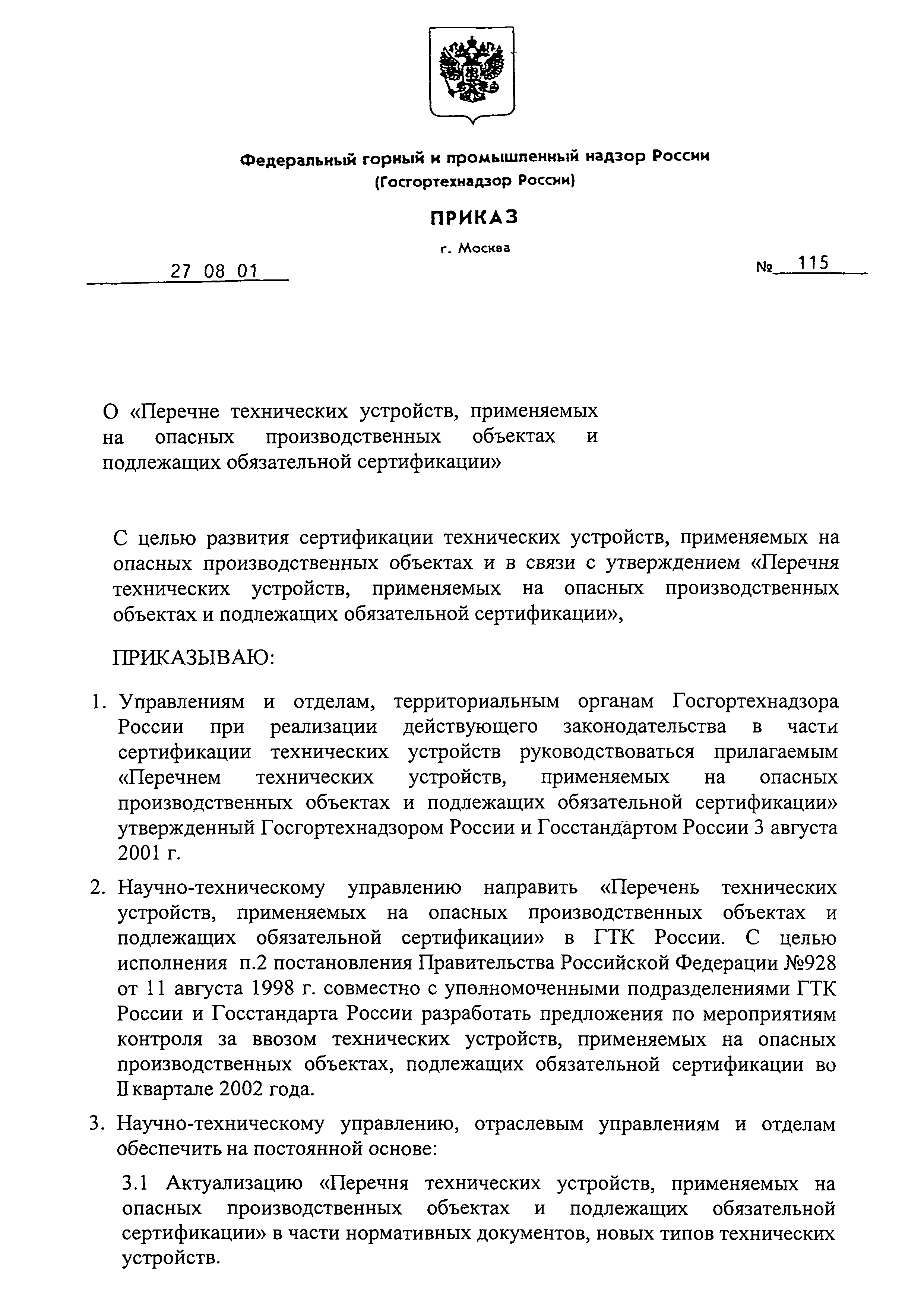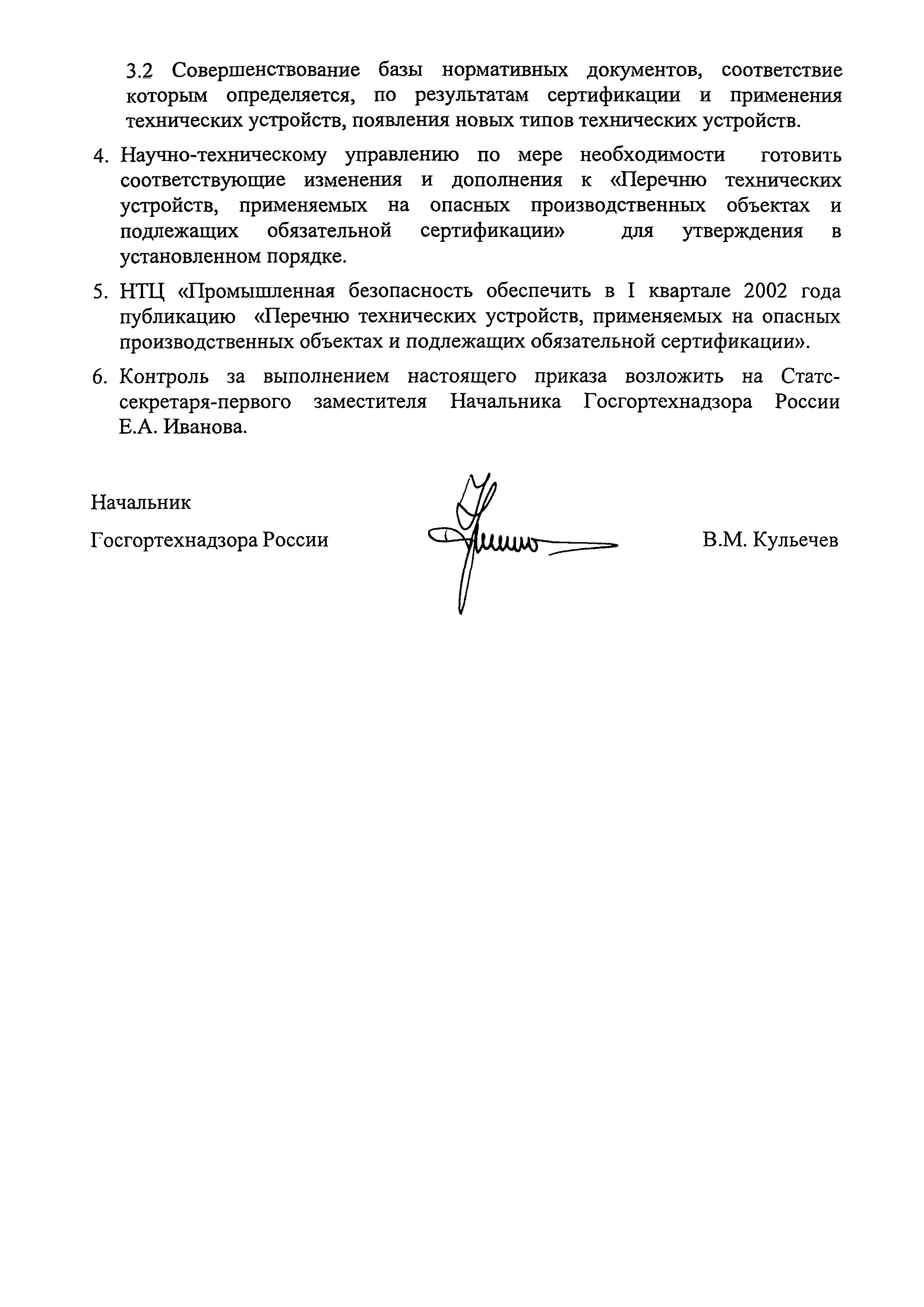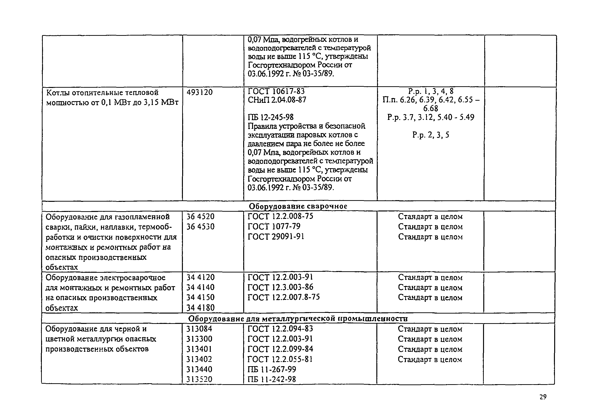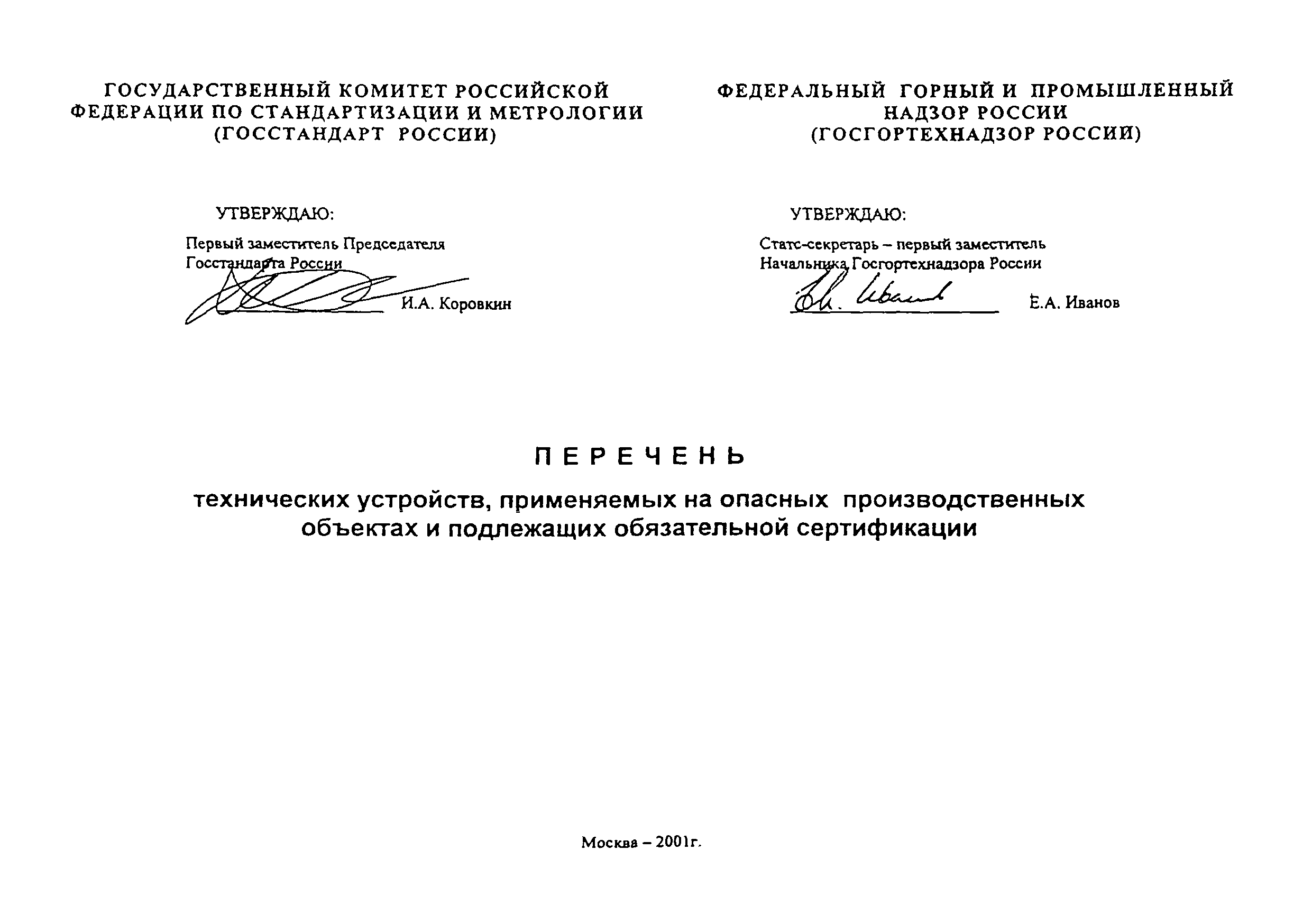 | Оглавление: | Перечень технических устройств, применяемых на опасных производственных объектах и подлежащих обязательной сертификации Электрооборудование взрывозащищенное и рудничное Горно-шахтное оборудование Нефтедобывающая промышленность, в том числе магистральный трубопроводный транспорт Химическое, нефтехимическое, нефтегазоперерабатывающее и другие опасные производства Оборудование систем газоснабжения Оборудование сварочное Оборудование для металлургической промышленности Подъемно-транспортное оборудование Продукция энергетического машиностроения Оборудование технологическое для мукомольно-крупяной, комбикормовой и элеваторной промышленности |