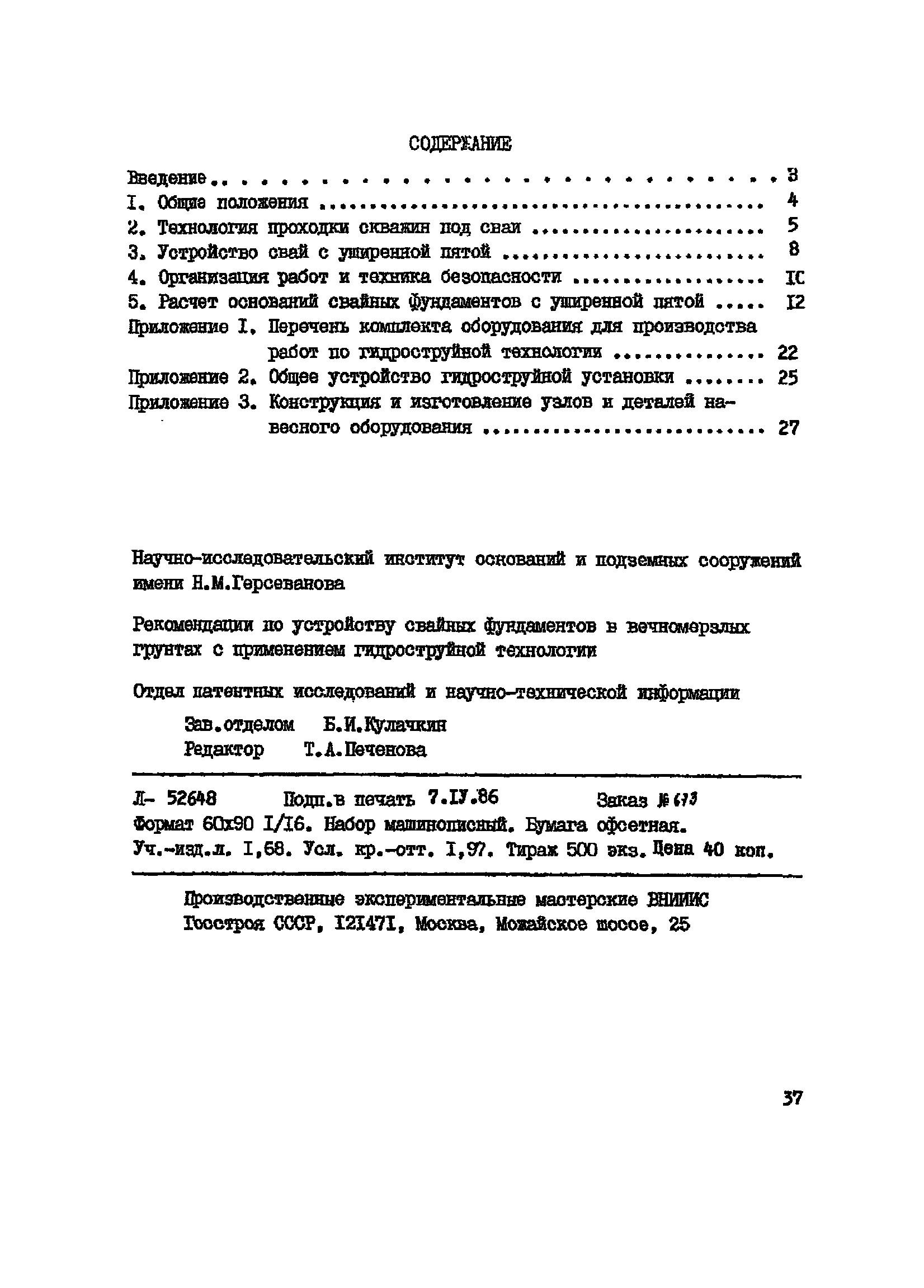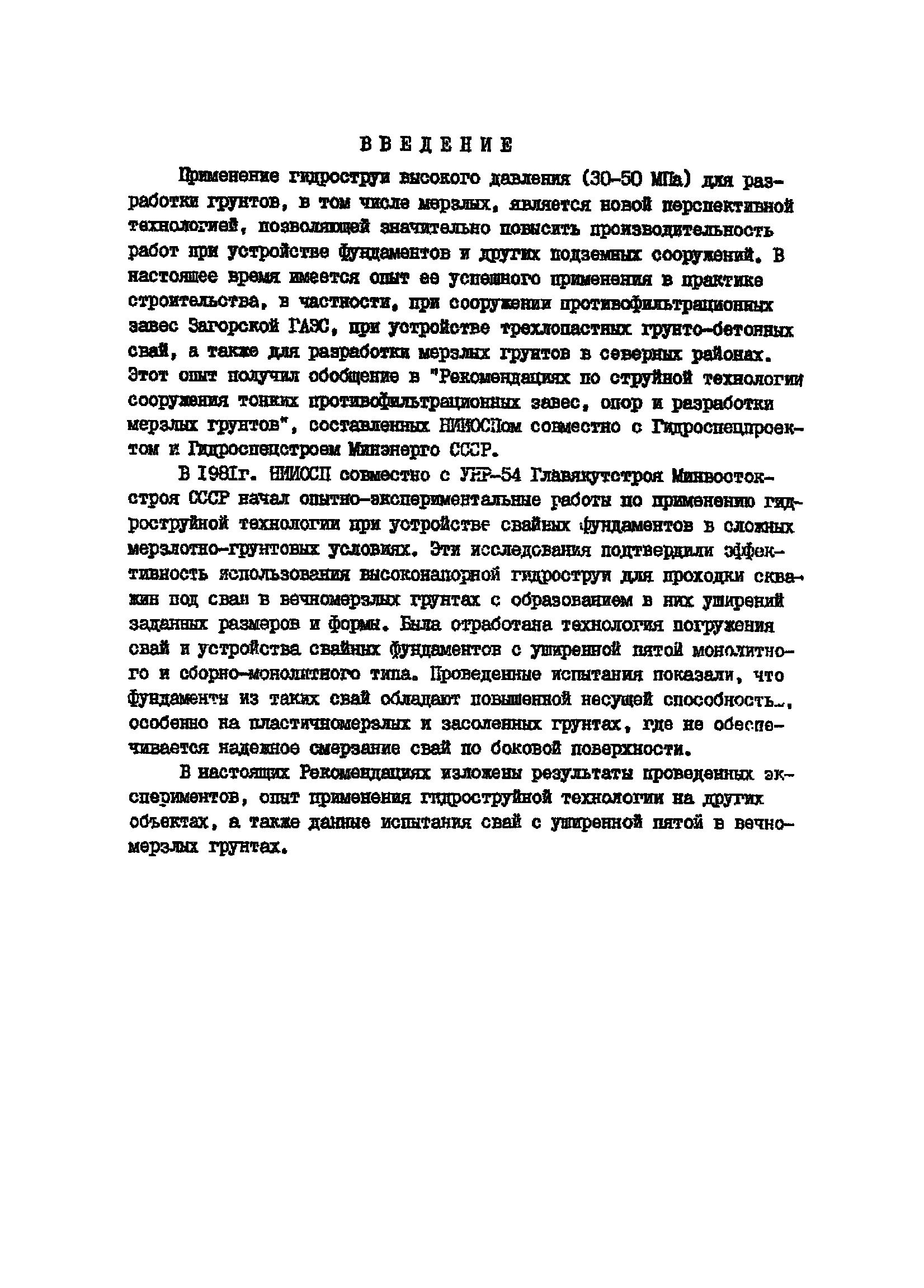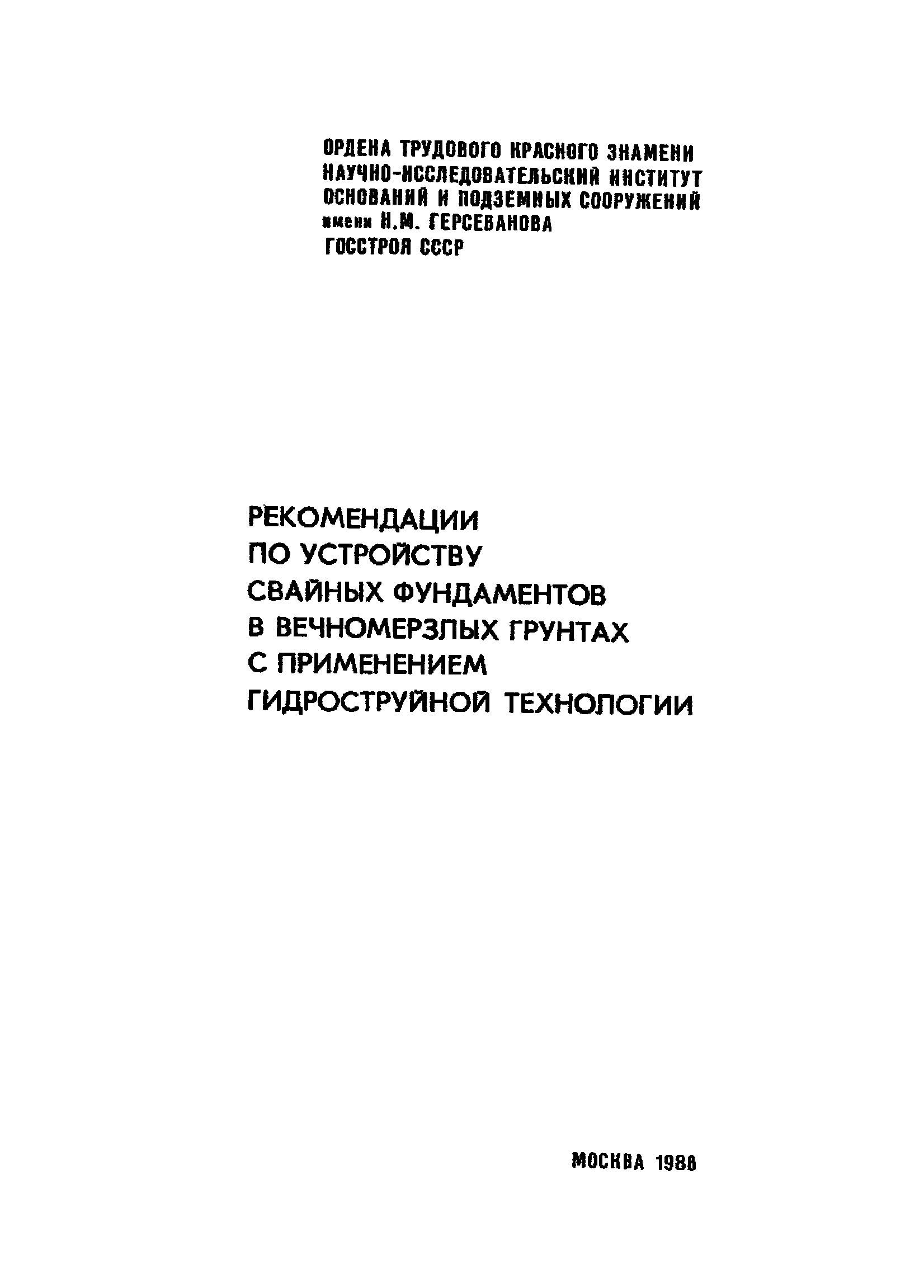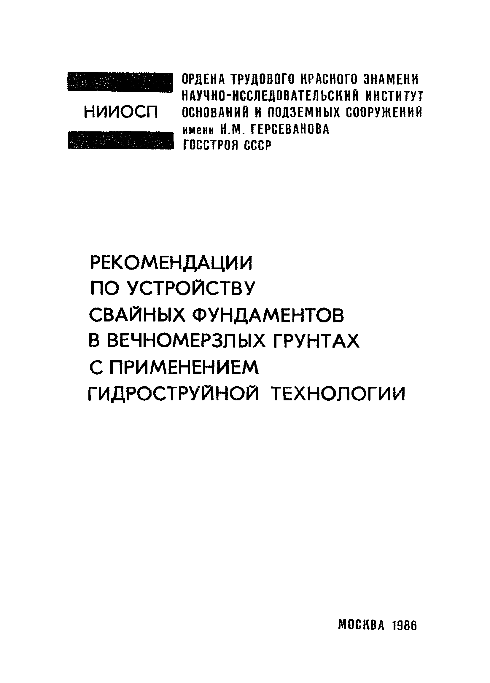 | Название рус.: | Рекомендации по устройству свайных фундаментов в вечномерзлых грунтах с применением гидроструйной технологии |