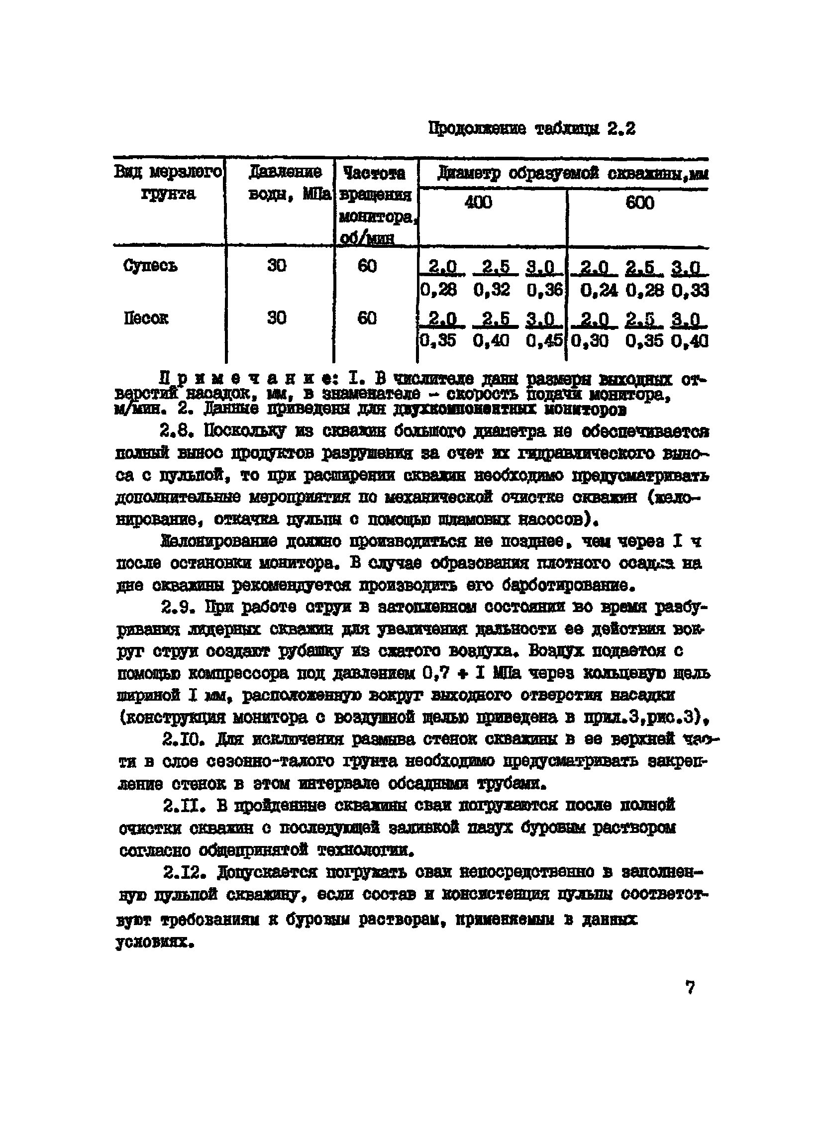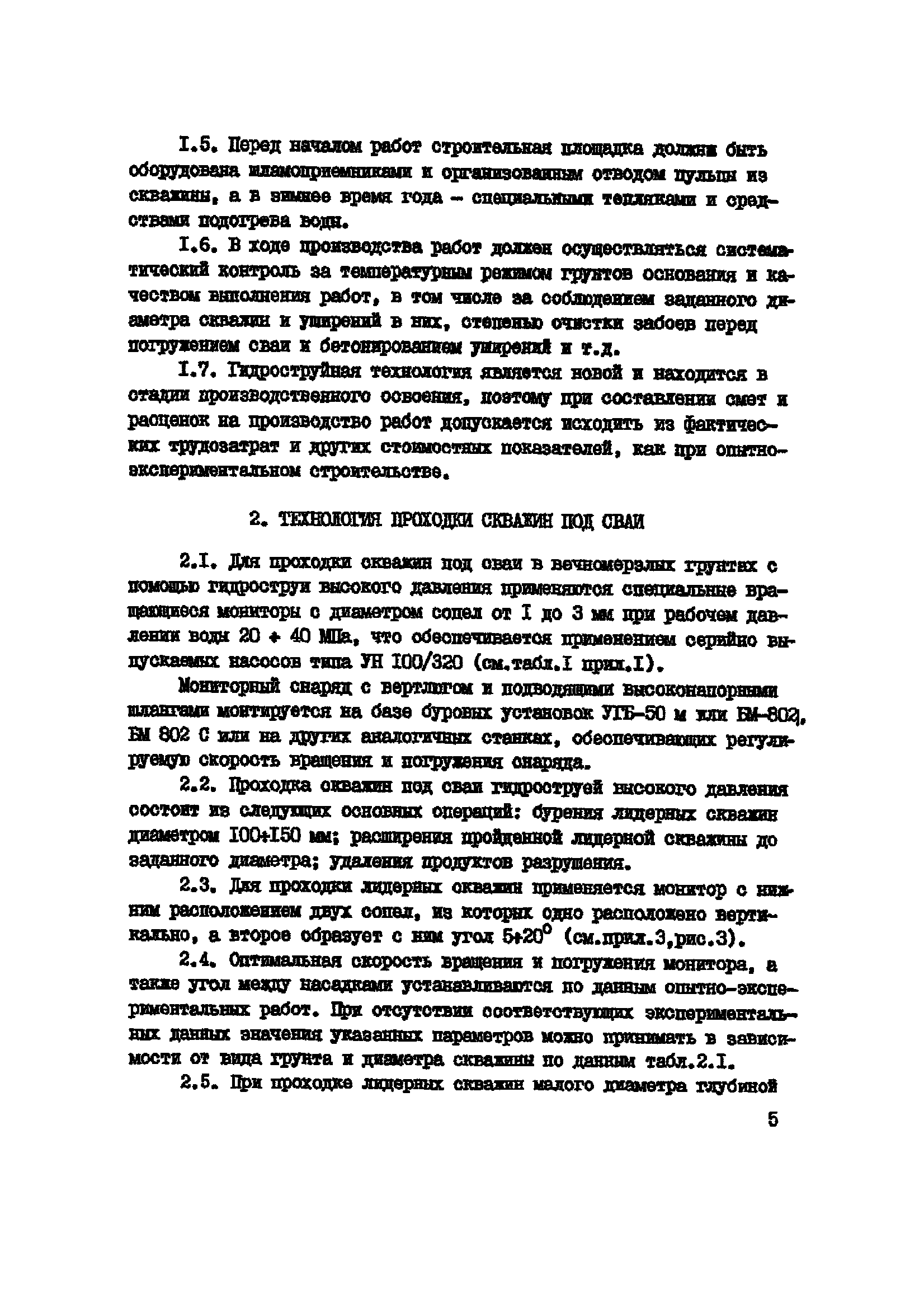 | Область применения: | Рекомендации по применению гидроструйной технологии распространяются на устройство свайных фундаментов во всех видах вечномерзлых грунтов песчано-глинистого состава, включая пластичномерзлые, засоленные и заторфованные грунты при содержании в них не более 20 процентов крупнообломочного материала. |