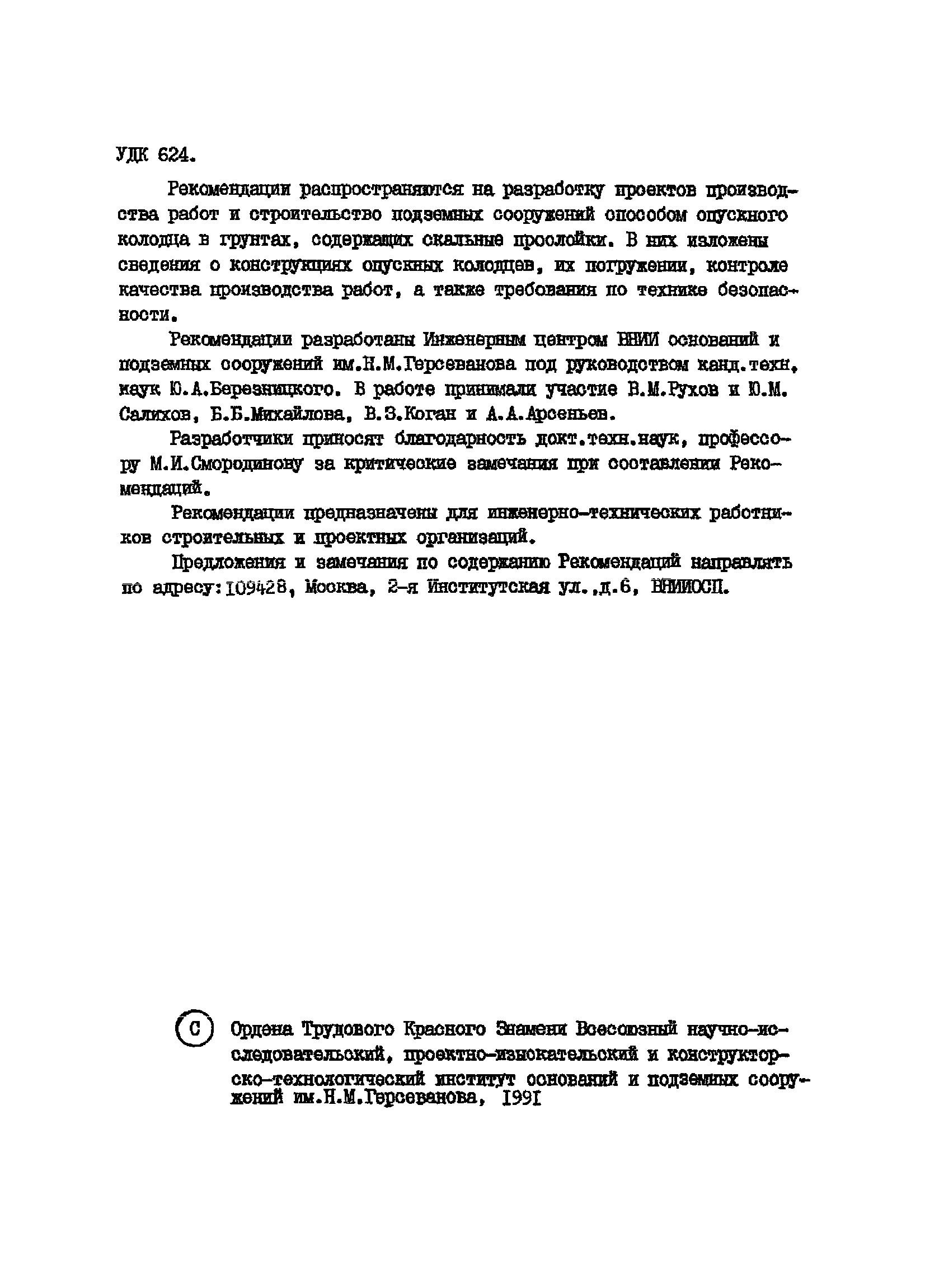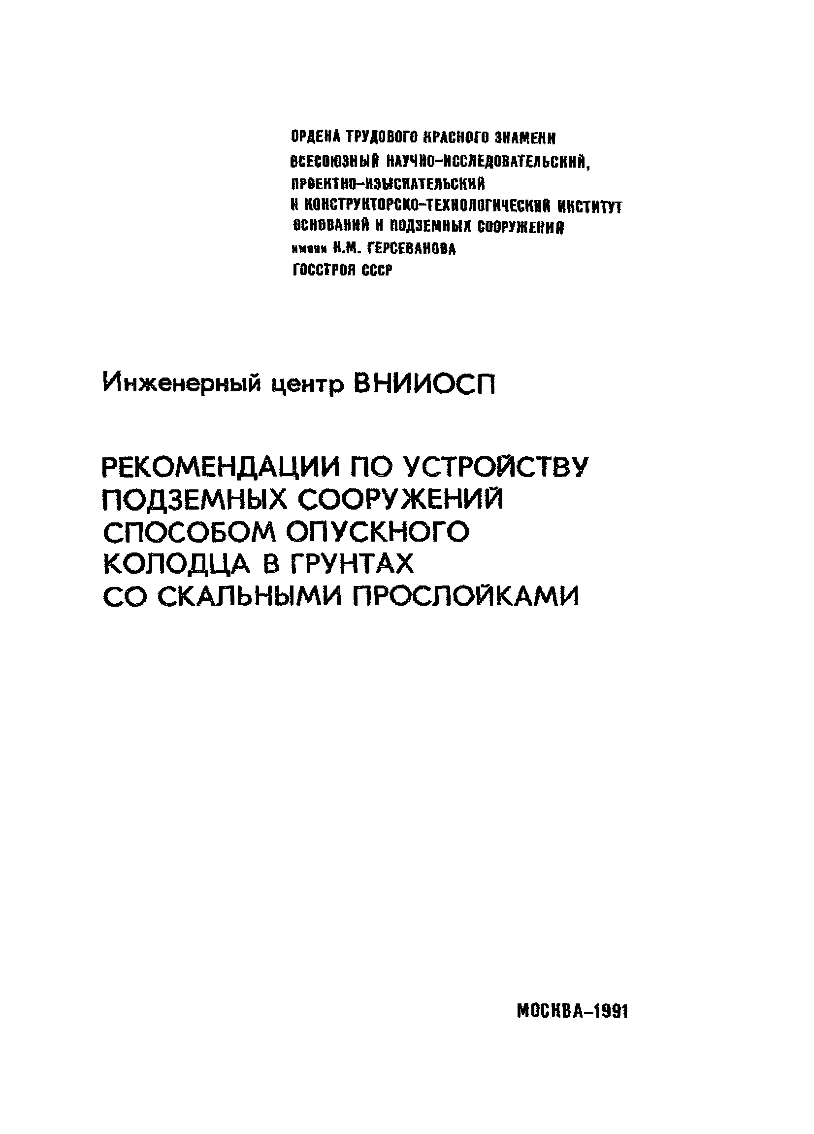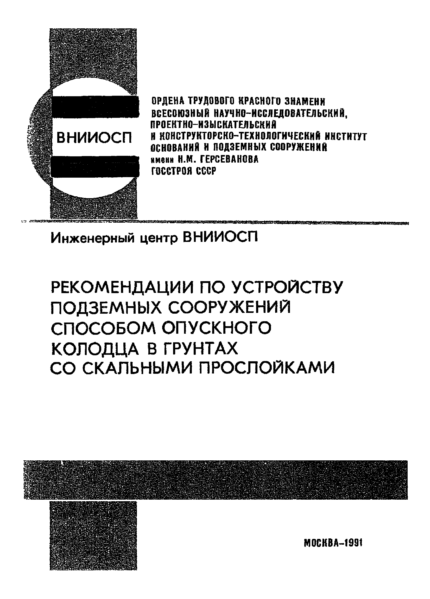 | Название рус.: | Рекомендации по устройству подземных сооружений способом опускного колодца в грунтах со скальными прослойками |