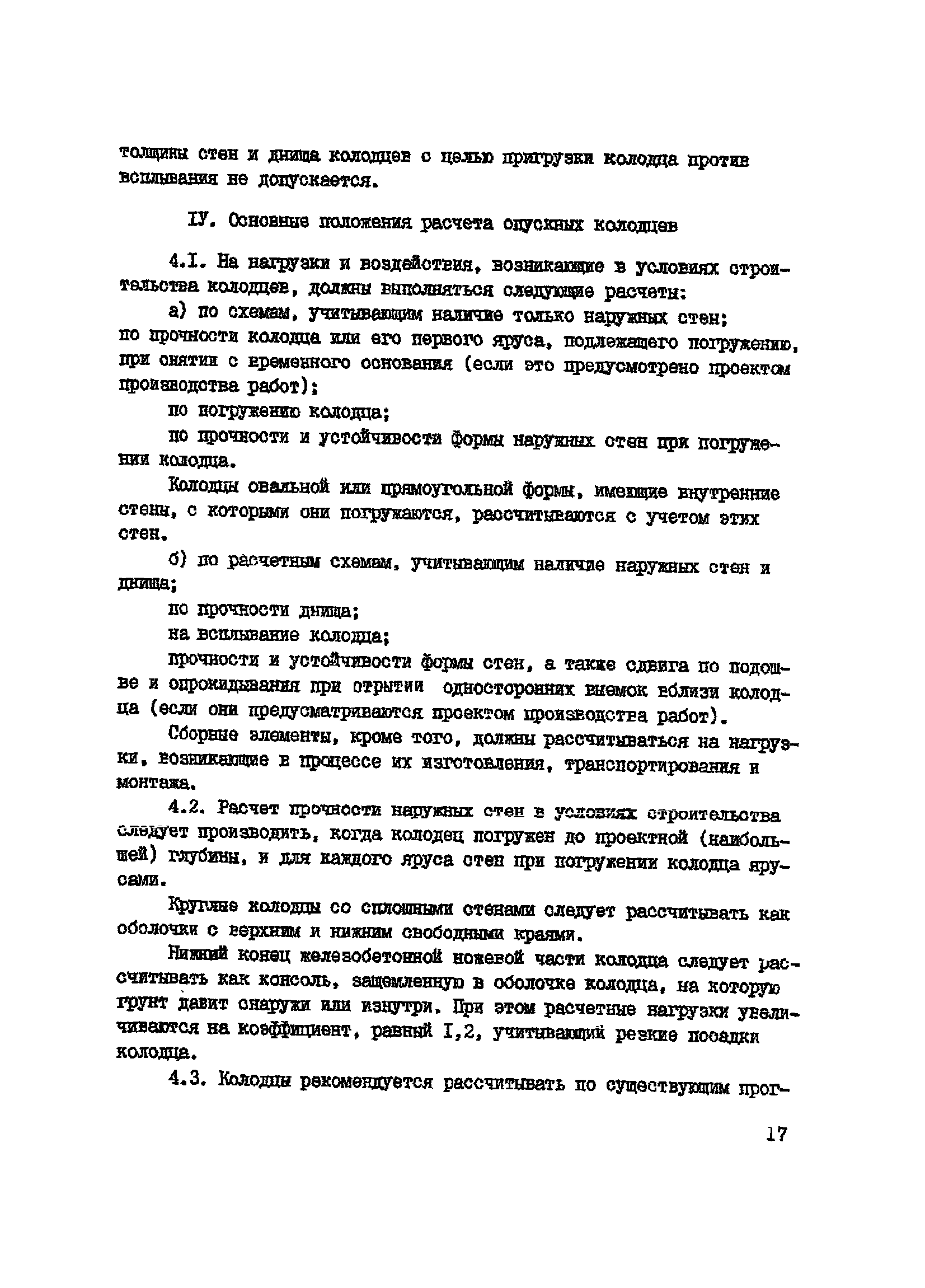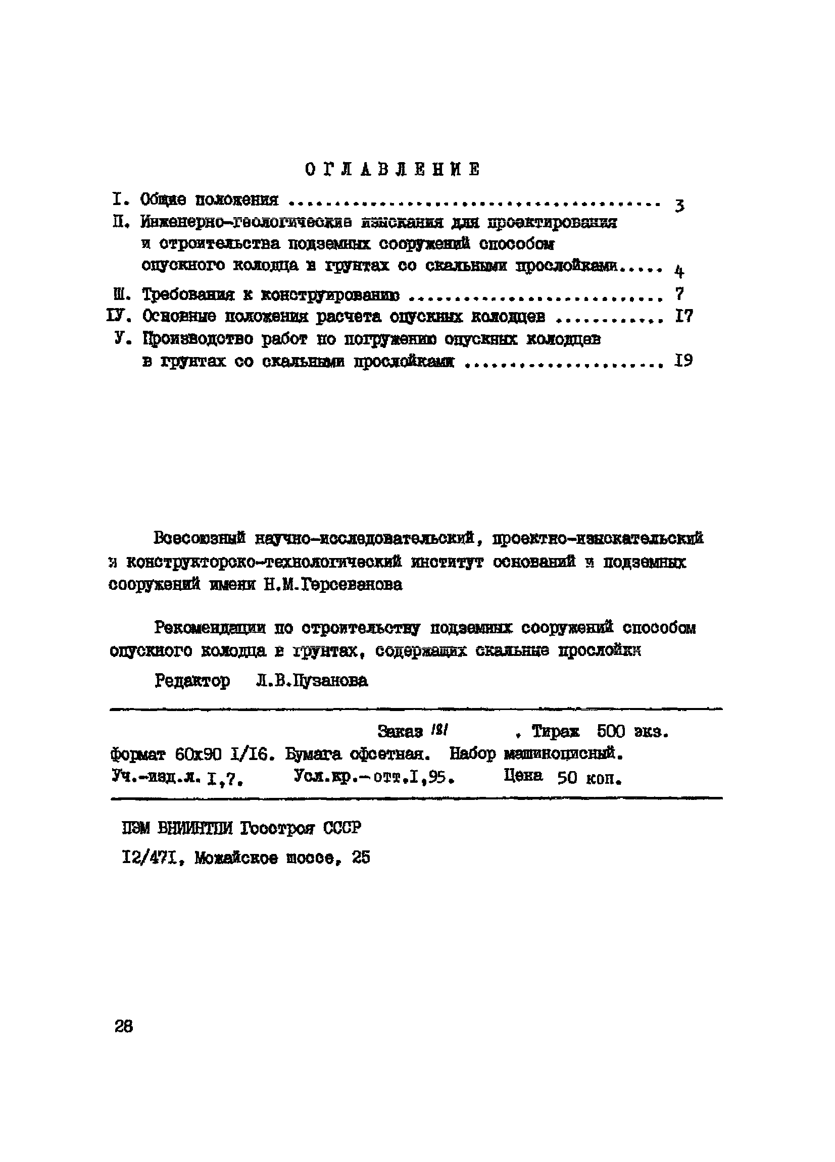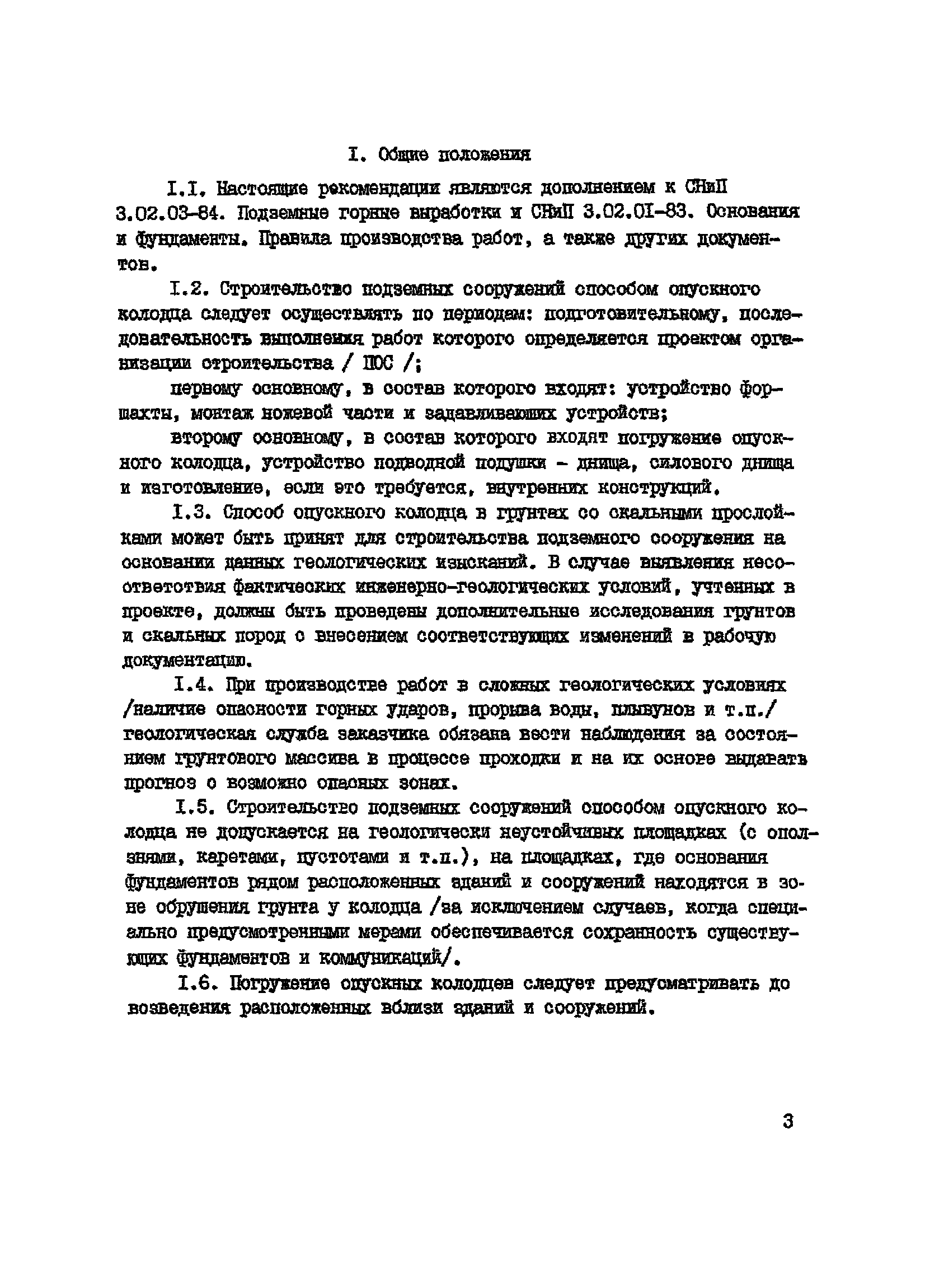 | Оглавление: | I Общие положения II Инженерно-геологические изыскания для проектирования и строительства подземных сооружений способом опускного колодца в грунтах со скальными прослойками III Требования к конструированию IV Основные положения расчета опускных колодцев V Производство работ по погружению опускных колодцев в грунтах со скальными прослойками |