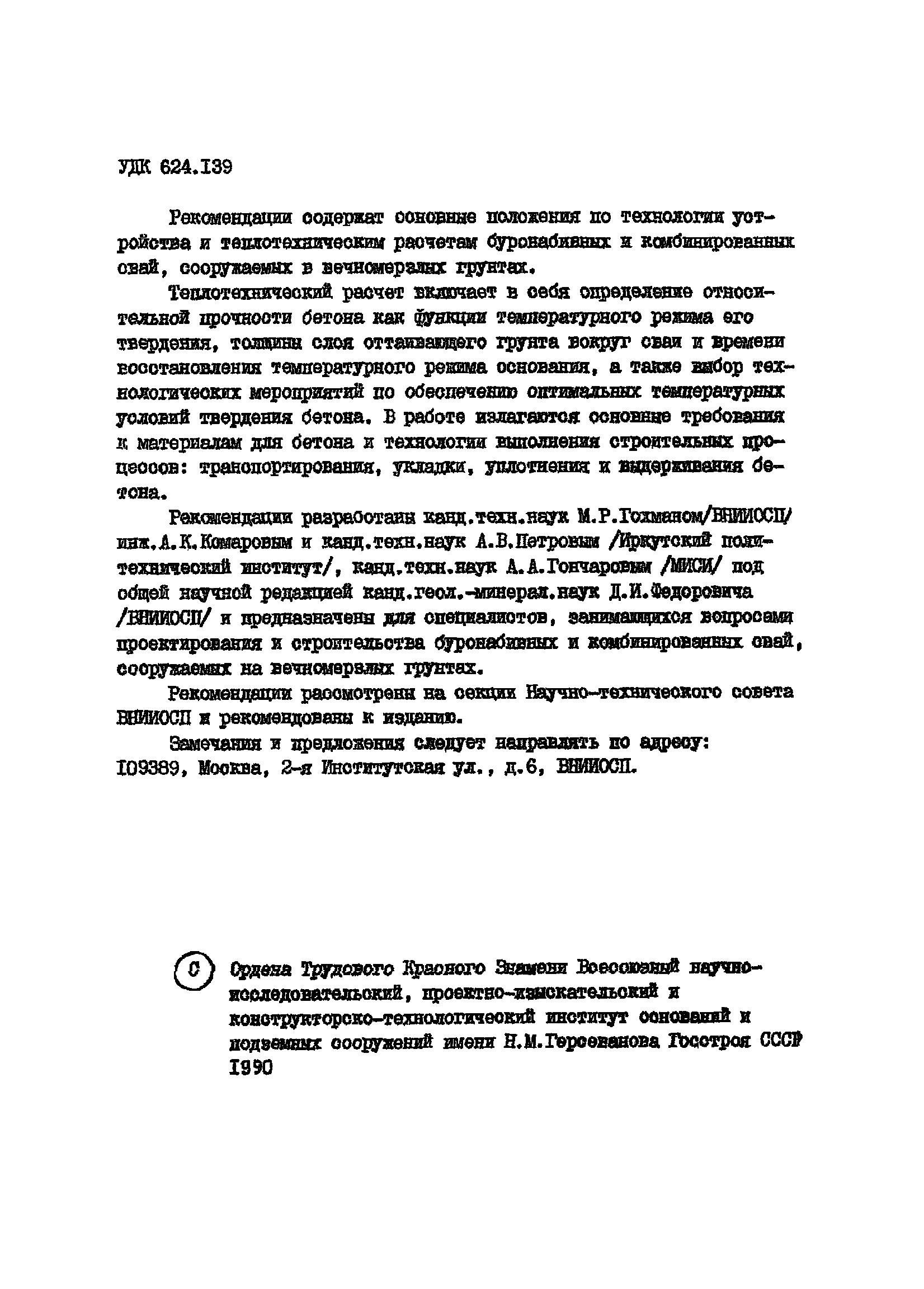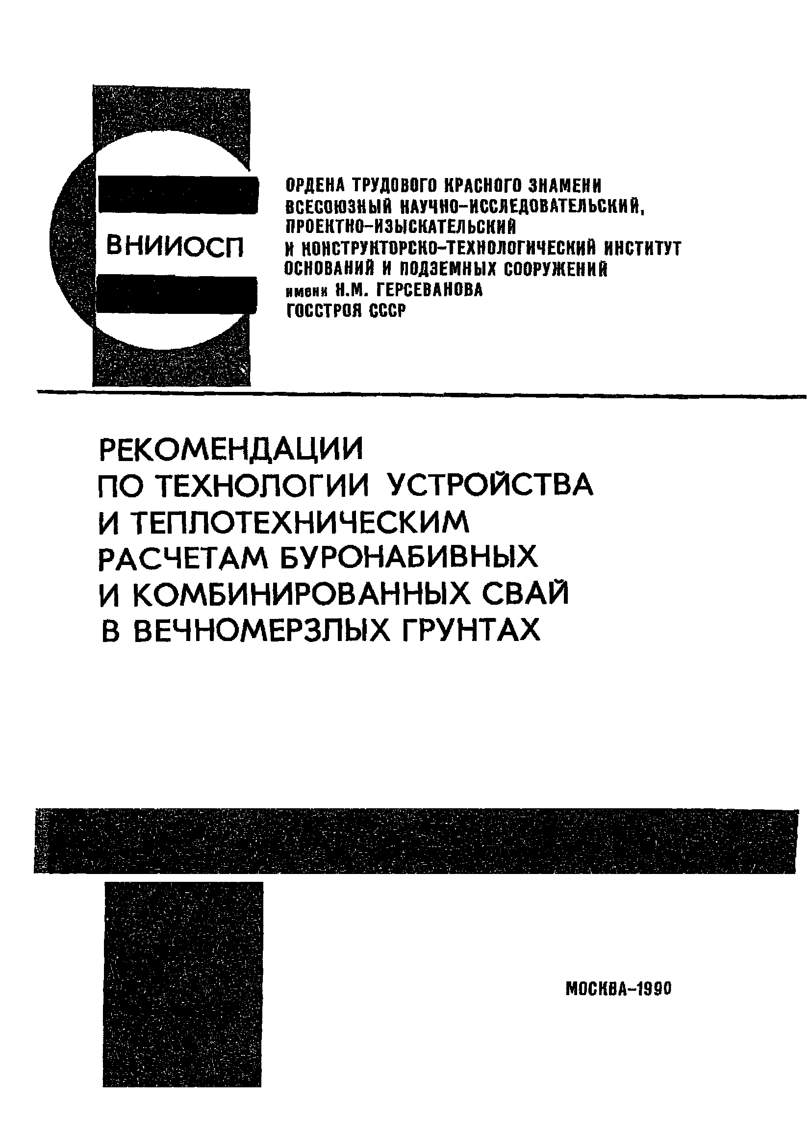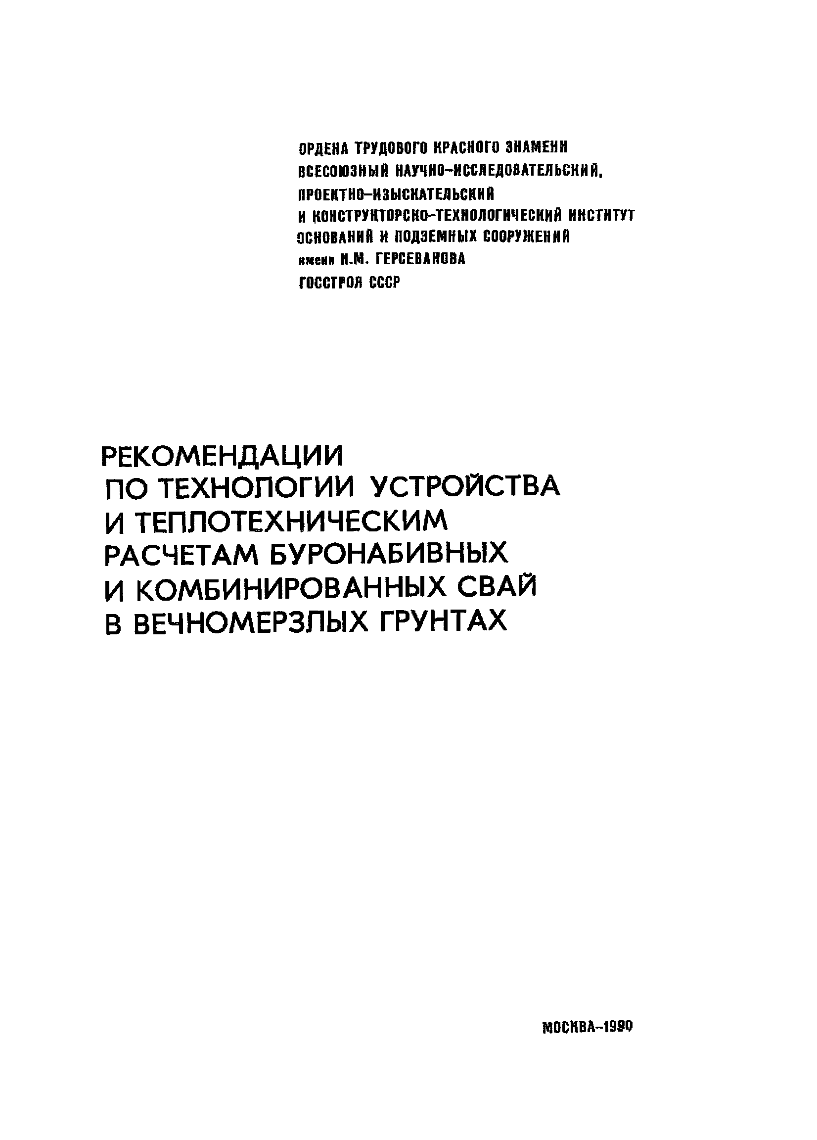 | Название рус.: | Рекомендации по технологии устройства и теплотехническим расчетам буронабивных и комбинированных свай в вечномерзлых грунтах |