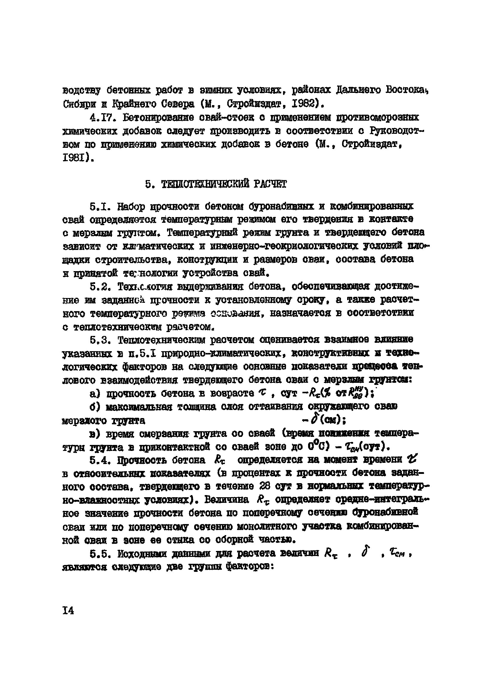 | Оглавление: | 1. Общие положения 2. Особенности проектирования и устройства свай. Требования к бетону 3. Укладка и уплотнение бетонных смесей в скважинах 4. Мероприятия по обеспечению твердения бетона в контакте с вечномерзлым грунтом 5.Теплотехнический расчет 6. Приложения Таблицы и рисунки |
