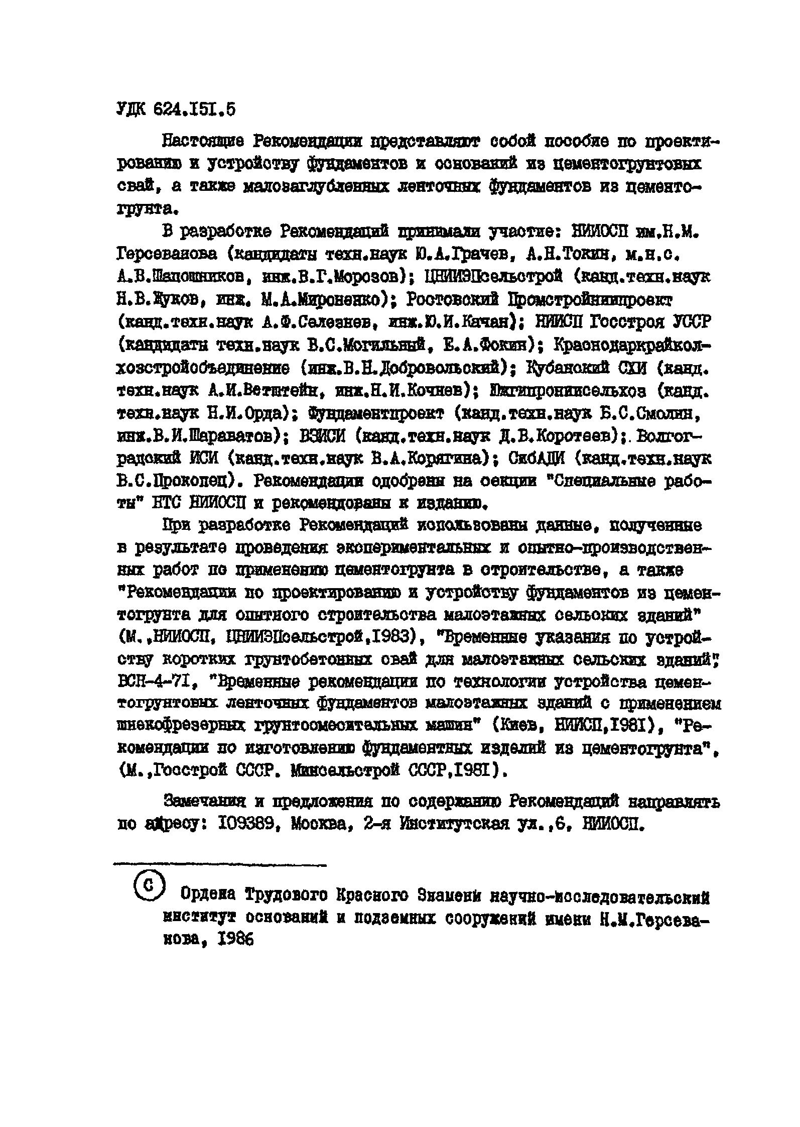 | Название рус.: | Рекомендации по проектированию и устройству фундаментов из цементогрунта |
