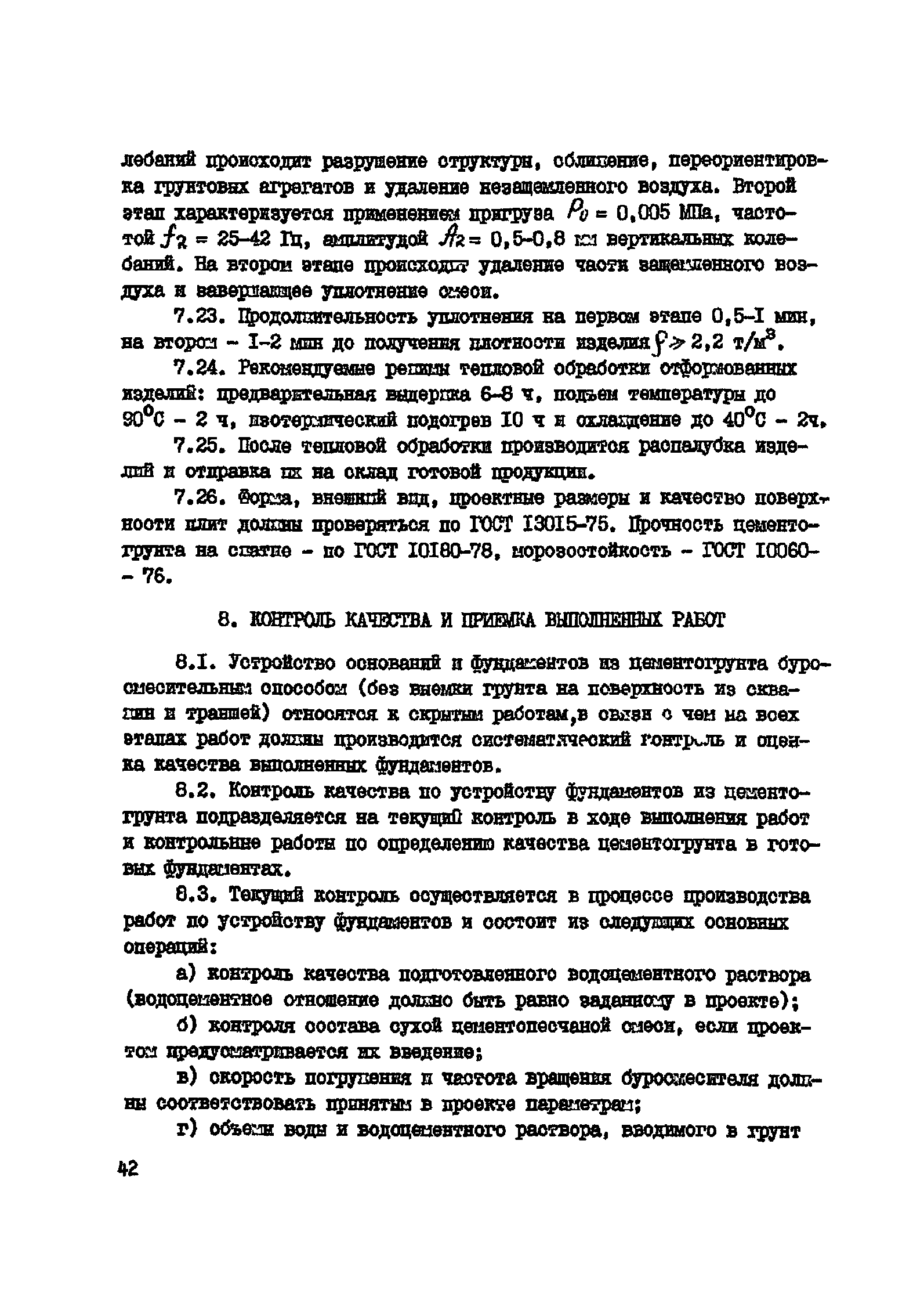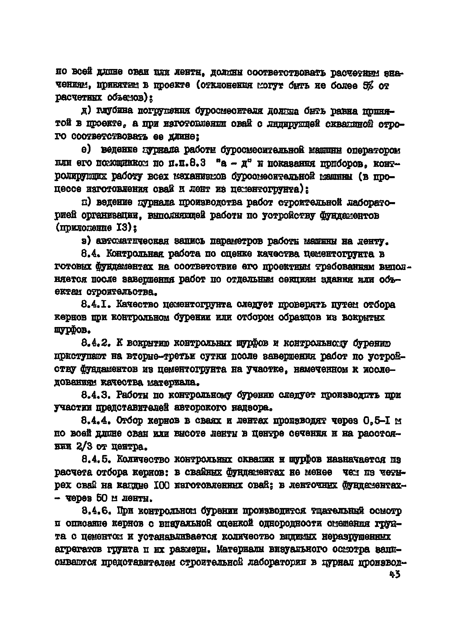 | Оглавление: | 1. Общие положения 2. Требования и материалы 3. Проектирование фундаментов из цементогрунта 4. Проектирование несущей способности цементогрунтовых свай по результатам статических испытаний 5. Подбор состава цементогрунтовой смеси 6. Технология и организация работ по устройству монолитных фундаментов из цементогрунта А. Свайные фундаменты Б. Ленточные фундаменты 7. Сборные фундаменты 8. Контроль качества и приемка выполненных работ 9. Техника безопасности Приложения 1 - 13 |