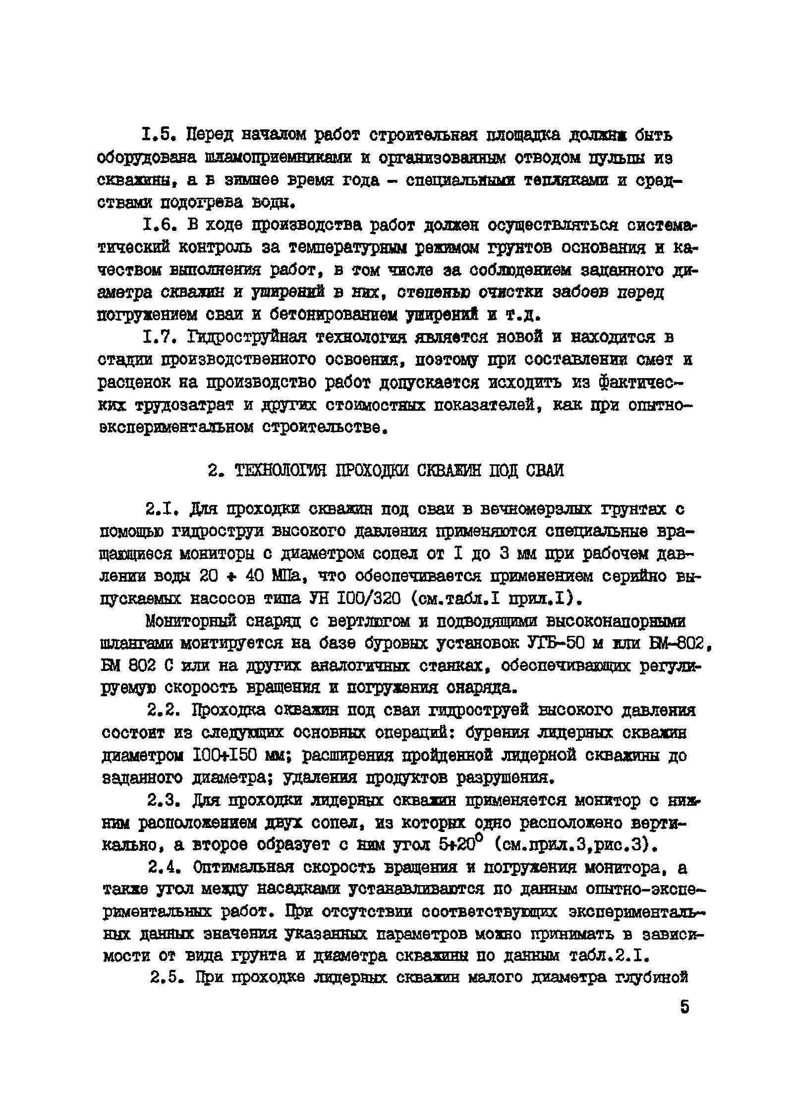 | Оглавление: | Введение 1. Общие положения 2. Технология проходки скважин под сваи 3. Устройство свай с уширенной пятой 4. Организация работ и техника безопасности 5. Расчет оснований свайных фундаментов с уширенной пятой Приложение 1. Перечень комплекта оборудования для производства работ по гидроструйной технологии Приложение 2. Общее устройство гидроструйной установки Приложение 3. Конструкция и изготовление узлов и деталей навесного оборудования |