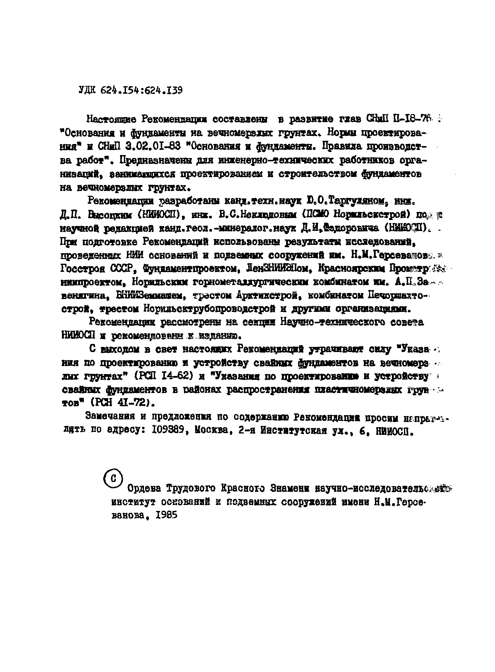 | Утверждён: | НИИОСП им. Н.М. Герсеванова Госстроя СССР (Gersevanov NIIOSP, USSR Gosstroy ) |