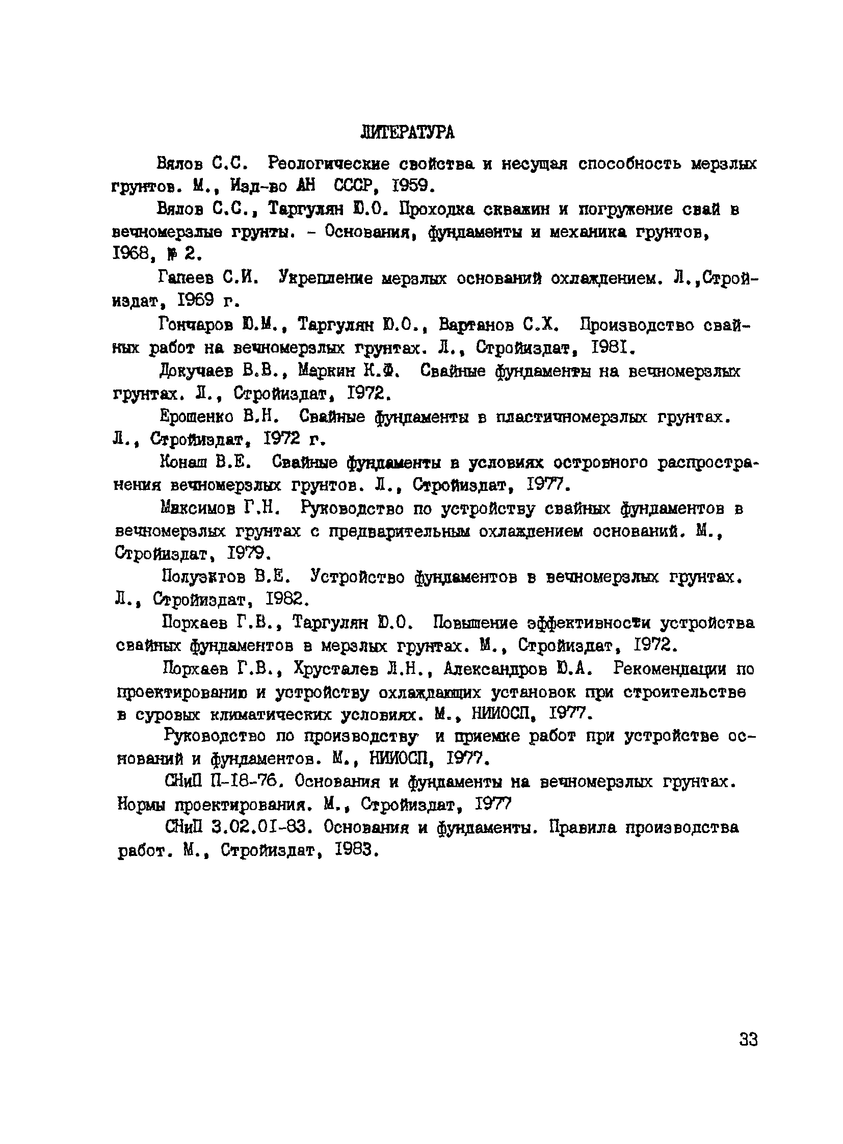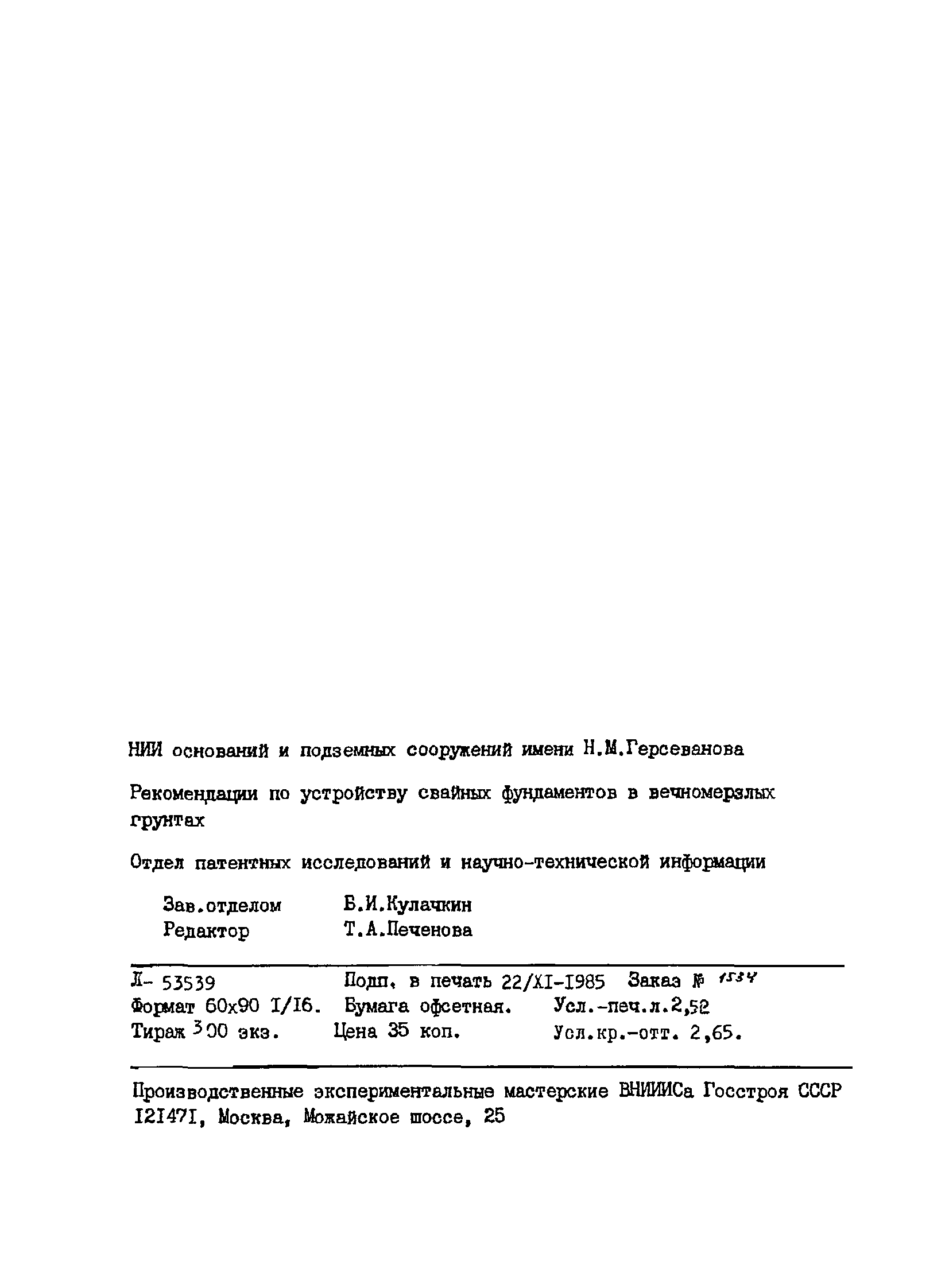 | Название рус.: | Рекомендации по устройству свайных фундаментов в вечномерзлых грунтах |