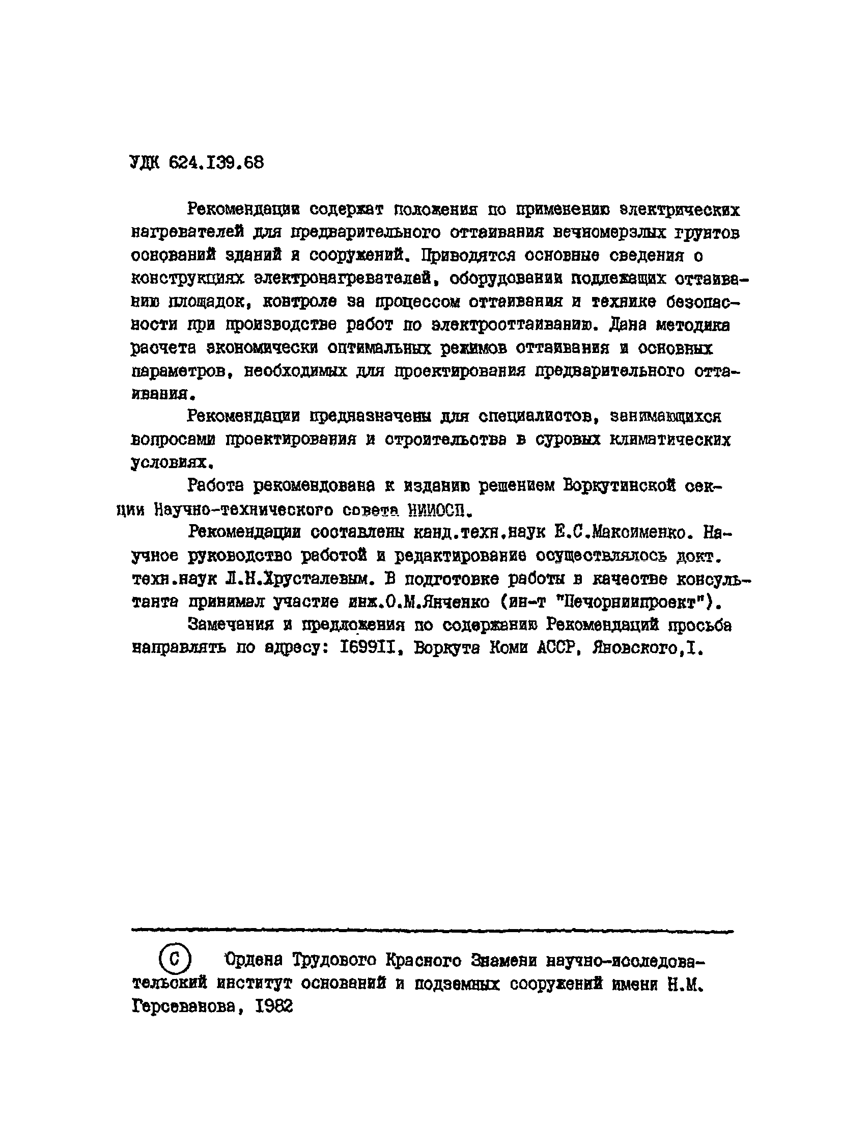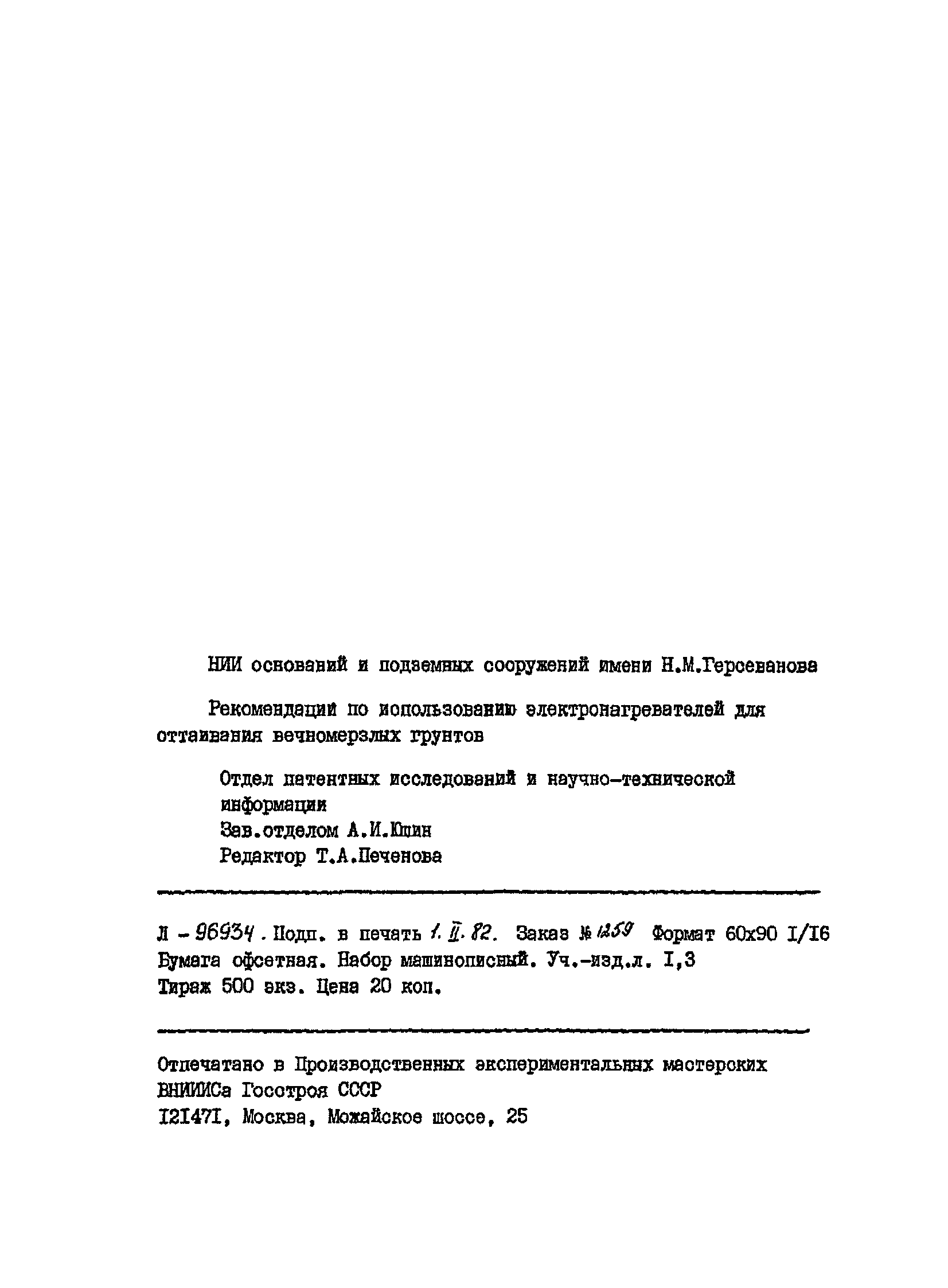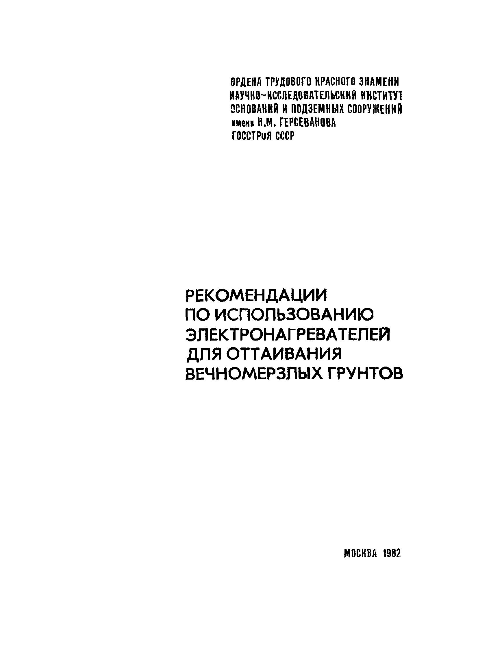 | Название рус.: | Рекомендации по использованию электронагревателей для оттаивания вечномерзлых грунтов |