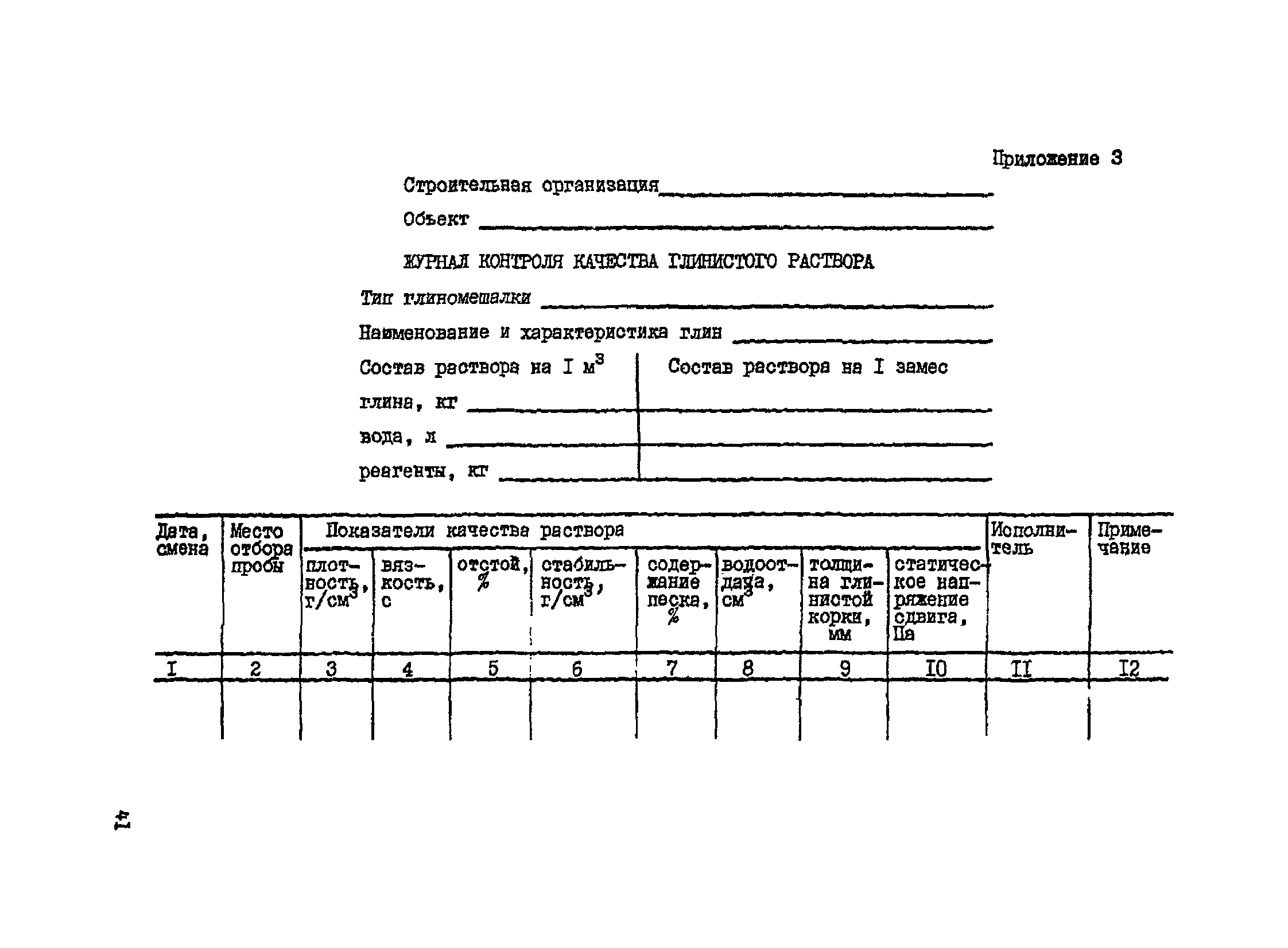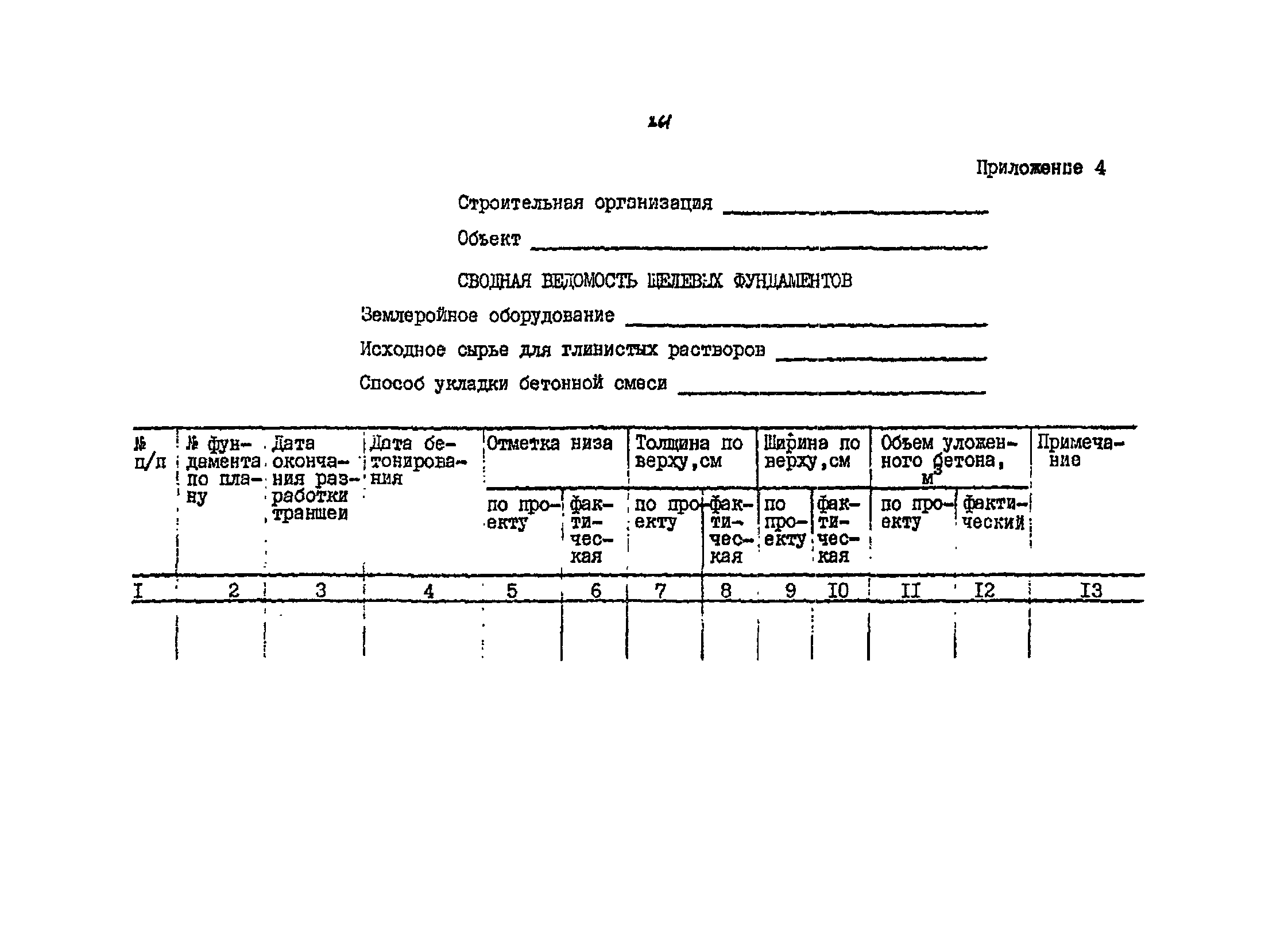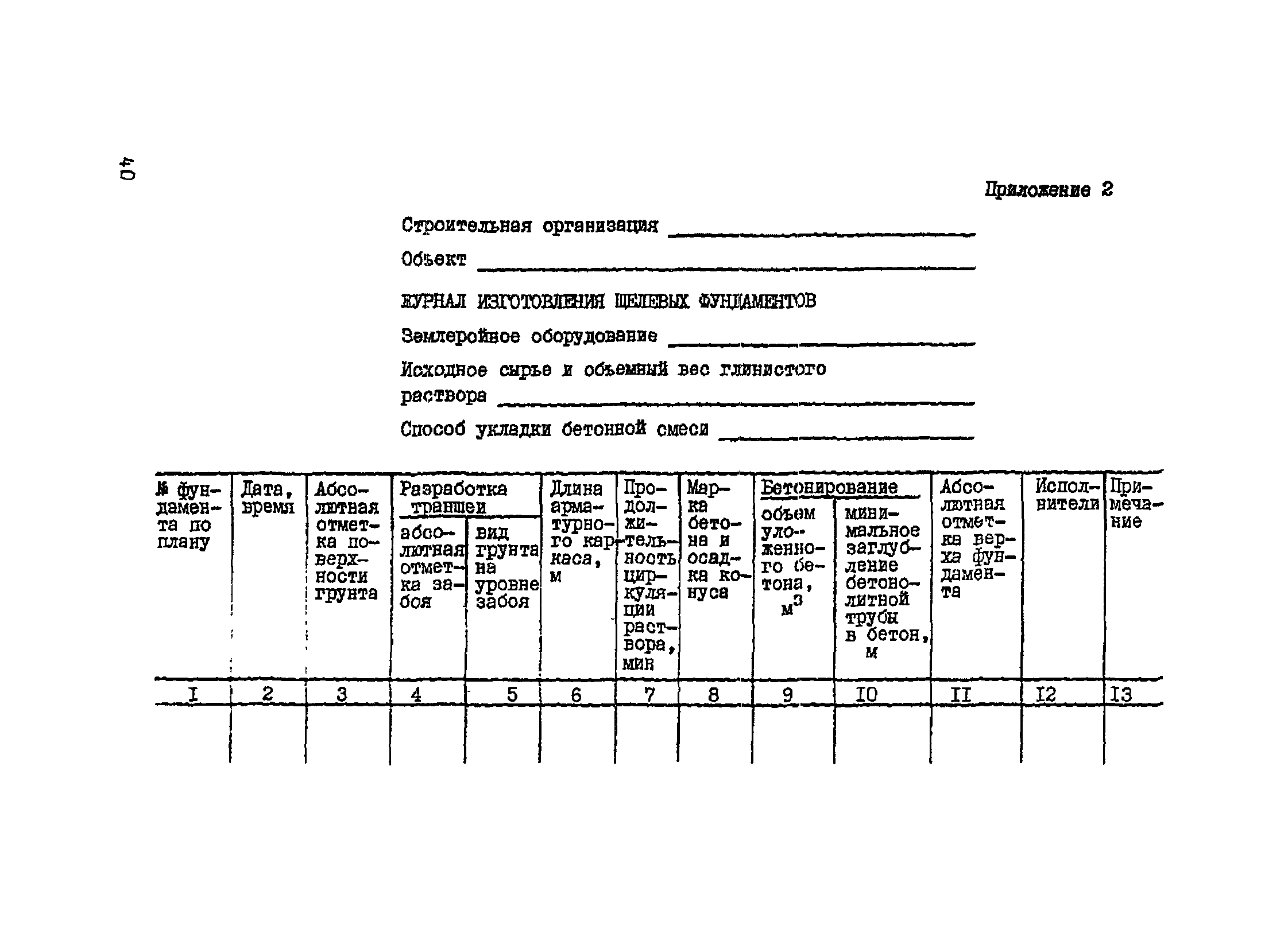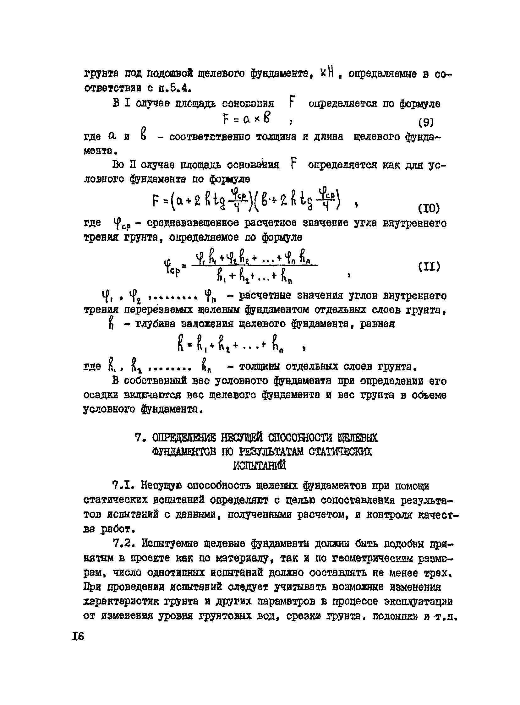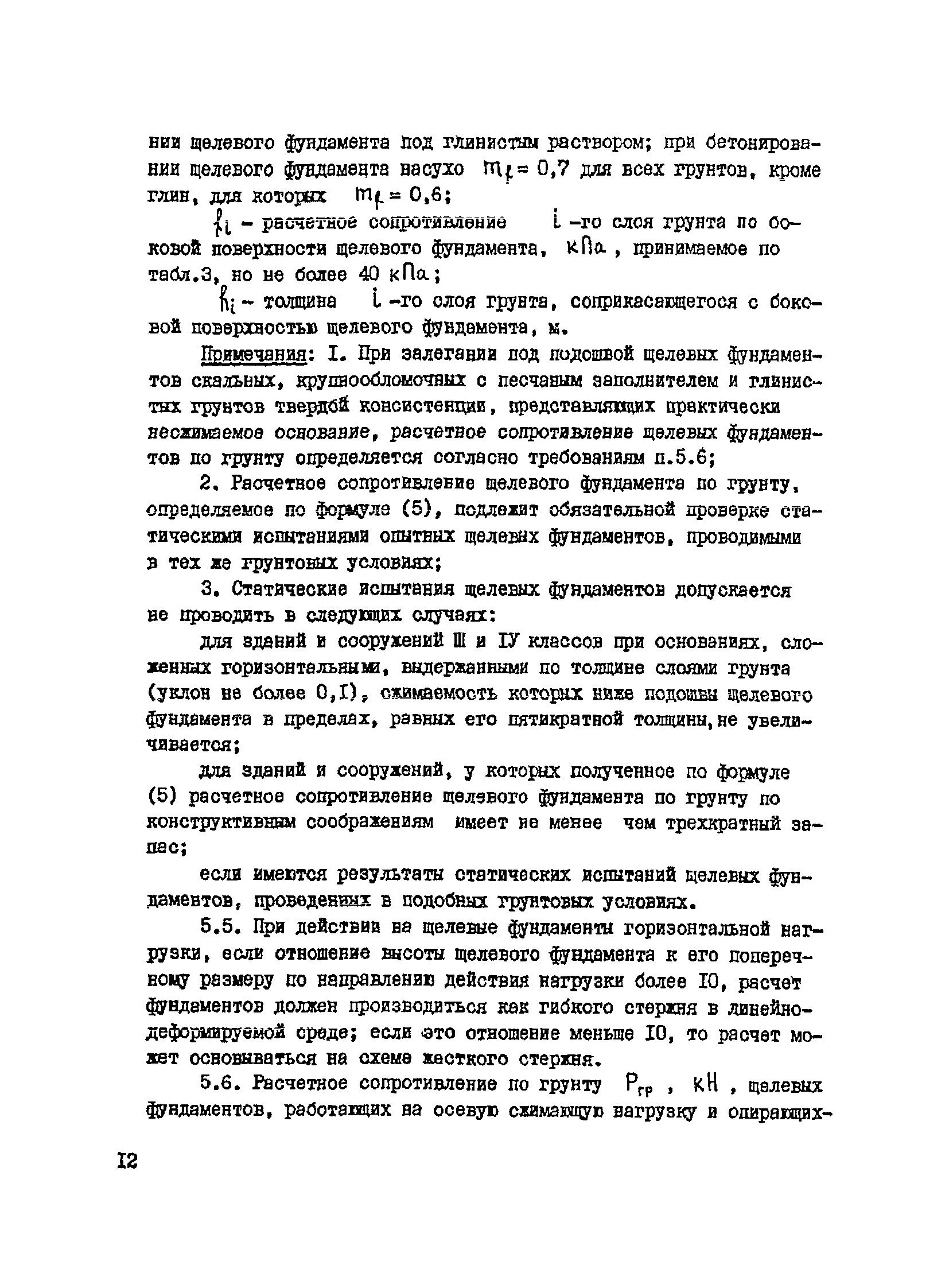 | Оглавление: | Введение 1. Общие положения 2. Исходные данные для проектирования 3. Основные указания по проектированию 4. Основные указания по расчету . 5. Расчет щелевых фундаментов по несущей способности 6. Расчет щелевых моментов по деформациям 7. Определение несущей способности щелевых фундаментов по результатам статических испытаний 8. Организация. производство и приемка работ 9. Землеройное оборудование для разработка траншей 10. Глины и глинистые растворы 1I. Глинорастворное хозяйство Пример определения несущей способности щелевого фундамента по грунту Приложения. |