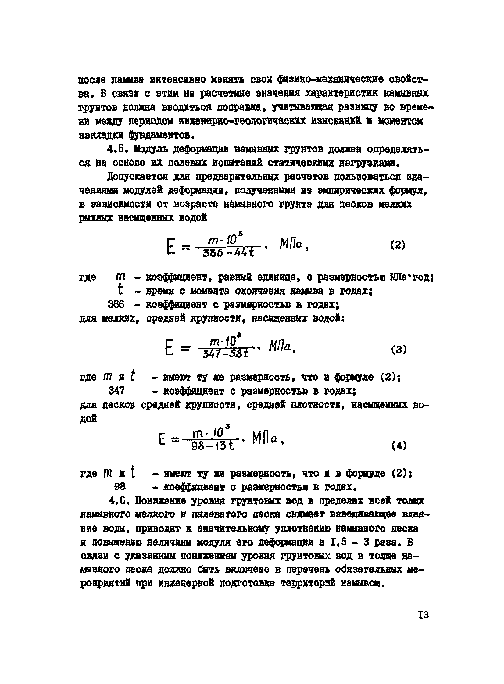 | Оглавление: | 1. Общие положения 2. Инженерно-геологическая оценка территорий, подготавливаемых к строительству намывом 3. Дополнительные требования к инженерно-геологическим изысканиям 4. Физико-механические свойства намывных грунтов 5. Особенности проектирования оснований и фундаментов 6. Конструктивные мероприятия 7. Мероприятия по сокращению сроков консолидации намывных оснований Приложение 1. Методика испытаний грунтов вращательным срезом с помощью лопастного прибора СП-52 Приложение 2. Методика испытаний грунтов статической нагрузкой с помощью строительных элементов Приложение 3. Методика определения коэффициента консолидации по данным компрессионных испытаний грунта |