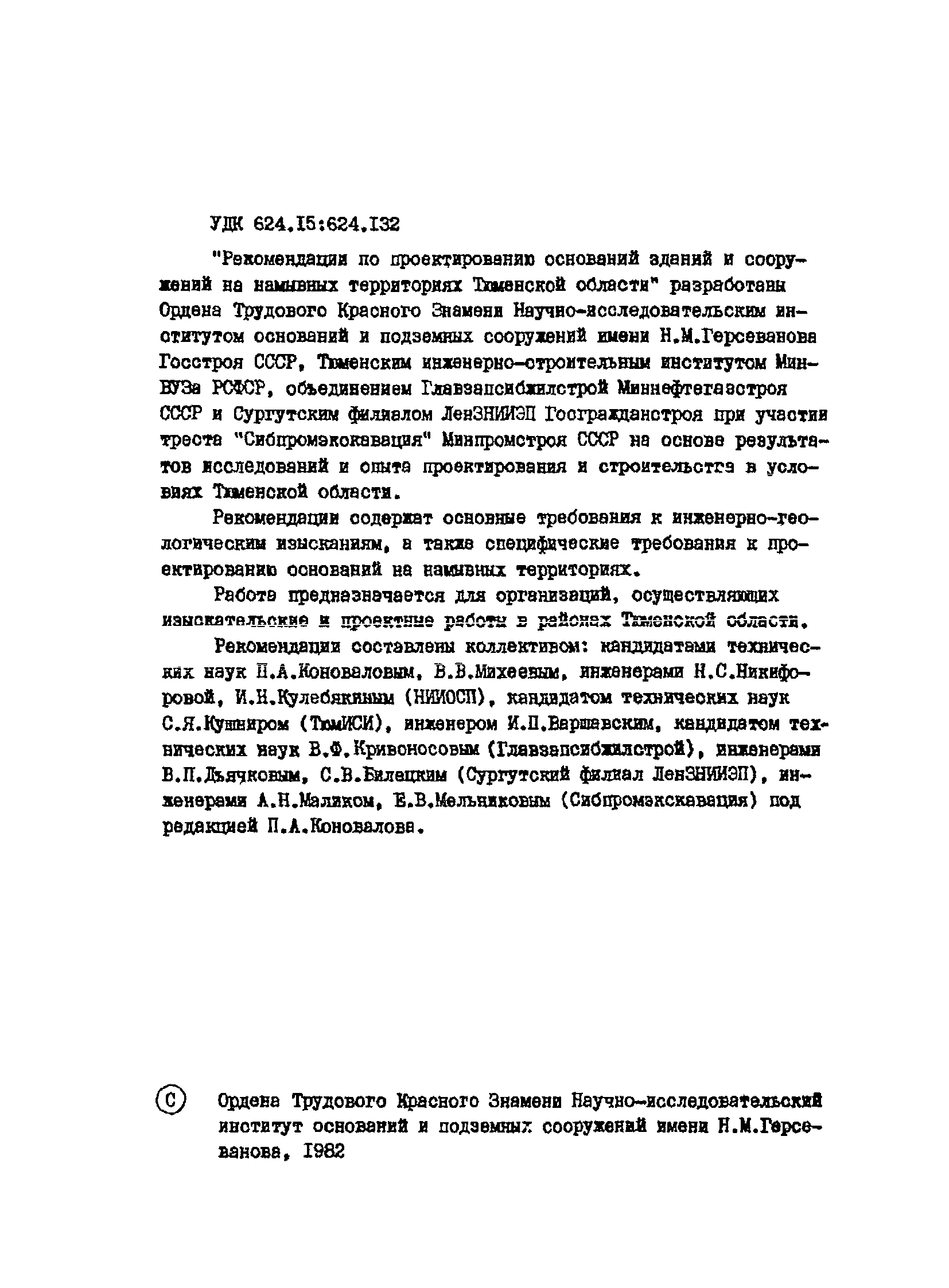 | Разработан: | Тюменский инженерно-строительный институт НИИОСП им. Герсеванова Госстроя России Главзапсибжилстрой Миннефтегазстроя СССР Трест Сибпромэкскавация Минпромстроя СССР |