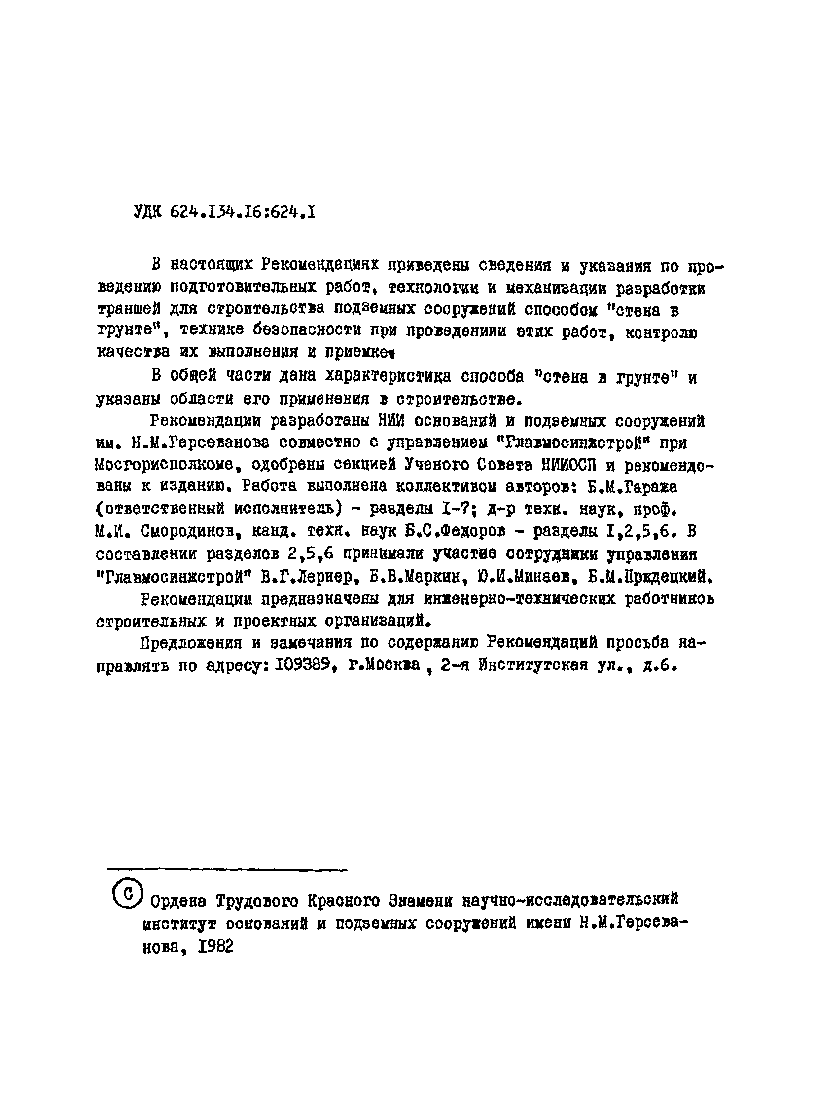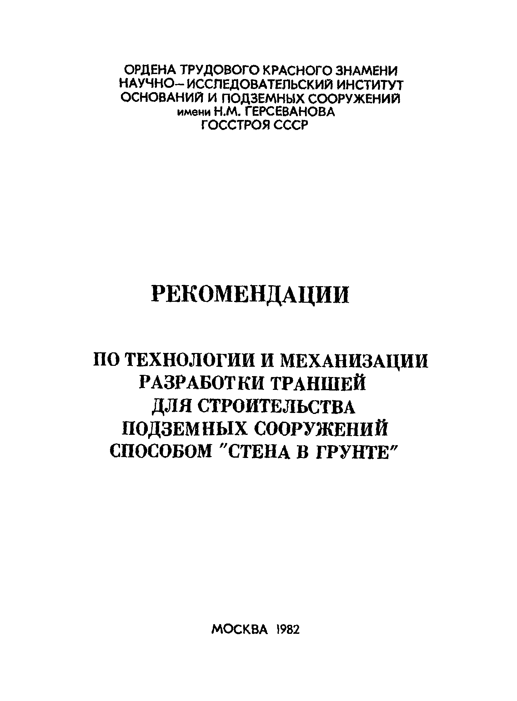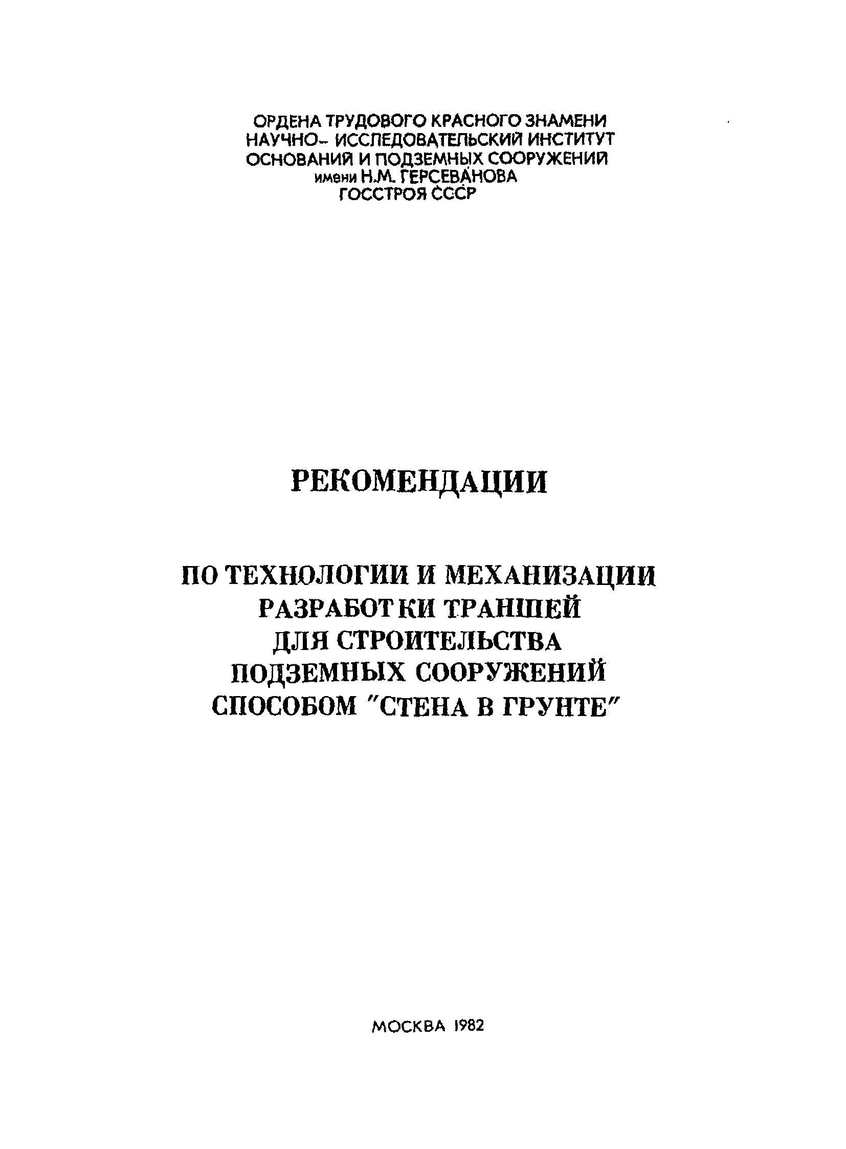 | Название рус.: | Рекомендации по технологии и механизации разработки траншей для строительства подземных сооружений способом "стена в грунте" |