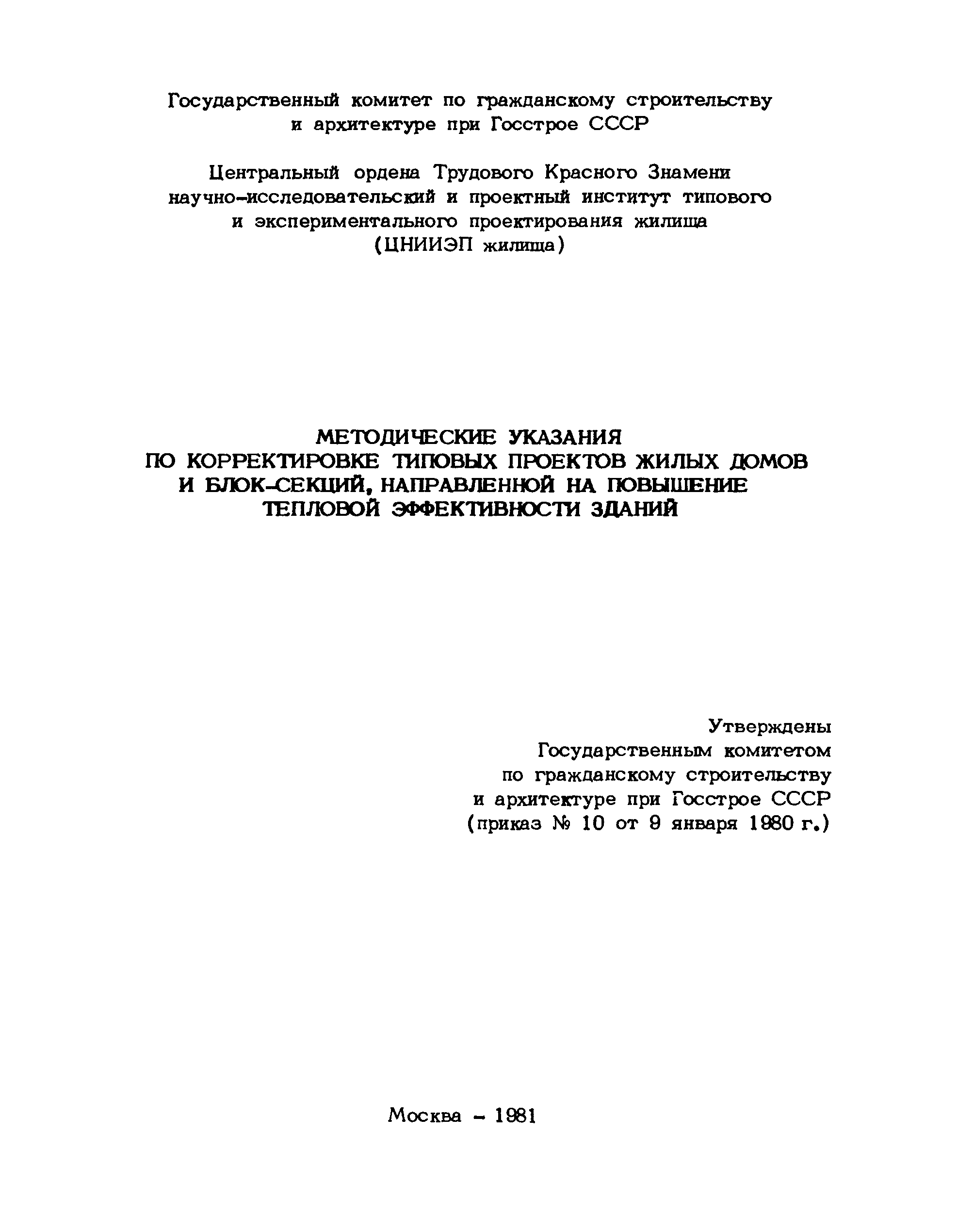 | Утверждён: | 09.01.1980 Государственный комитет по гражданскому строительству (10) |