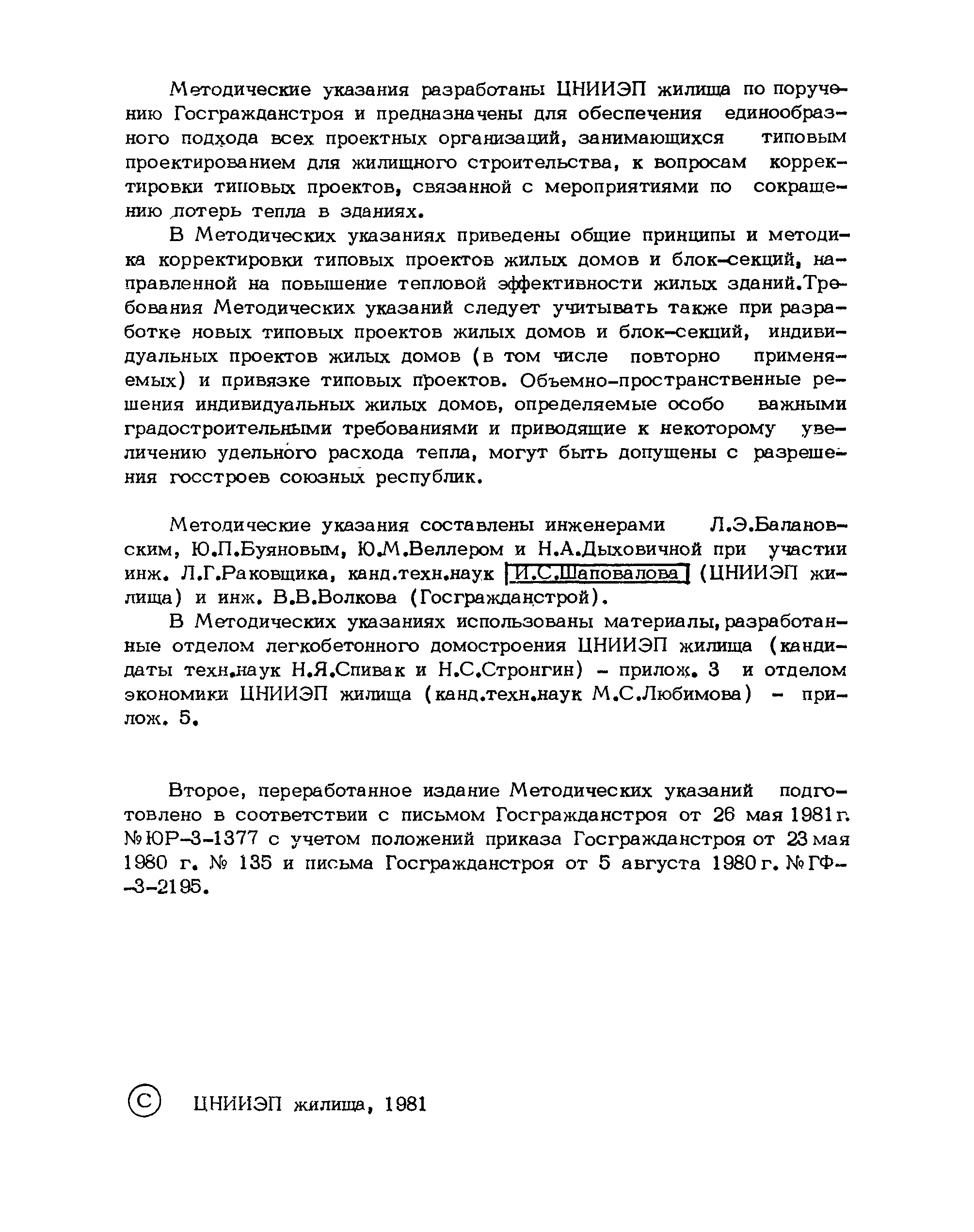 | Название рус.: | Методические указания по корректировке типовых проектов жилых домов и блок-секций, направленной на повышение тепловой эффективности зданий |
