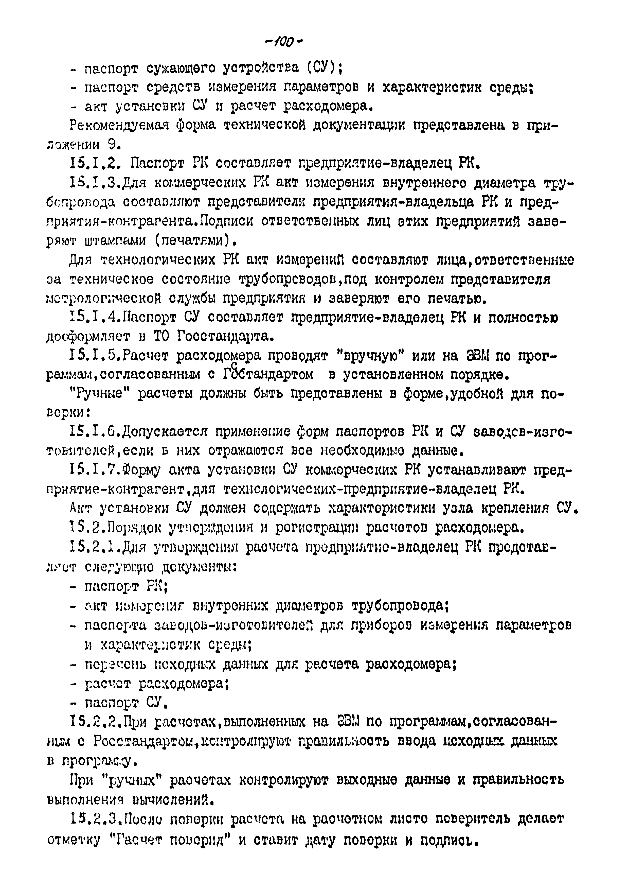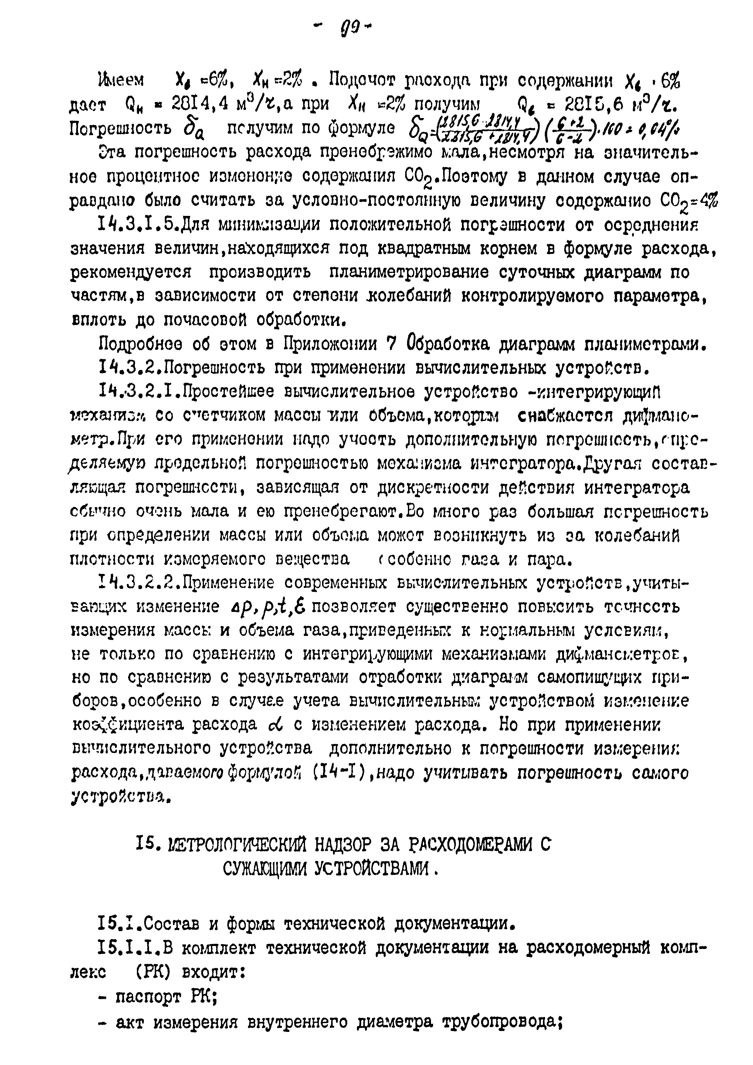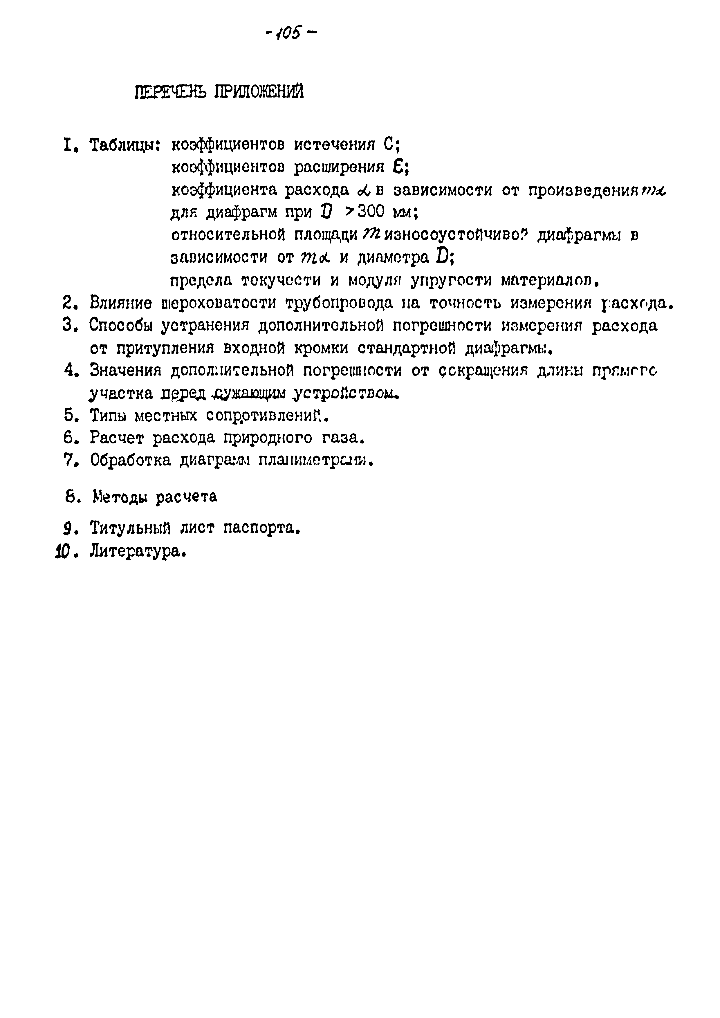 | Оглавление: | 1 Назначение и область применения 2 Условные обозначения 3 Нормативные ссылки 4 Определения 5 Метод измерения 6 Общие требования к измерениям 7 Требования к установке сужающих устройств 8 Диафрагмы 9 Сопло ИСА 1932 10 Трубы расходомерные 11 Средства измерения Схемы установок разделительных сосудов 12 Физические свойства природного газа 13 Расчетные формулы и методы расчета 14 Погрешность измерения расхода, массы и объема 15 Метрологический надзор за расходомерами с сужающими устройствами 16 Сроки поверки сужающих устройств Приложение 1. Таблицы Приложение 2. Влияние шероховатости трубопровода на точность измерения расхода Приложение 3. Способы устранения дополнительной погрешности измерения расхода от притупления входной кромки стандартной диафрагмы Приложение 4. Значения дополнительной погрешности от сокращения длины прямого участка перед сужающим устройством Приложение 5. Типы местных сопротивлений Приложение 6. Алгоритм расчета расхода массы и объема природного газа Приложение 7. Обработка диаграмм планиметрами Приложение 8 (рекомендуемое). Методы расчета Приложение 9. Титульный лист паспорта Приложение 10. Литература |