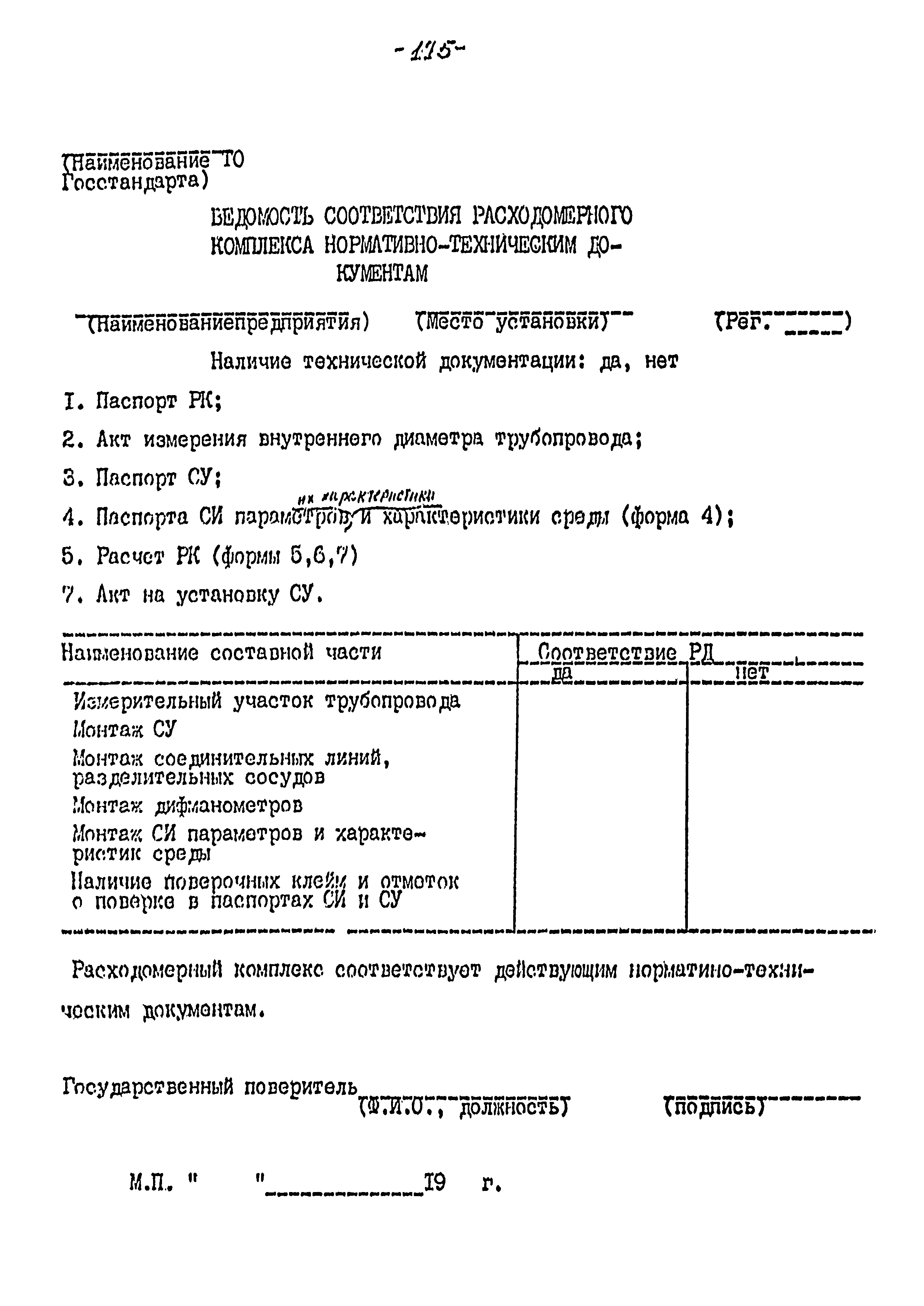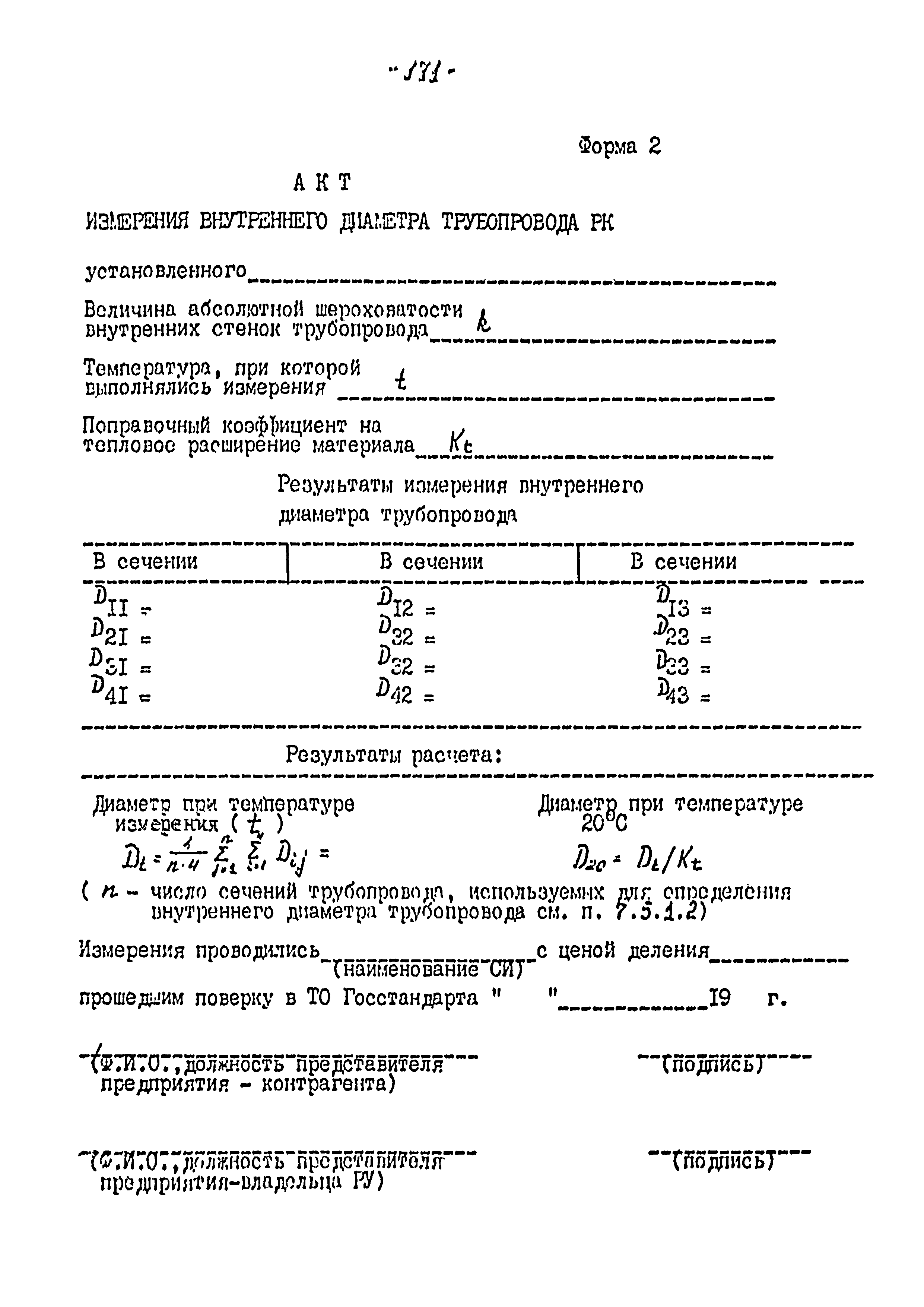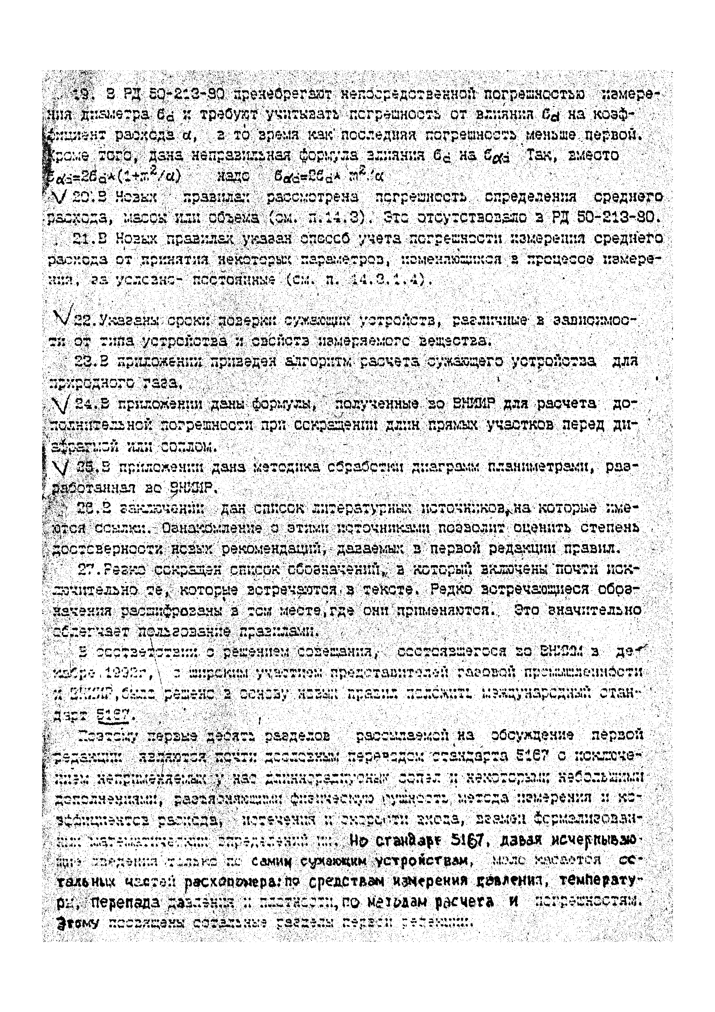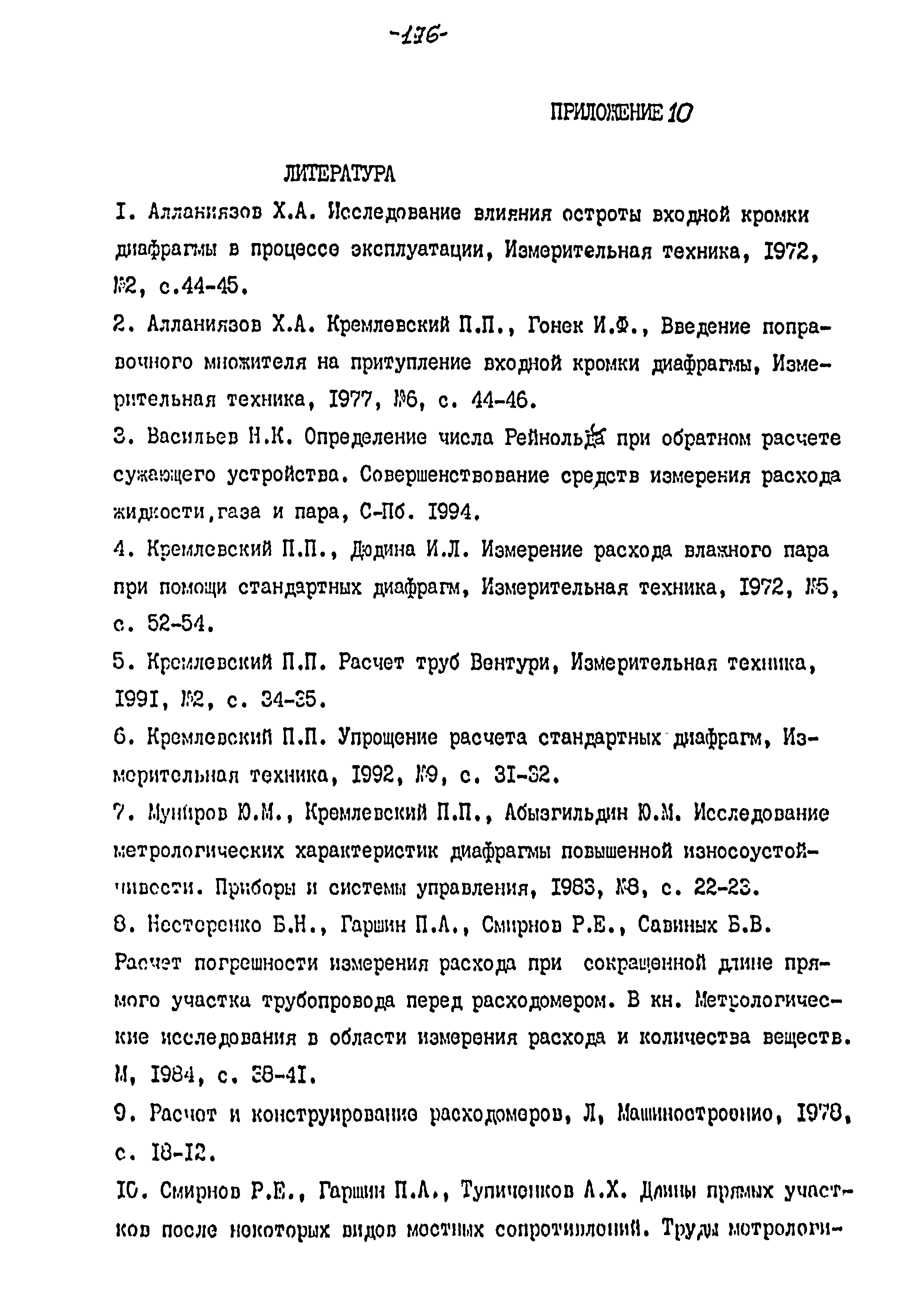 | Оглавление: | 1 Назначение и область применения 2 Условные обозначения 3 Нормативные ссылки 4 Определения 5 Метод измерения 6 Общие требования к измерениям 7 Требования к установке сужающих устройств 8 Диафрагмы 9 Сопло ИСА 1932 10 Трубы расходомерные 11 Средства измерения Схемы установок разделительных сосудов 12 Физические свойства природного газа 13 Расчетные формулы и методы расчета 14 Погрешность измерения расхода, массы и объема 15 Метрологический надзор за расходомерами с сужающими устройствами 16 Сроки поверки сужающих устройств Приложение 1. Таблицы Приложение 2. Влияние шероховатости трубопровода на точность измерения расхода Приложение 3. Способы устранения дополнительной погрешности измерения расхода от притупления входной кромки стандартной диафрагмы Приложение 4. Значения дополнительной погрешности от сокращения длины прямого участка перед сужающим устройством Приложение 5. Типы местных сопротивлений Приложение 6. Алгоритм расчета расхода массы и объема природного газа Приложение 7. Обработка диаграмм планиметрами Приложение 8 (рекомендуемое). Методы расчета Приложение 9. Титульный лист паспорта Приложение 10. Литература |