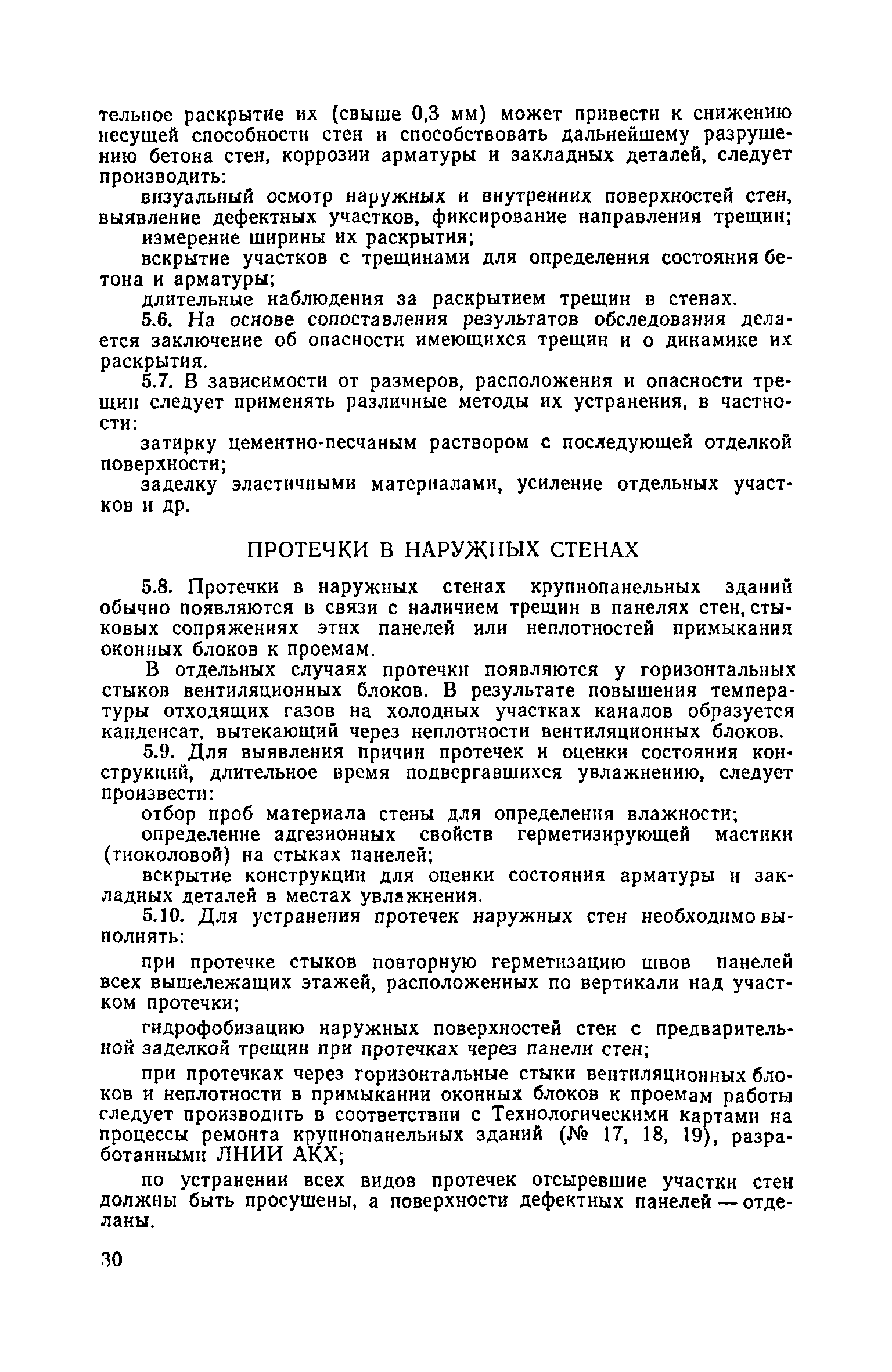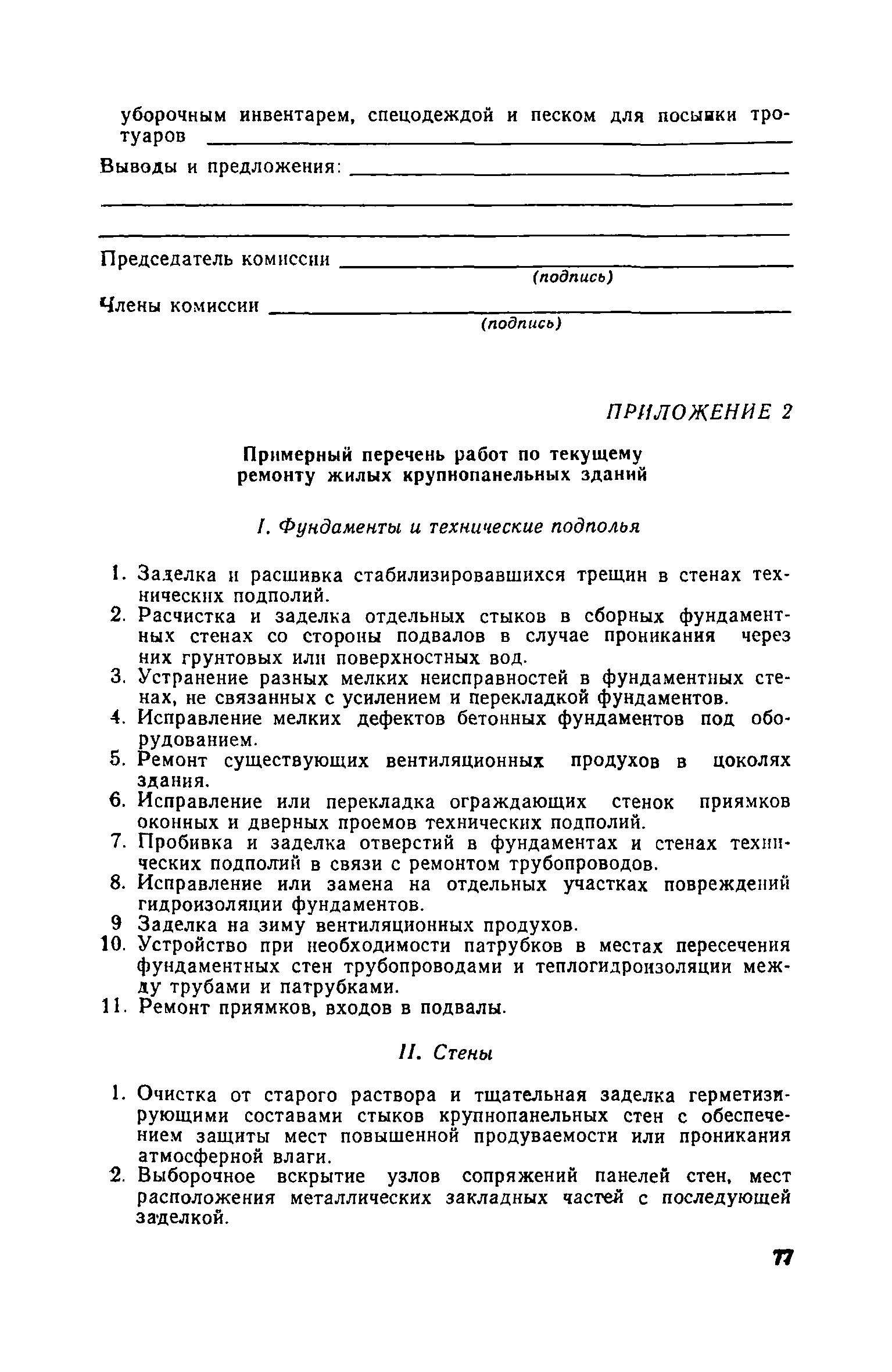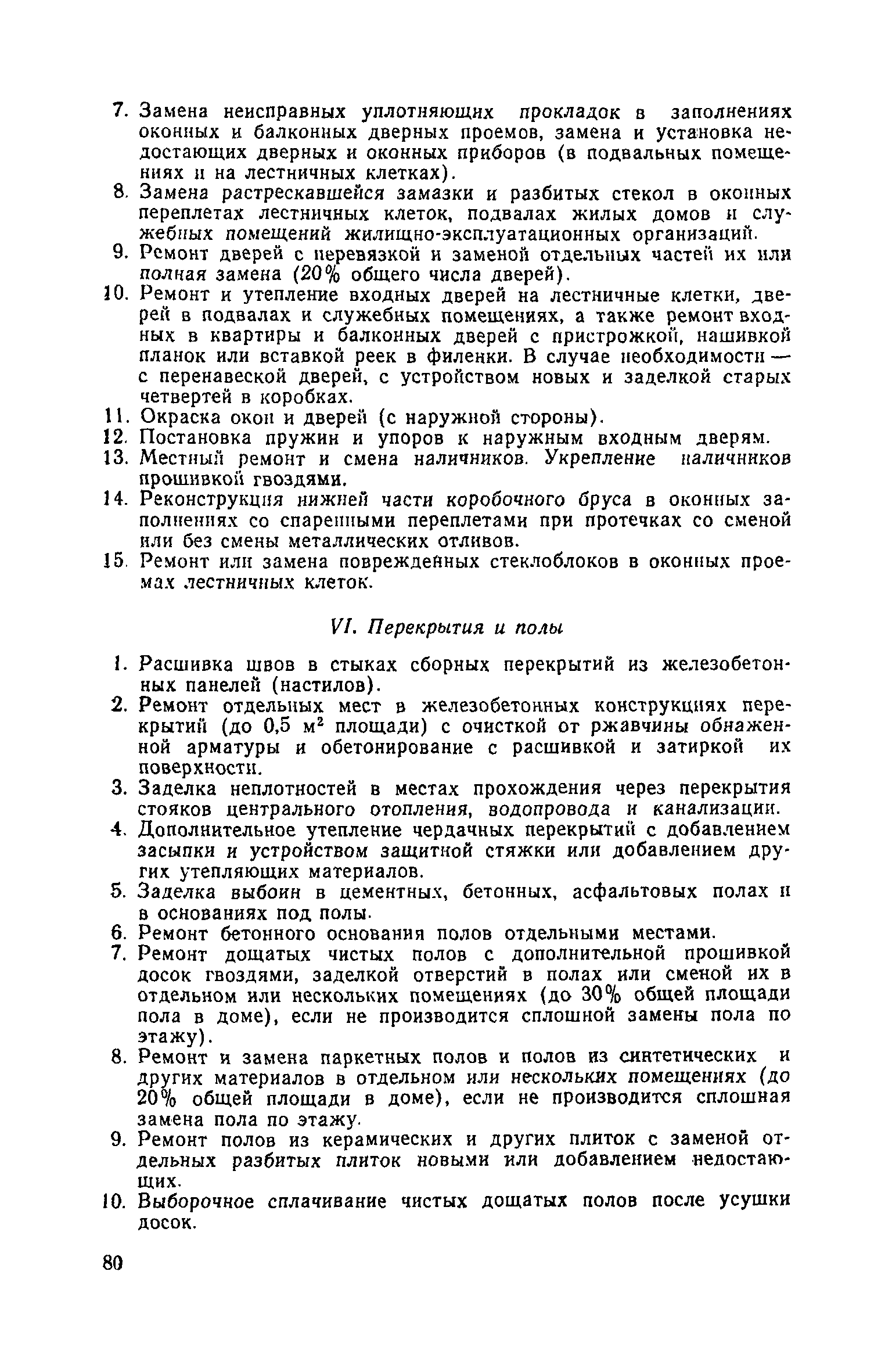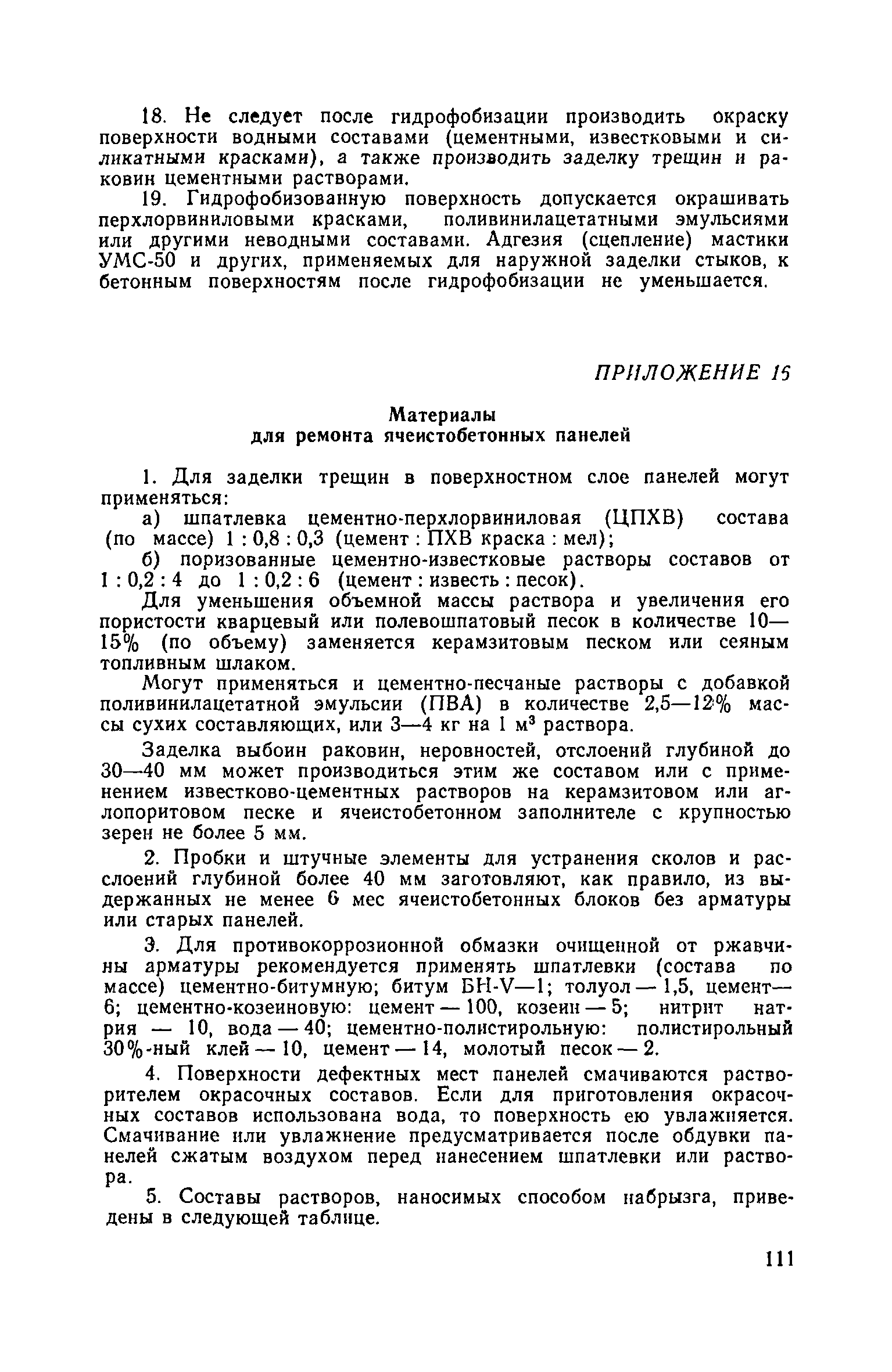 | Оглавление: | Введение 1. Общие указания 2. Планирование профилактического текущего ремонта крупнопанельных зданий 3. Организация профилактического текущего ремонта жилых крупнопанельных зданий 4. Методика периодических осмотров и обследования крупнопанельных зданий 5. Определение причин появления и способов устранения основных дефектов в конструктивных элементах крупнопанельных зданий 6. Технология профилактического текущего ремонта крупнопанельных зданий 7. Ремонт и наладка оборудования в доме Приложение 1. Формы актов общего осмотра зданий Приложение 2. Примерный перечень работ по текущему ремонту жилых крупнопанельных зданий Приложение 3. Перечень работ по техническому обслуживанию элементов жилого крупнопанельного здания, выполняемых при проведении частичных осмотров Приложение 4. Журнал регистрации результатов периодических осмотров объектов Приложение 5. Расчет численности и фонда заработной платы рабочих текущего ремонта (форма) Приложение 6. Пообьектный график работ по профилактическому текущему ремонту жилых домов Приложение 7. Сводный план текущего ремонта жилых домов Приложение 8. Перечень типовых технологических карт на процессы ремонта крупнопанельных жилых зданий, разработанных ЛНИИ АКХ и утвержденных приказами МЖКХ РСФСР Приложение 9. Перечень типовых технологических карт на процессы текущего ремонта жилых зданий. Разработанных ЛНИИ АКХ и утвержденных приказом МЖКХ РСФСР от 14.09.73 г. № 365 Приложение 10. Конструктивные схемы крупнопанельных жилых домов Приложение 11. Методика оценки состояния металлических элементов в конструкциях крупнопанельных зданий . . . Приложение 12. Методика определения влажности материалов Приложение 13. Приборы для контрольно-измерительных работ, выполняемых в крупнопанельных зданиях Приложение 14. Герметизация стыков панелей наружных стен (технология) Приложение 15. Гидрофобизация наружных поверхностей стеновых панелей Приложение 16. Материалы для ремонта ячеистобетонных панелей Приложение 17. Рецепты составов для крепления отпавшей облицовочной плитки панелей фасадов Приложение 18. Рецепты моющих средств для фасадов оконных заполнителей |