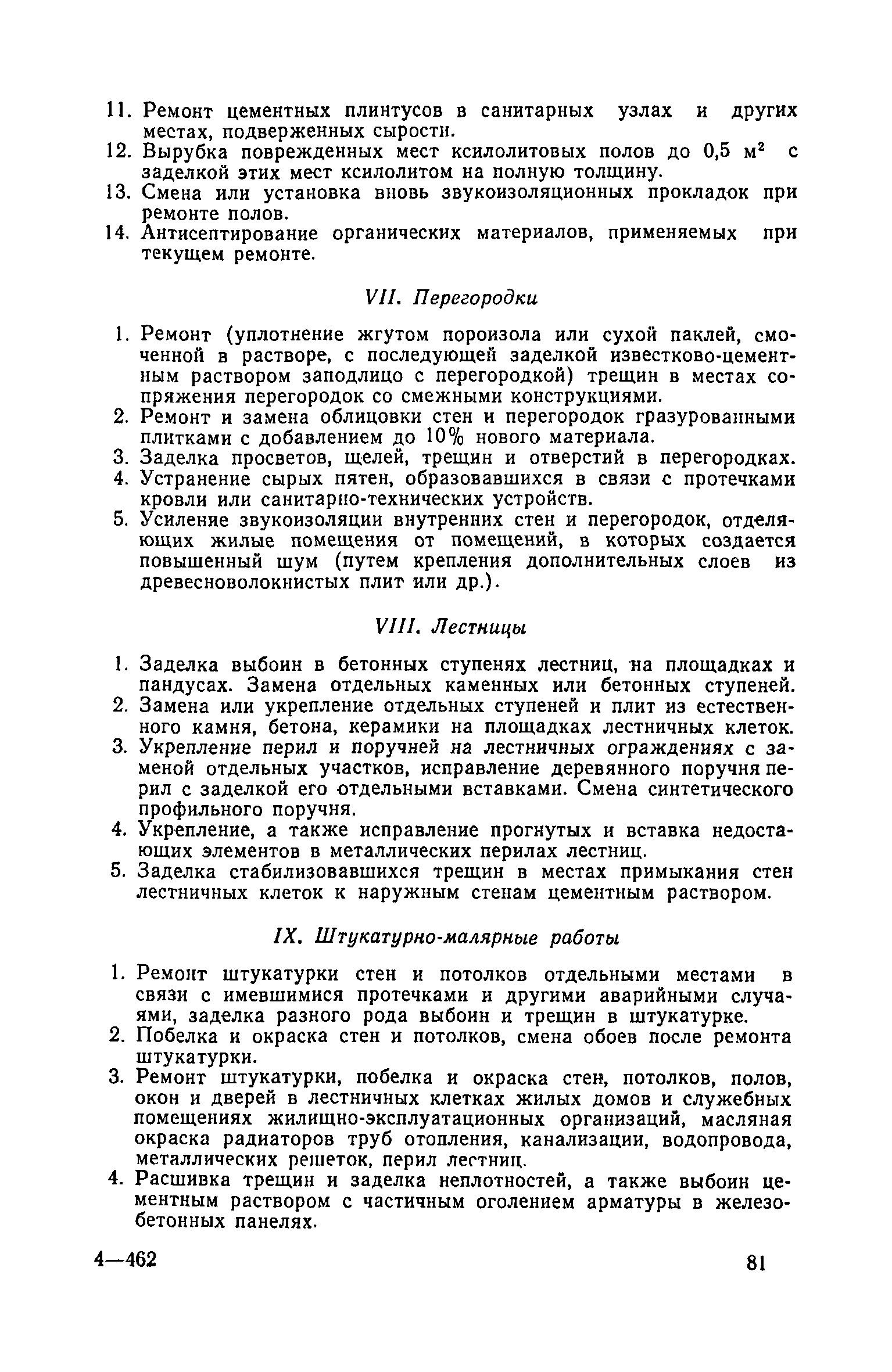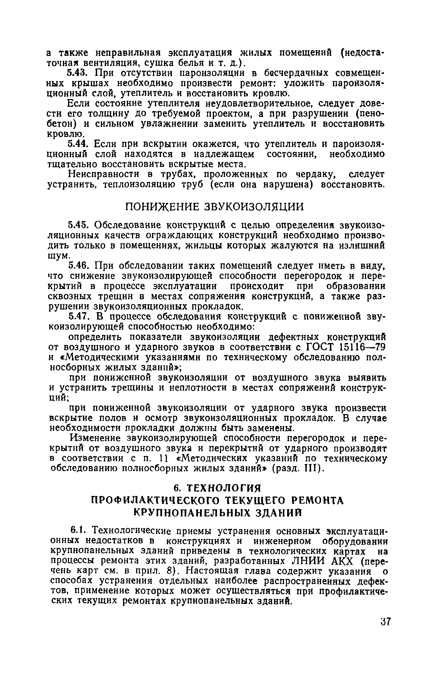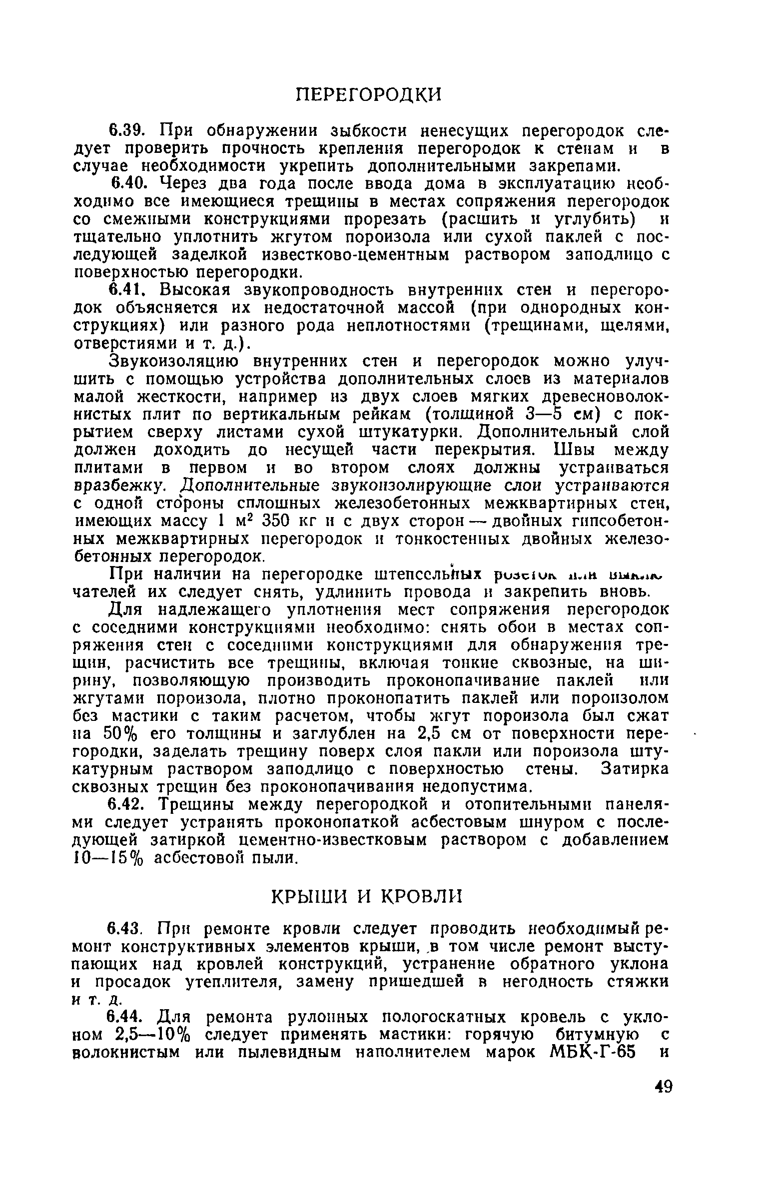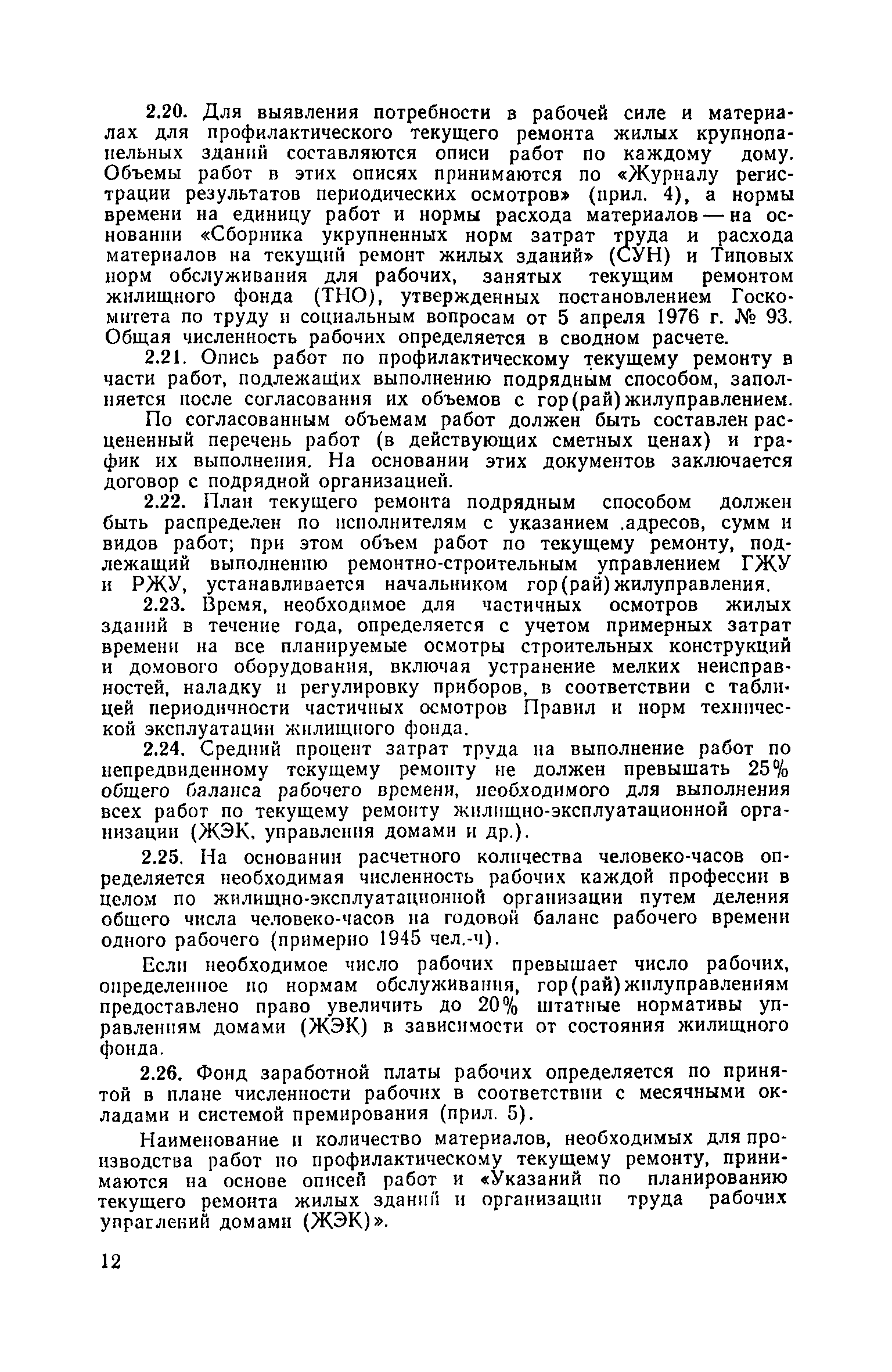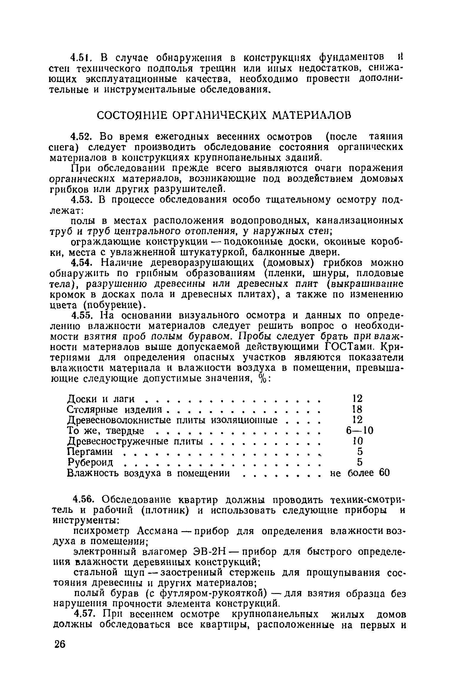 | Оглавление: | Введение 1. Общие указания 2. Планирование профилактического текущего ремонта крупнопанельных зданий 3. Организация профилактического текущего ремонта жилых крупнопанельных зданий 4. Методика периодических осмотров и обследования крупнопанельных зданий 5. Определение причин появления и способов устранения основных дефектов в конструктивных элементах крупнопанельных зданий 6. Технология профилактического текущего ремонта крупнопанельных зданий 7. Ремонт и наладка оборудования в доме Приложение 1. Формы актов общего осмотра зданий Приложение 2. Примерный перечень работ по текущему ремонту жилых крупнопанельных зданий Приложение 3. Перечень работ по техническому обслуживанию элементов жилого крупнопанельного здания, выполняемых при проведении частичных осмотров Приложение 4. Журнал регистрации результатов периодических осмотров объектов Приложение 5. Расчет численности и фонда заработной платы рабочих текущего ремонта (форма) Приложение 6. Пообьектный график работ по профилактическому текущему ремонту жилых домов Приложение 7. Сводный план текущего ремонта жилых домов Приложение 8. Перечень типовых технологических карт на процессы ремонта крупнопанельных жилых зданий, разработанных ЛНИИ АКХ и утвержденных приказами МЖКХ РСФСР Приложение 9. Перечень типовых технологических карт на процессы текущего ремонта жилых зданий. Разработанных ЛНИИ АКХ и утвержденных приказом МЖКХ РСФСР от 14.09.73 г. № 365 Приложение 10. Конструктивные схемы крупнопанельных жилых домов Приложение 11. Методика оценки состояния металлических элементов в конструкциях крупнопанельных зданий . . . Приложение 12. Методика определения влажности материалов Приложение 13. Приборы для контрольно-измерительных работ, выполняемых в крупнопанельных зданиях Приложение 14. Герметизация стыков панелей наружных стен (технология) Приложение 15. Гидрофобизация наружных поверхностей стеновых панелей Приложение 16. Материалы для ремонта ячеистобетонных панелей Приложение 17. Рецепты составов для крепления отпавшей облицовочной плитки панелей фасадов Приложение 18. Рецепты моющих средств для фасадов оконных заполнителей |